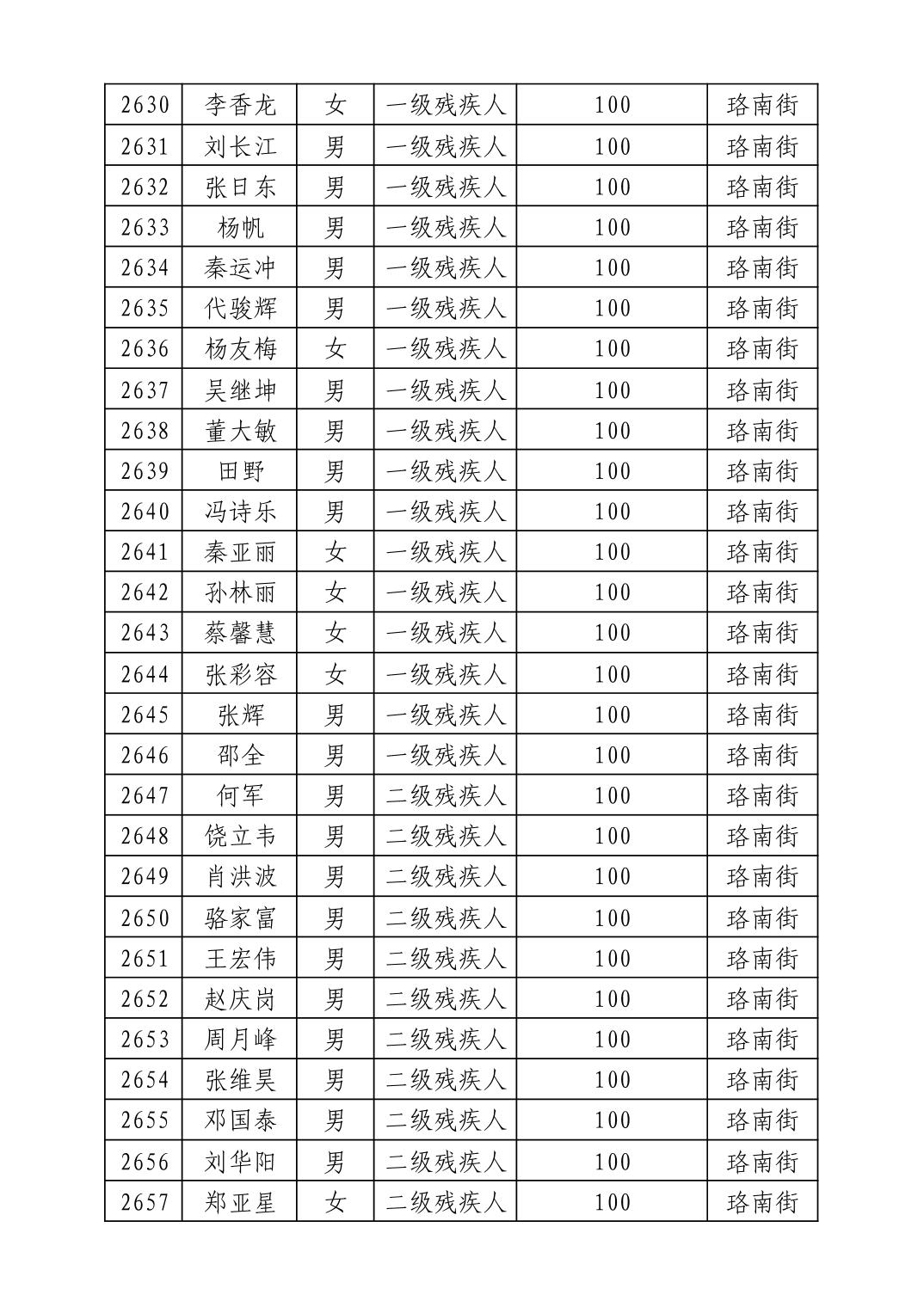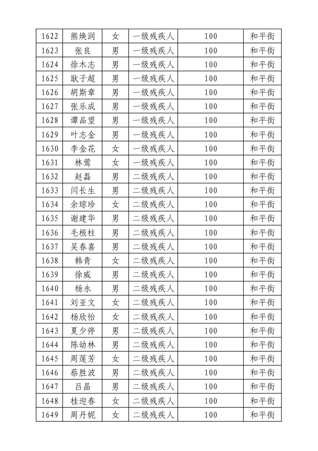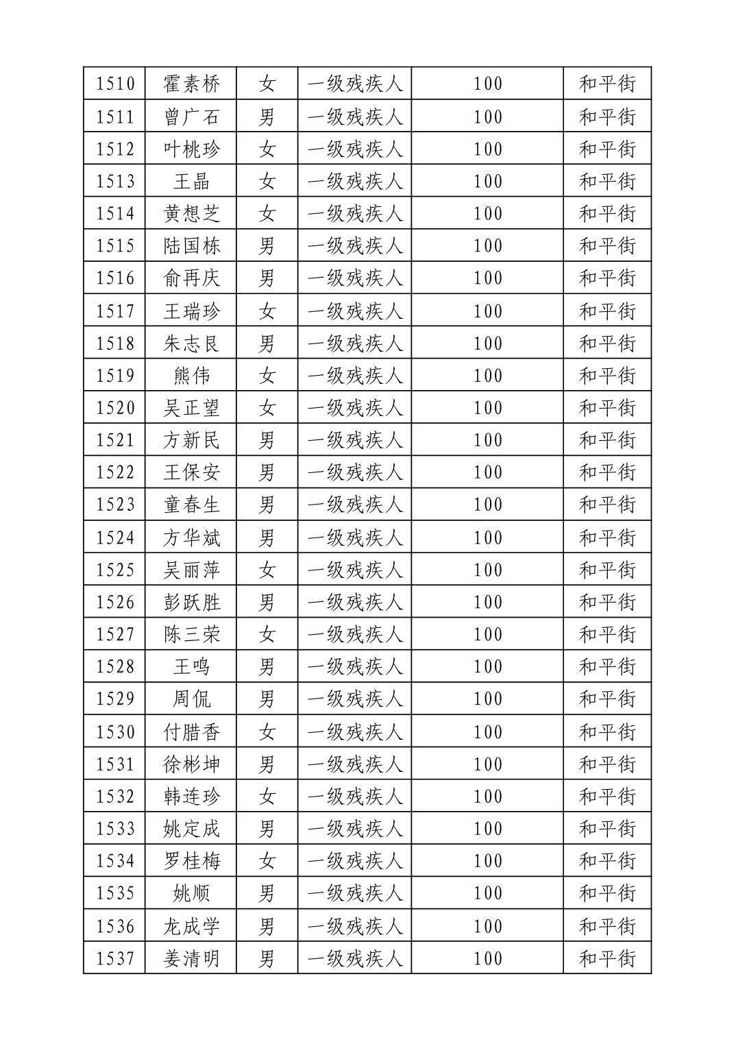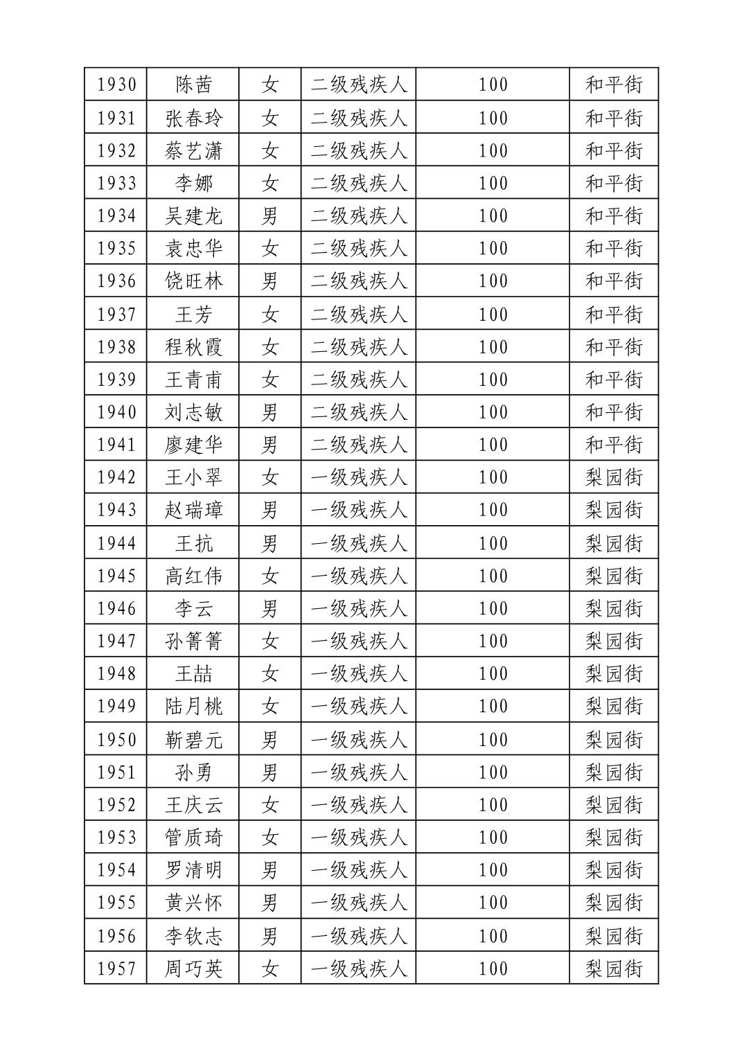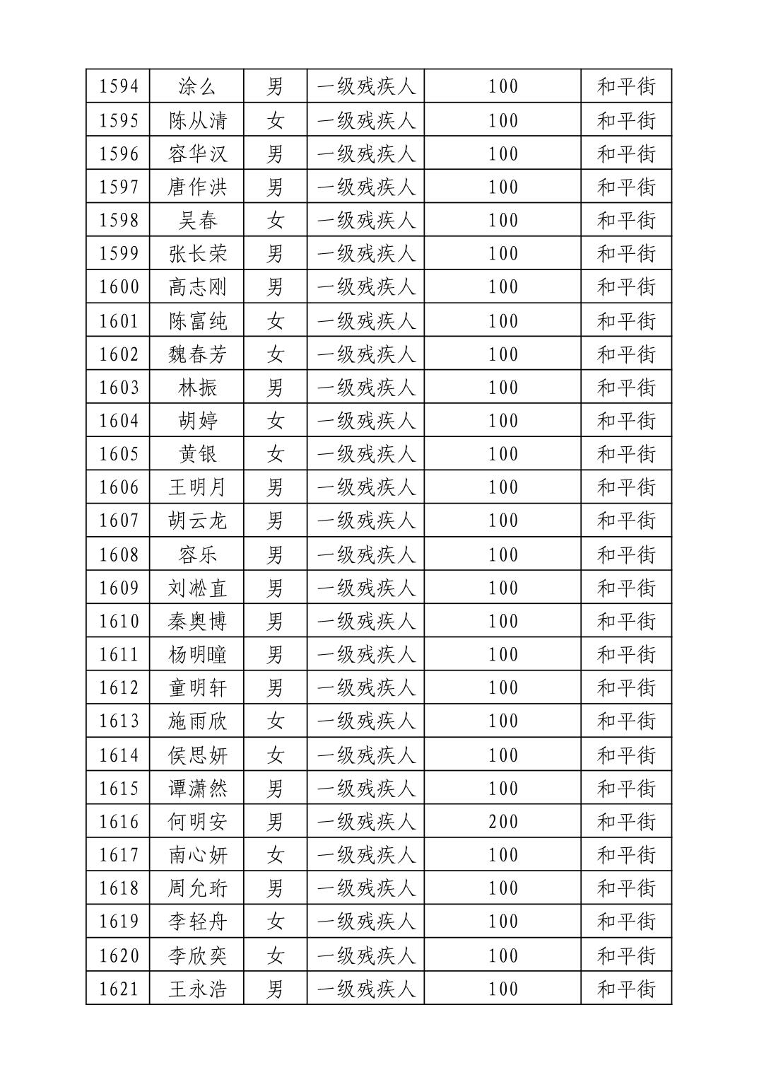 名 称:2025年8月武汉市洪山区重度残疾人护理补贴发放表