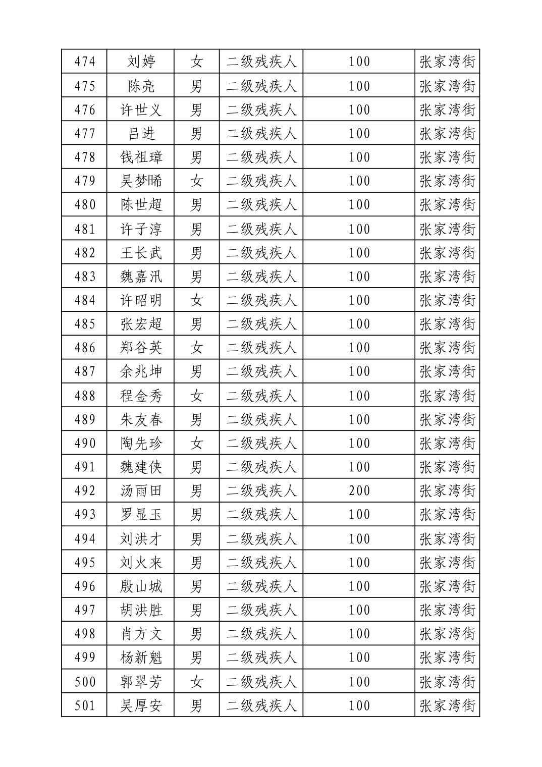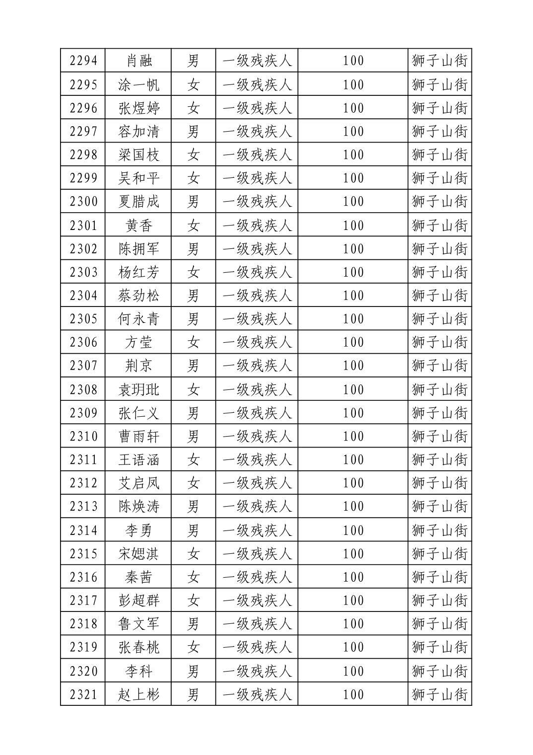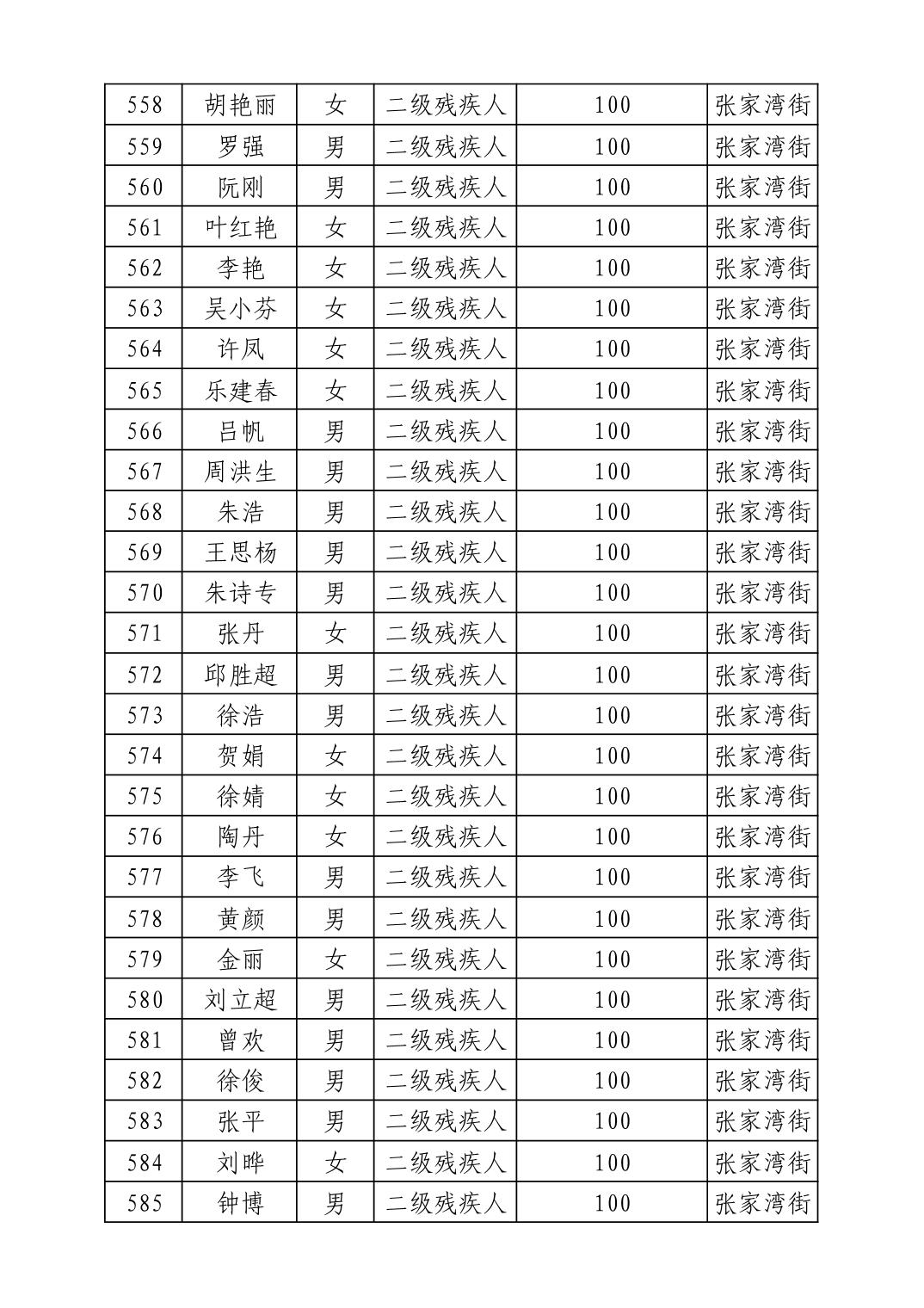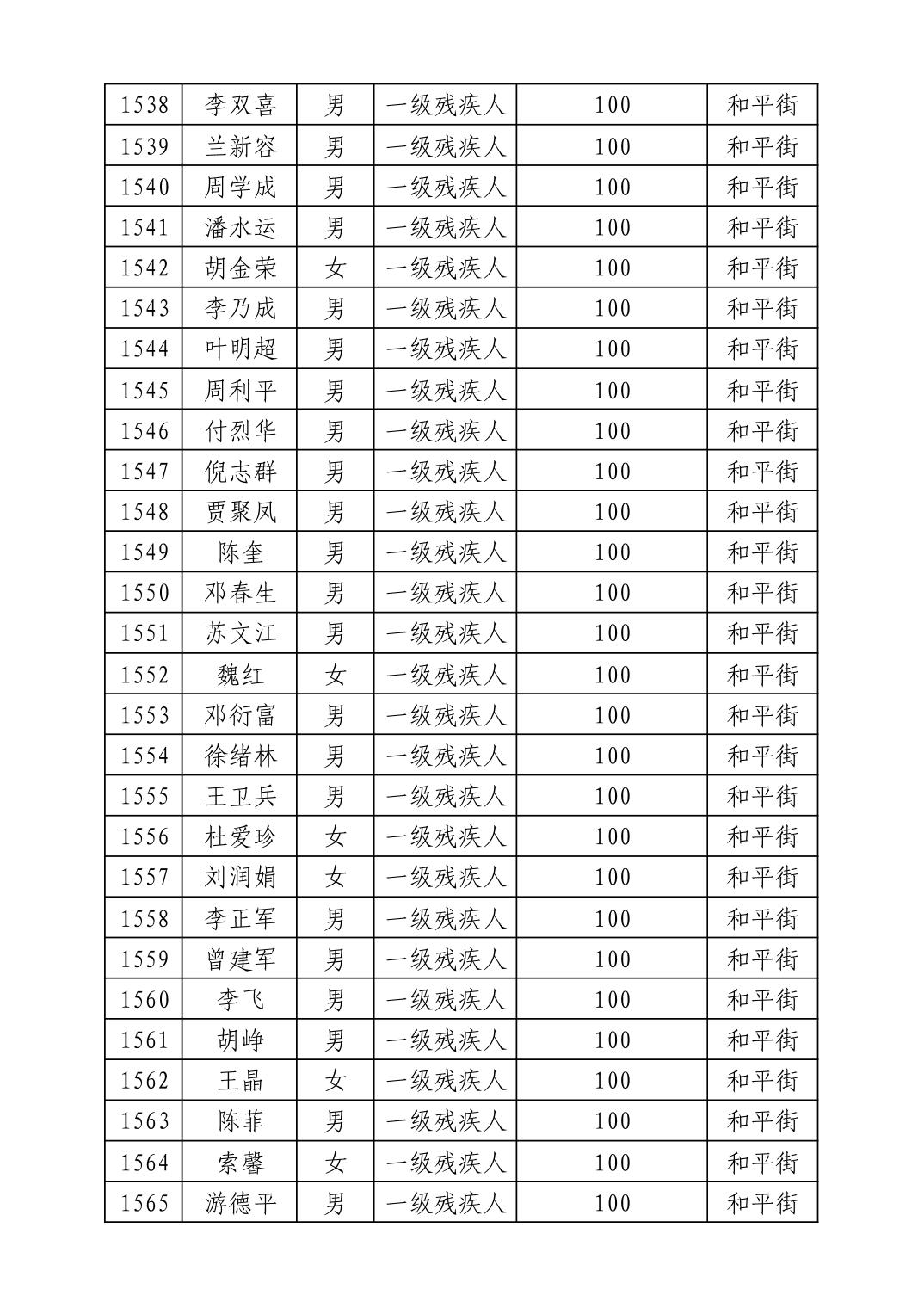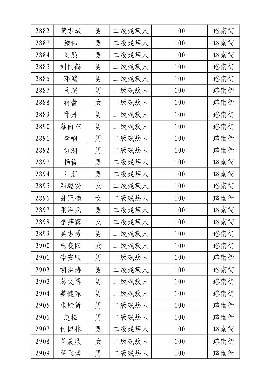 名 称:2025年8月武汉市洪山区重度残疾人护理补贴发放表