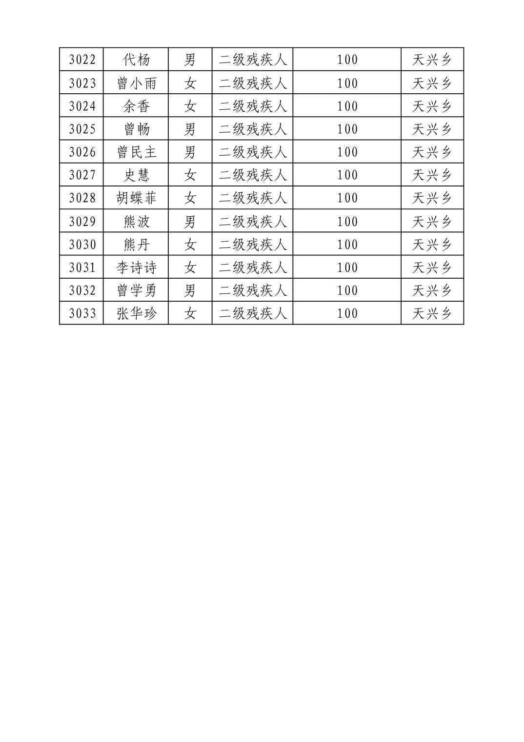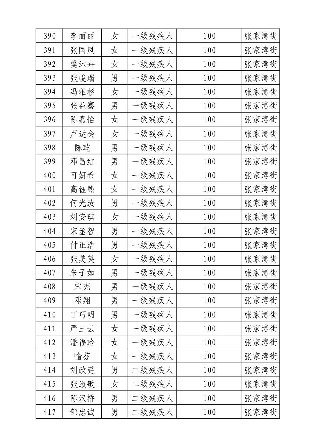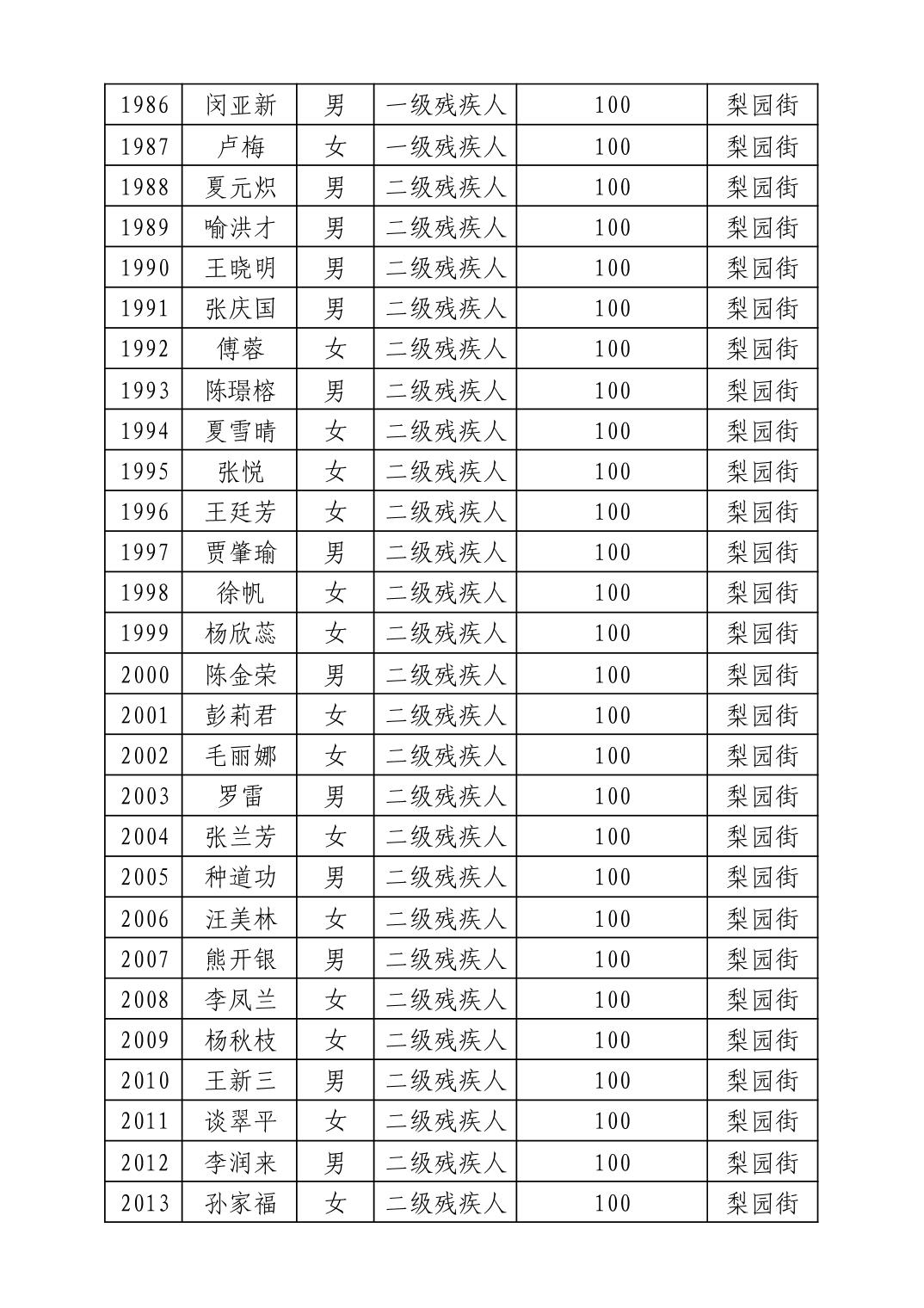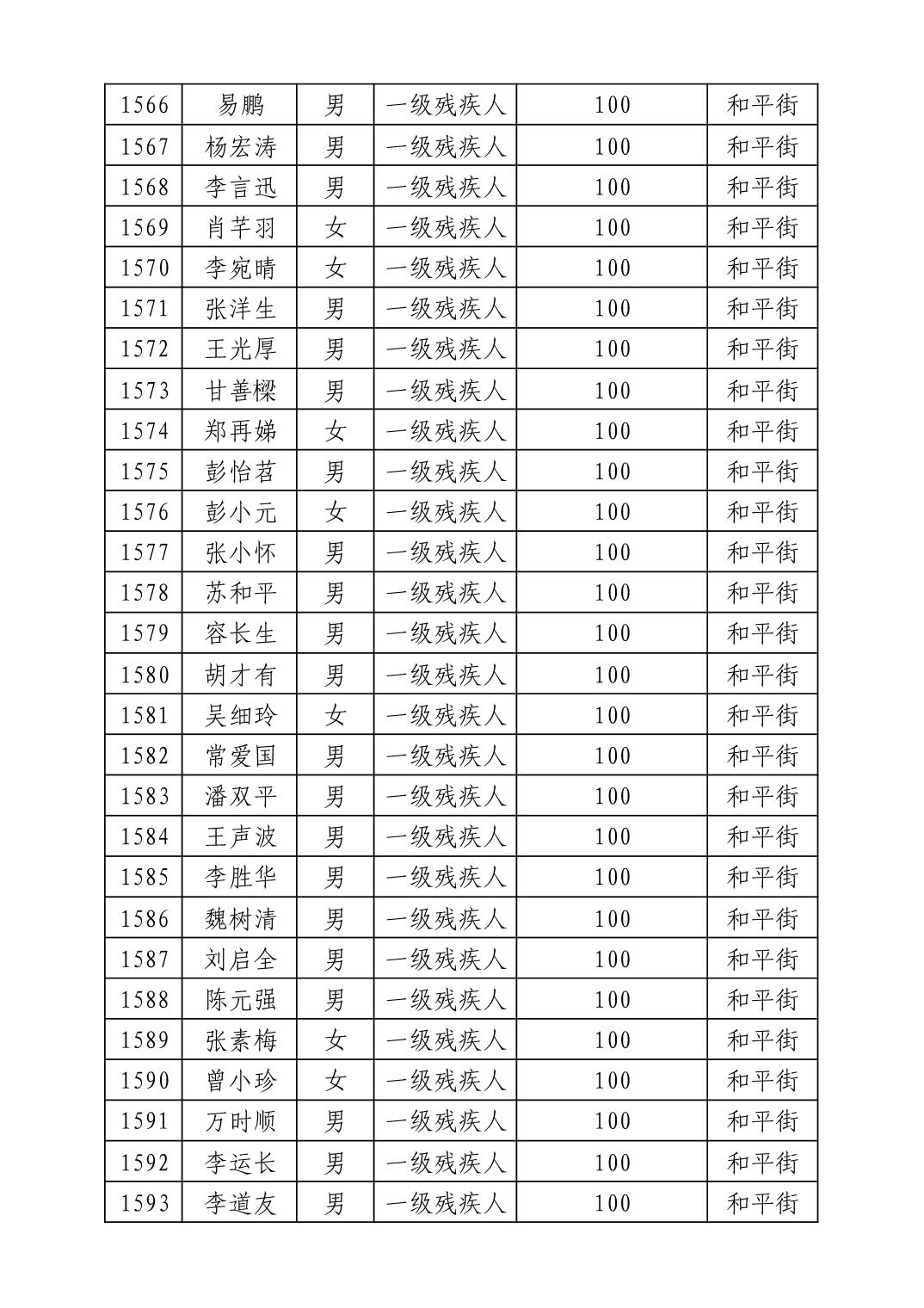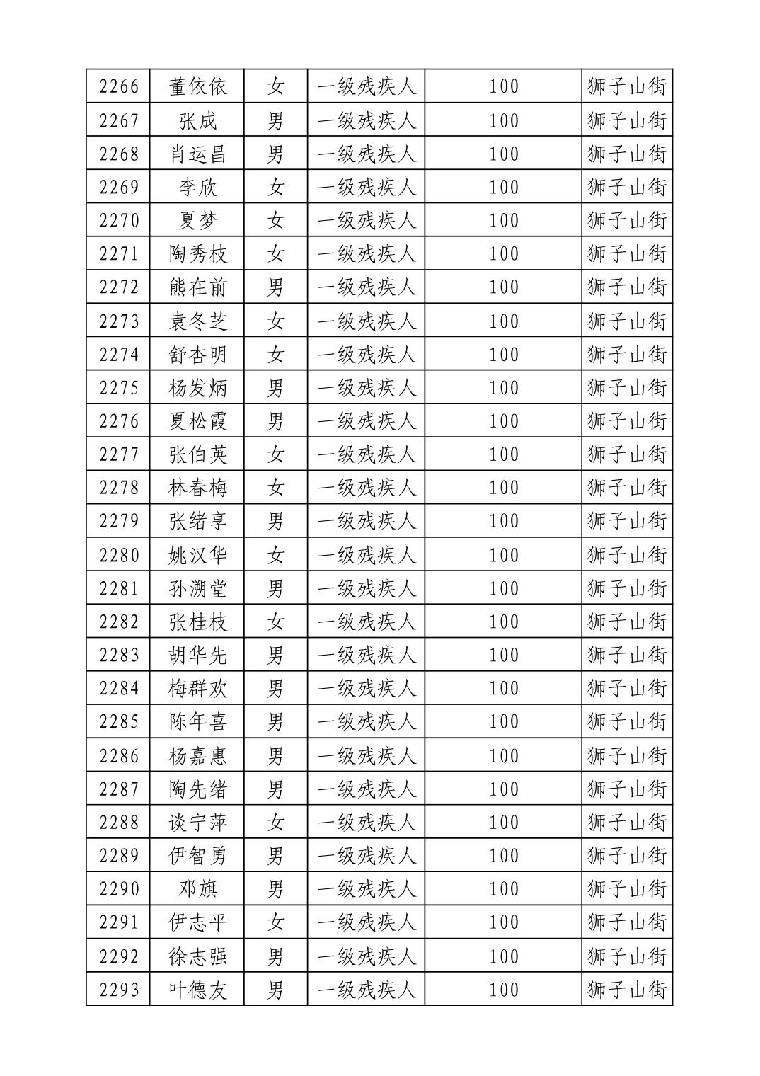 名 称:2025年8月武汉市洪山区重度残疾人护理补贴发放表