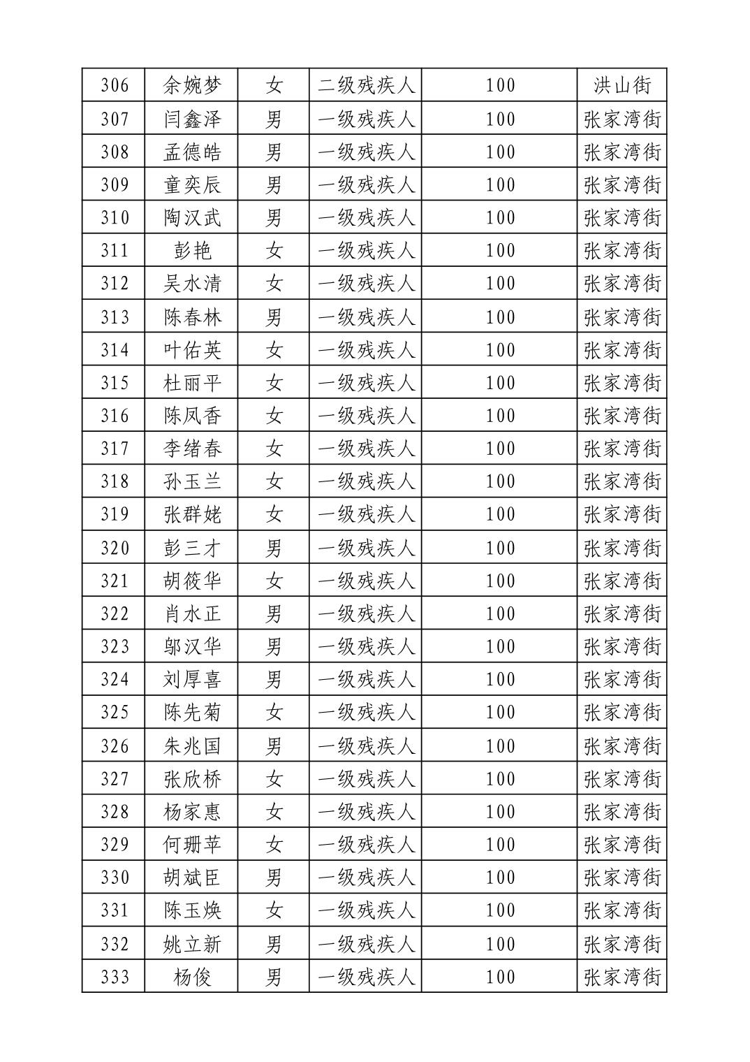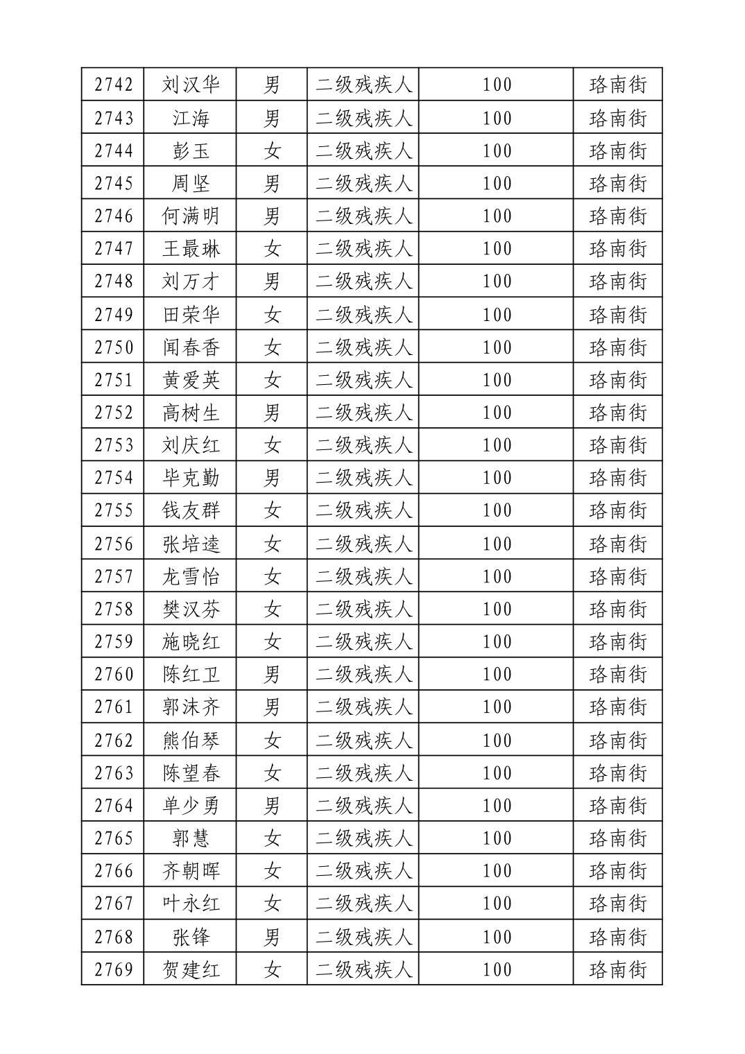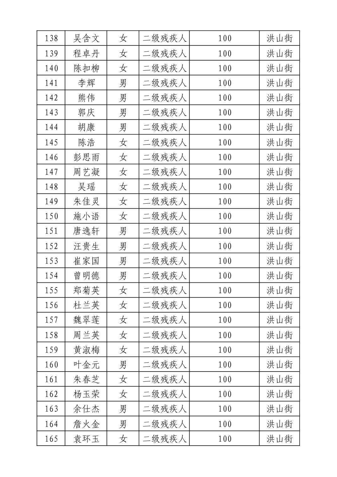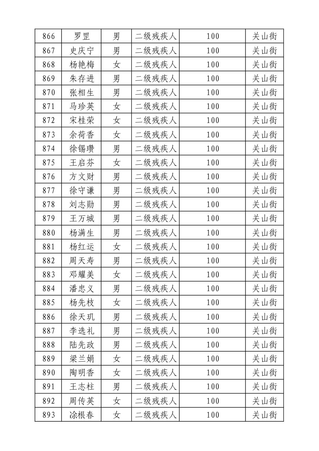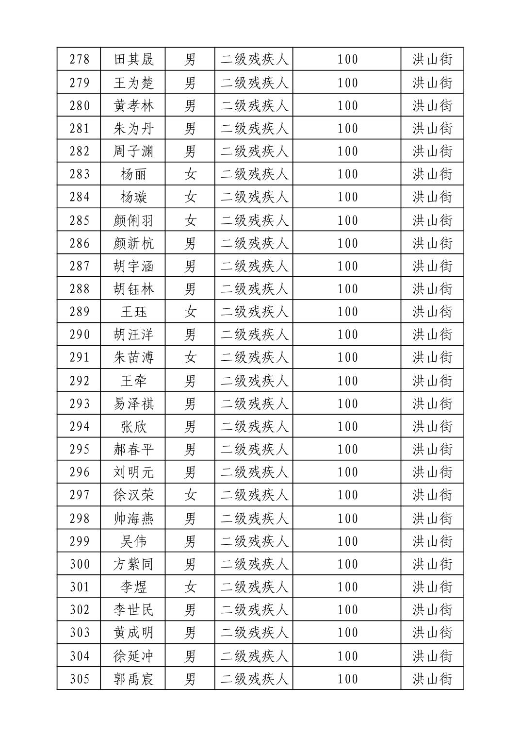 名 称:2025年9月武汉市洪山区重度残疾人护理补贴发放表