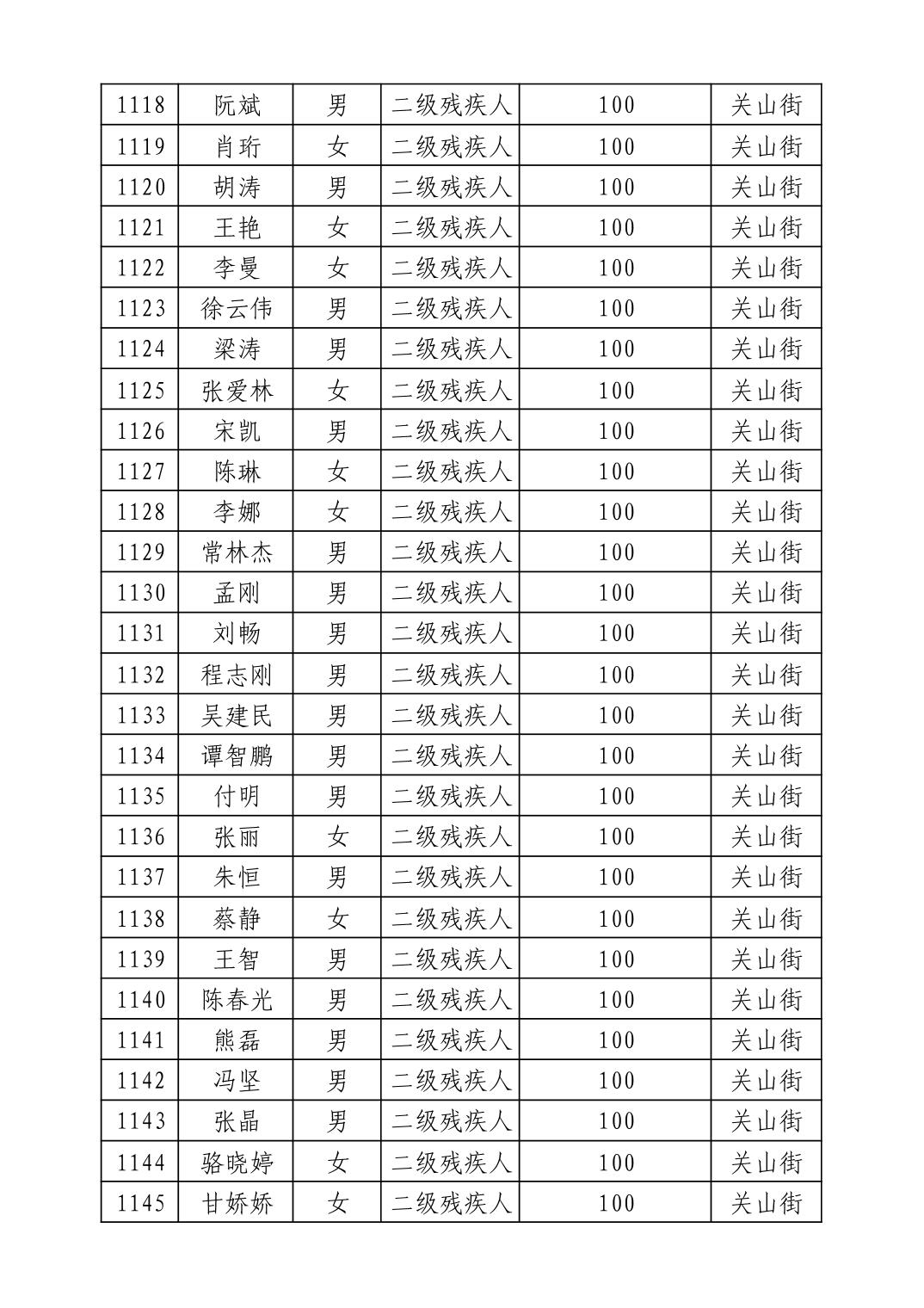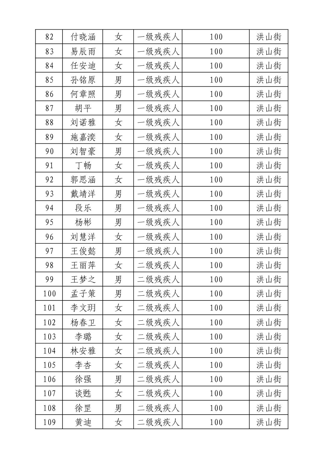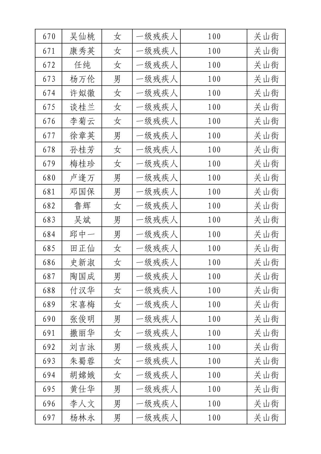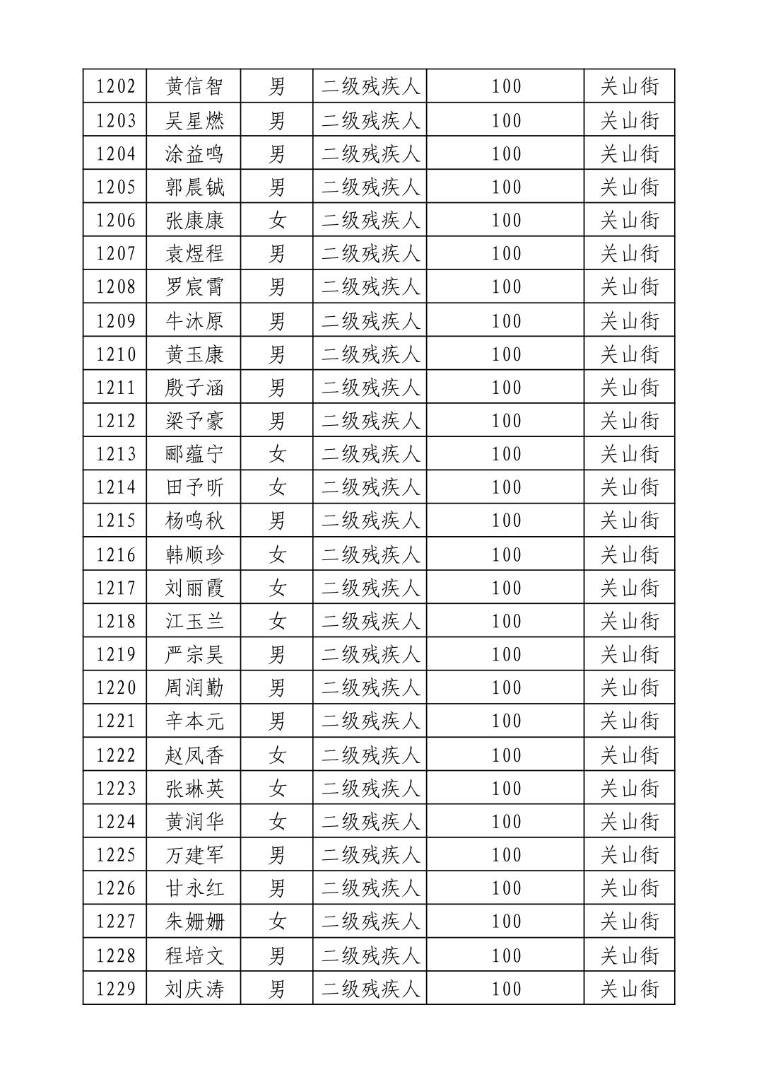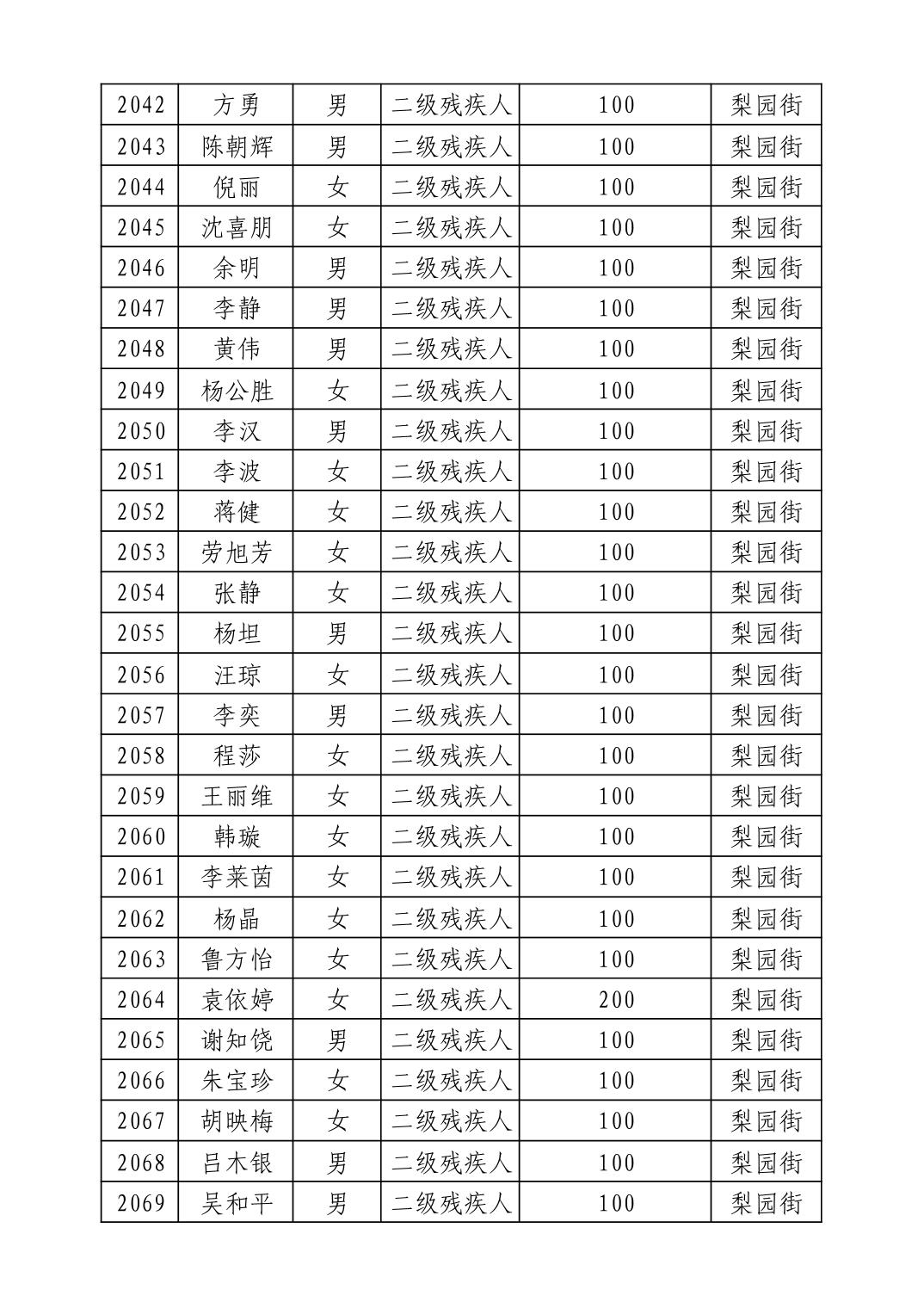 名 称:2025年9月武汉市洪山区重度残疾人护理补贴发放表