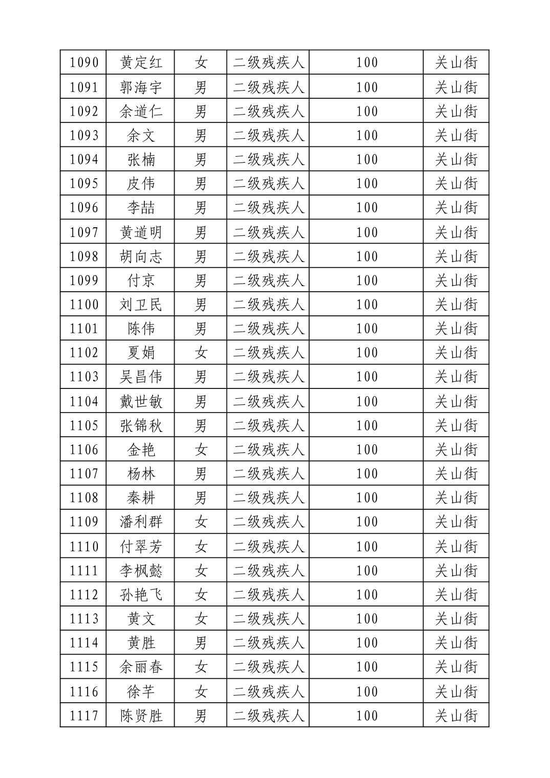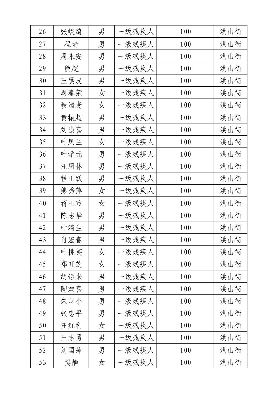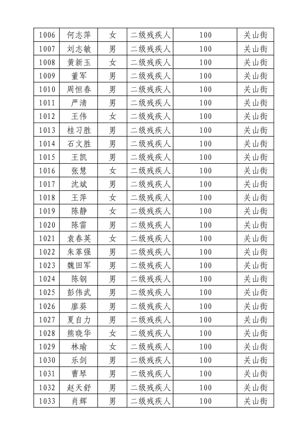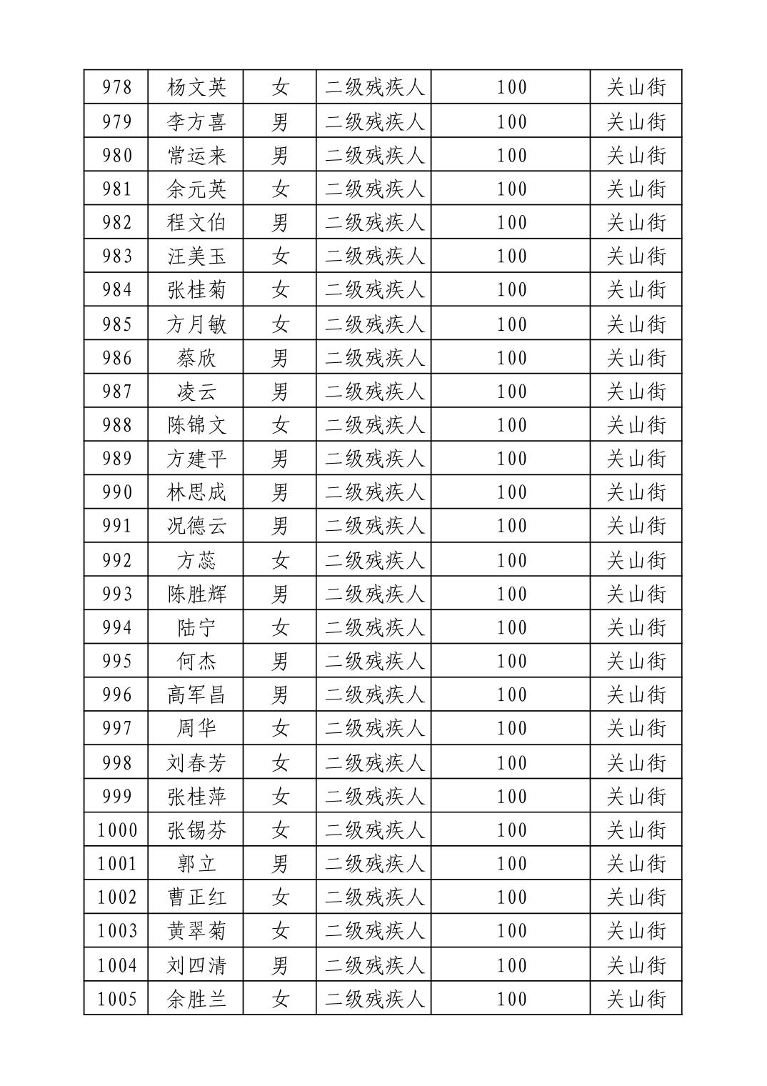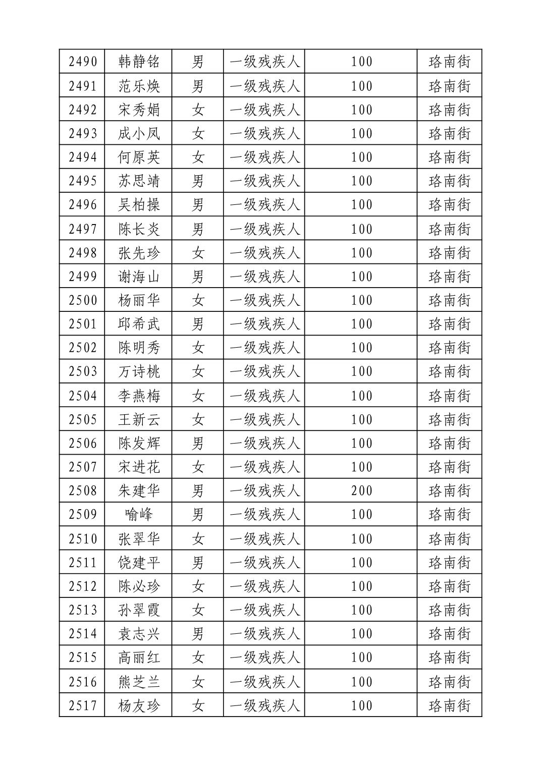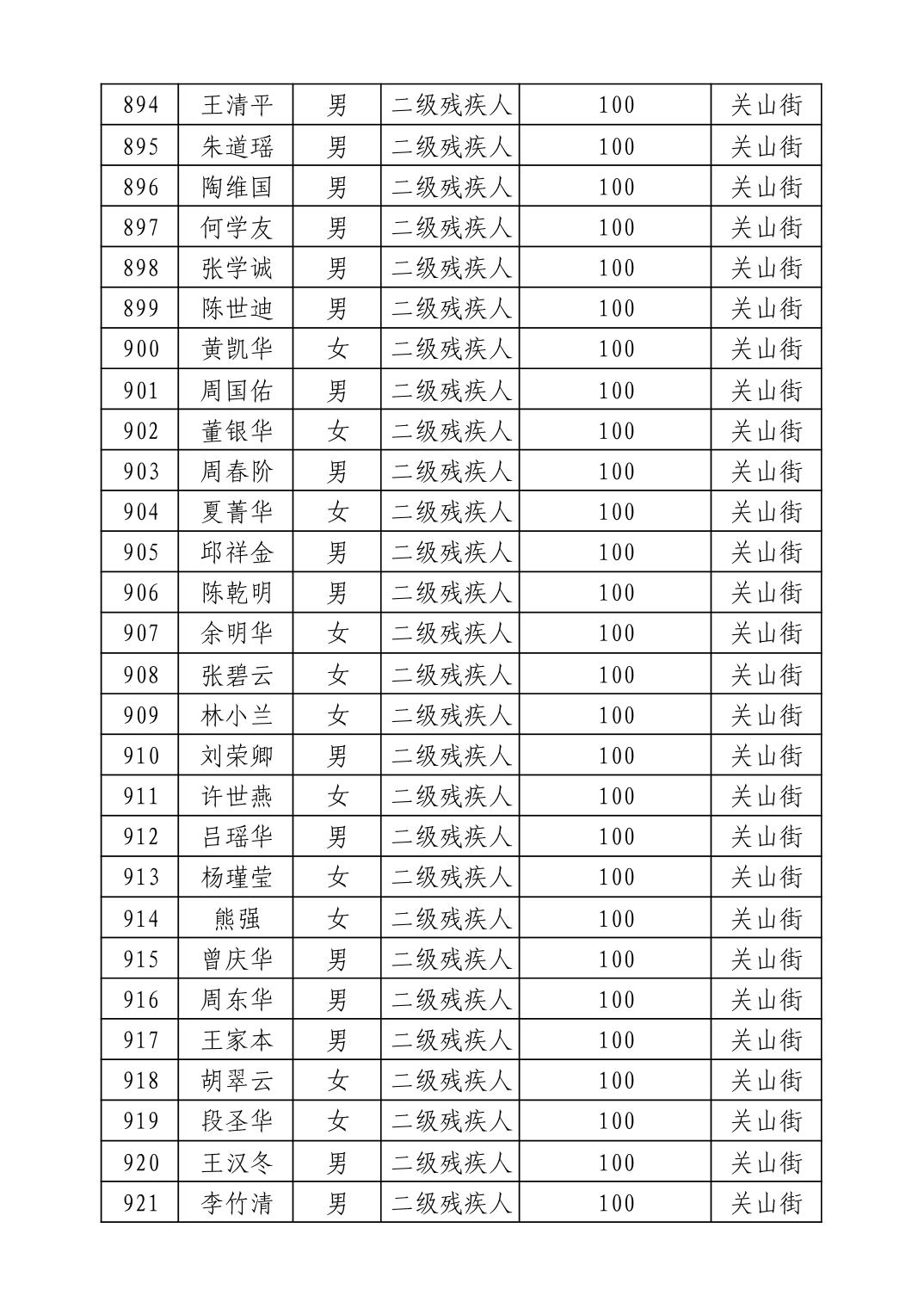 名 称:2025年9月武汉市洪山区重度残疾人护理补贴发放表