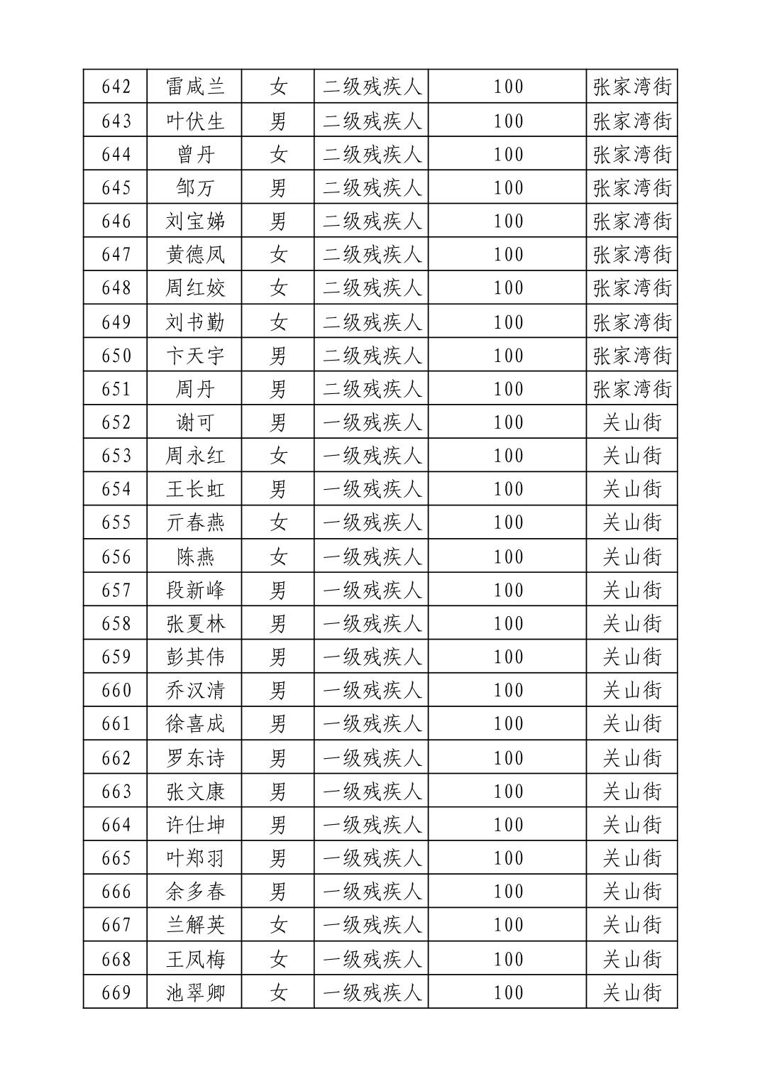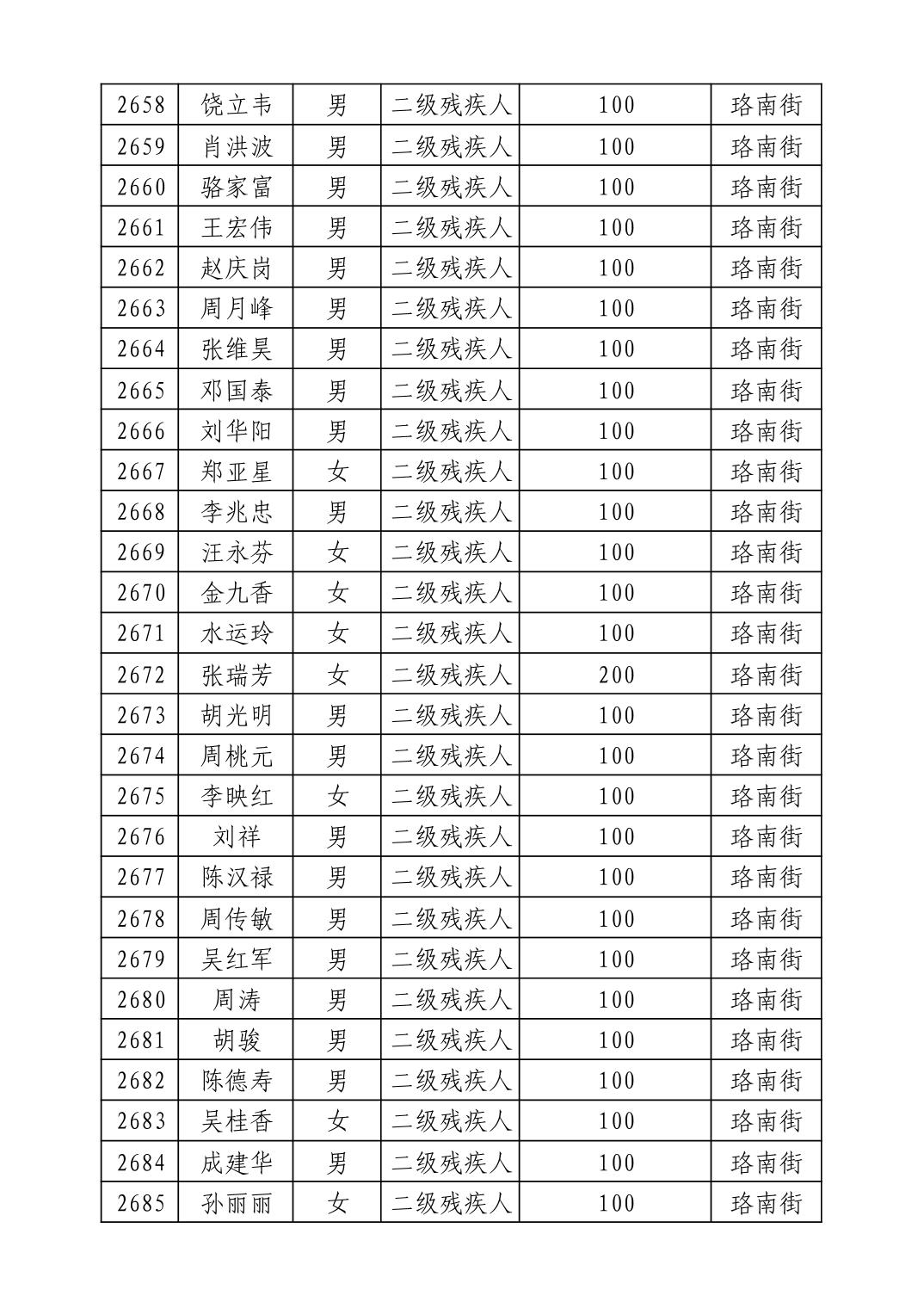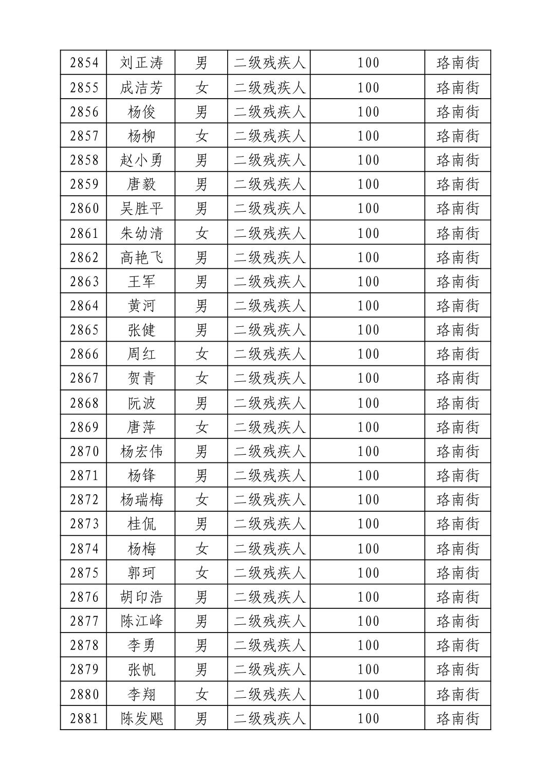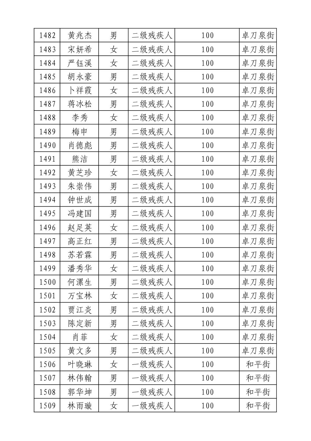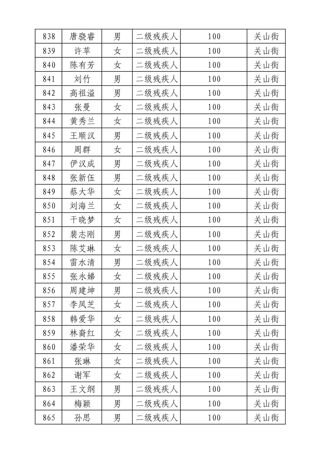 名 称:2025年9月武汉市洪山区重度残疾人护理补贴发放表
