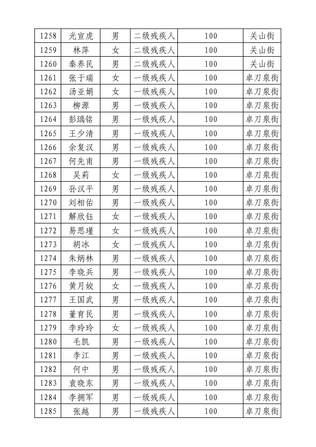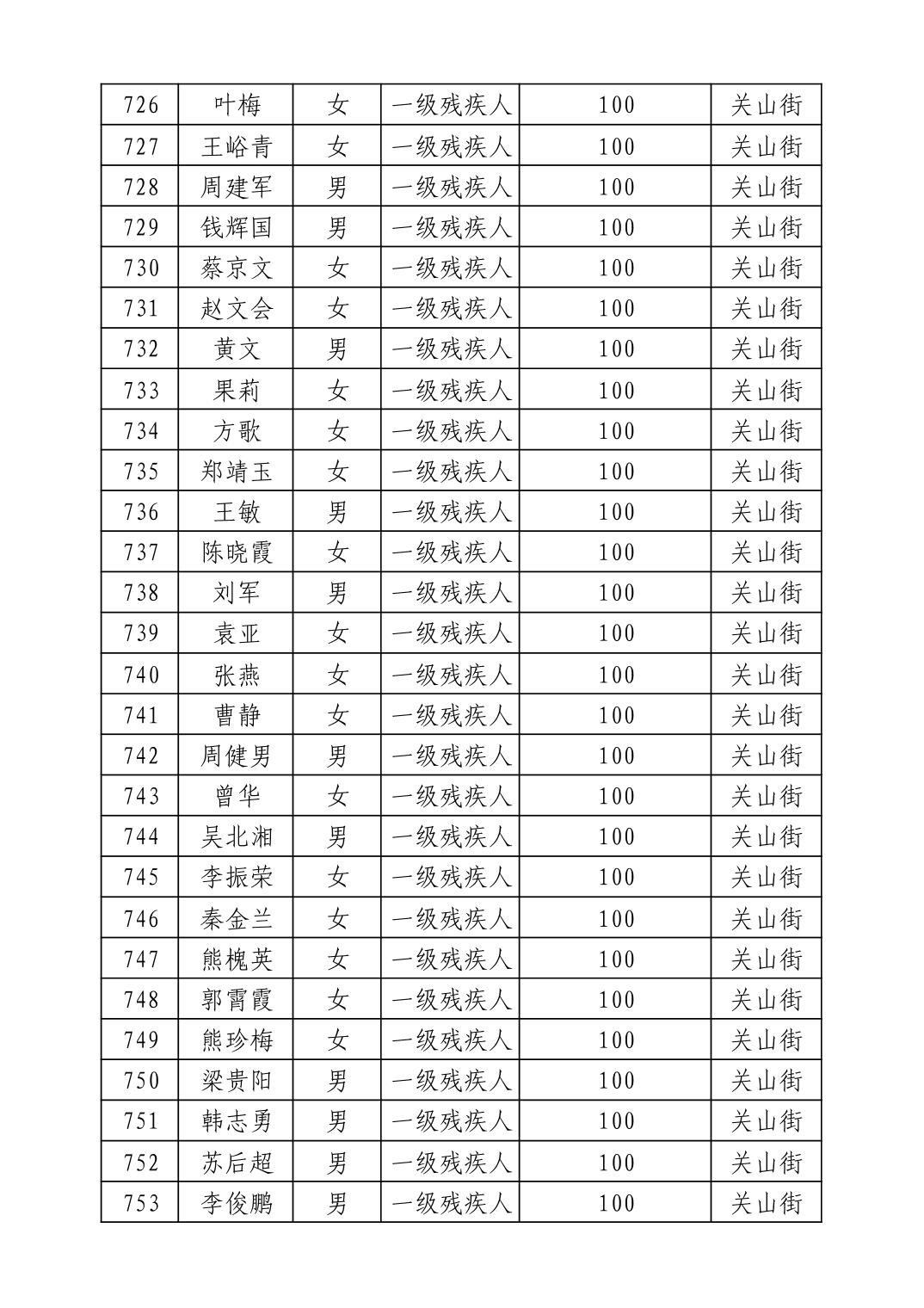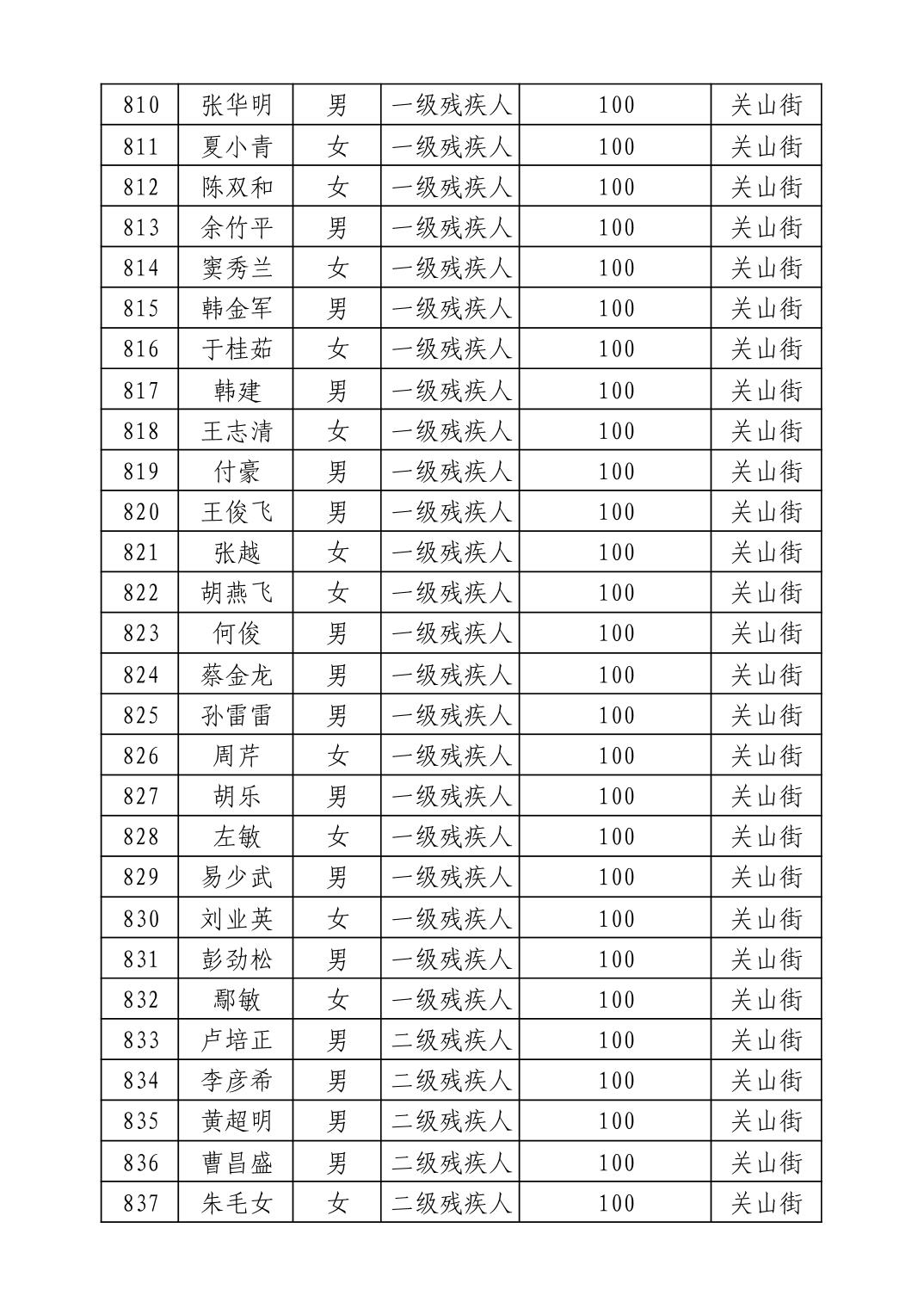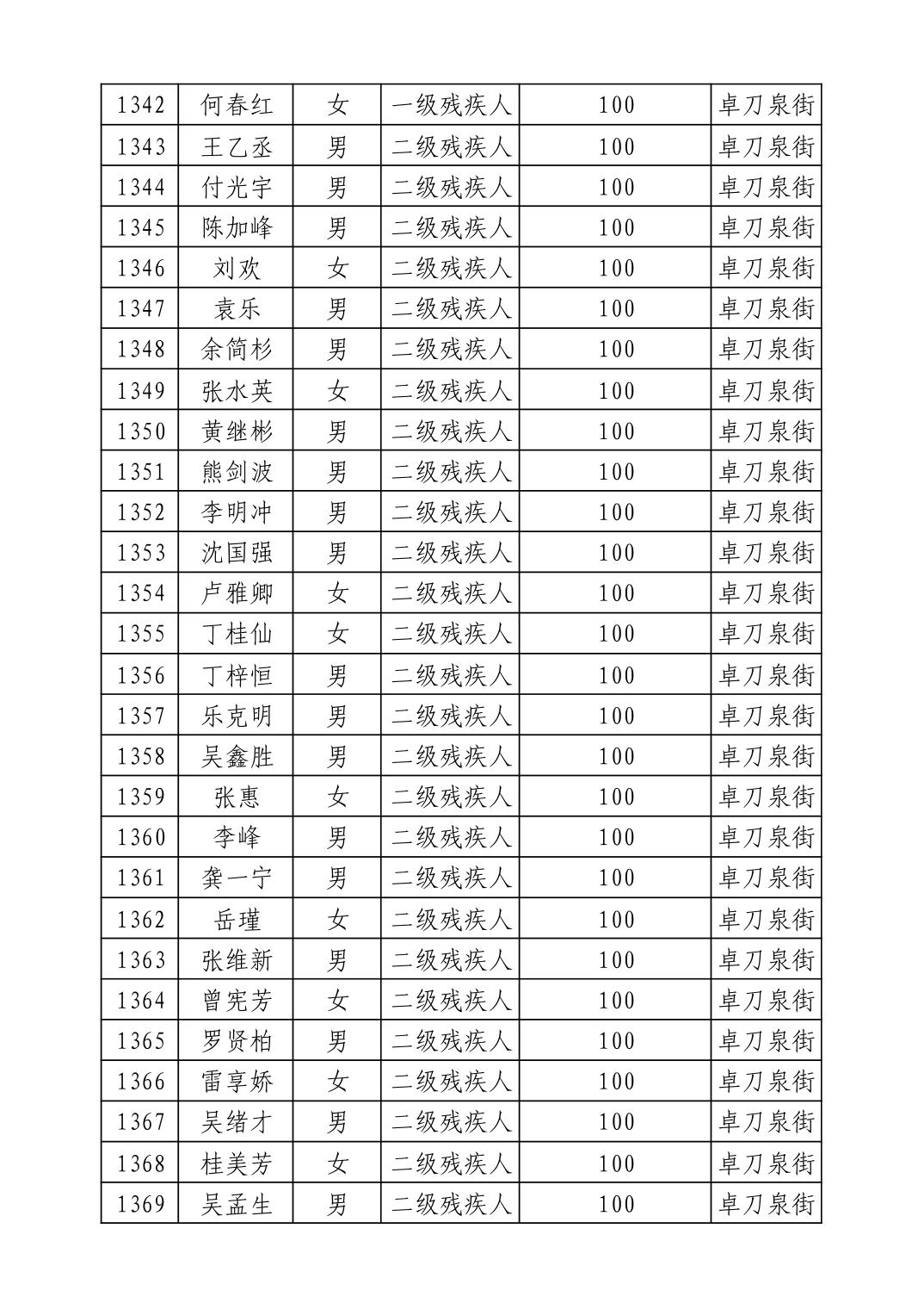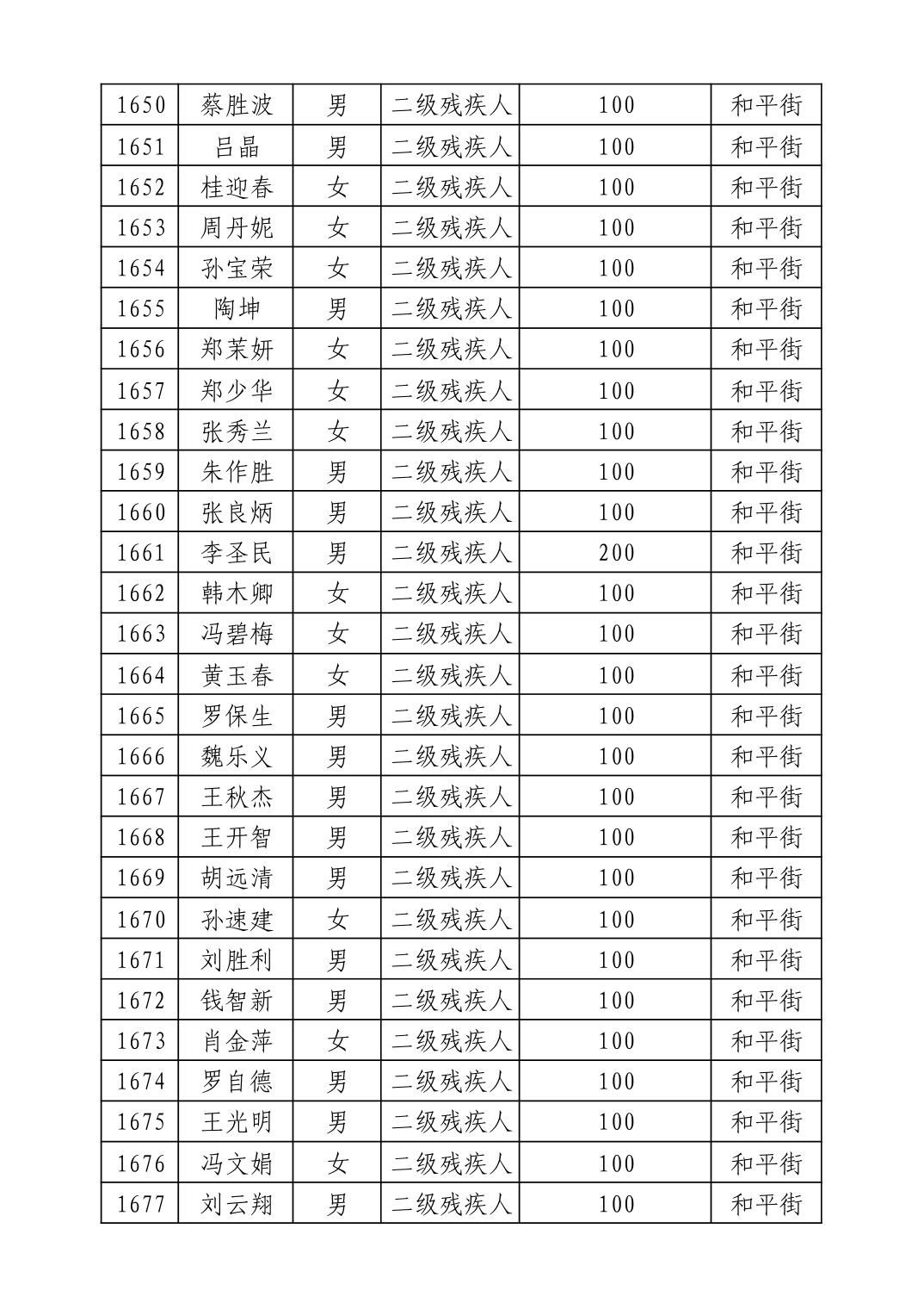 名 称:2025年9月武汉市洪山区重度残疾人护理补贴发放表