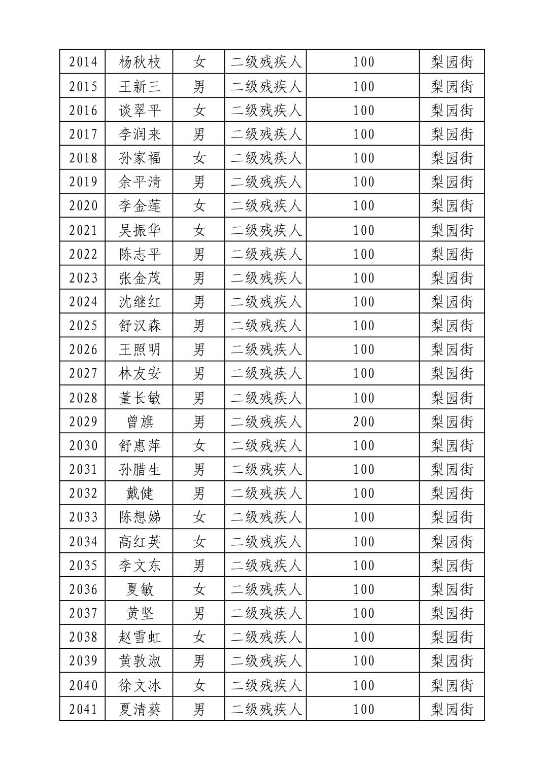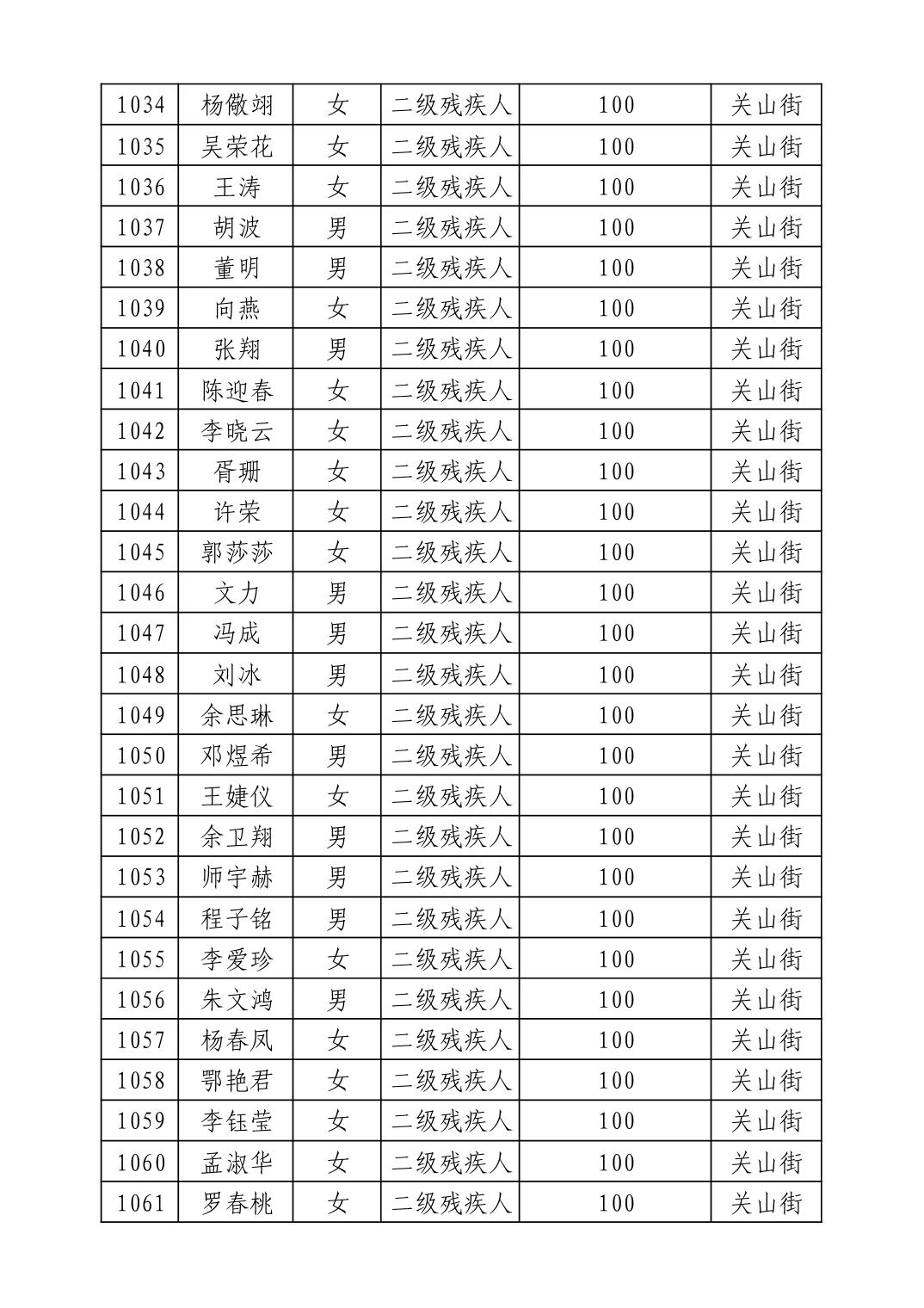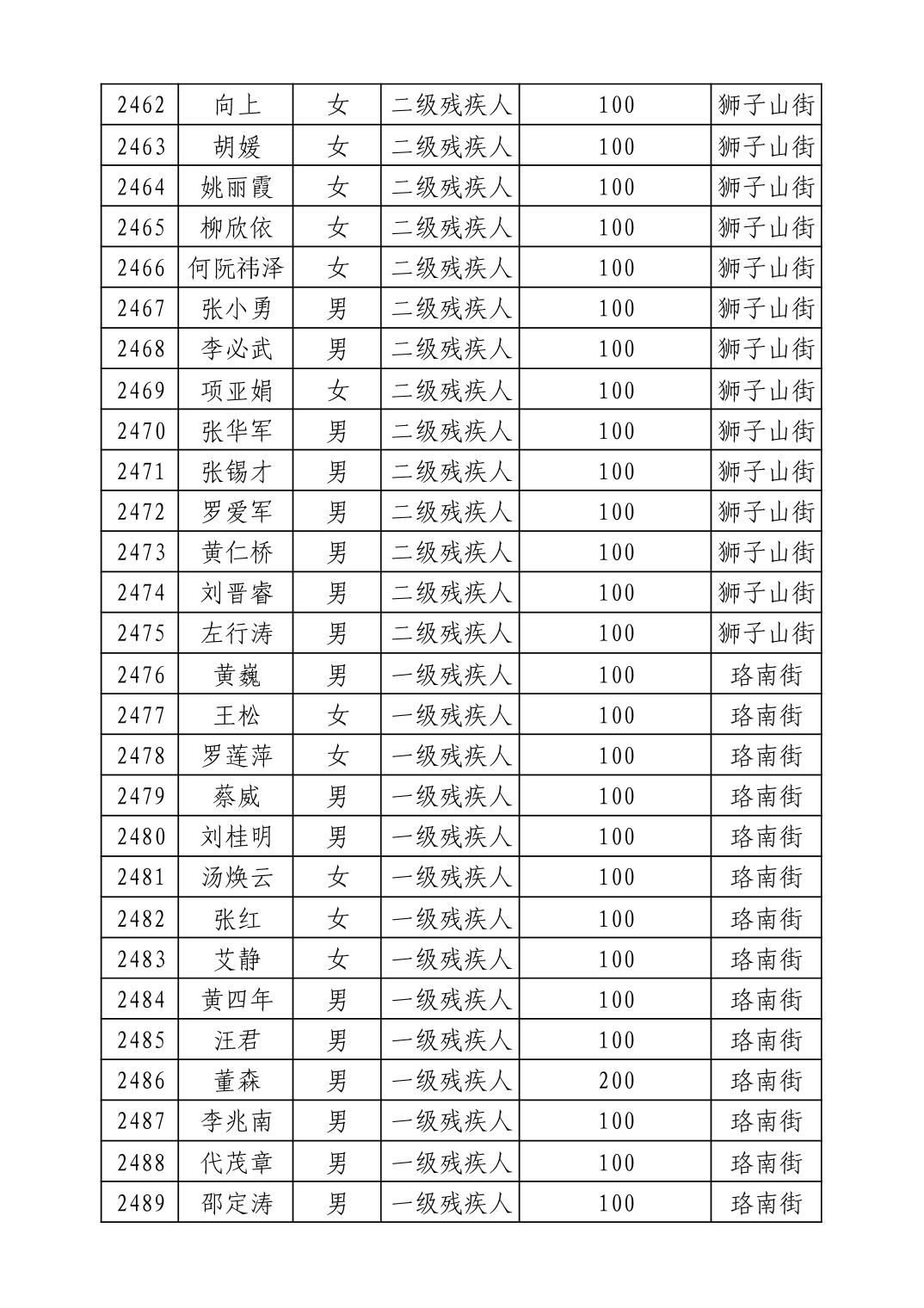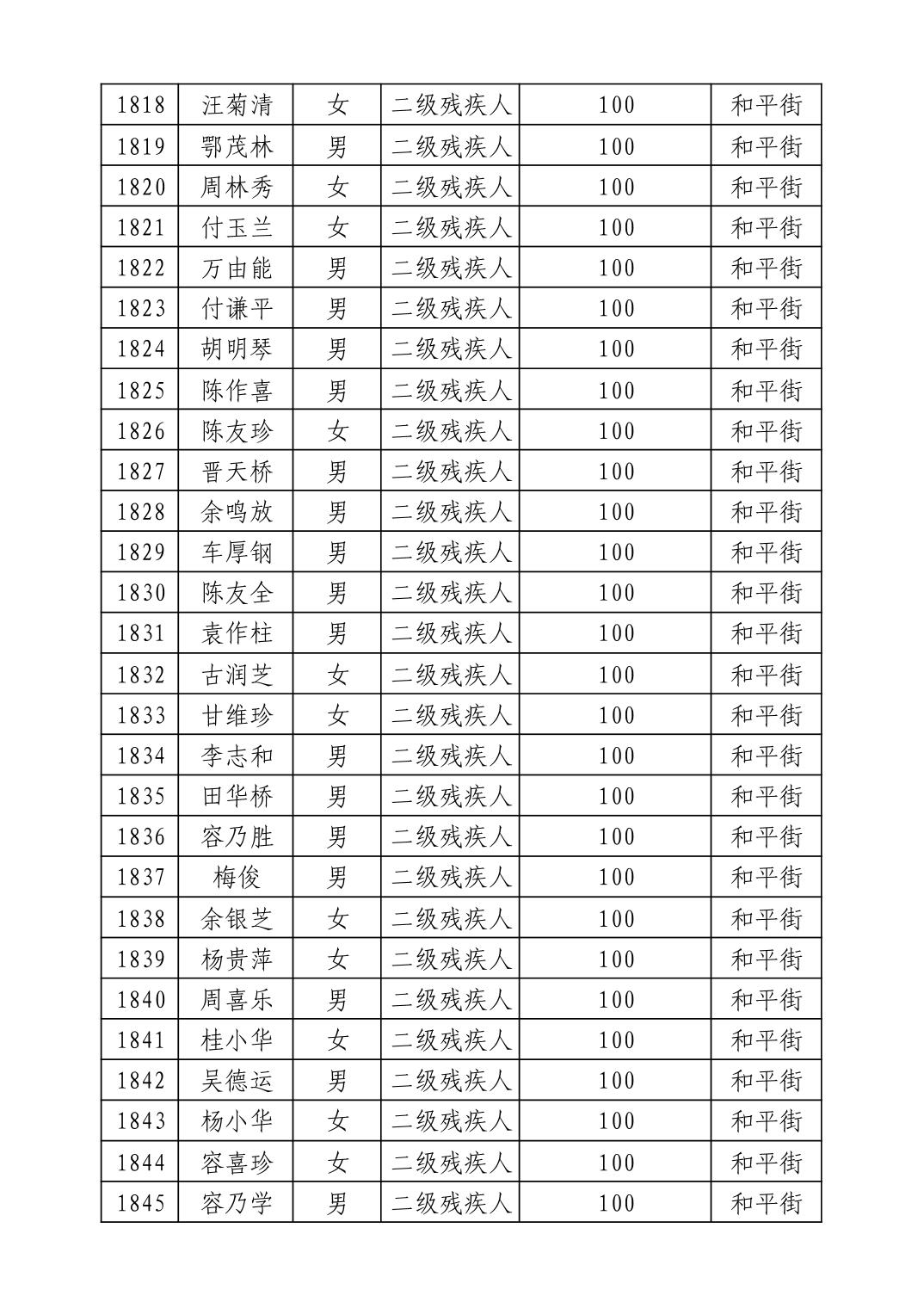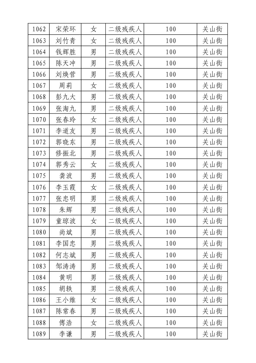 名 称:2025年9月武汉市洪山区重度残疾人护理补贴发放表