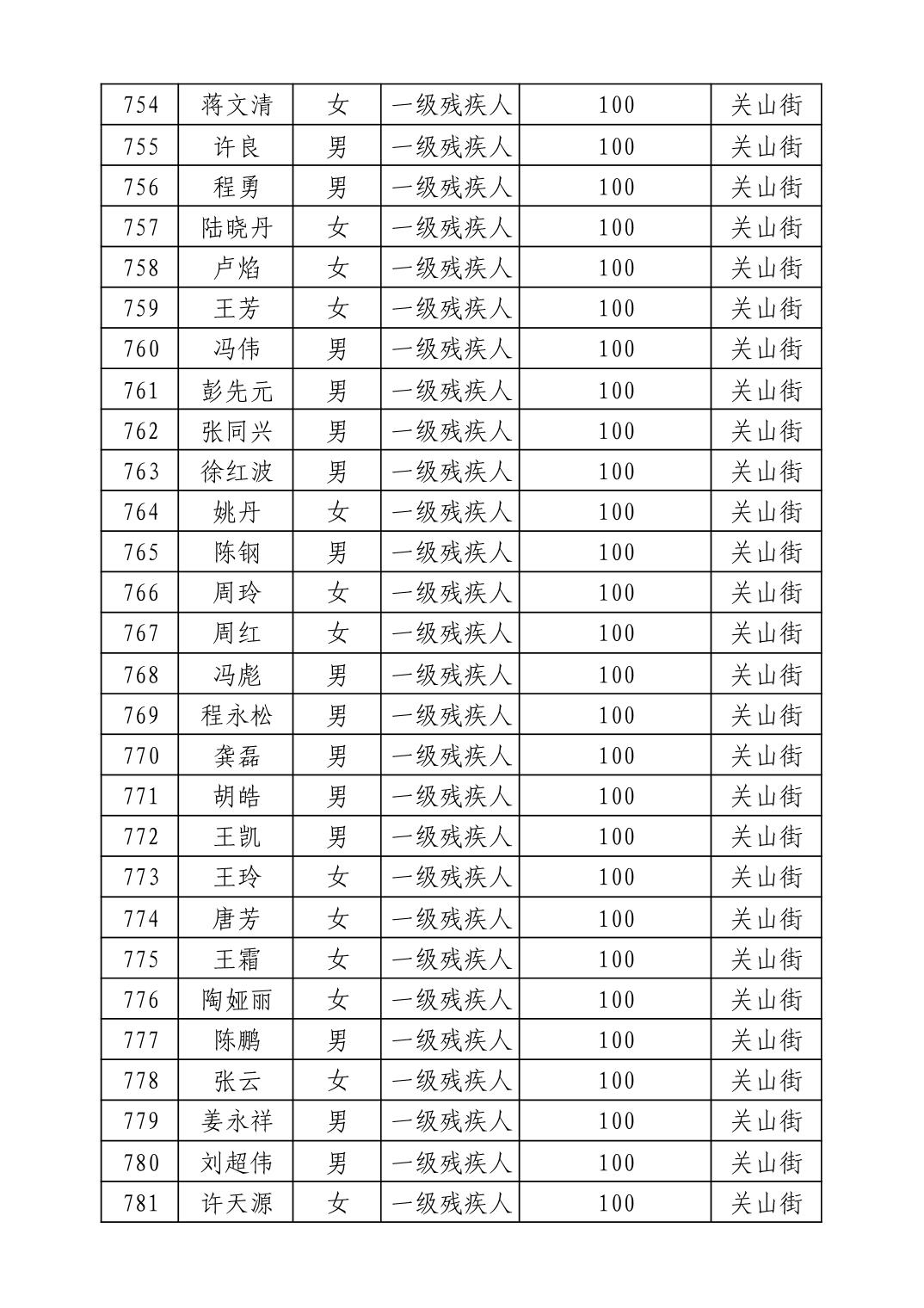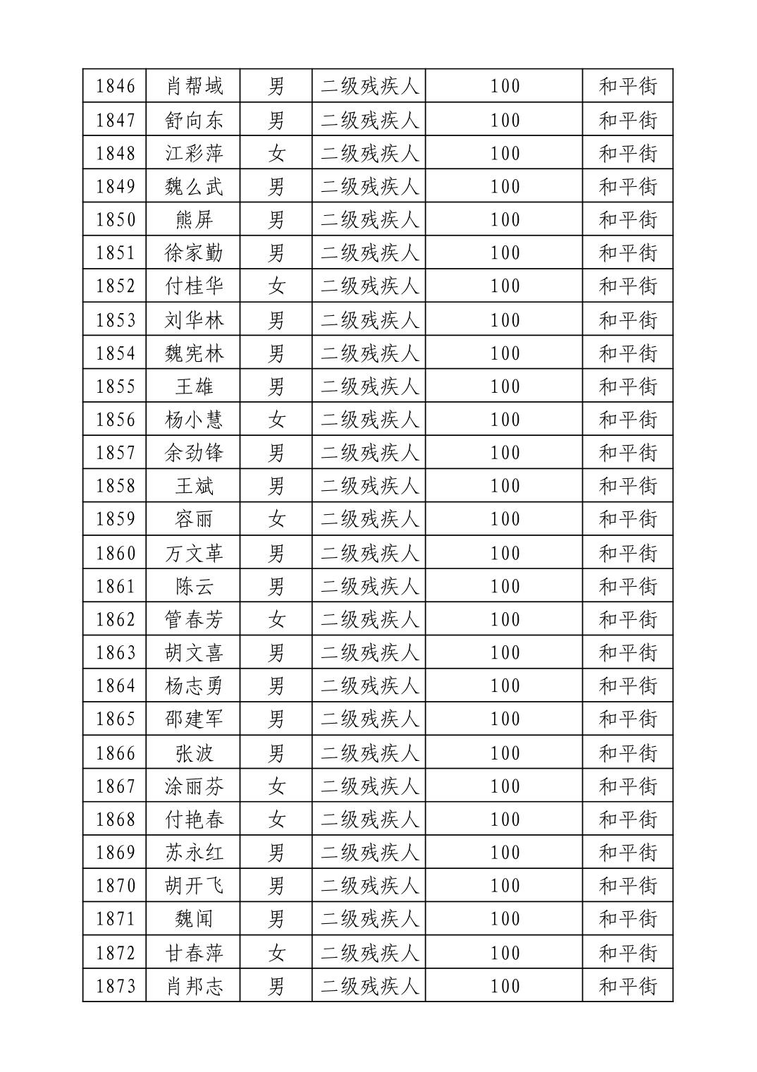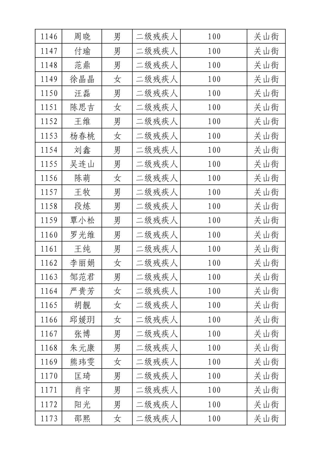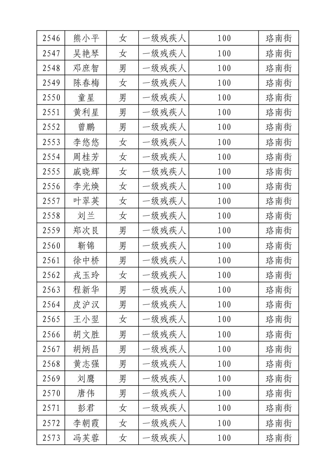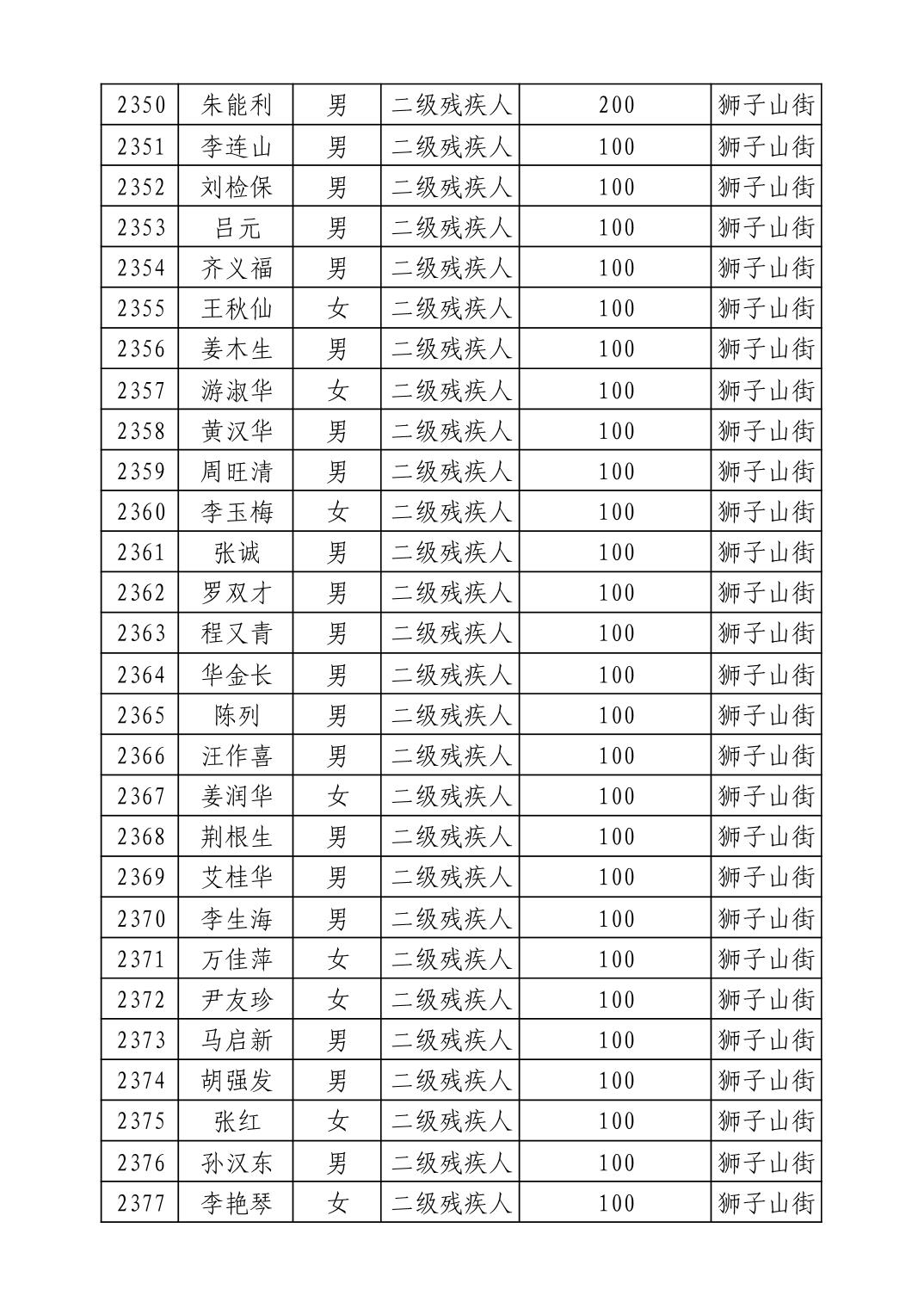 名 称:2025年9月武汉市洪山区重度残疾人护理补贴发放表