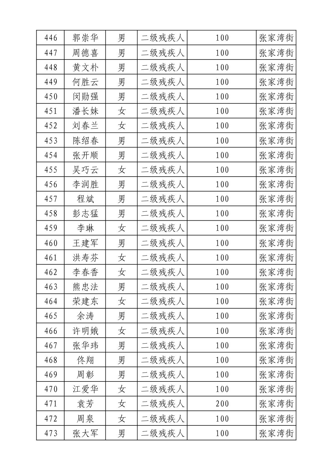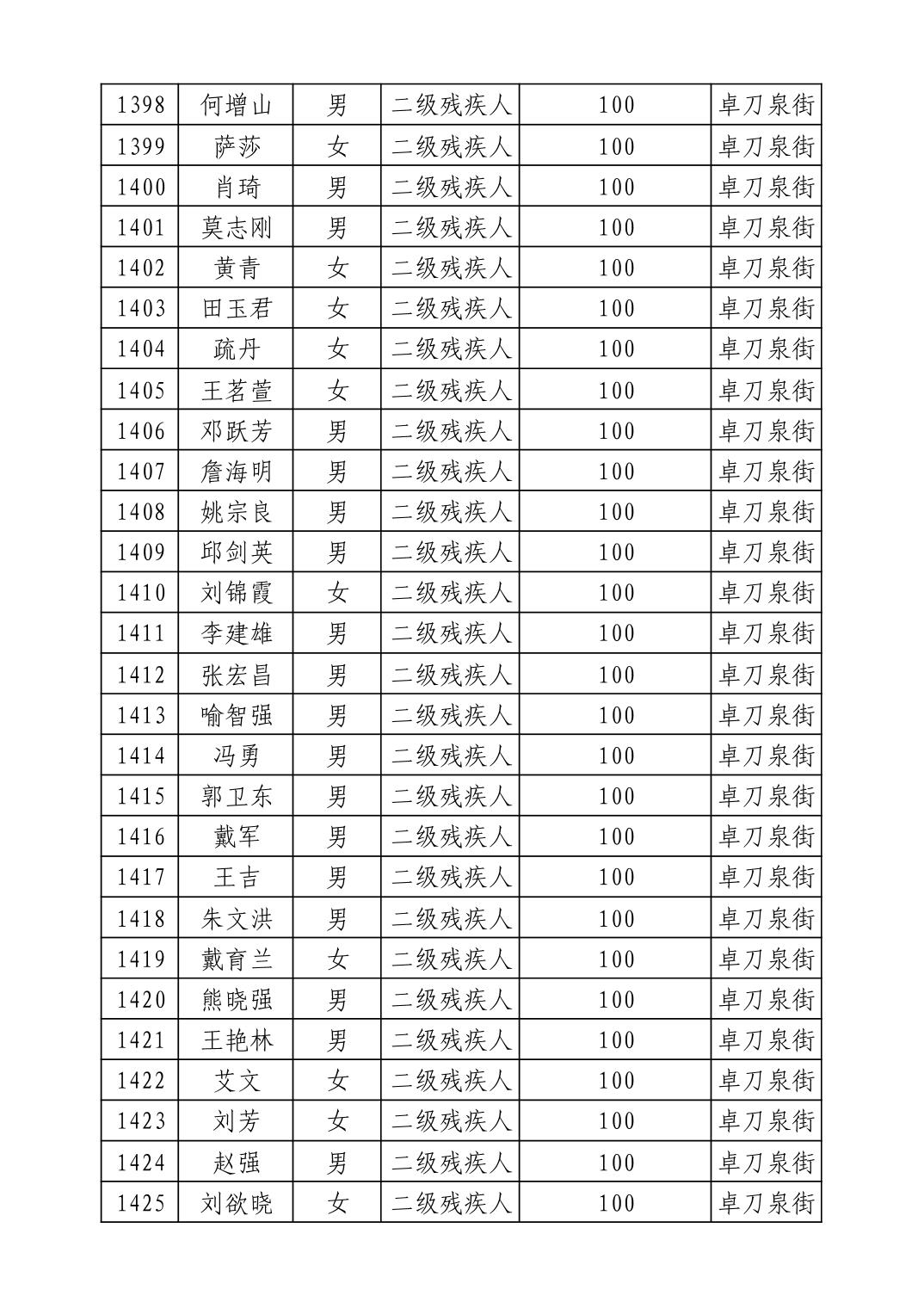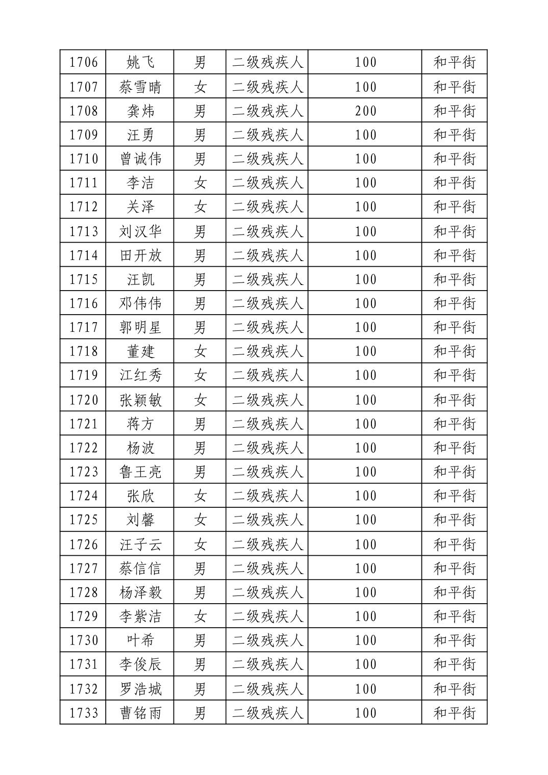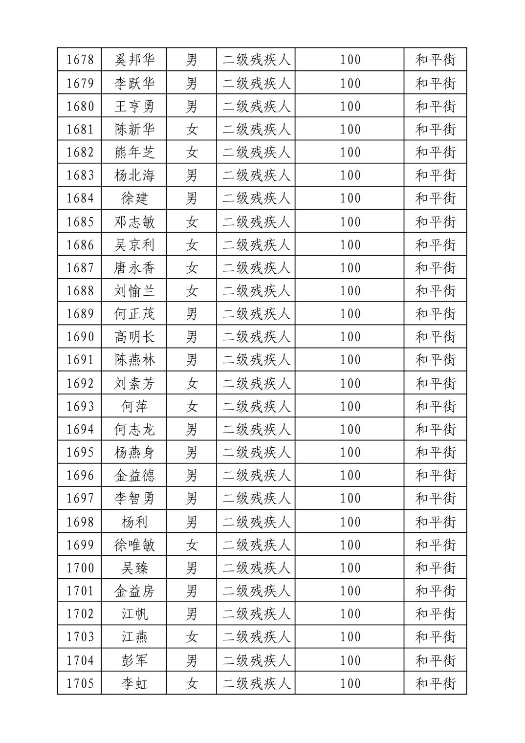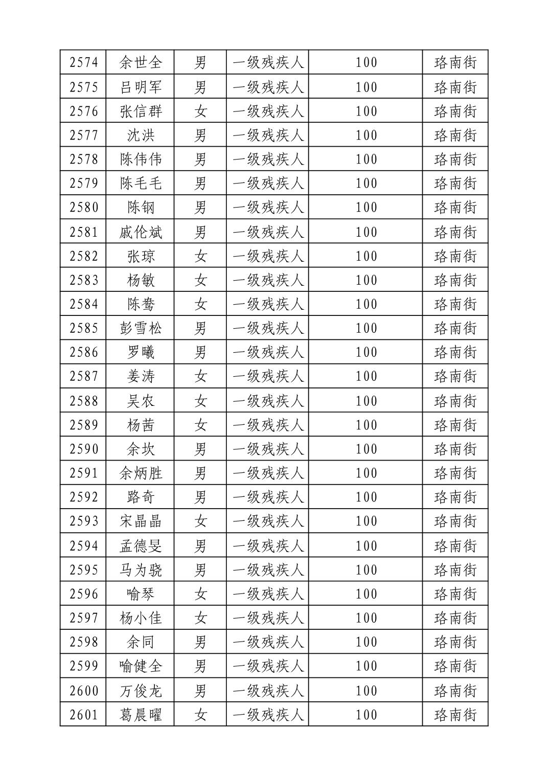 名 称:2025年9月武汉市洪山区重度残疾人护理补贴发放表