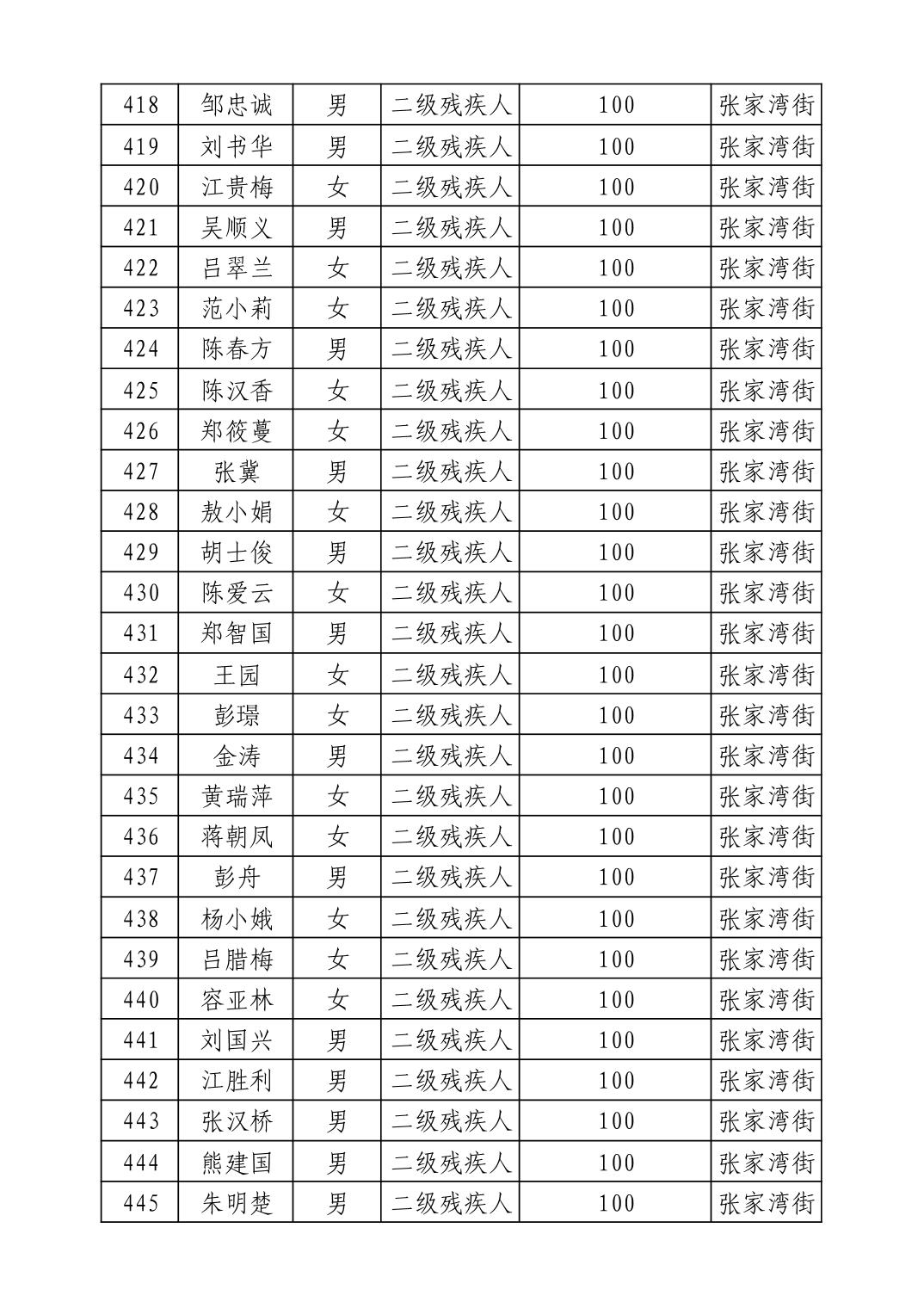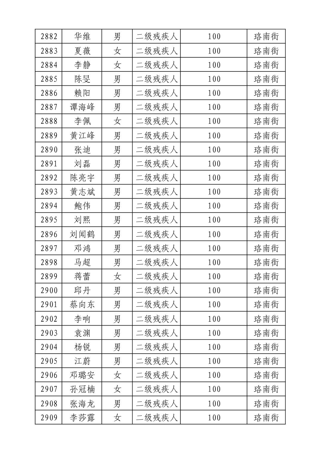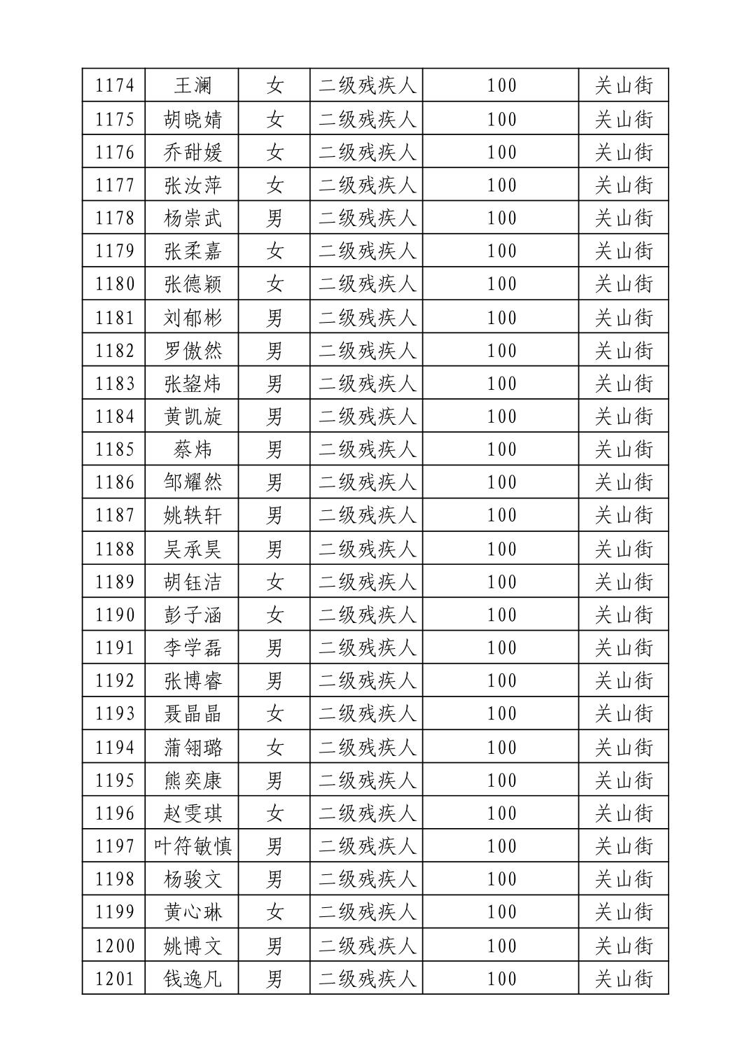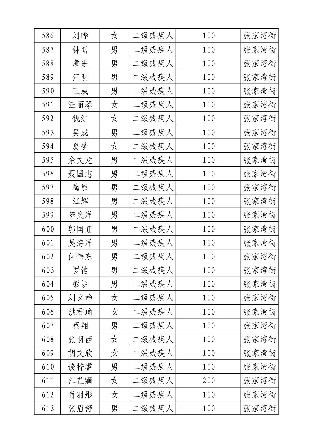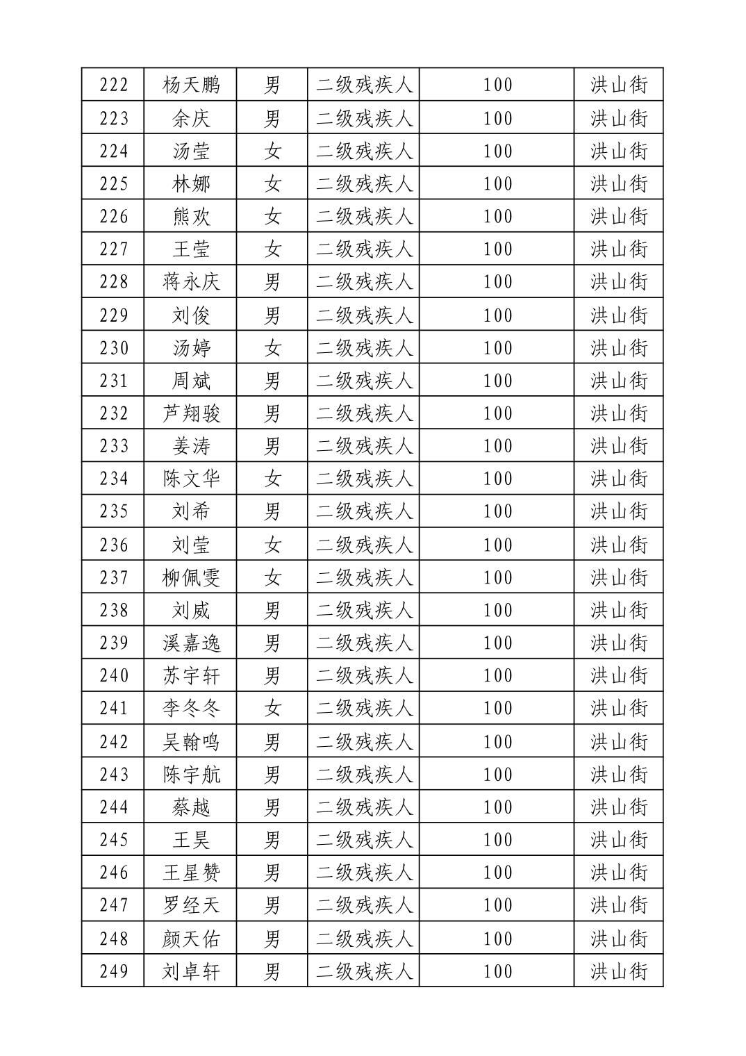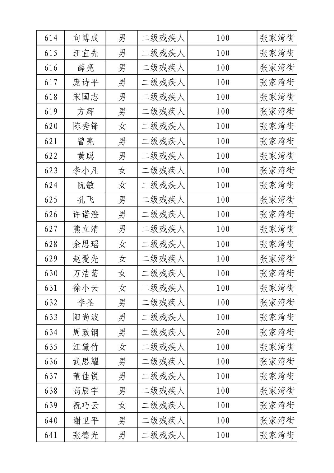 名 称:2025年9月武汉市洪山区重度残疾人护理补贴发放表