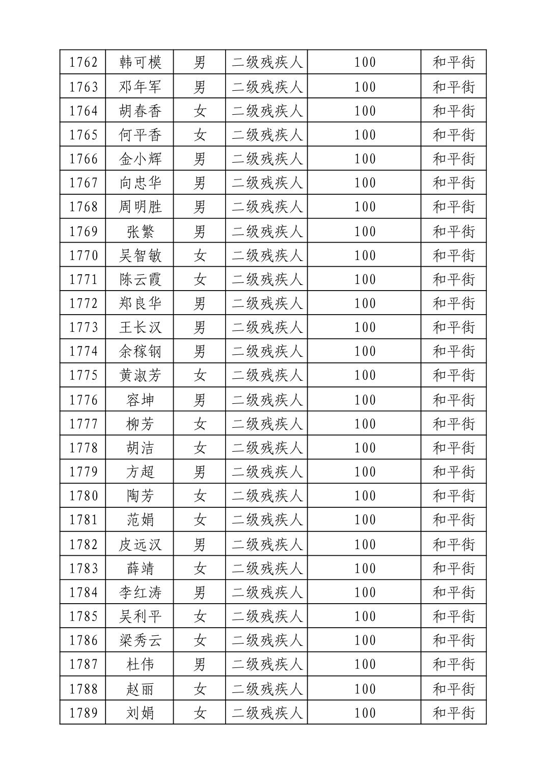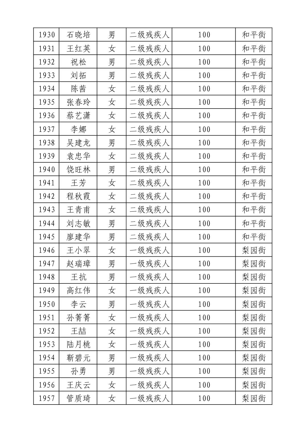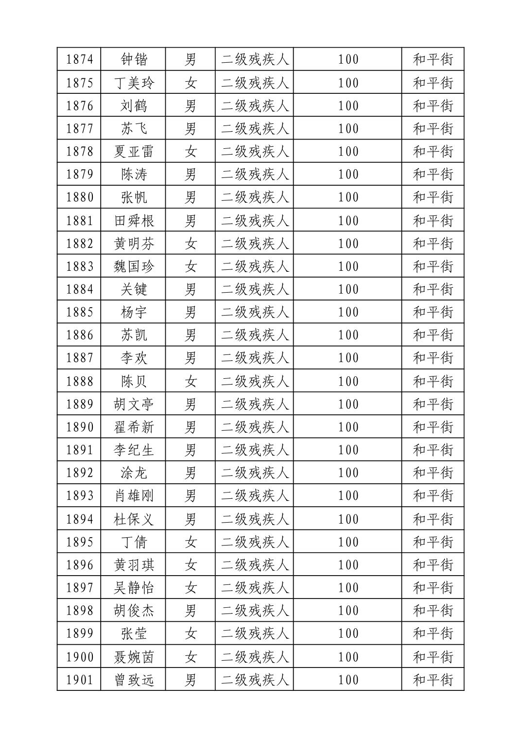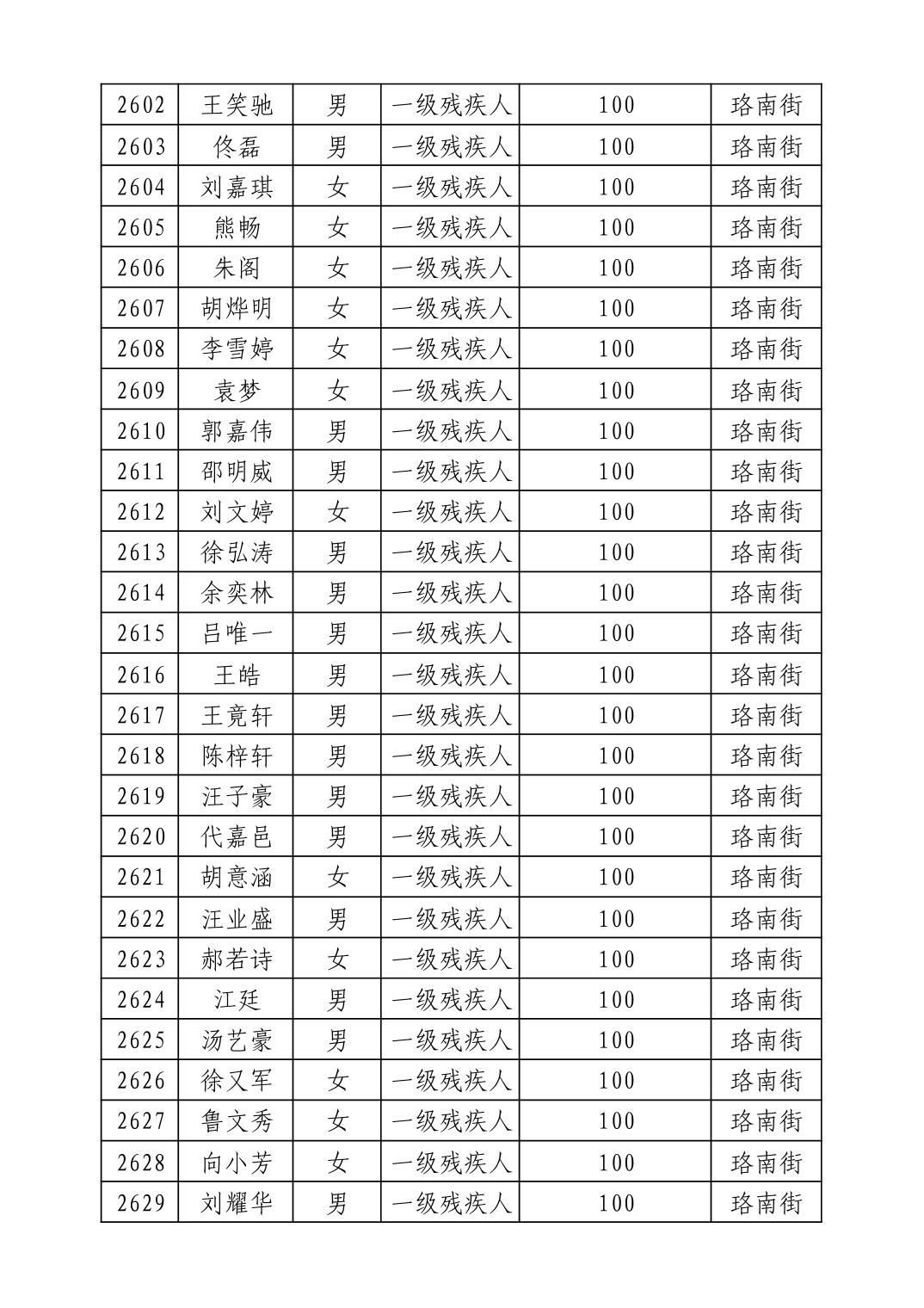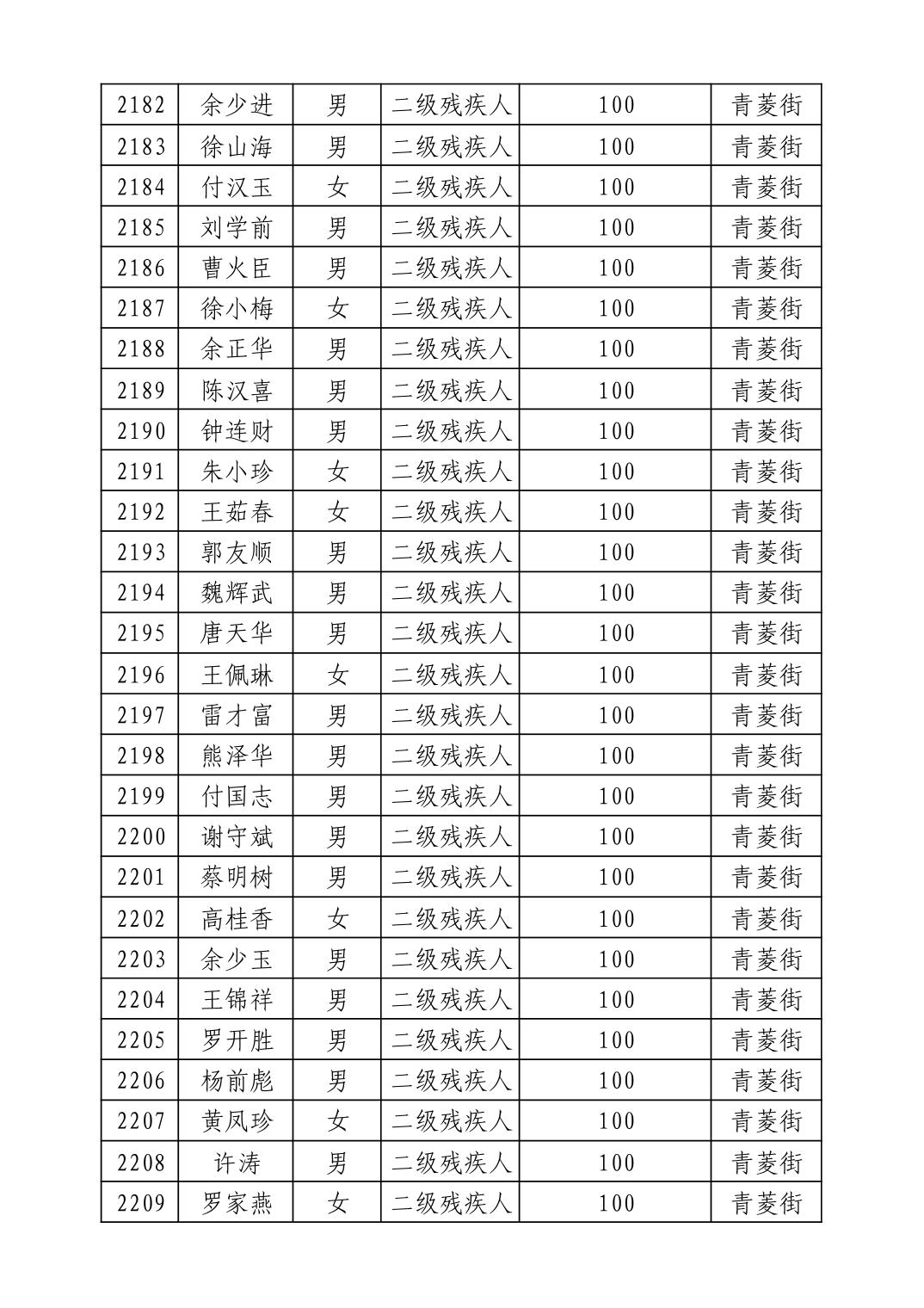 名 称:2025年9月武汉市洪山区重度残疾人护理补贴发放表