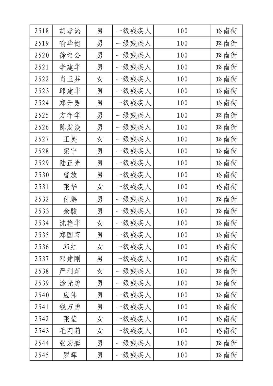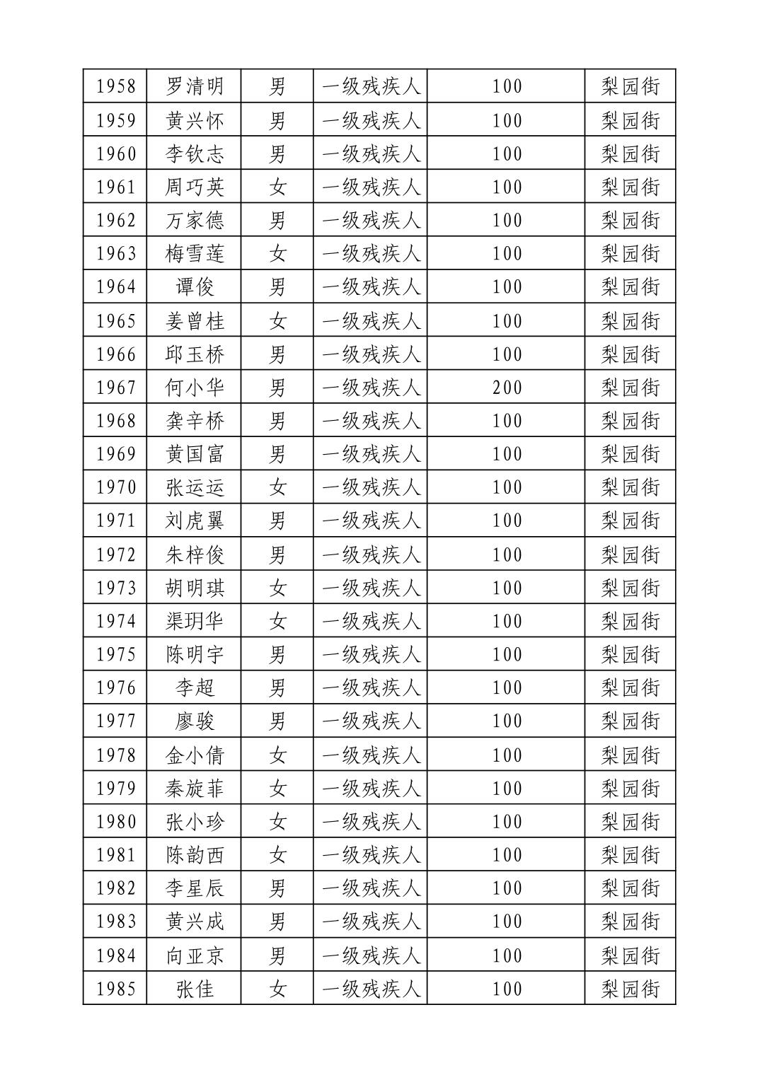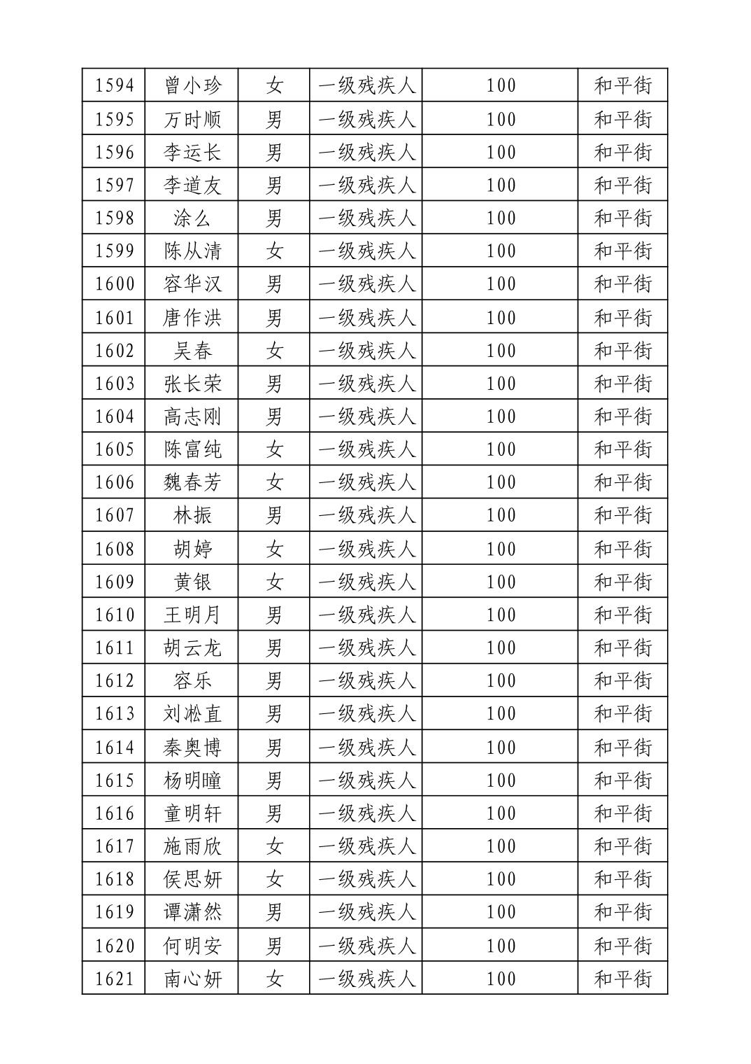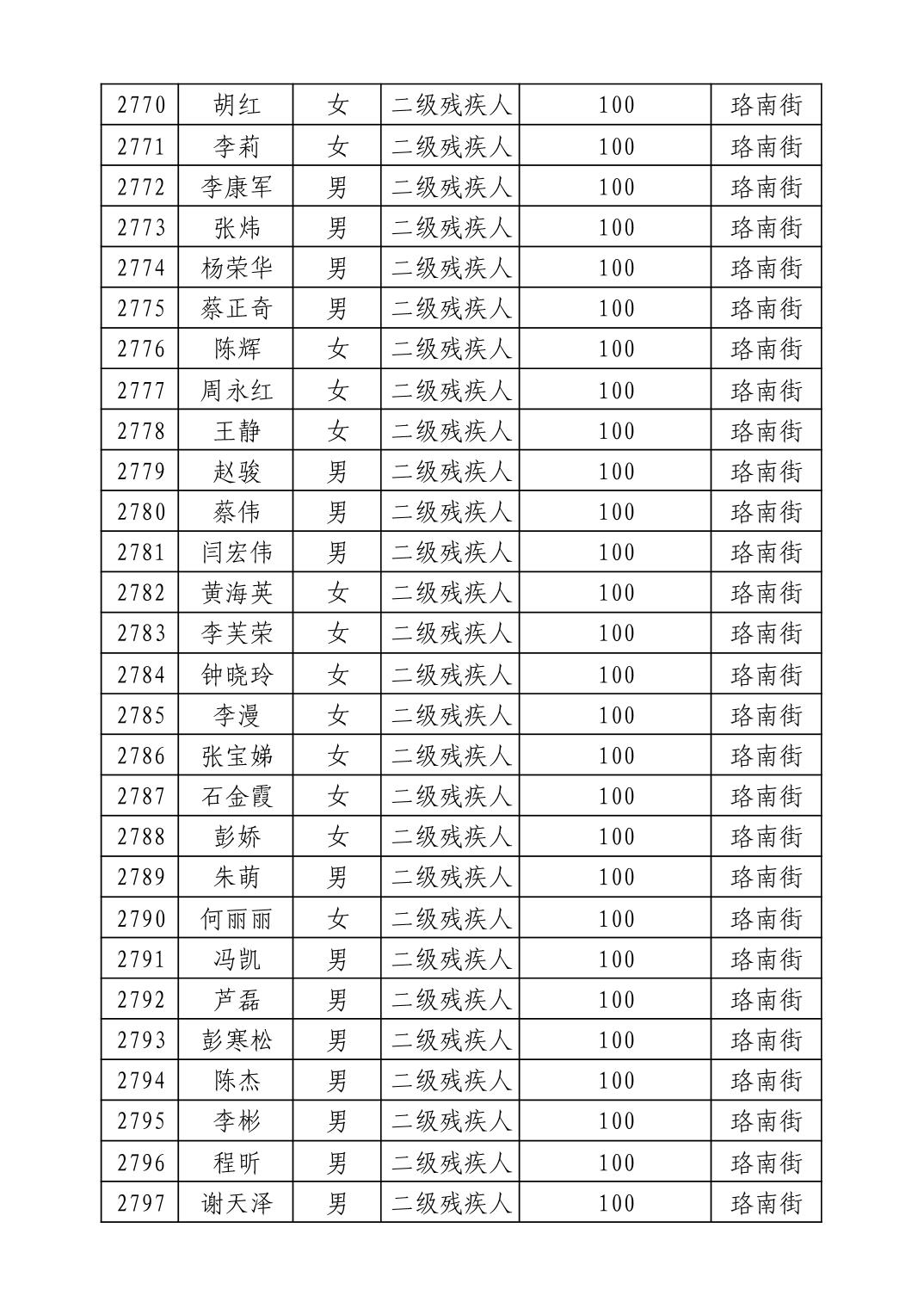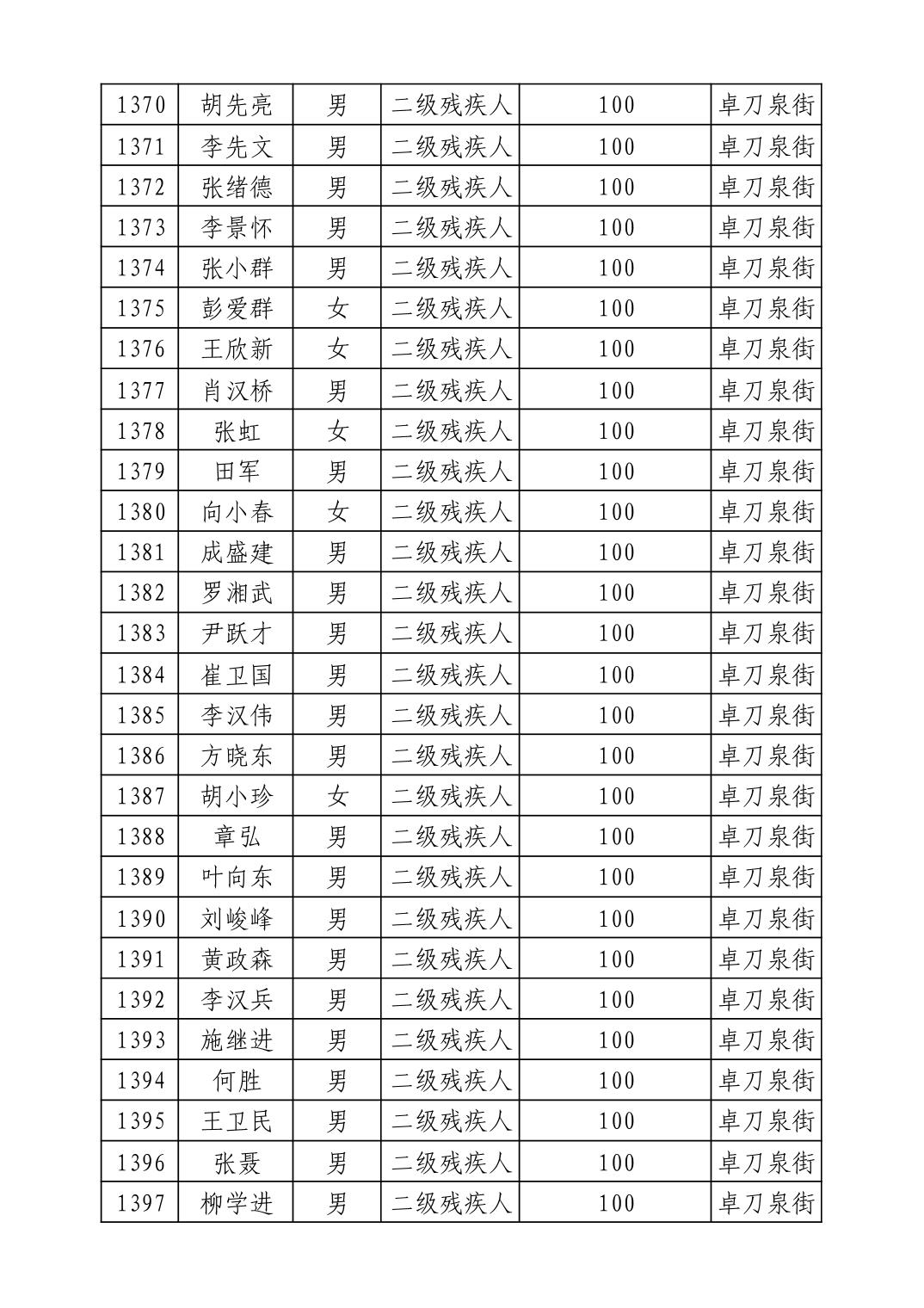 名 称:2025年9月武汉市洪山区重度残疾人护理补贴发放表