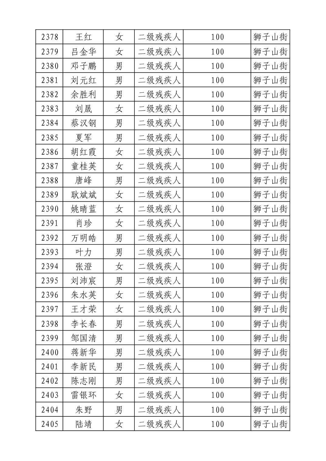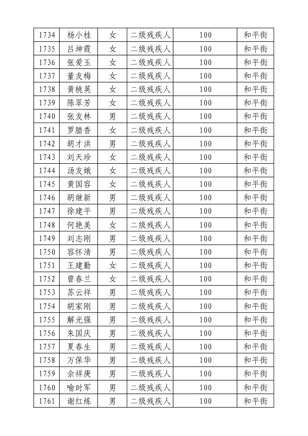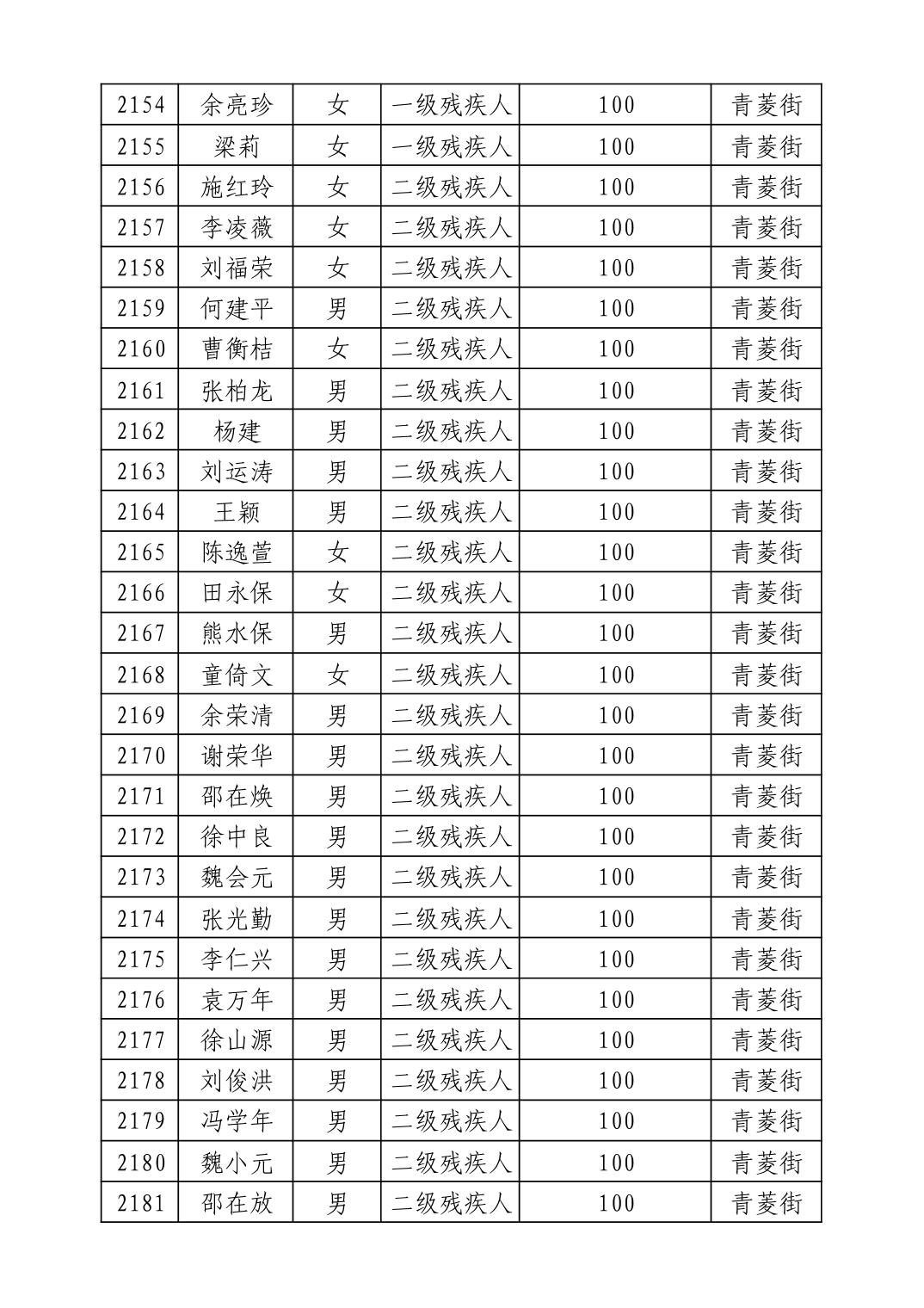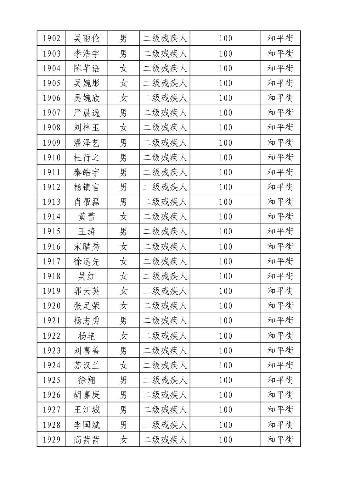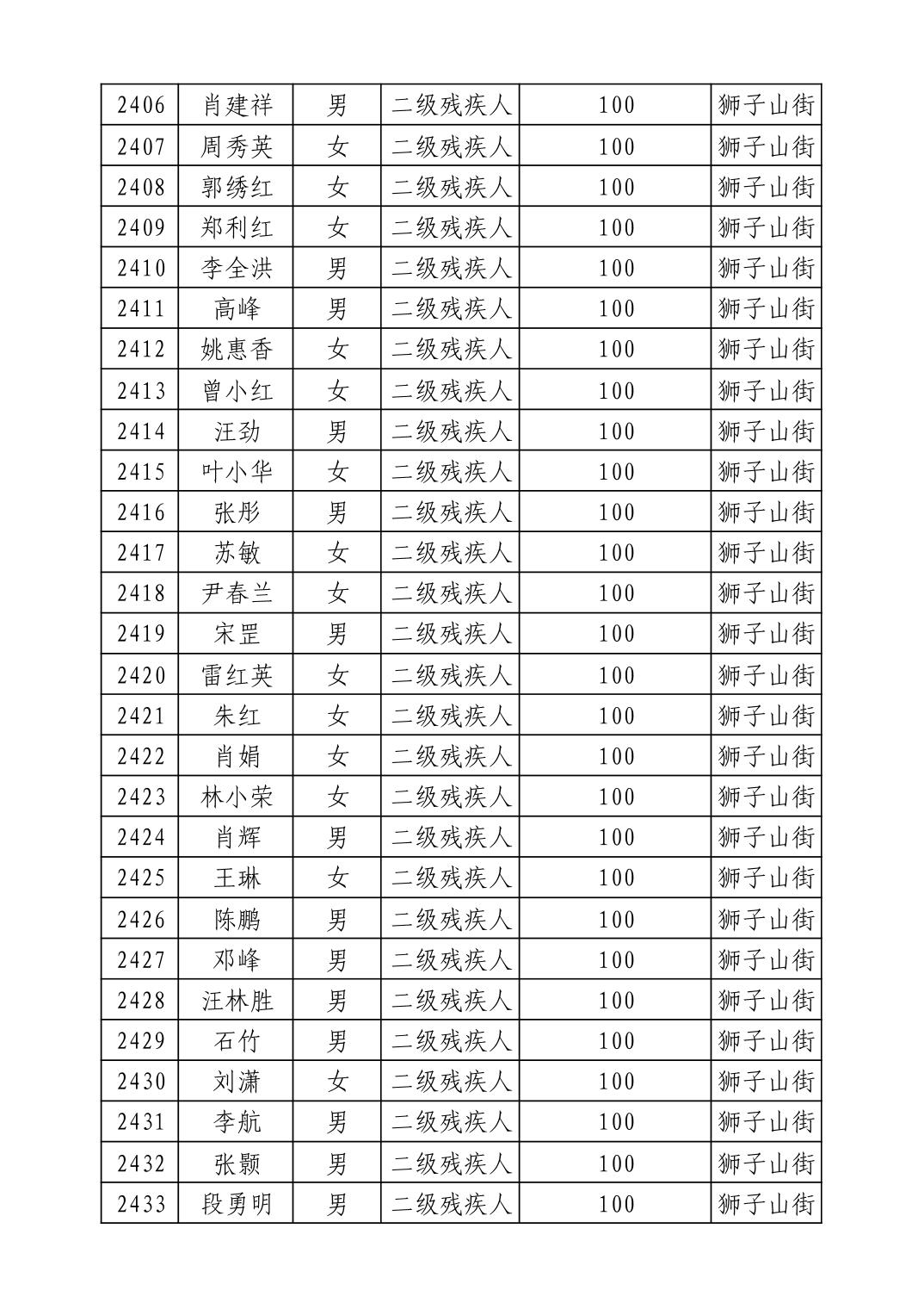 名 称:2025年9月武汉市洪山区重度残疾人护理补贴发放表