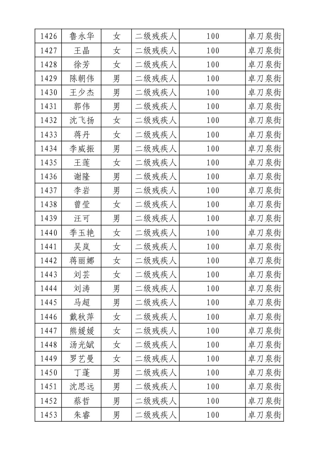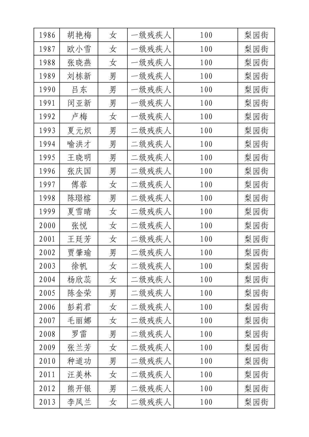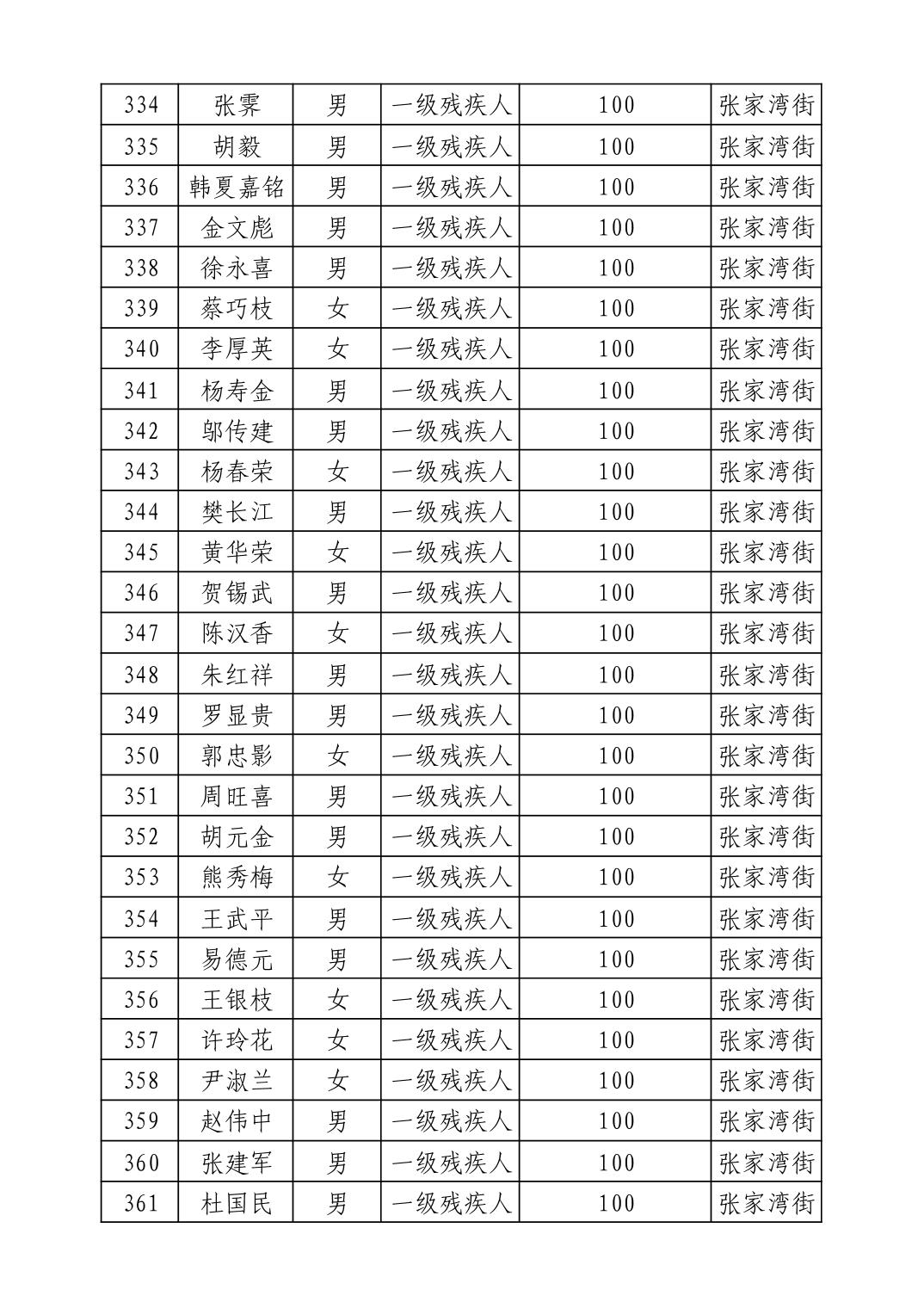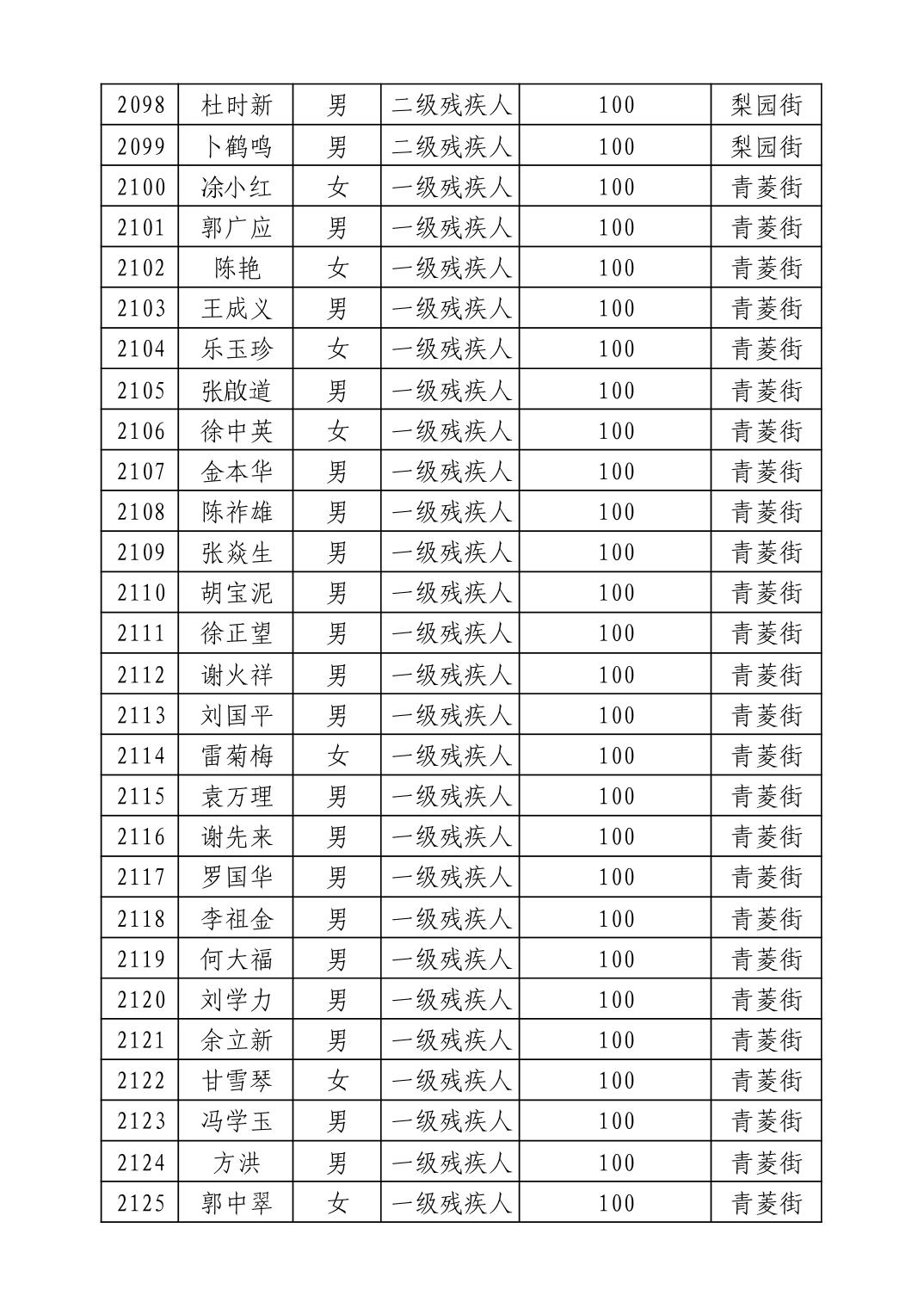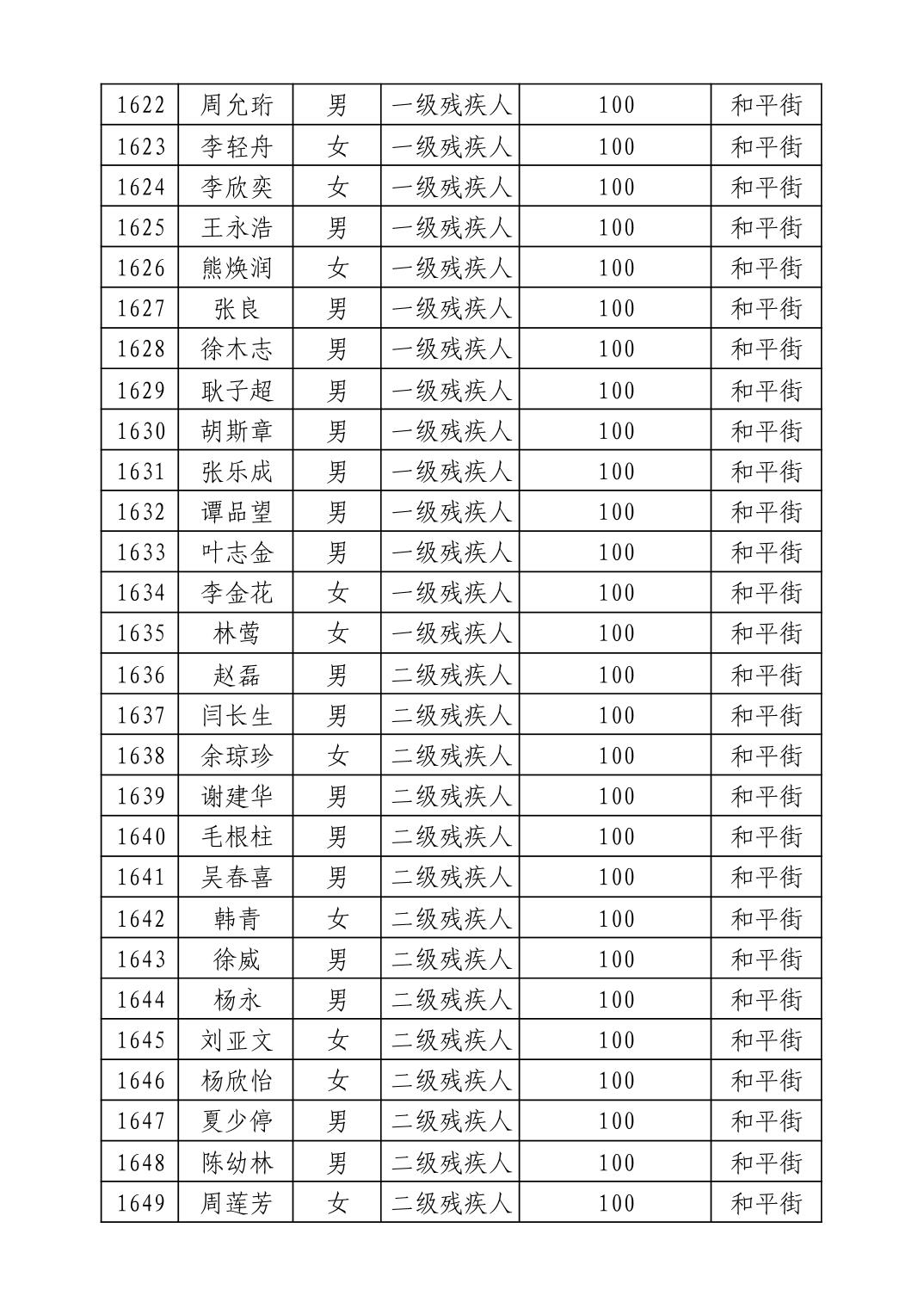 名 称:2025年9月武汉市洪山区重度残疾人护理补贴发放表