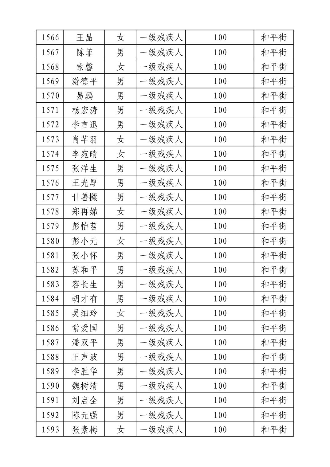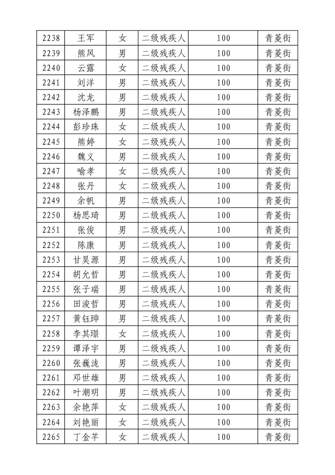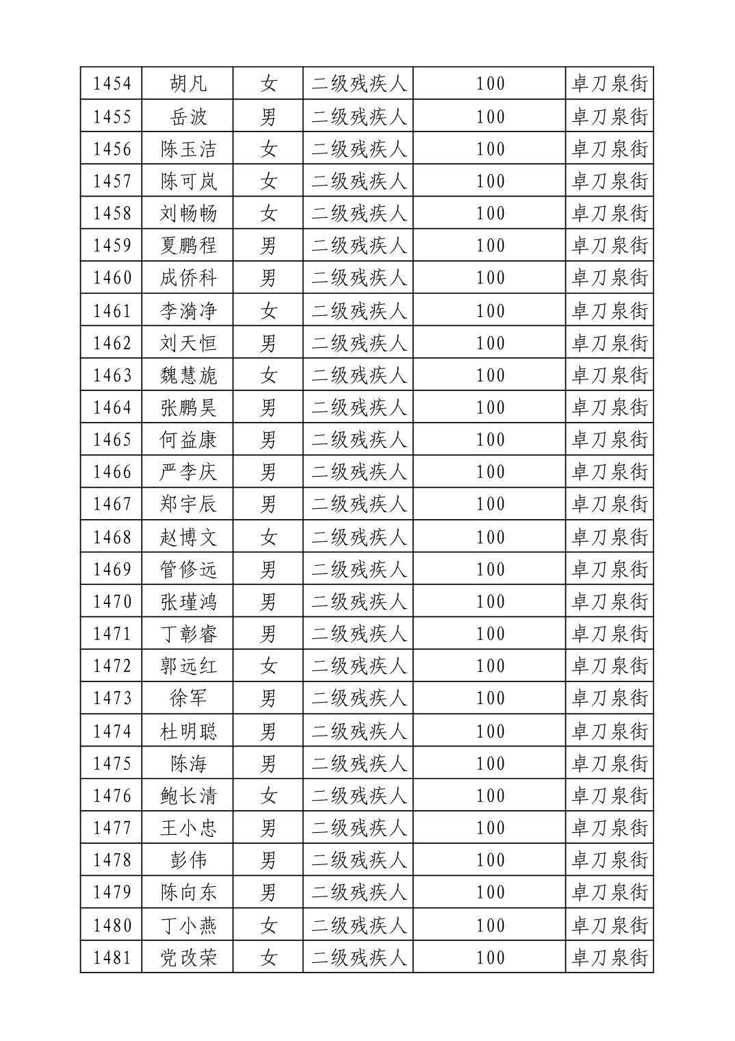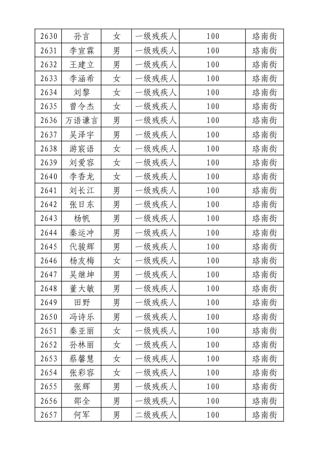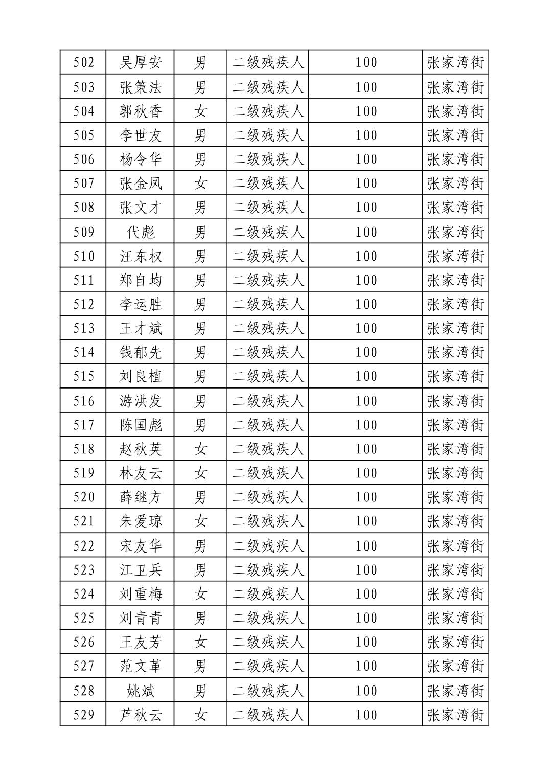 名 称:2025年9月武汉市洪山区重度残疾人护理补贴发放表
