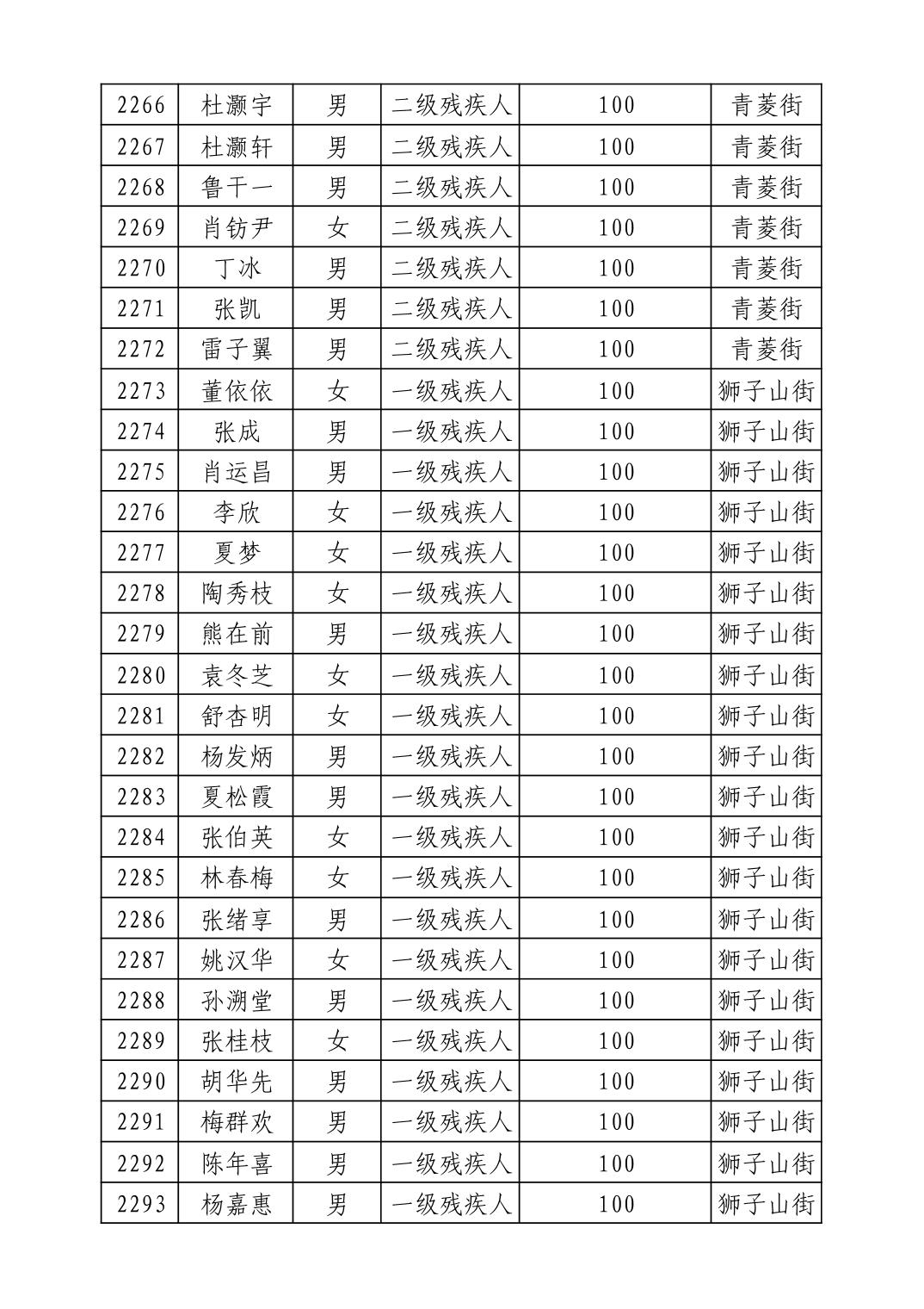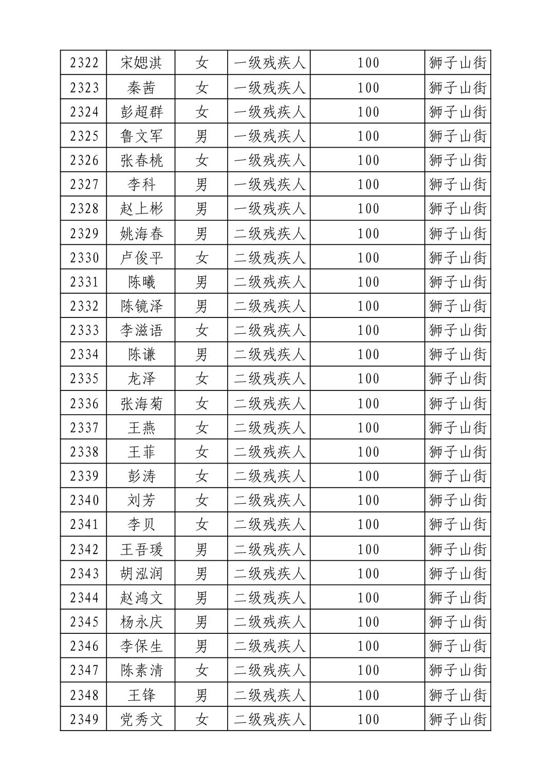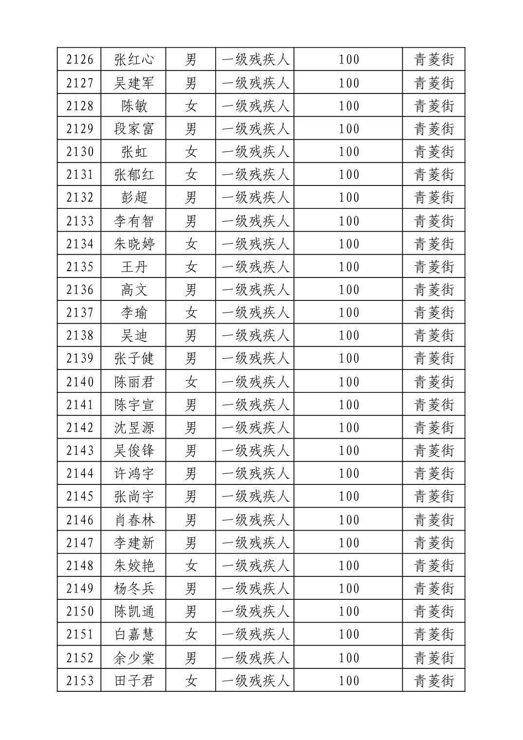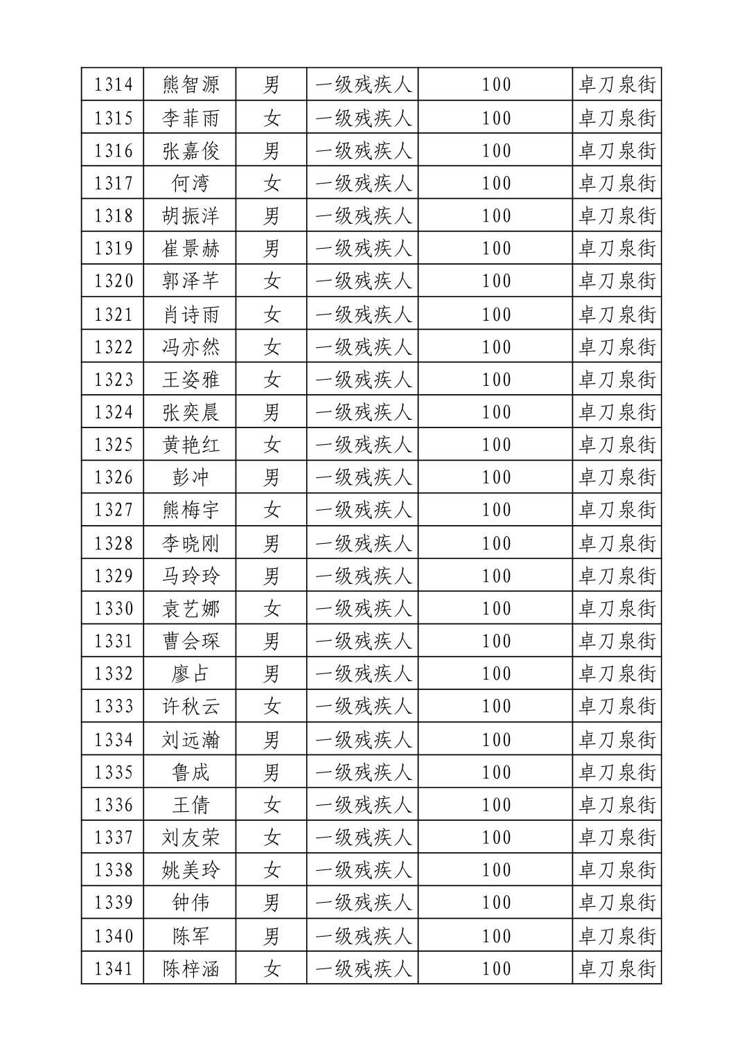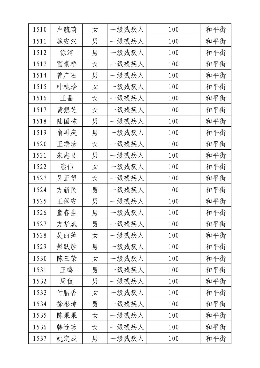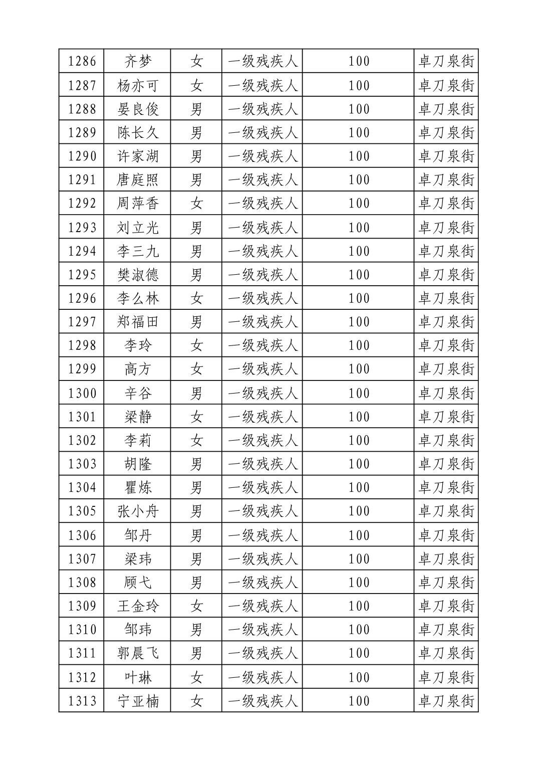 名 称:2025年9月武汉市洪山区重度残疾人护理补贴发放表