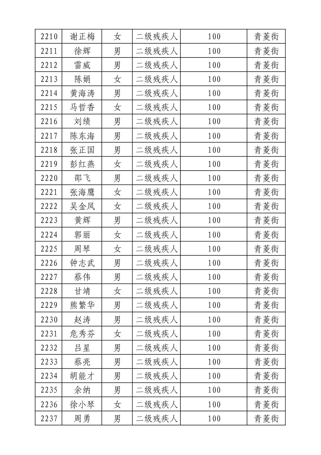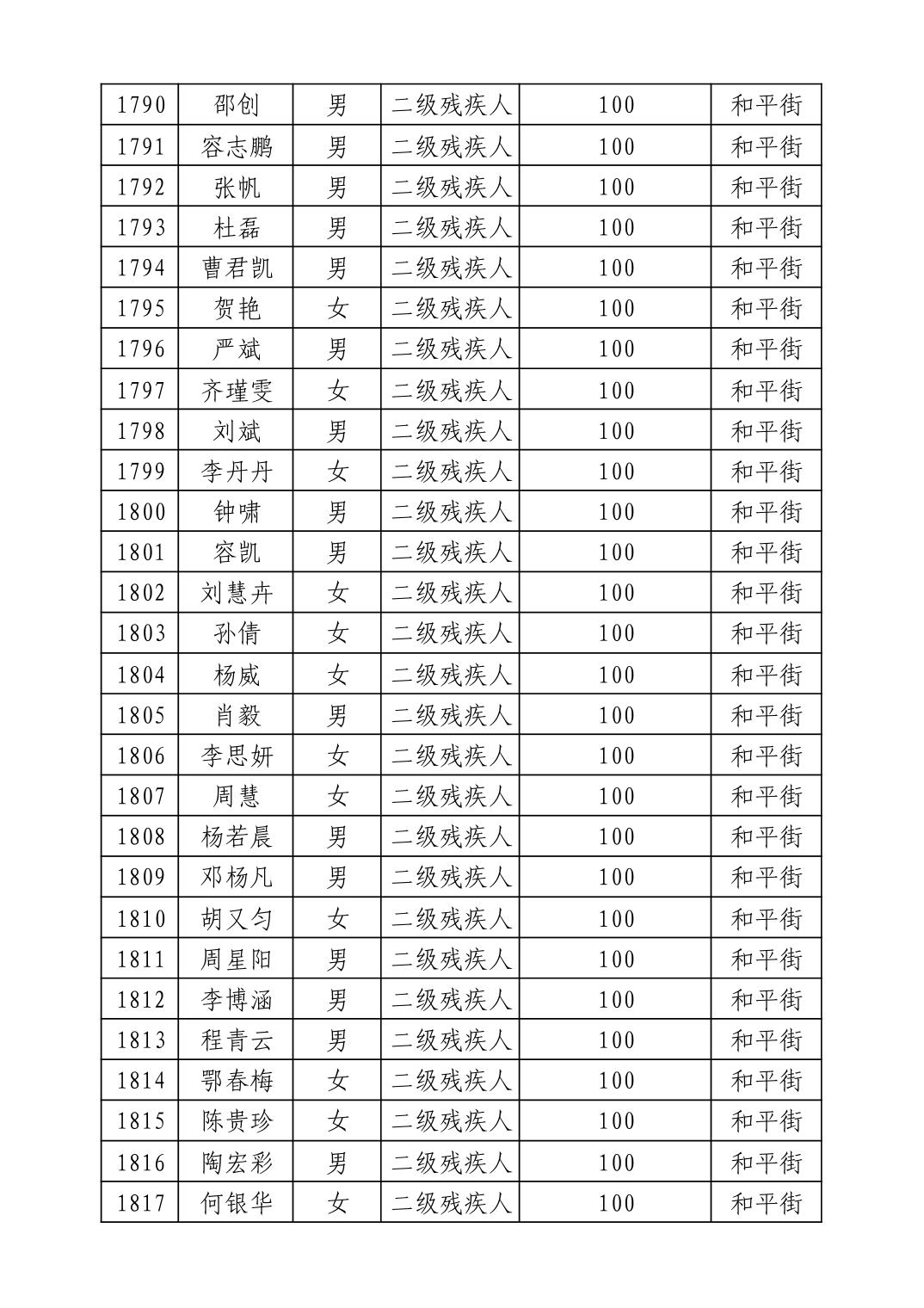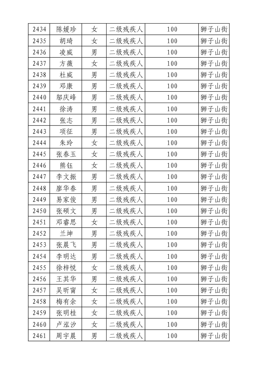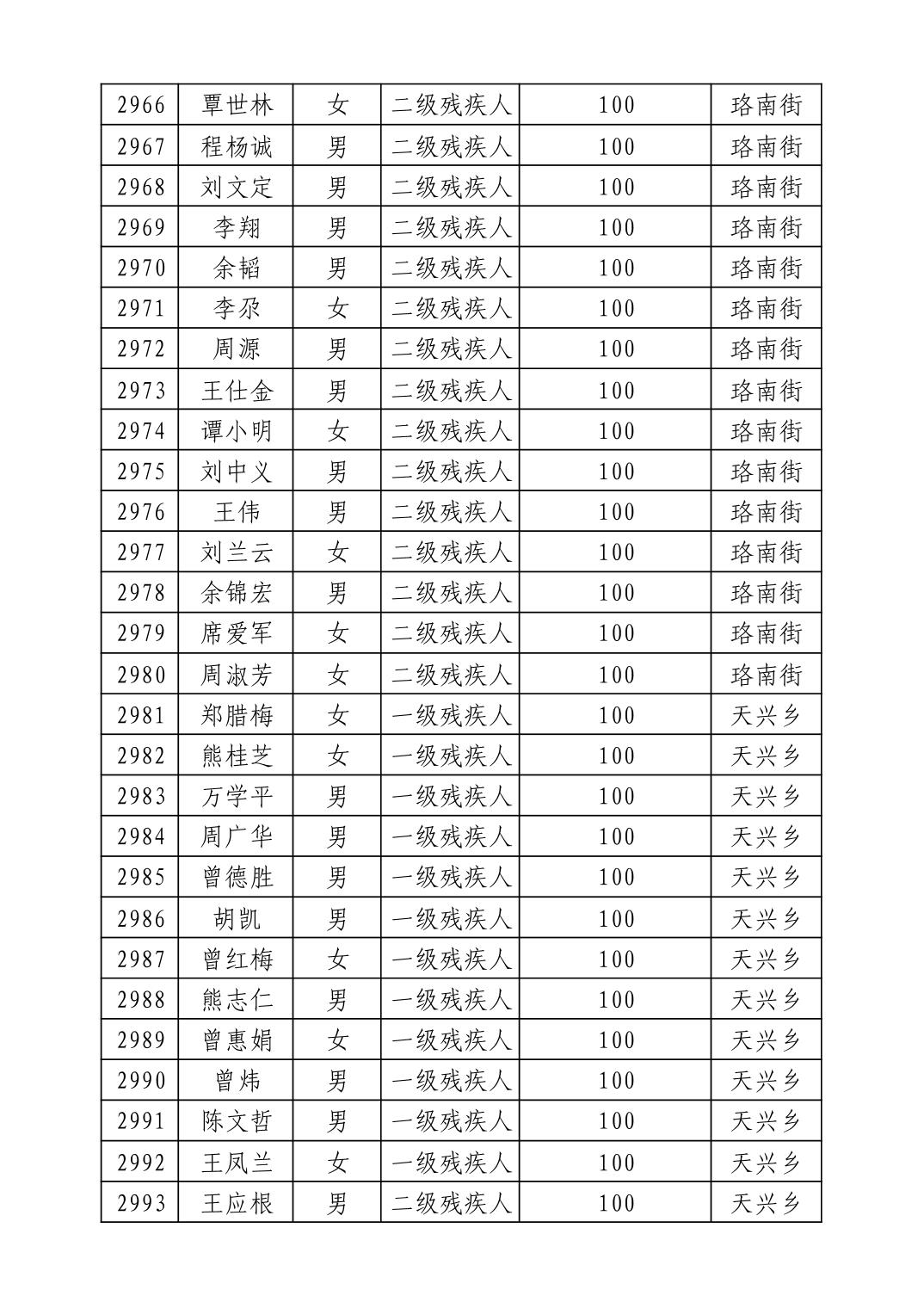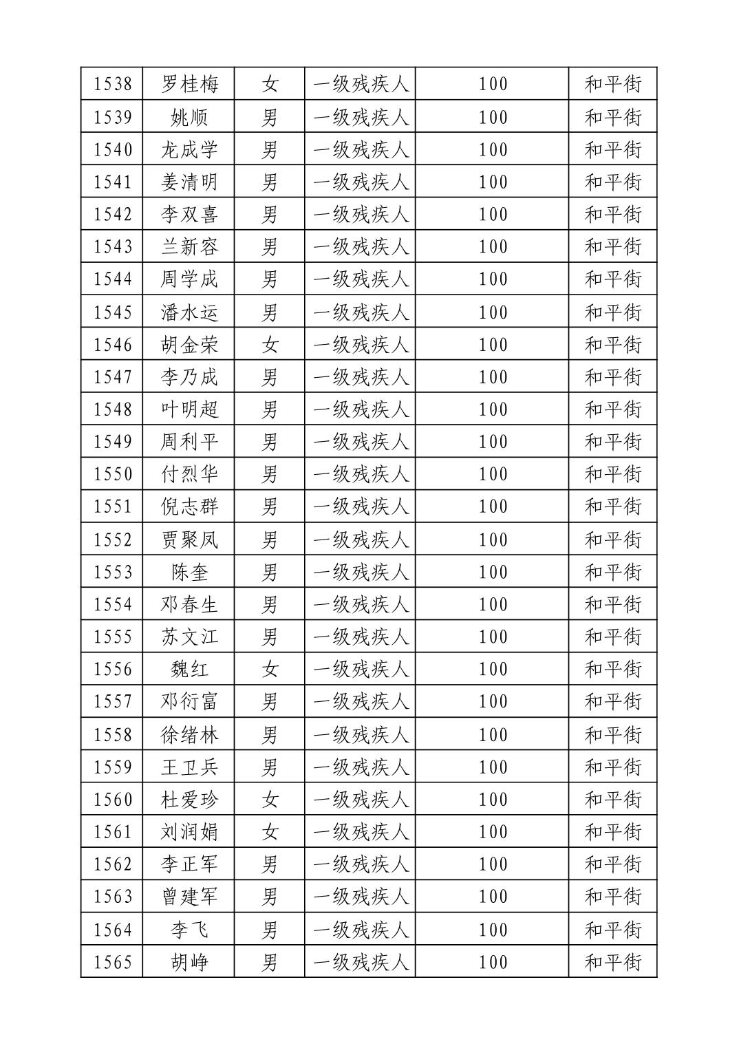名 称:2025年9月武汉市洪山区重度残疾人护理补贴发放表