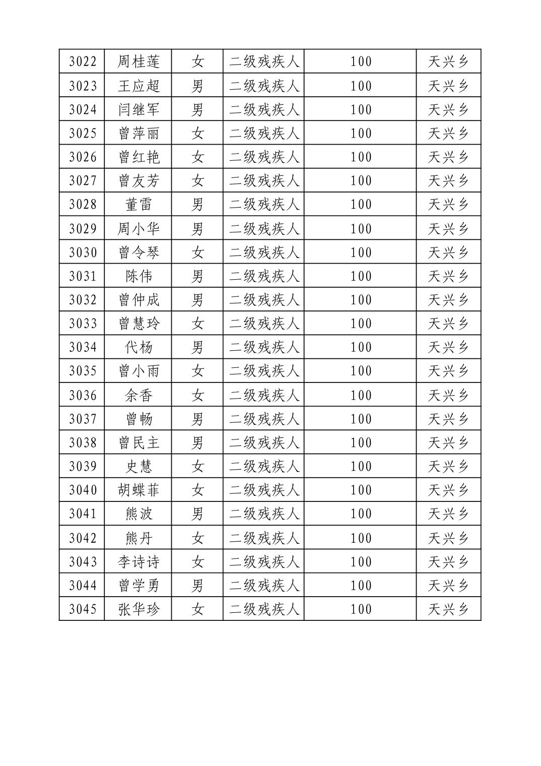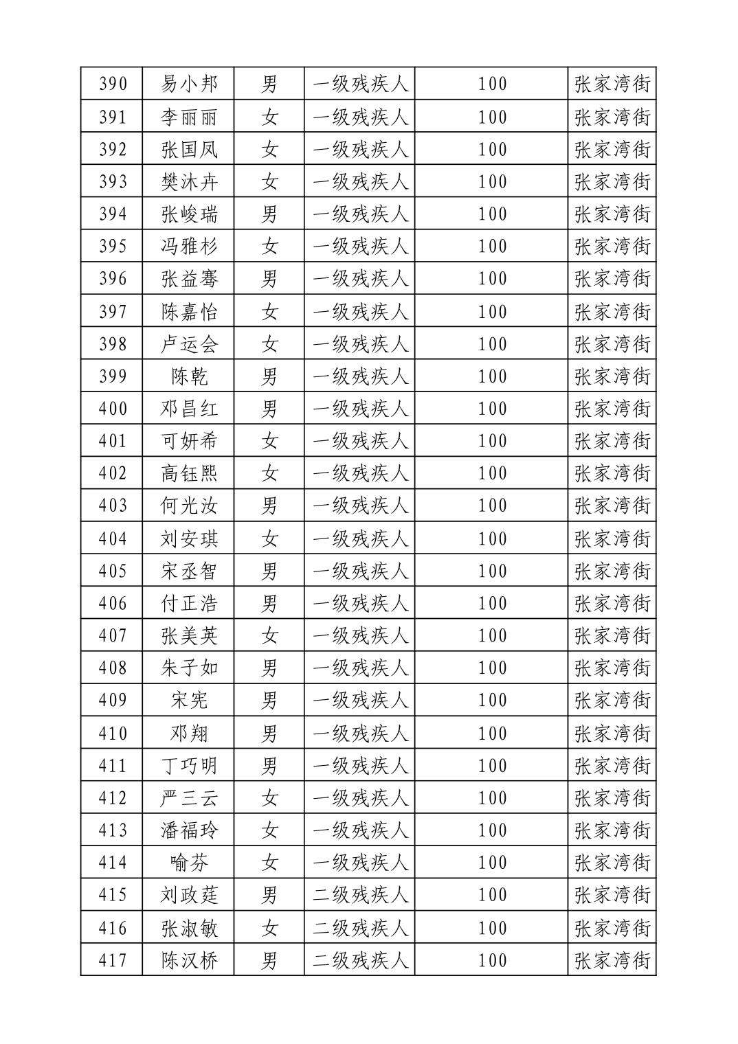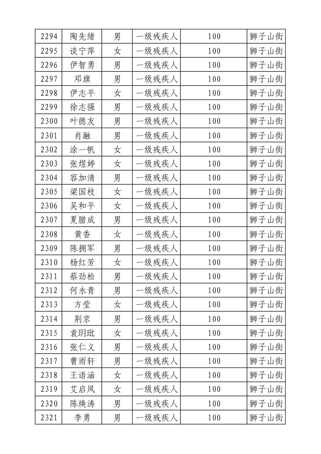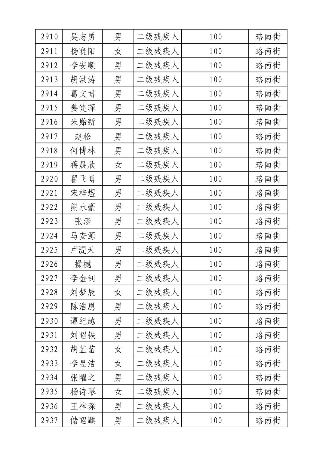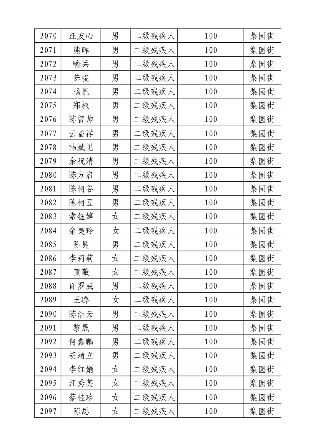 名 称:2025年9月武汉市洪山区重度残疾人护理补贴发放表