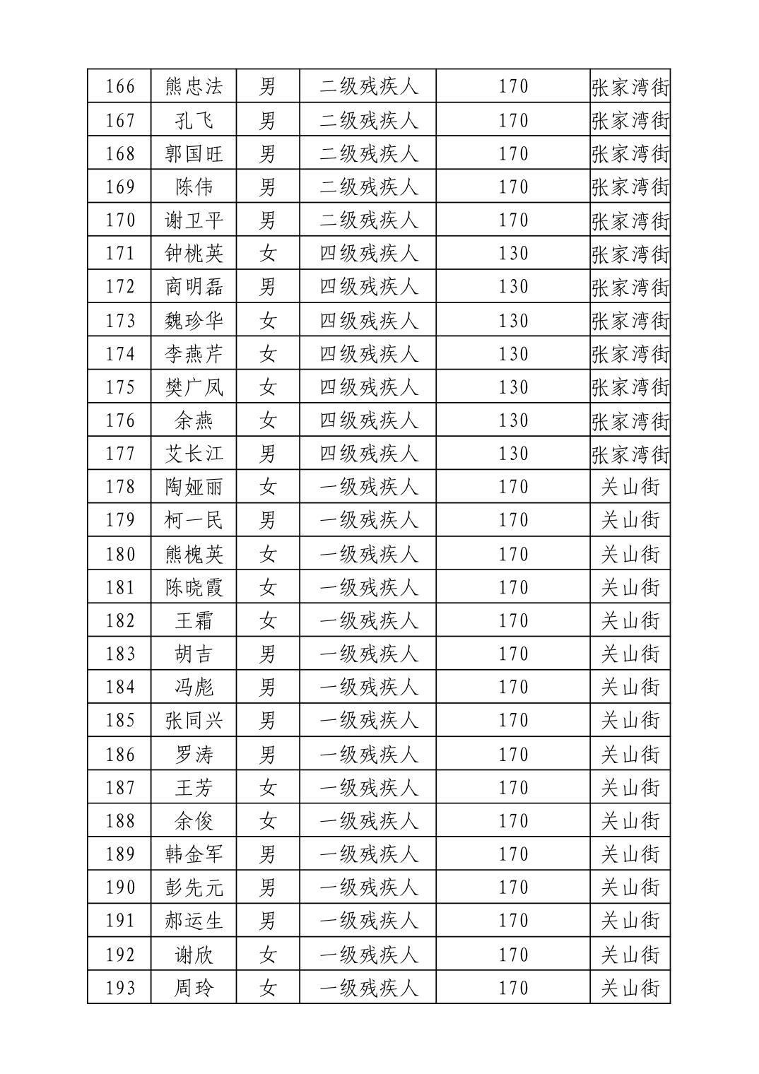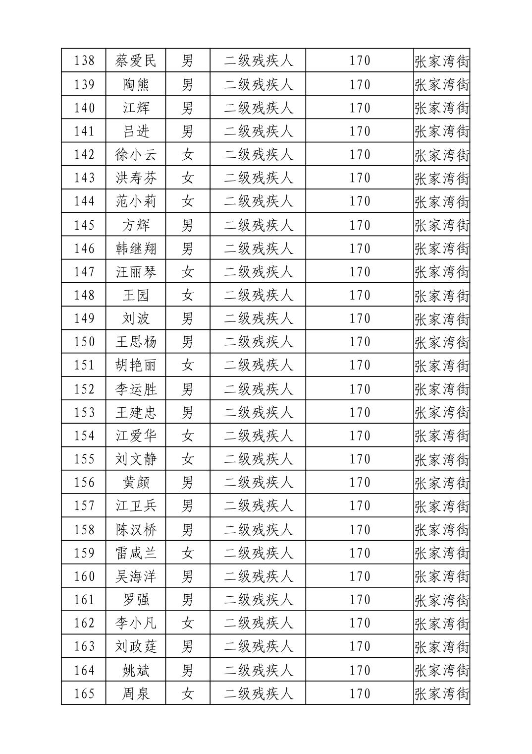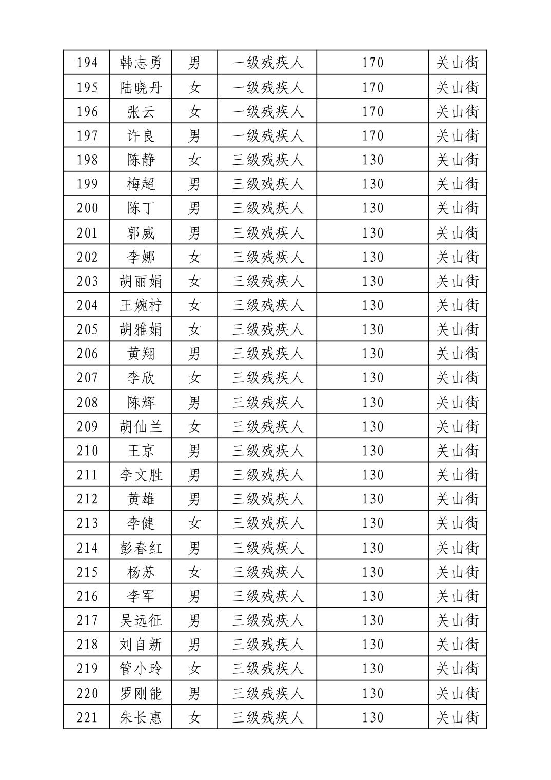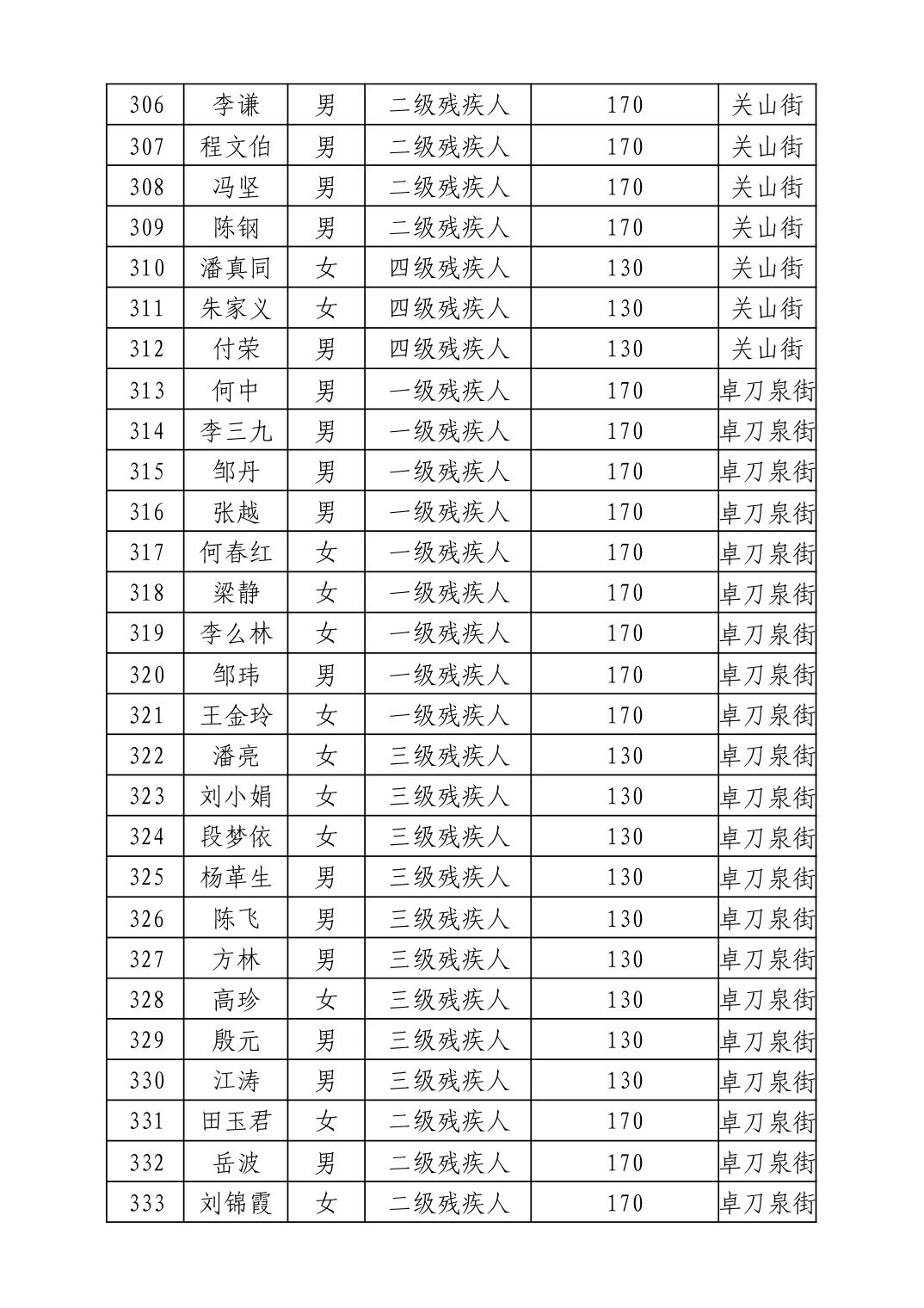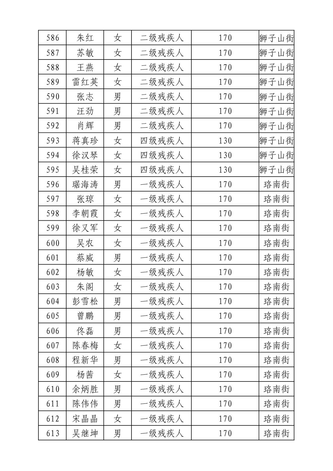 名 称:2025年11月武汉市洪山区困难残疾人生活补贴发放表