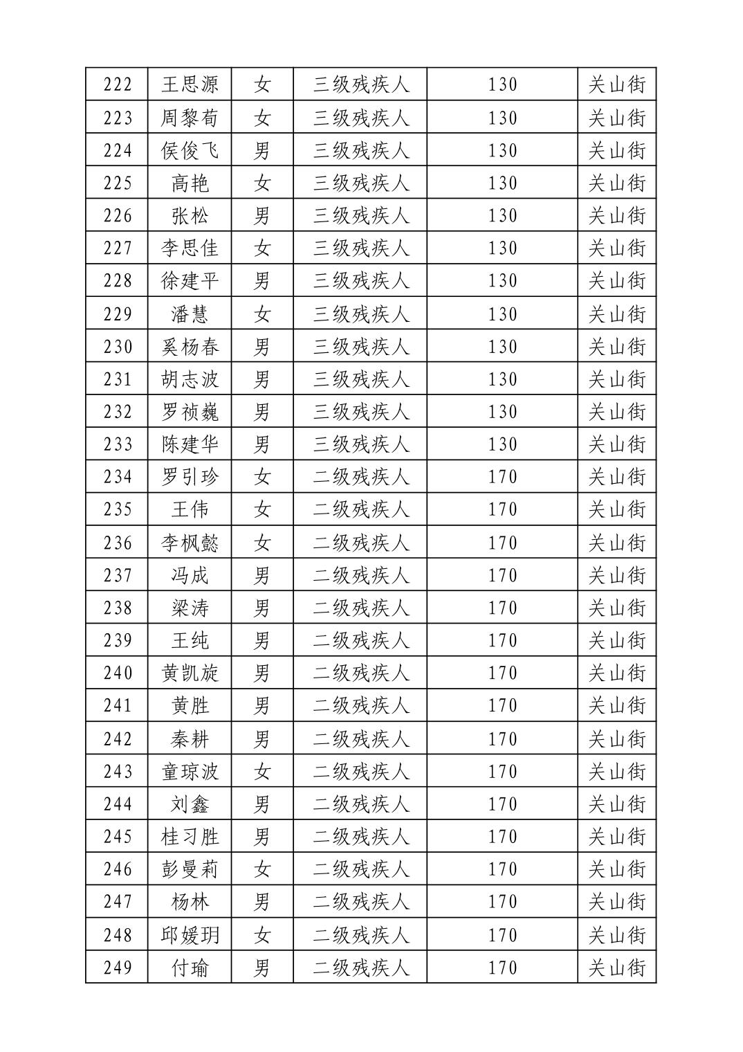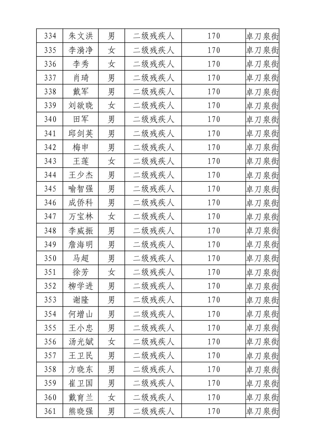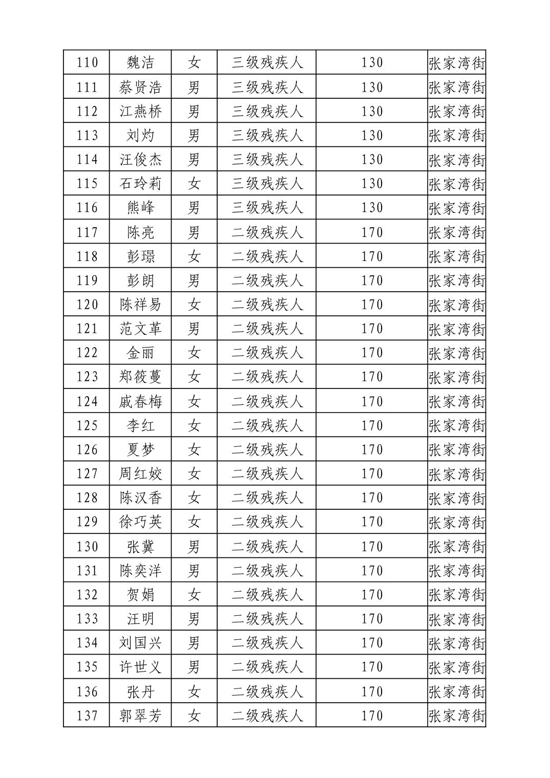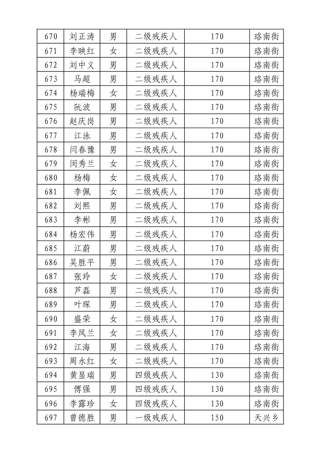 名 称:2025年11月武汉市洪山区困难残疾人生活补贴发放表