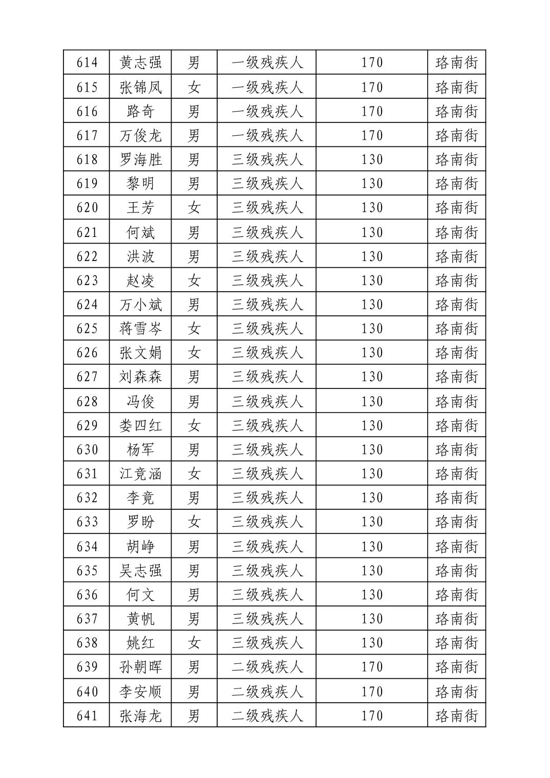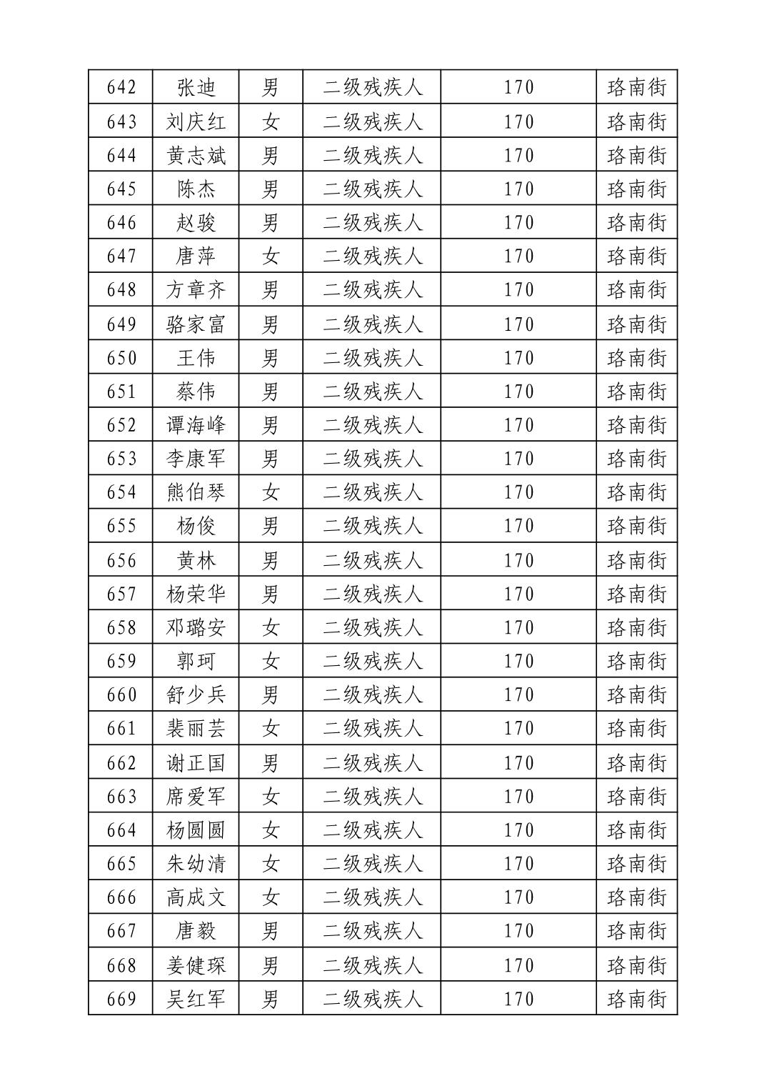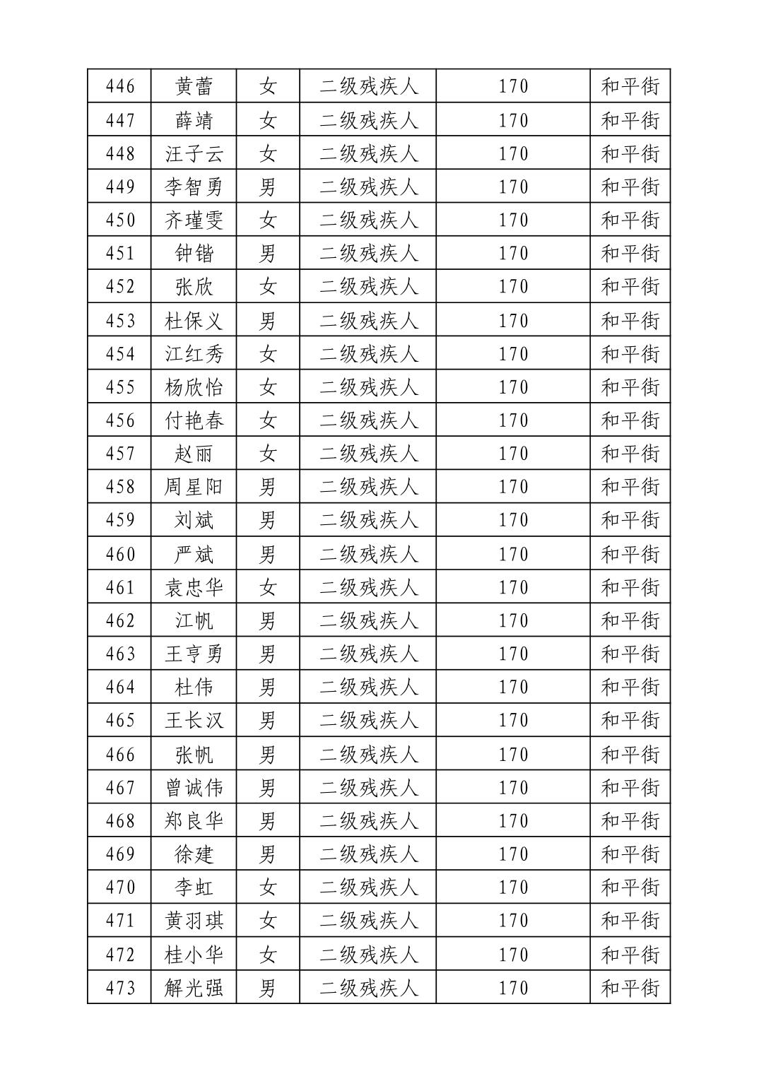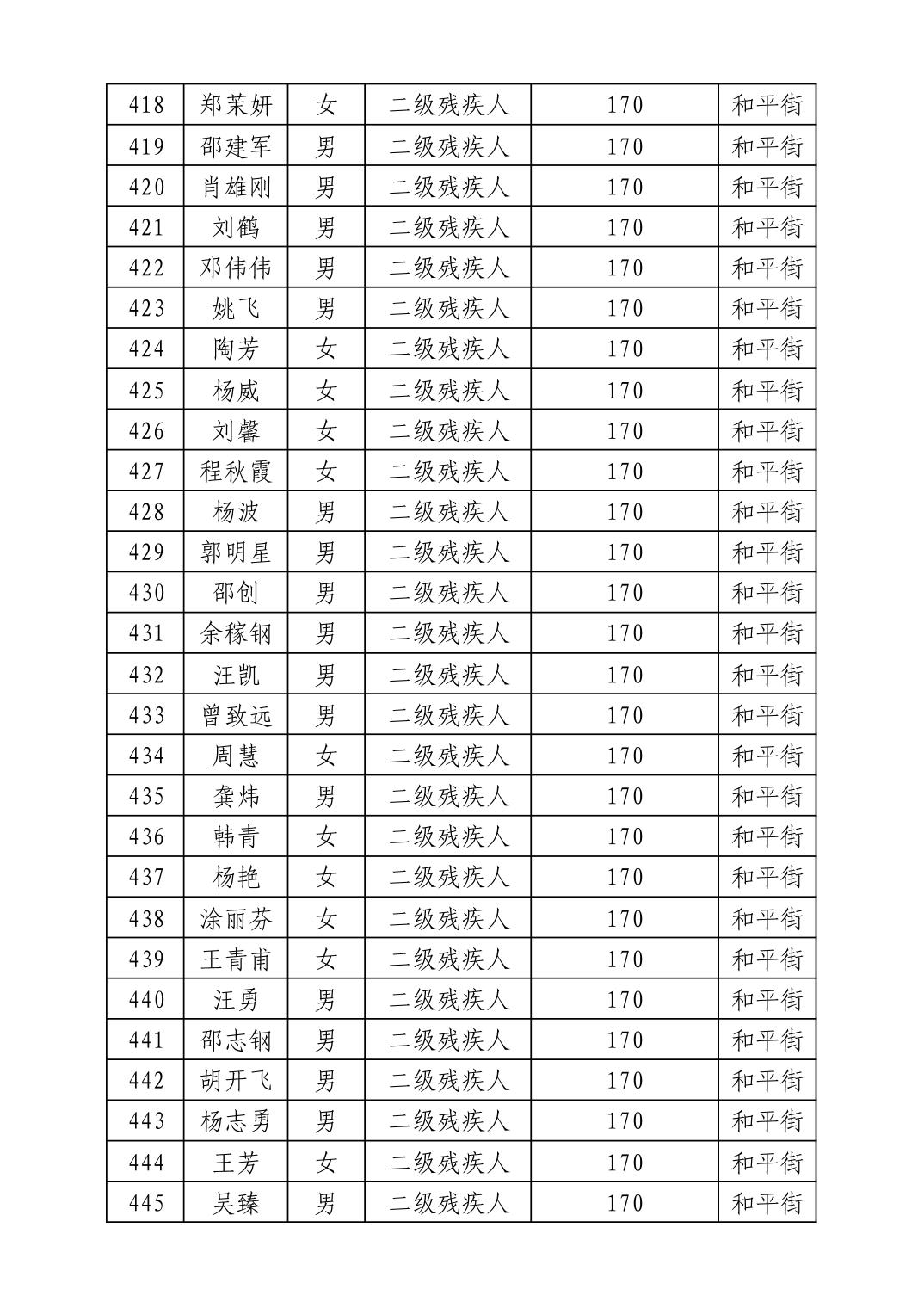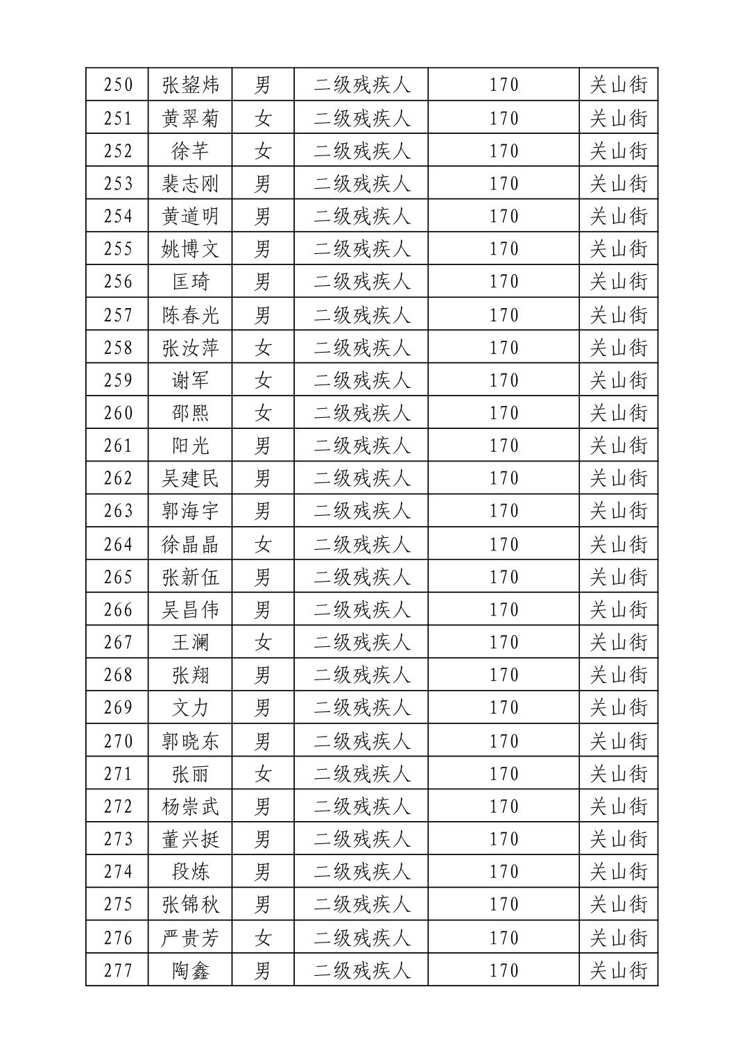 名 称:2025年11月武汉市洪山区困难残疾人生活补贴发放表