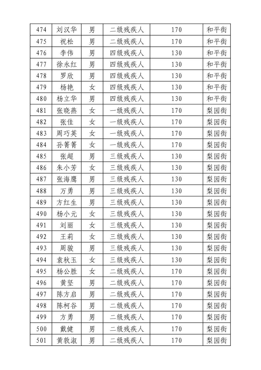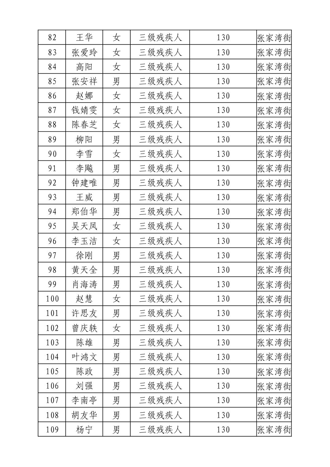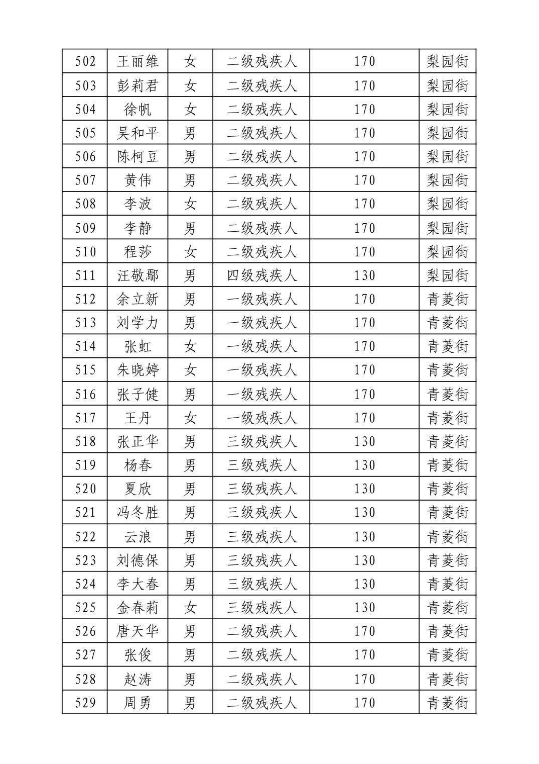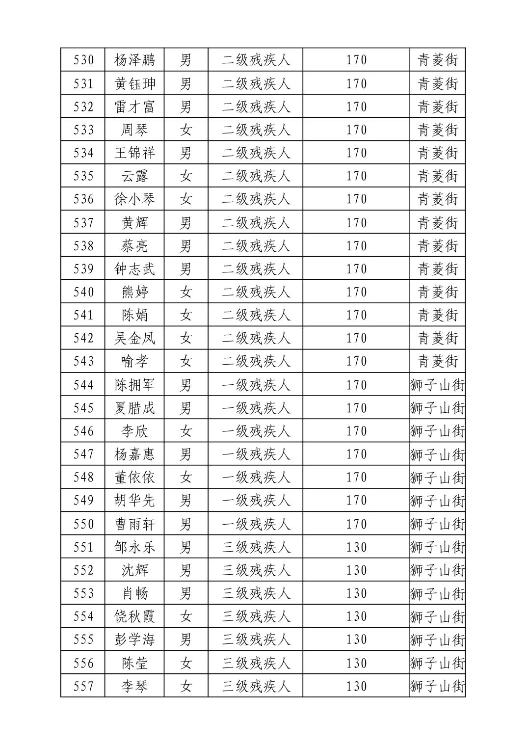 名 称:2025年11月武汉市洪山区困难残疾人生活补贴发放表