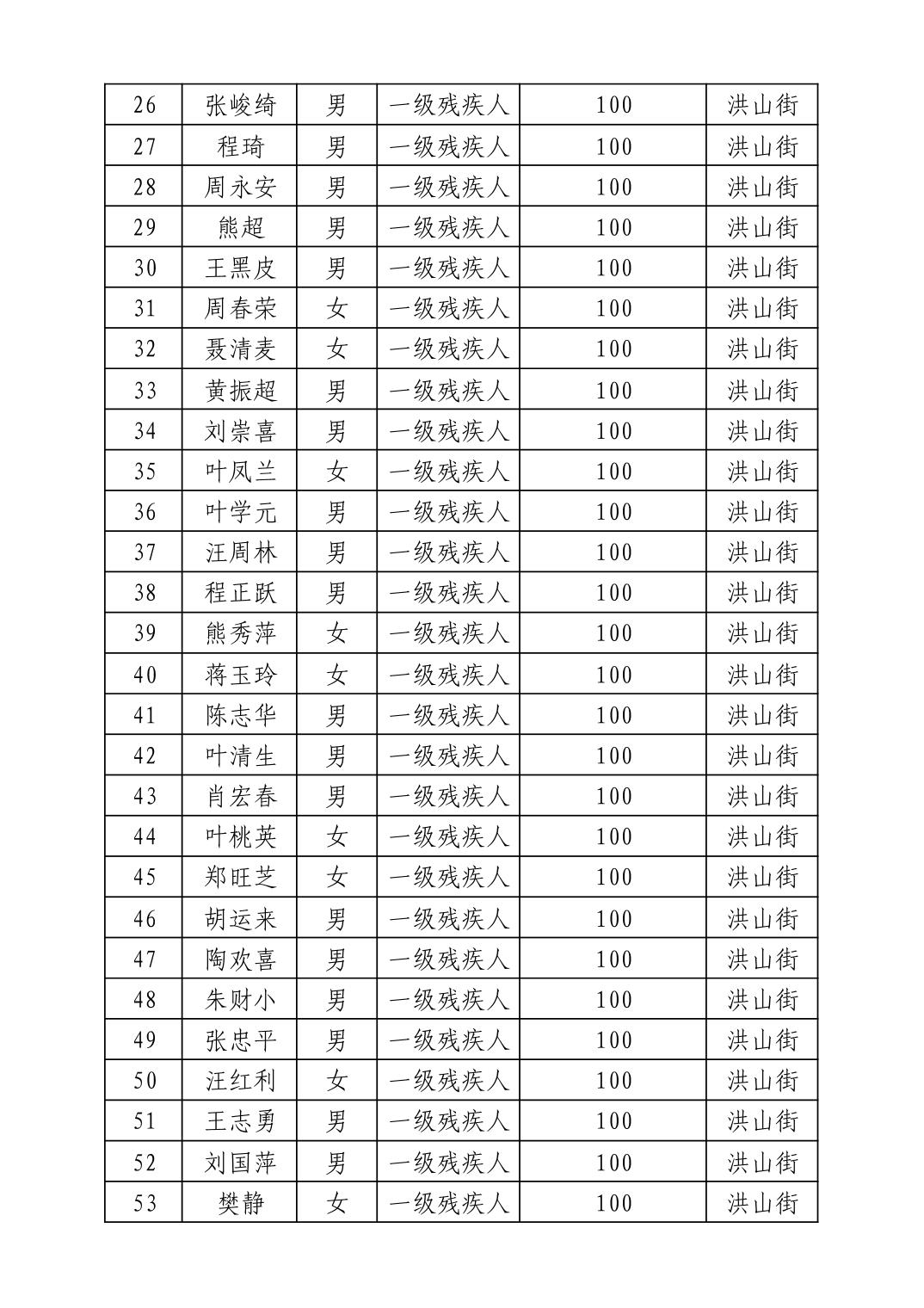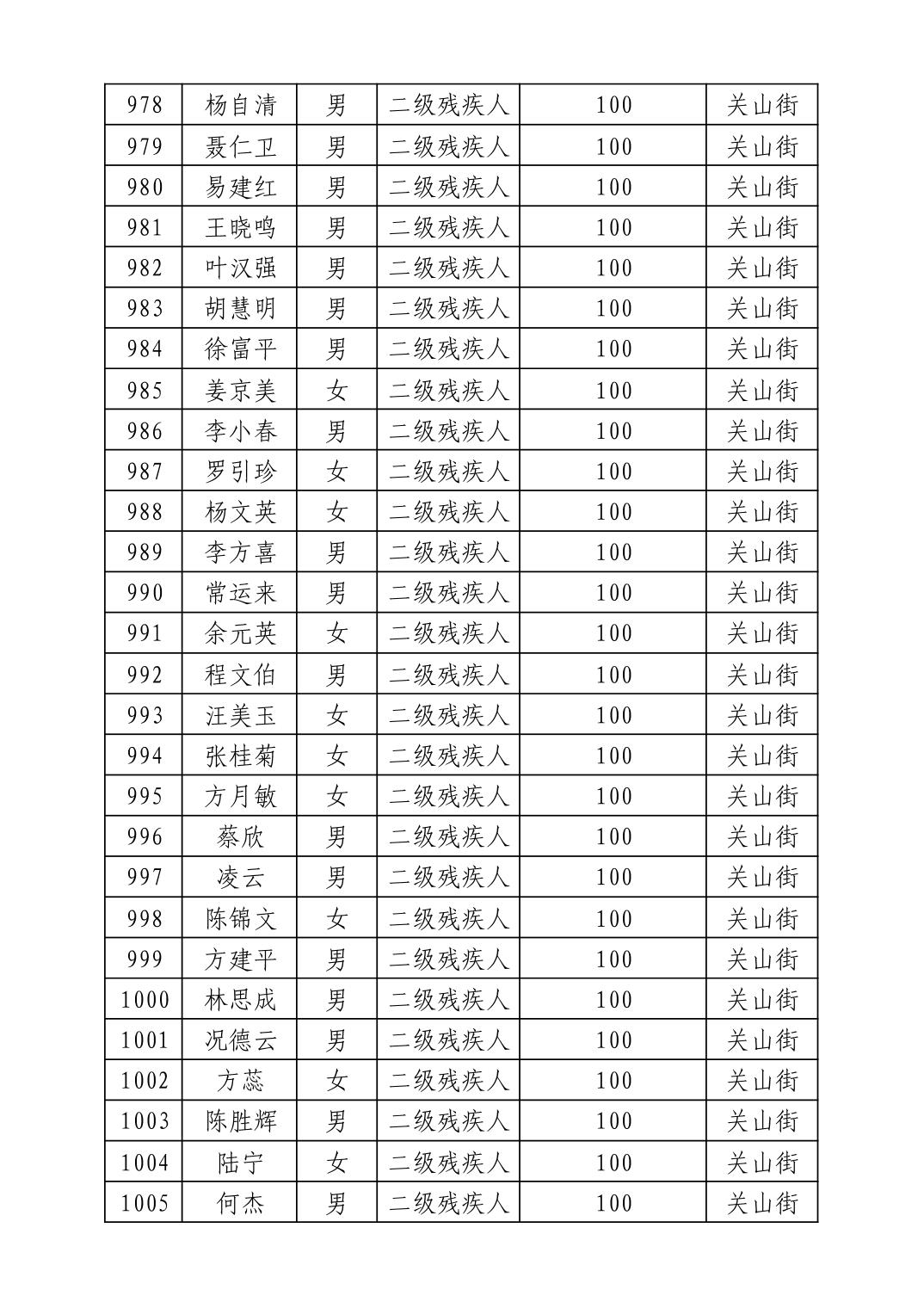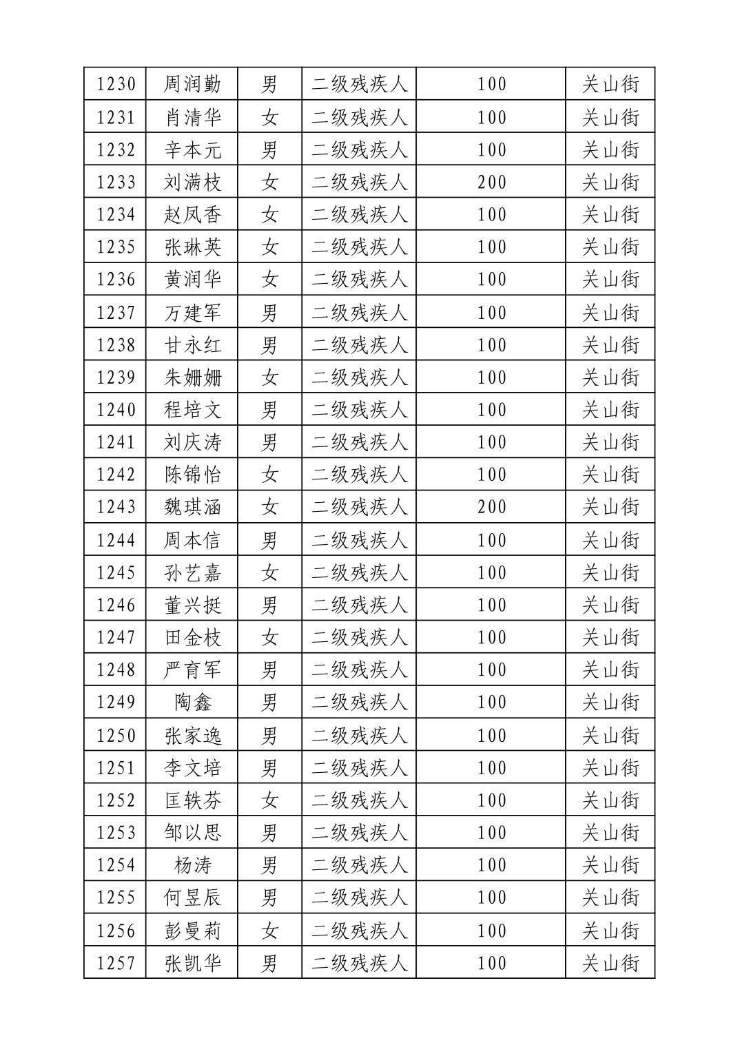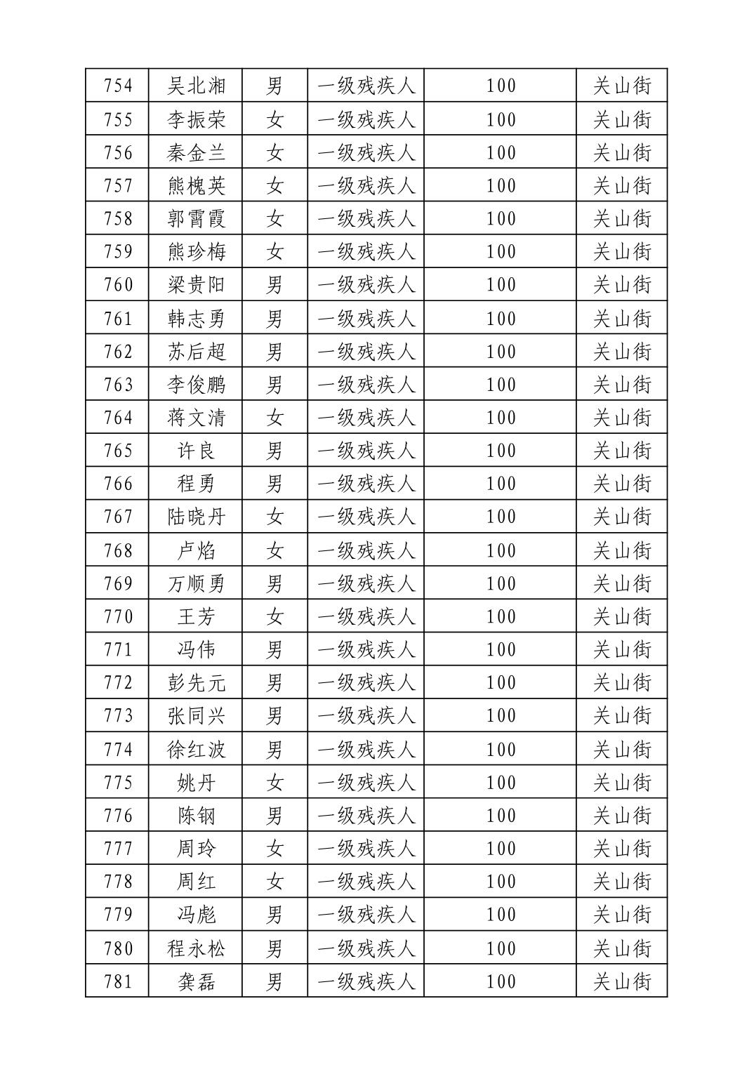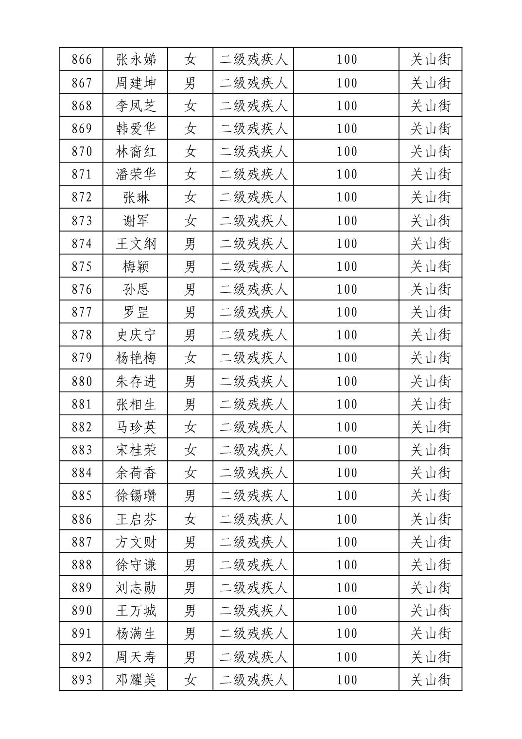 名 称:2025年11月武汉市洪山区重度残疾人护理补贴发放表
