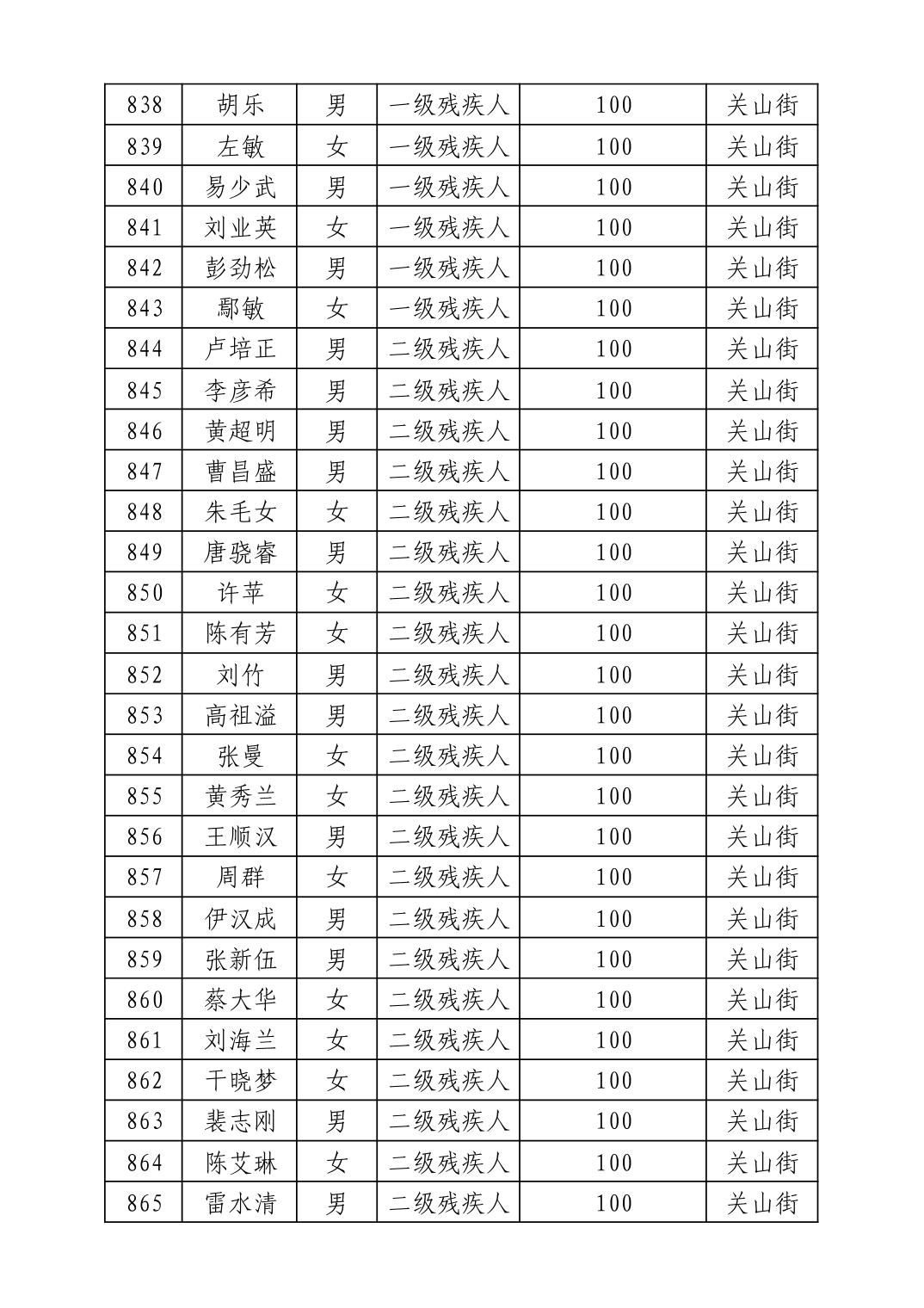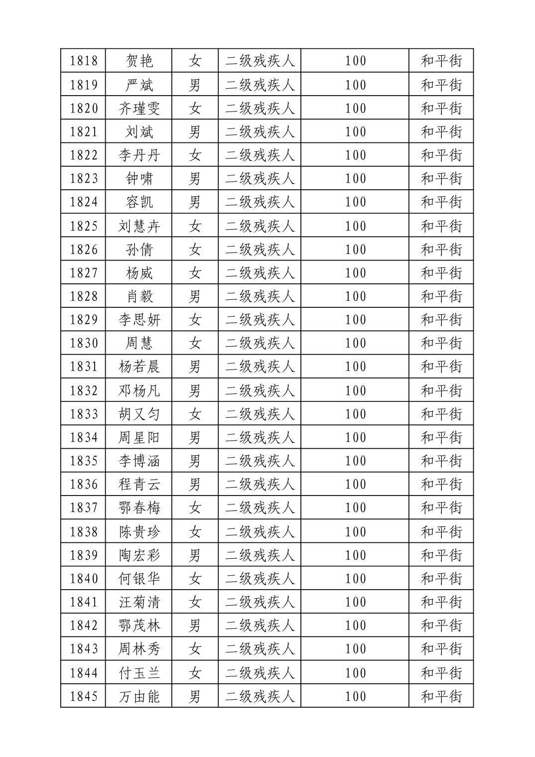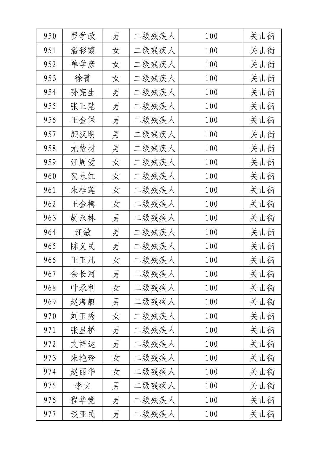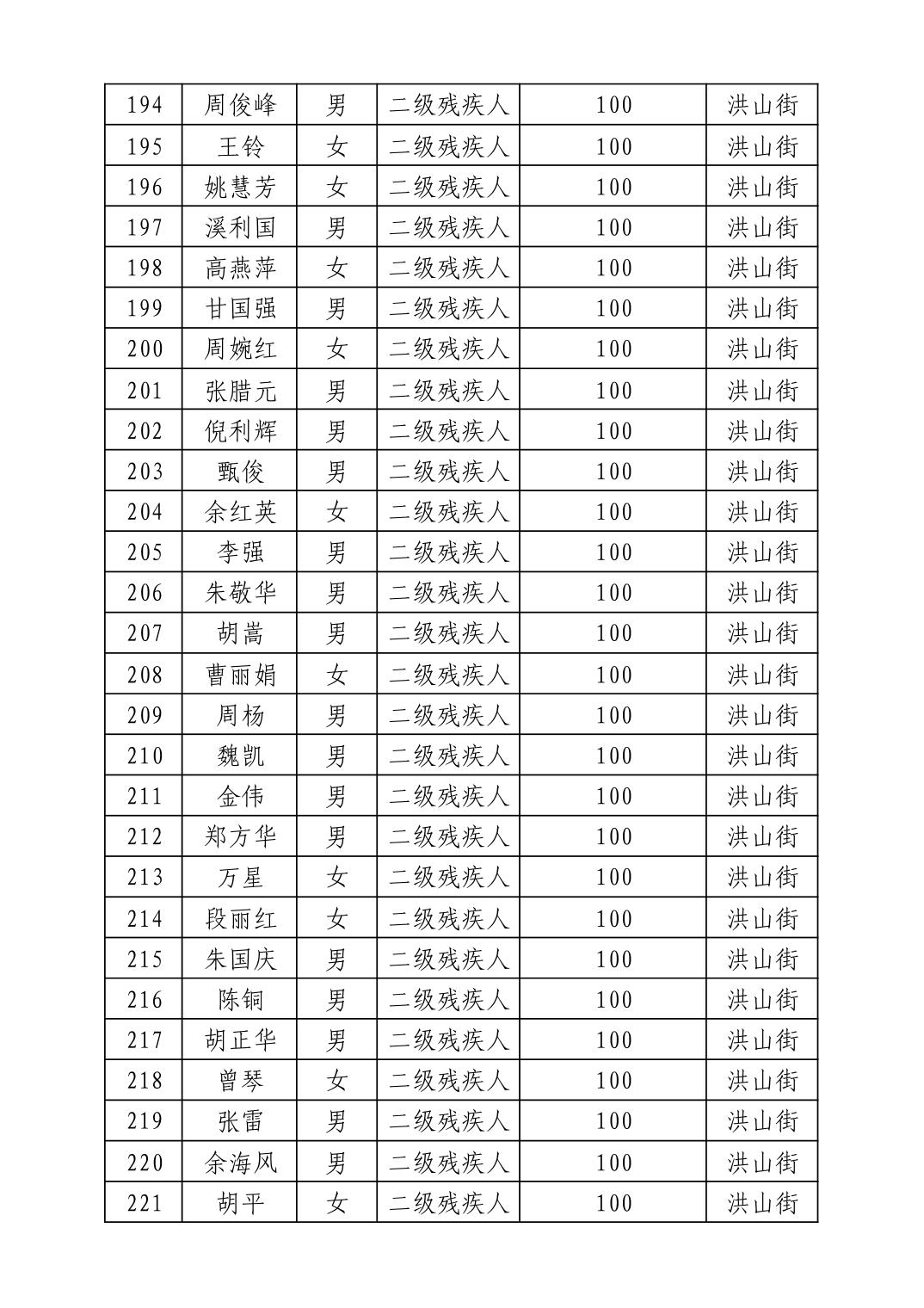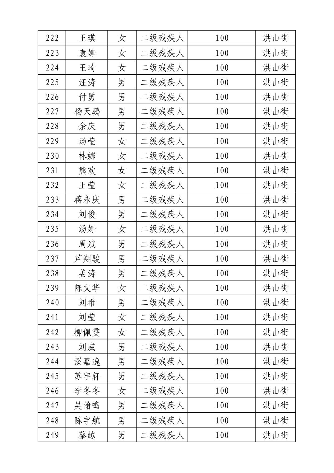 名 称:2025年11月武汉市洪山区重度残疾人护理补贴发放表