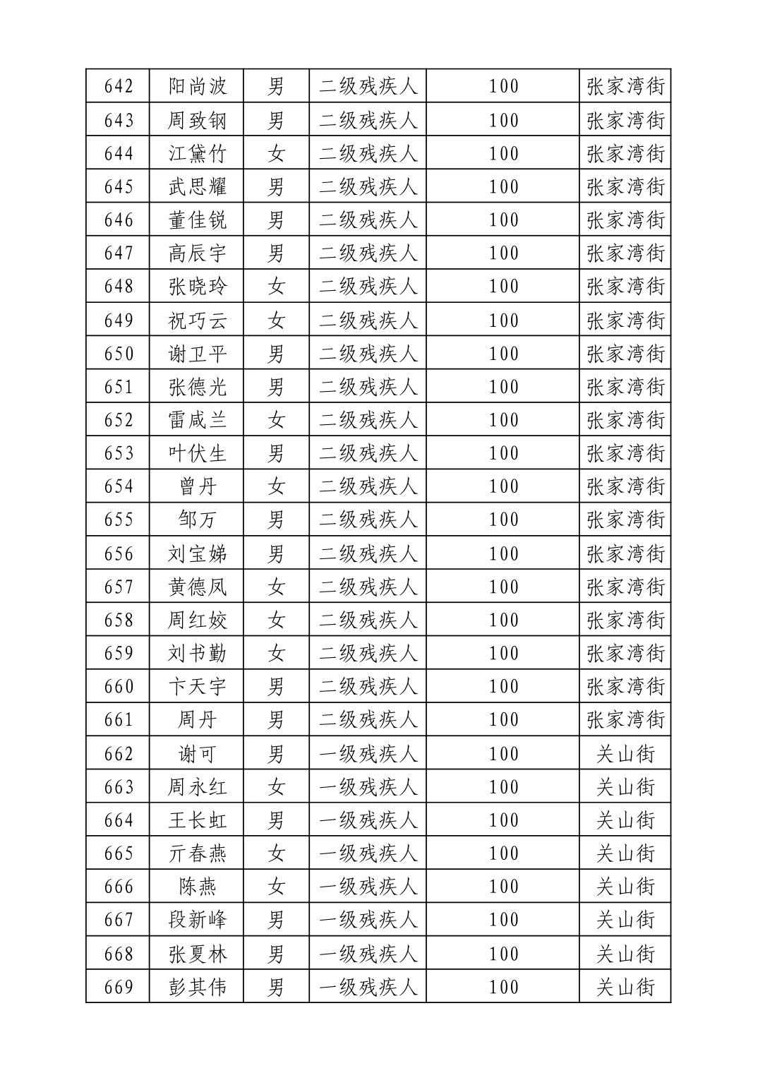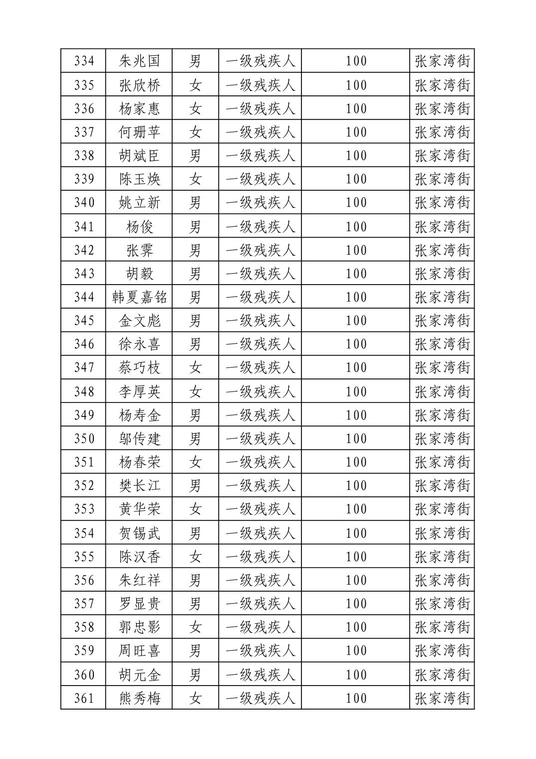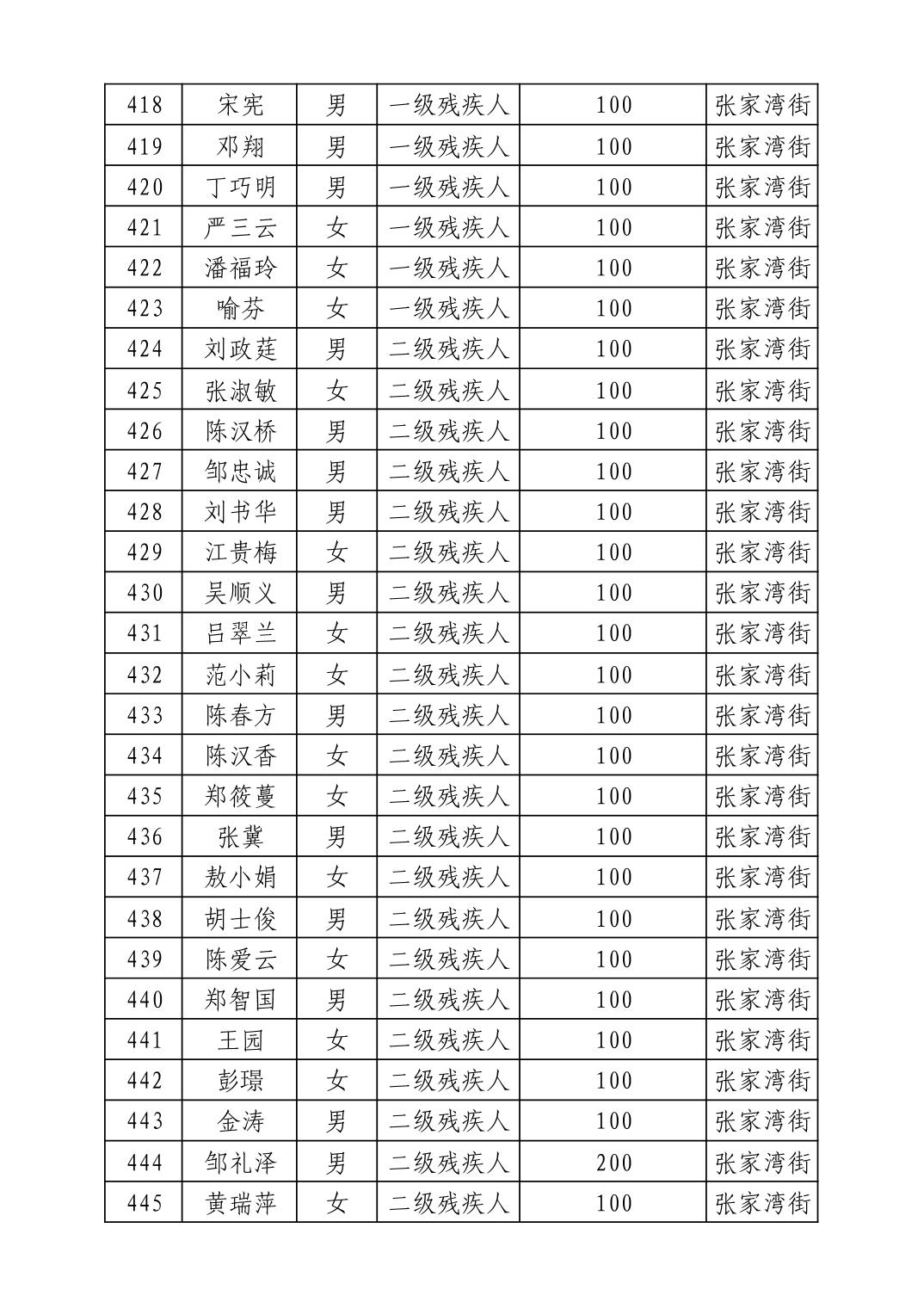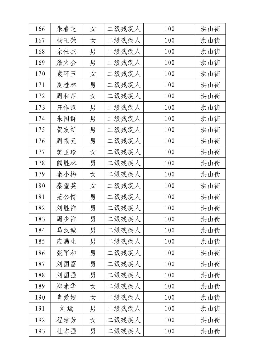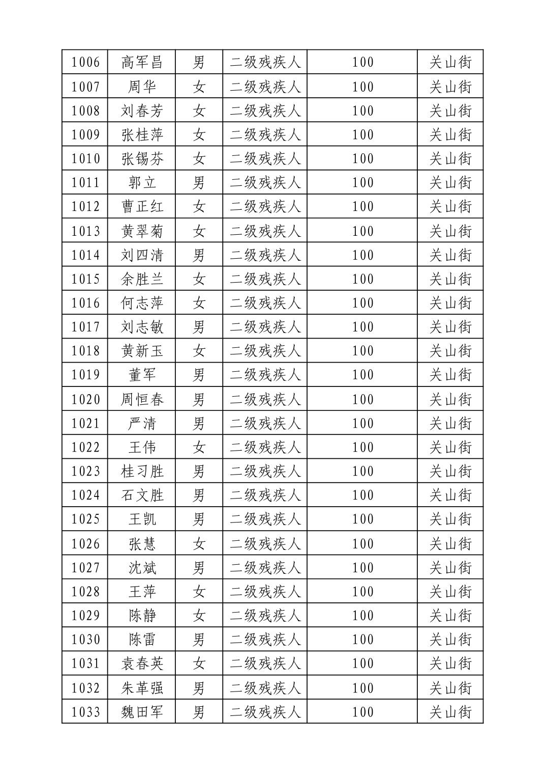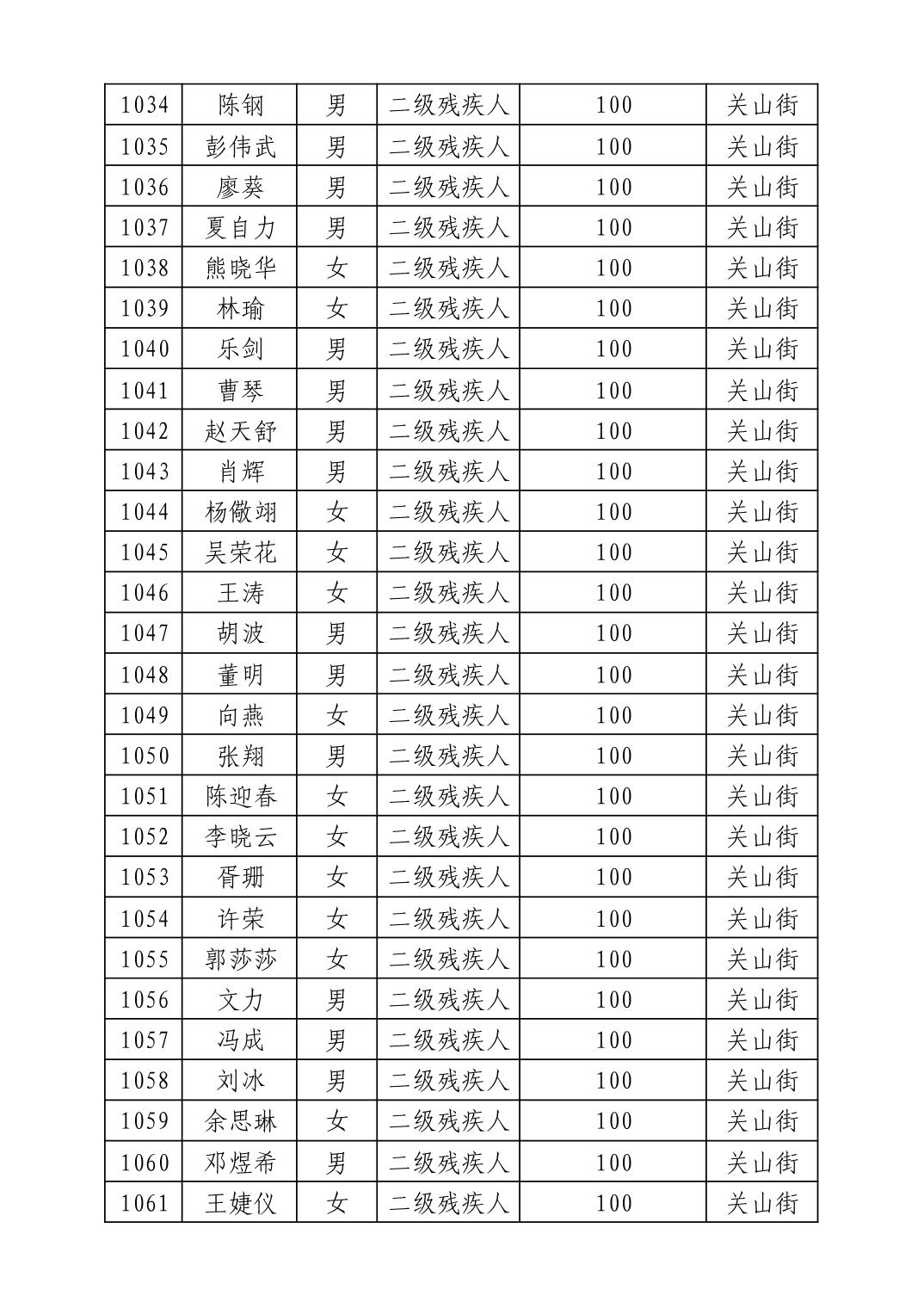 名 称:2025年11月武汉市洪山区重度残疾人护理补贴发放表
