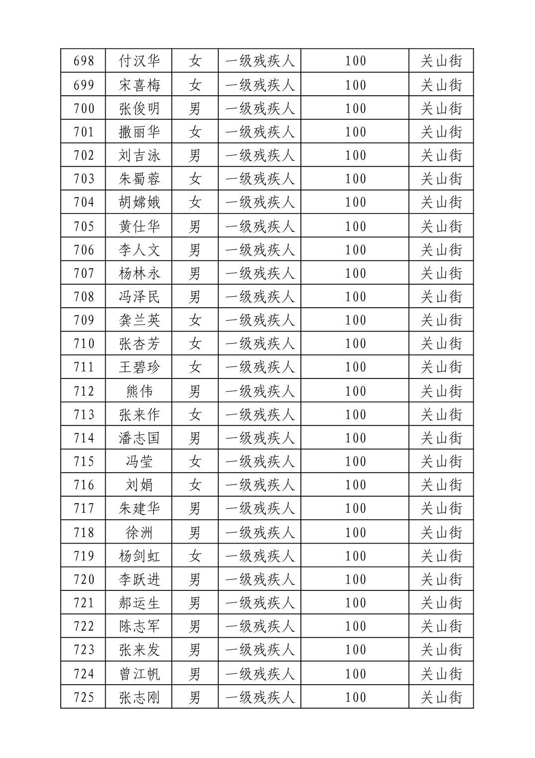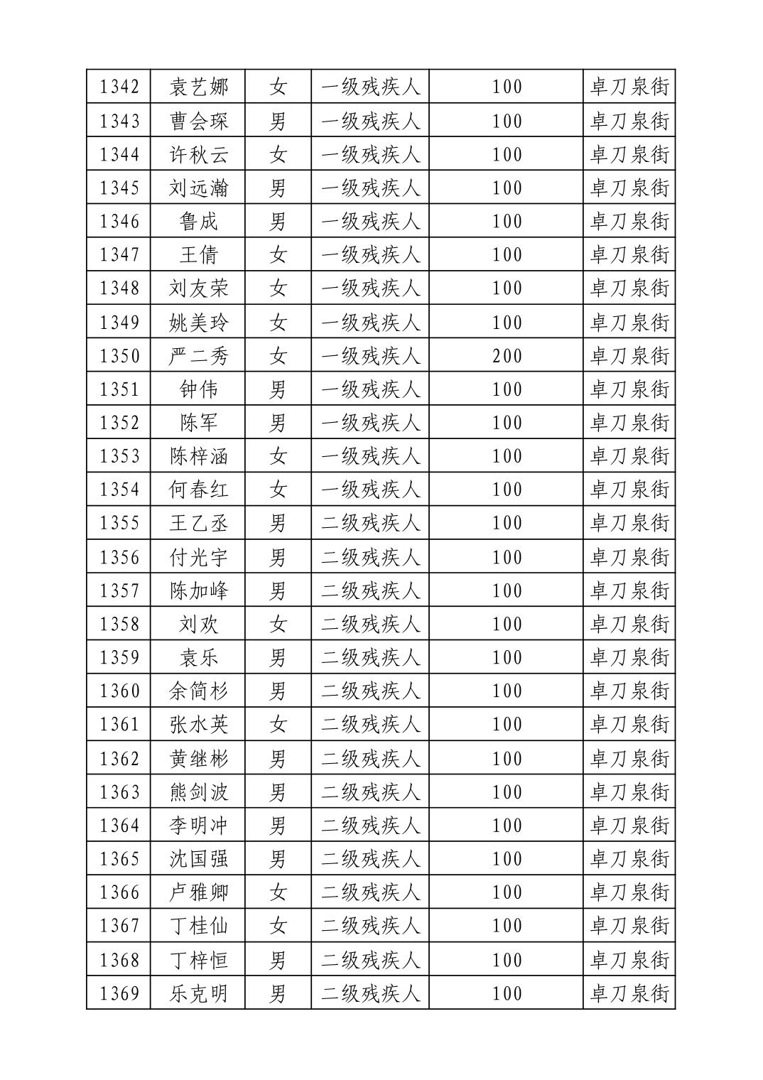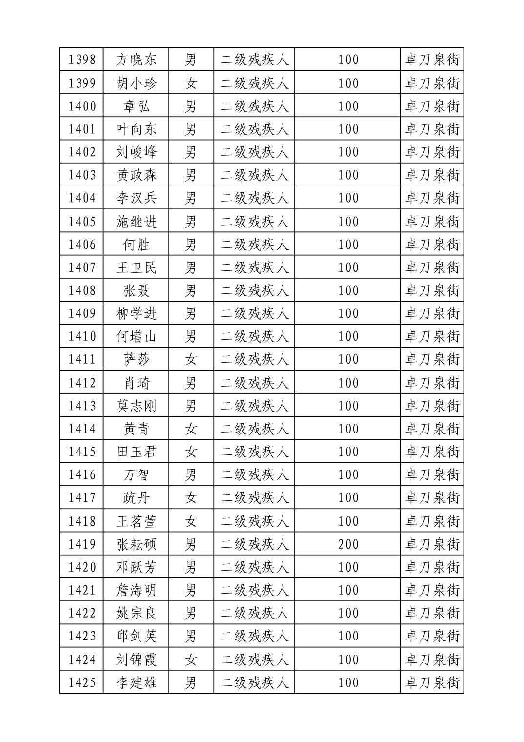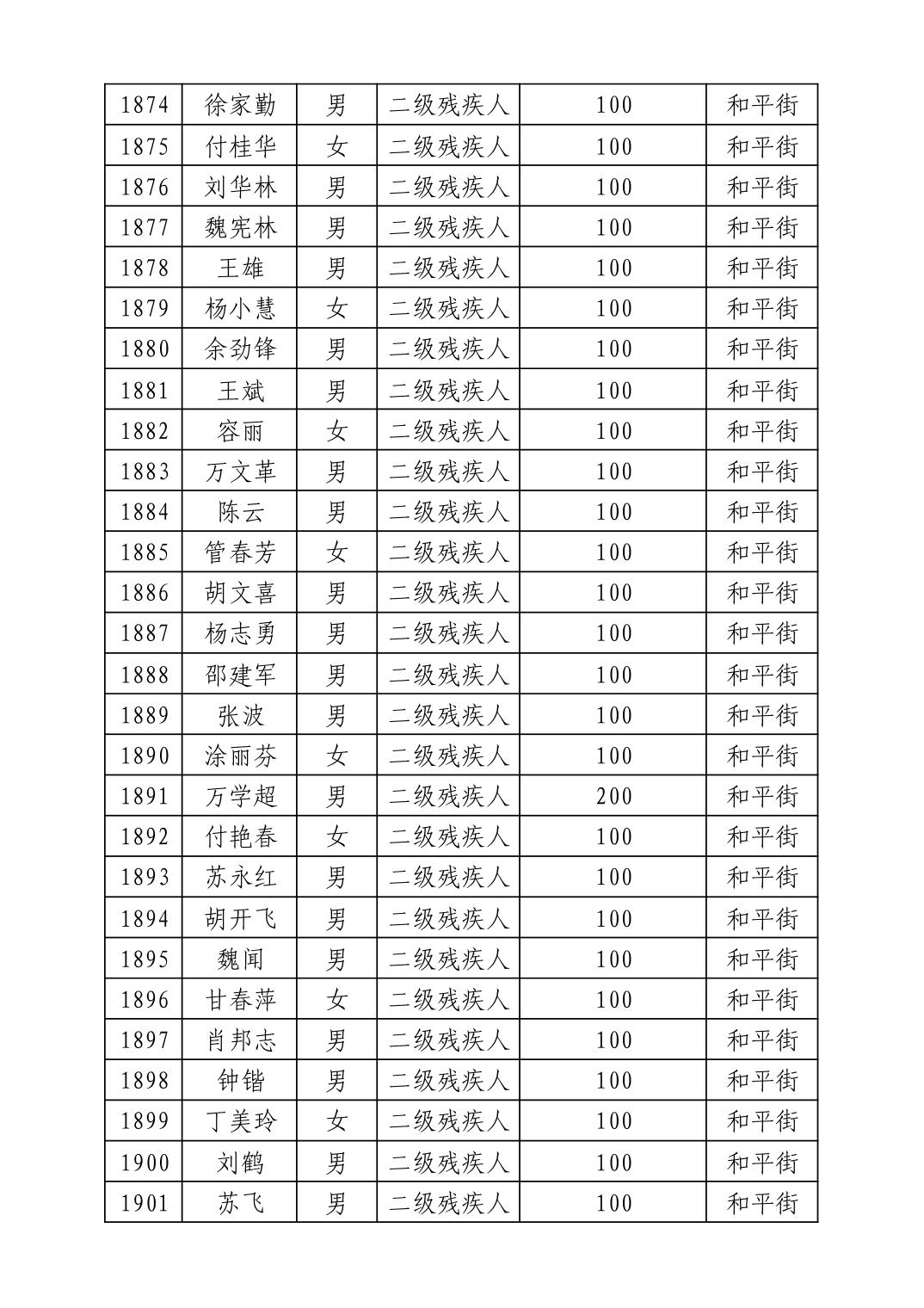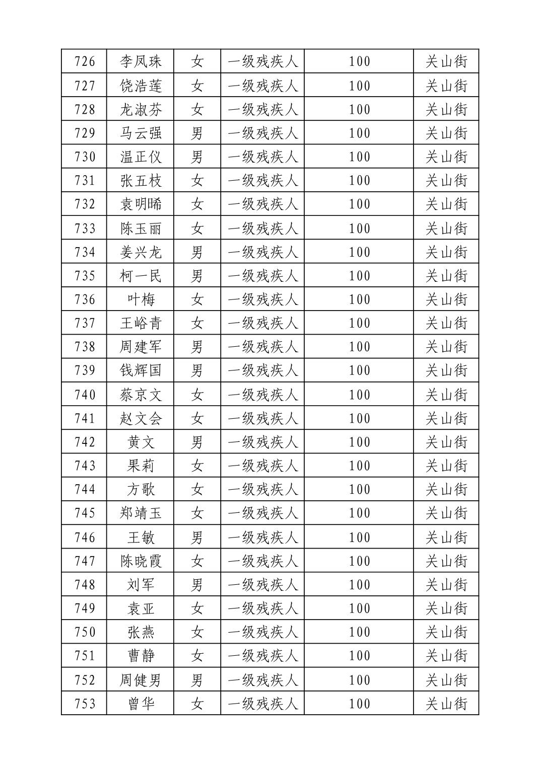 名 称:2025年11月武汉市洪山区重度残疾人护理补贴发放表