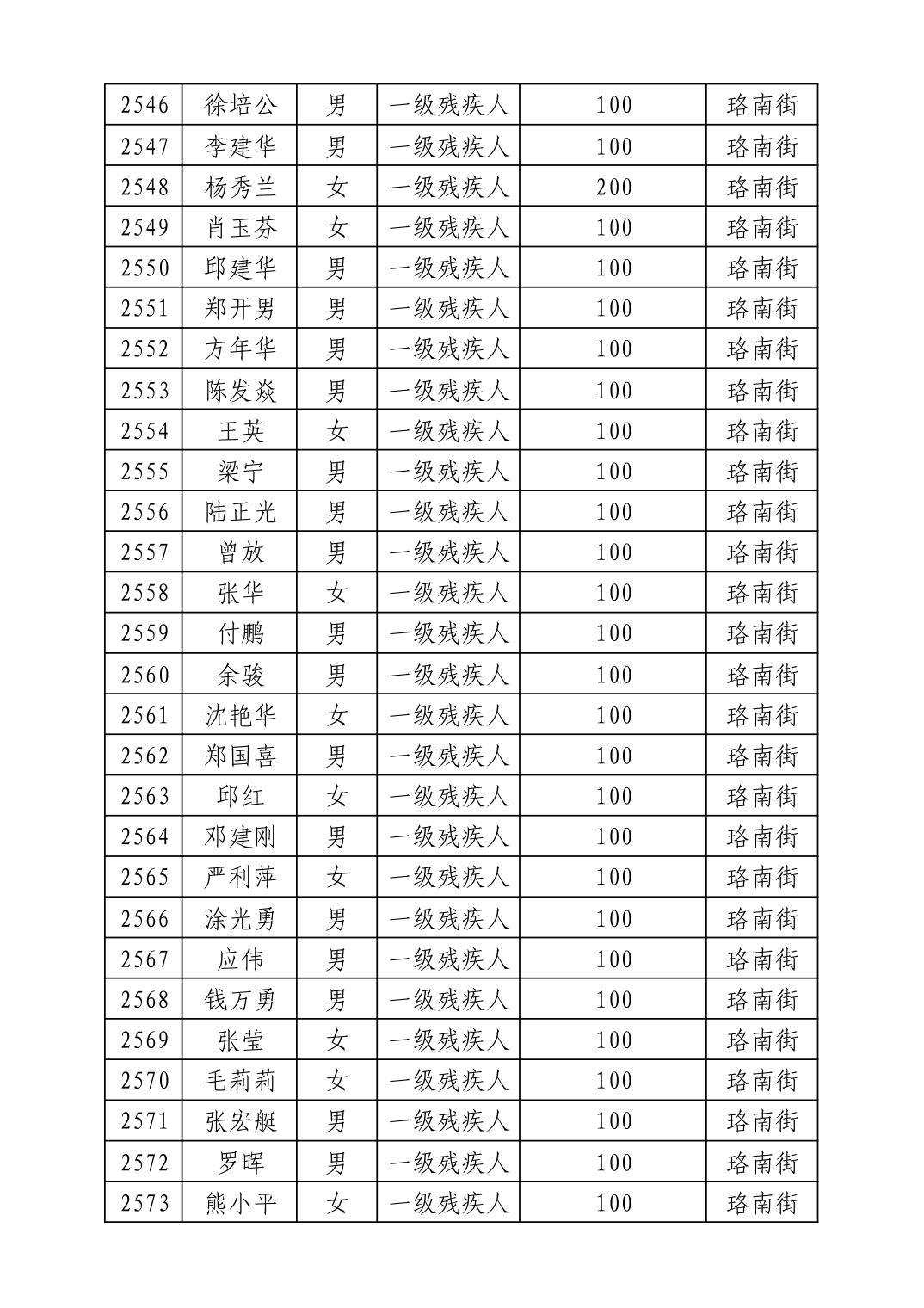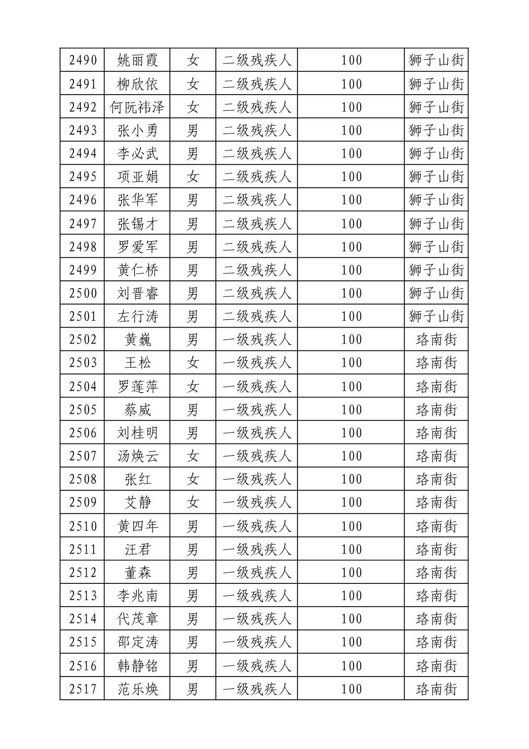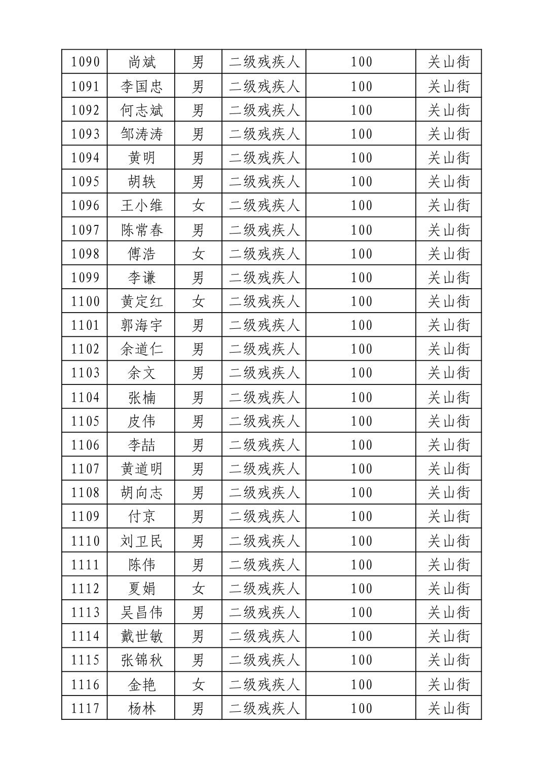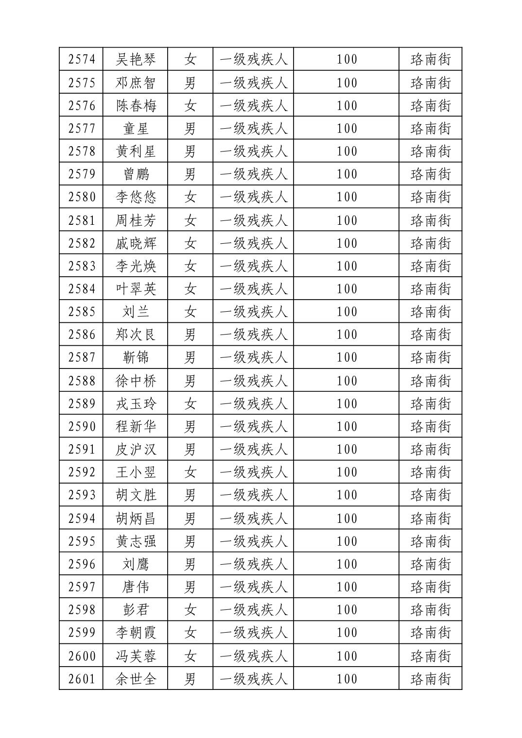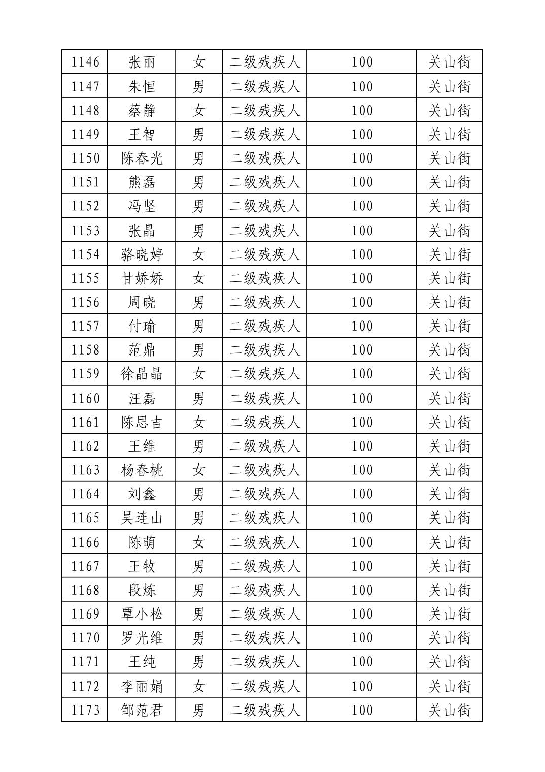 名 称:2025年11月武汉市洪山区重度残疾人护理补贴发放表