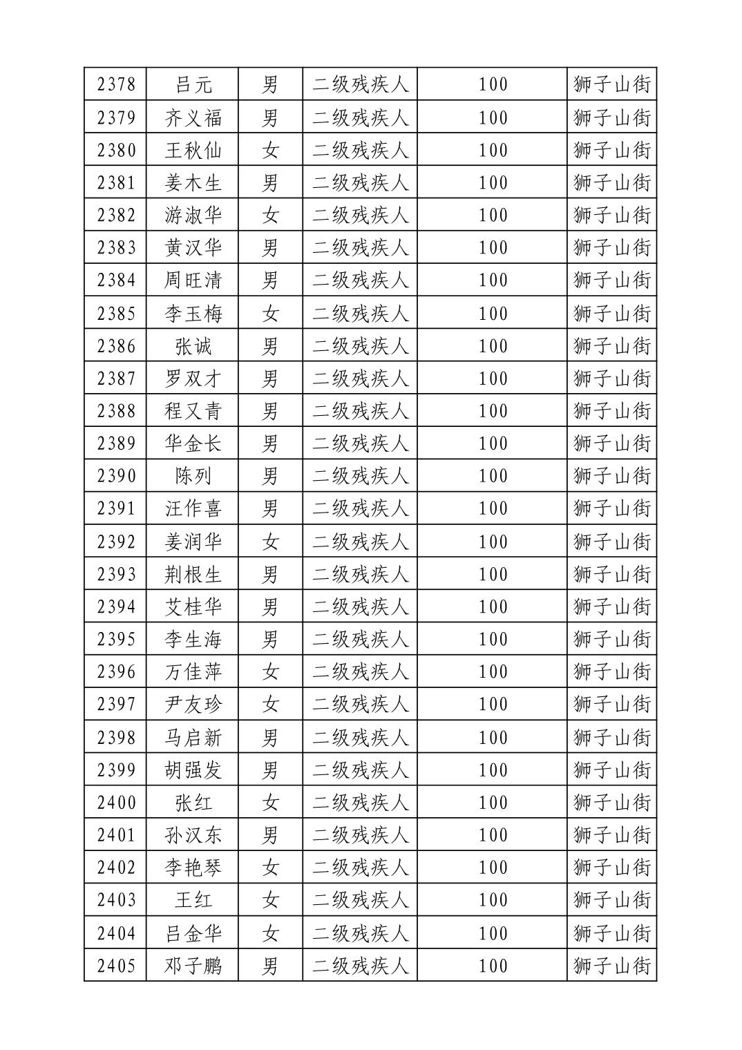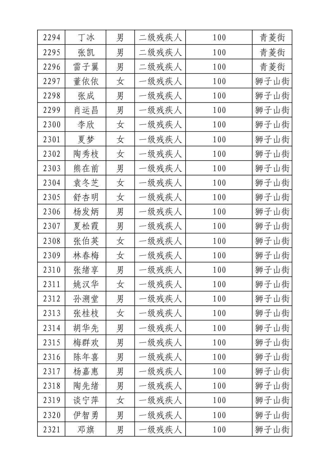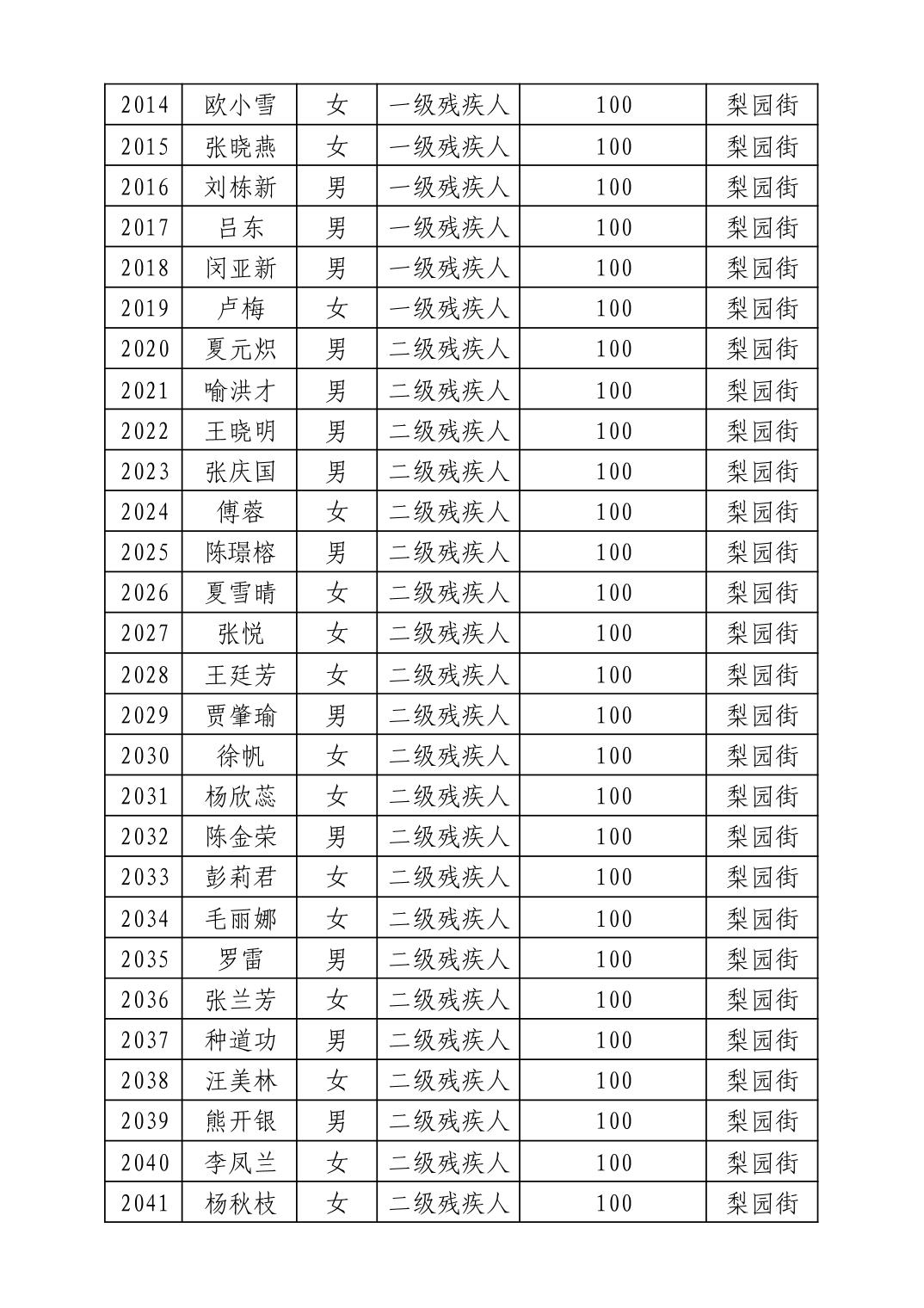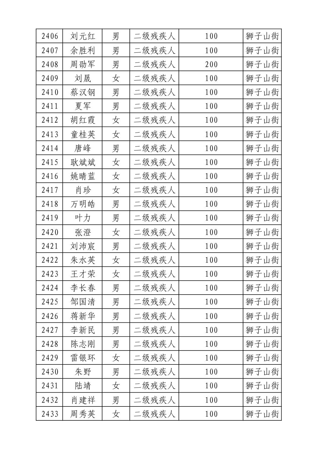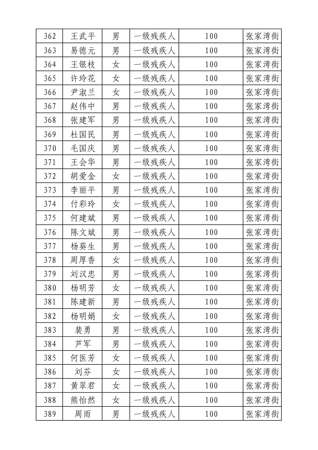 名 称:2025年11月武汉市洪山区重度残疾人护理补贴发放表