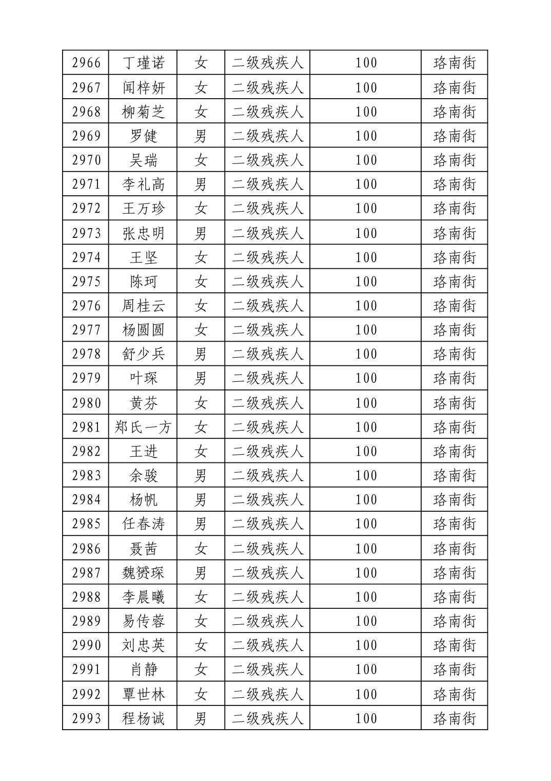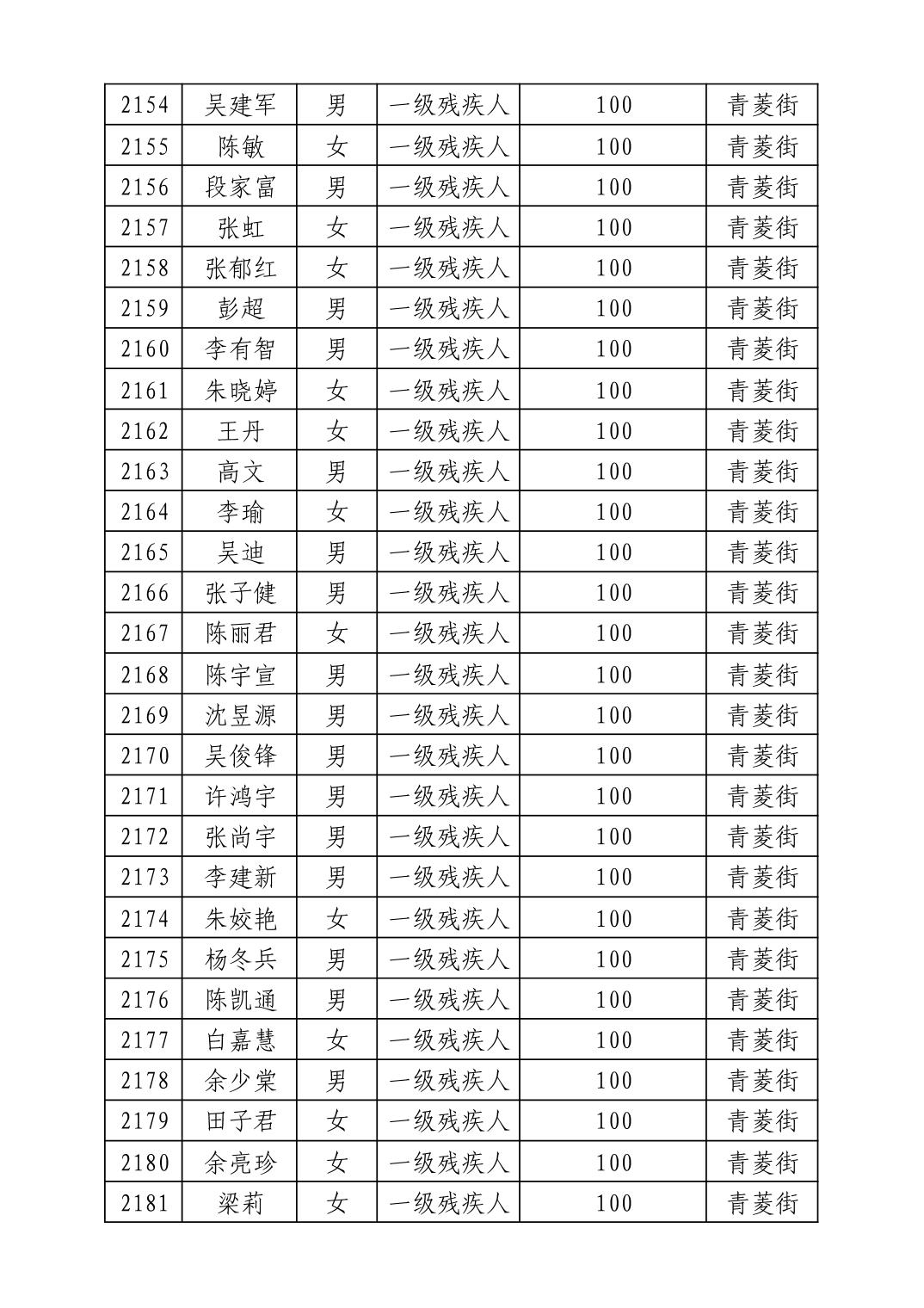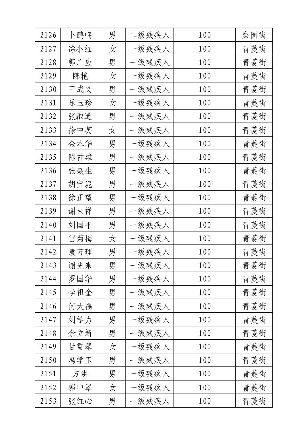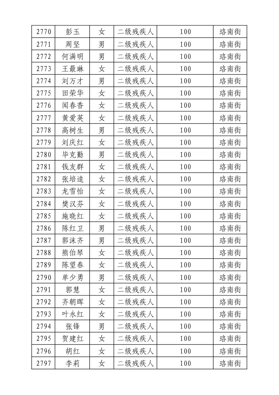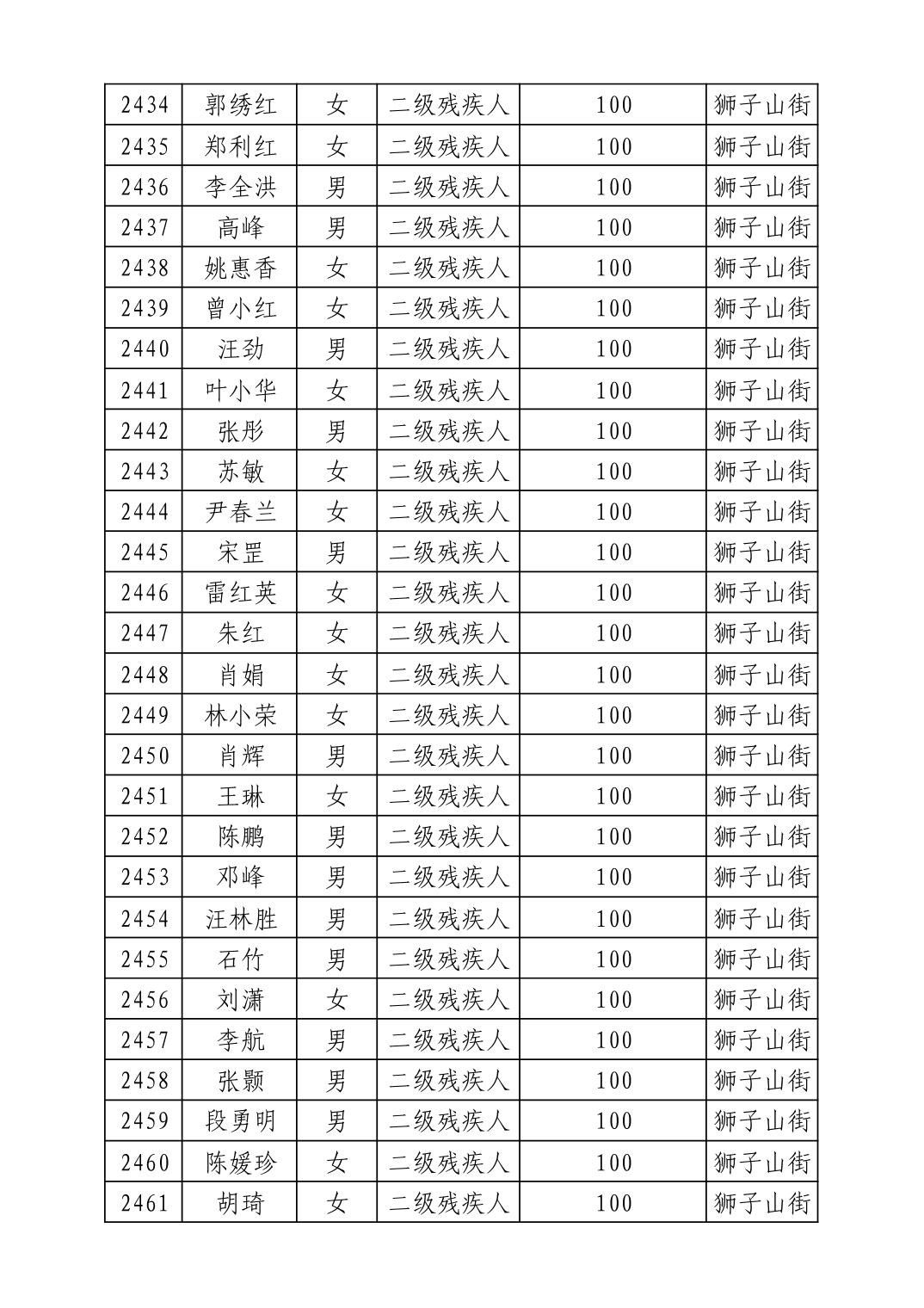 名 称:2025年11月武汉市洪山区重度残疾人护理补贴发放表