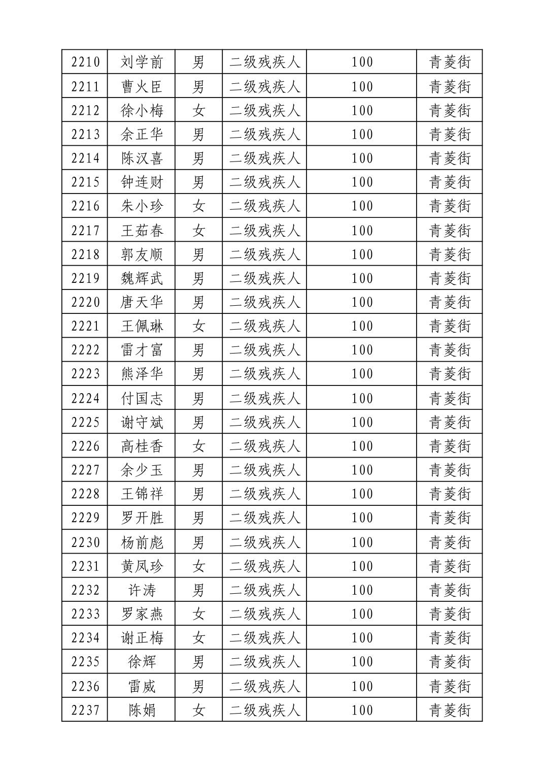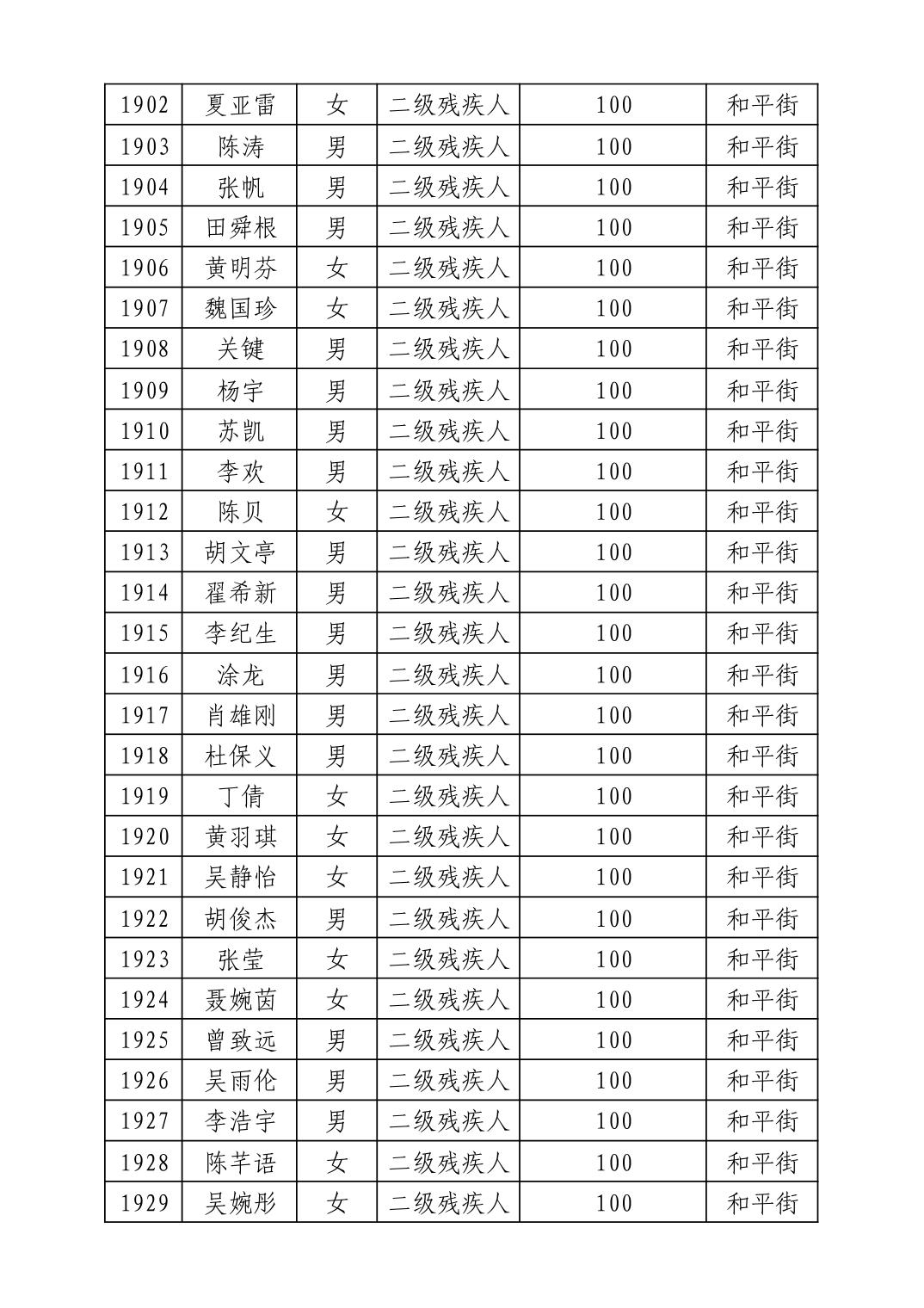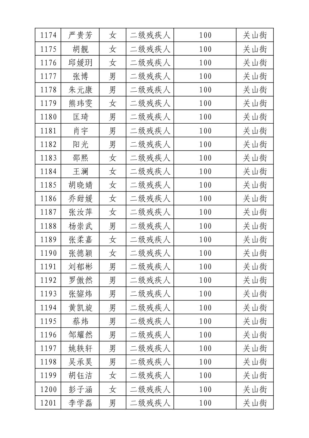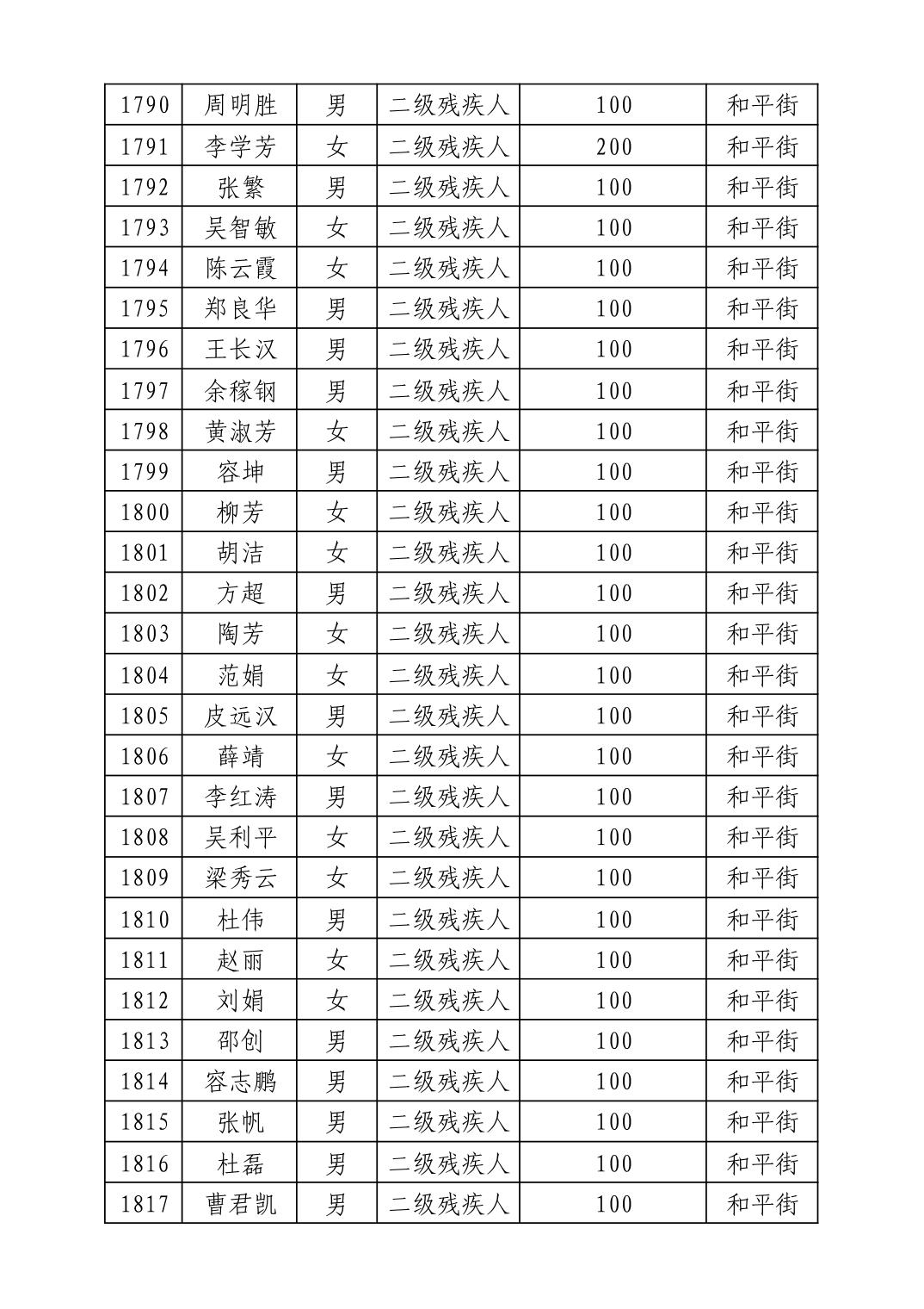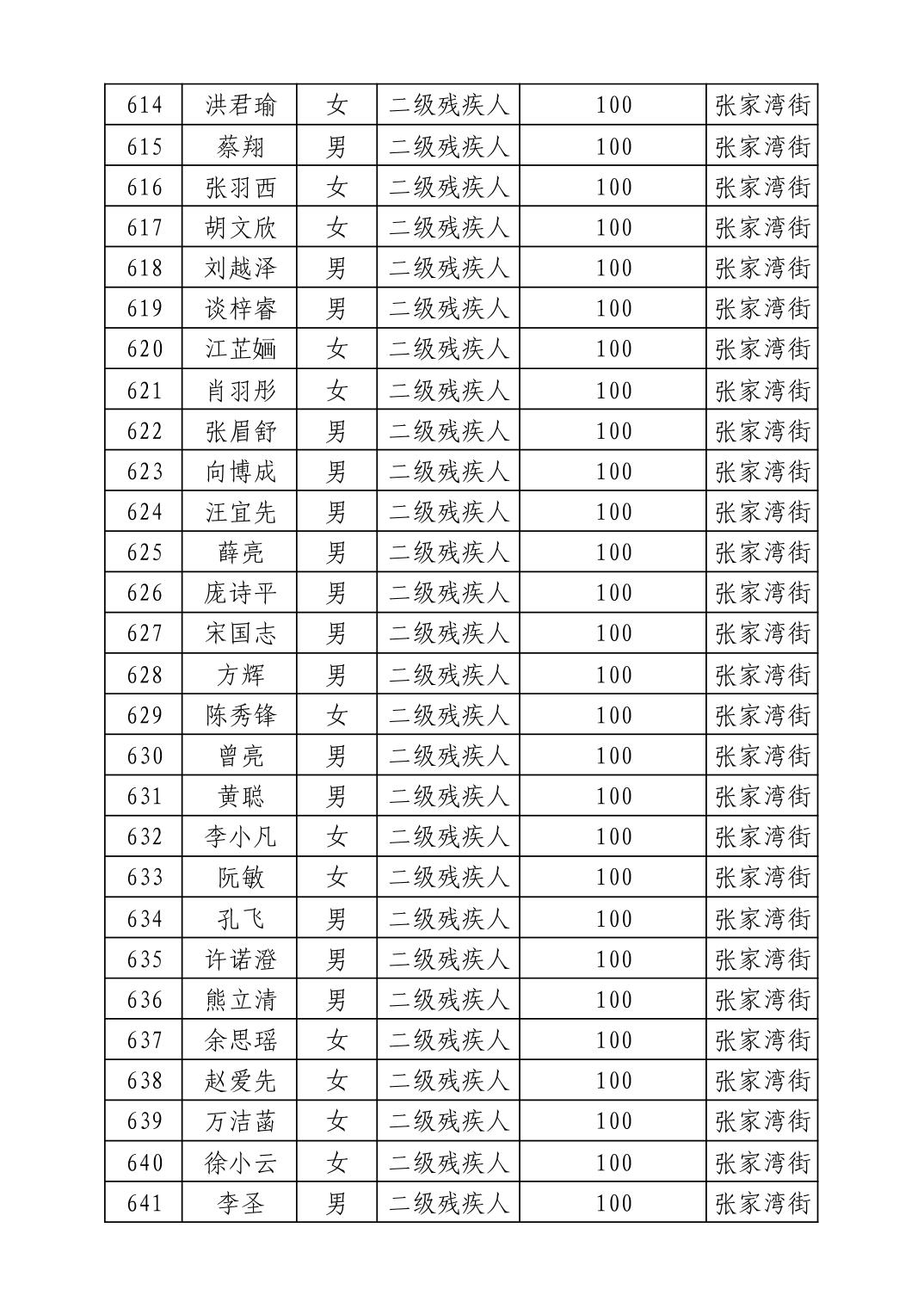 名 称:2025年11月武汉市洪山区重度残疾人护理补贴发放表
