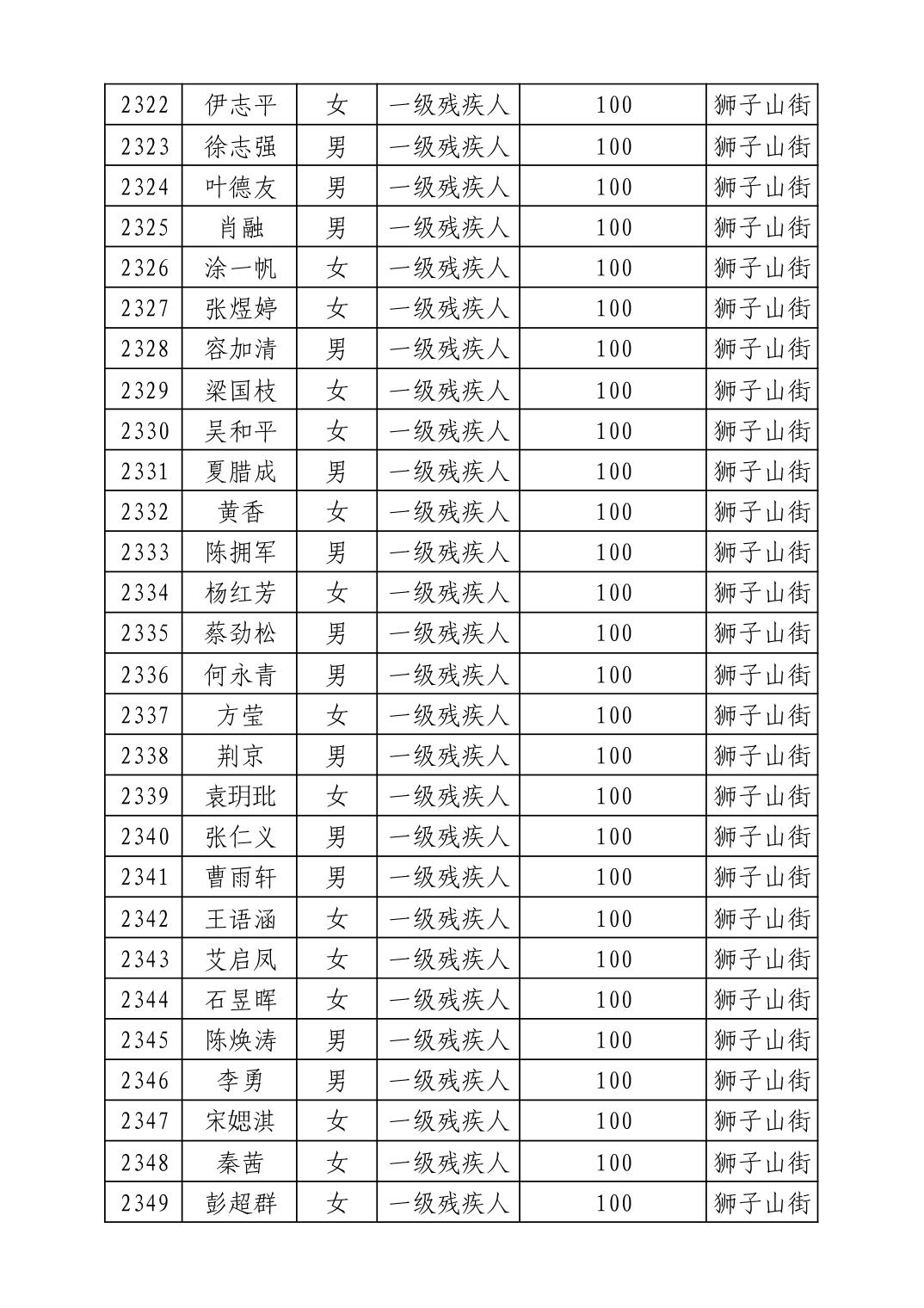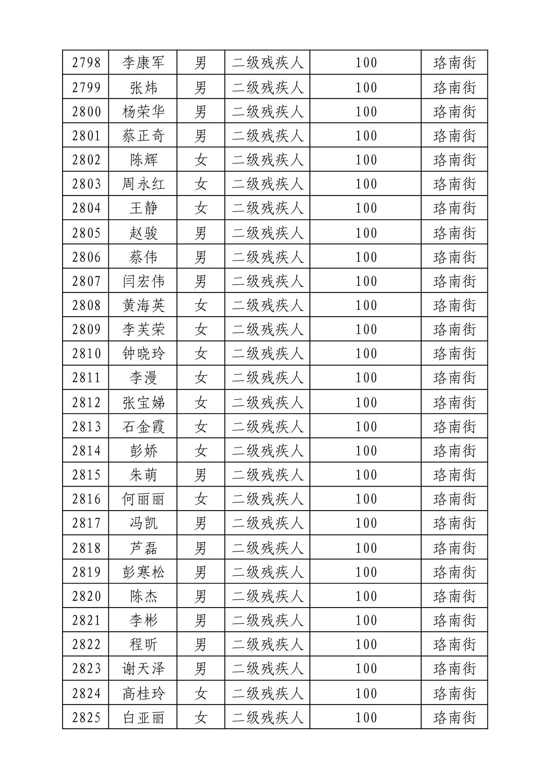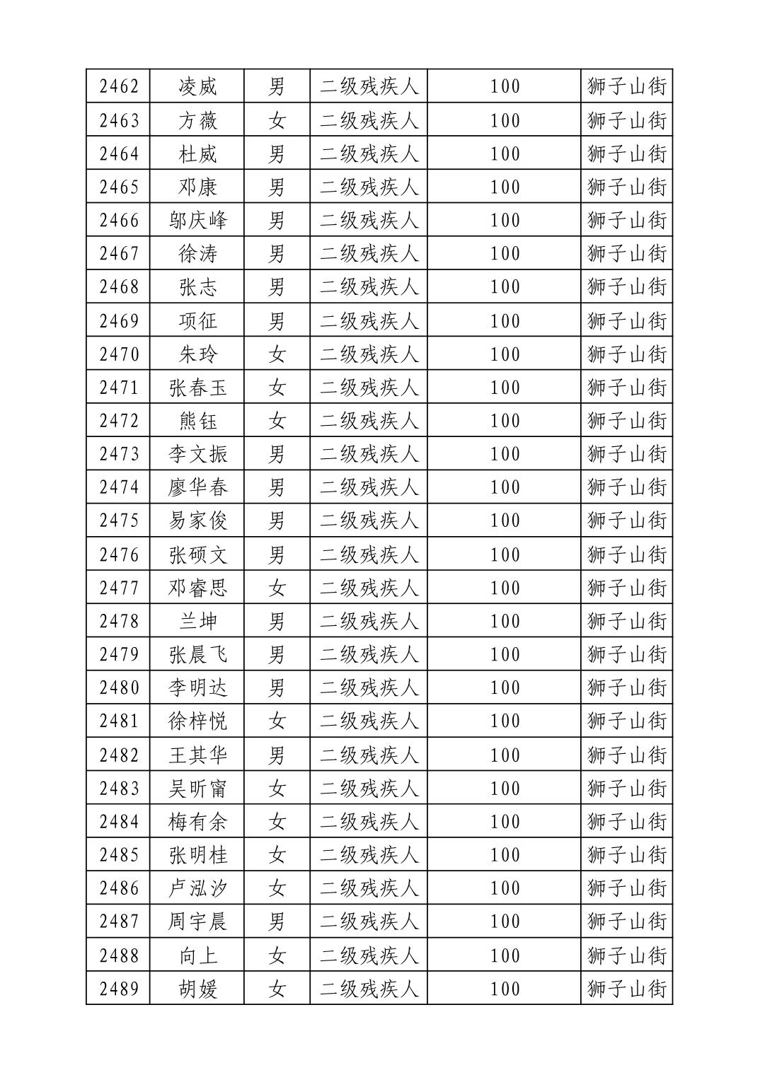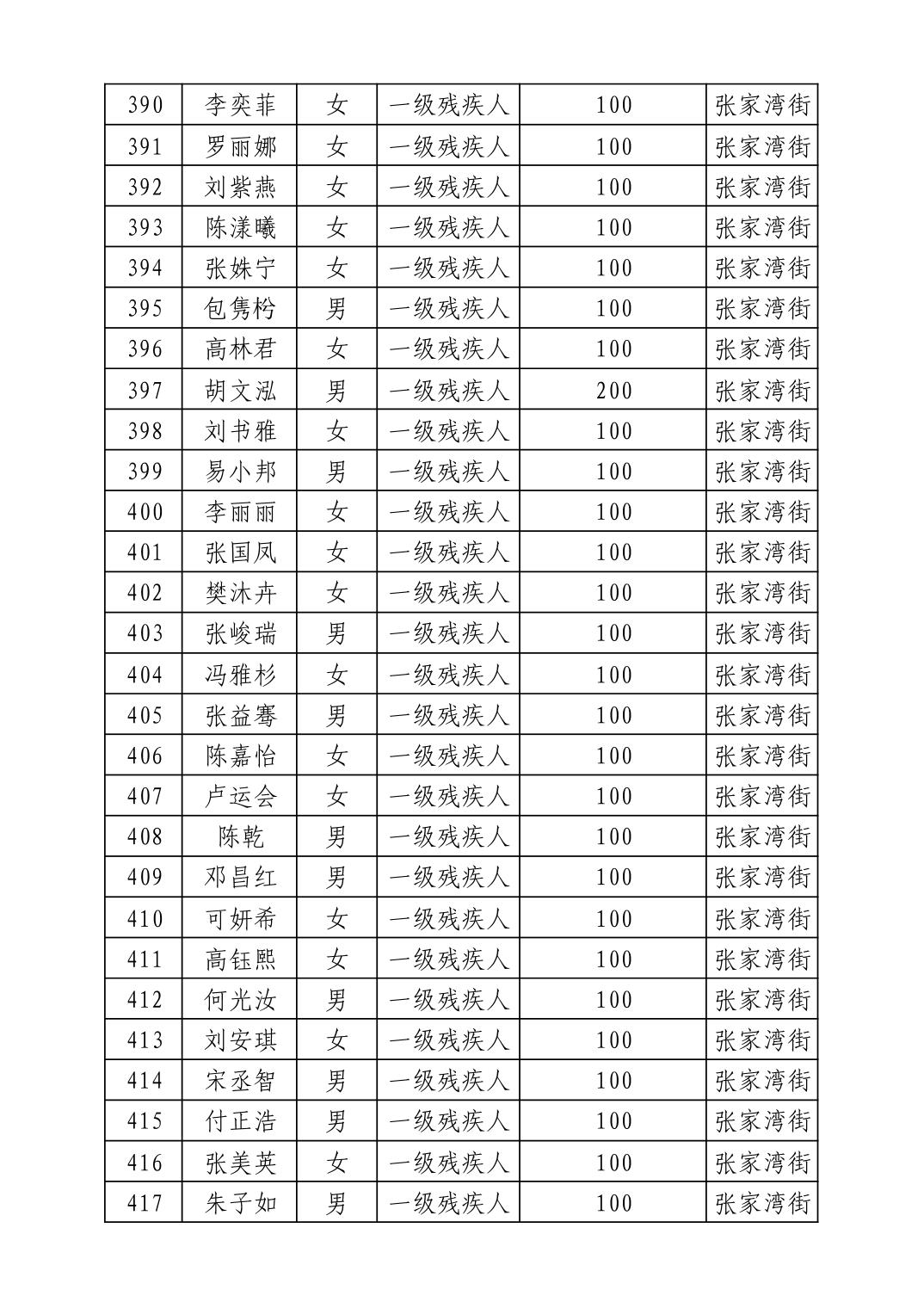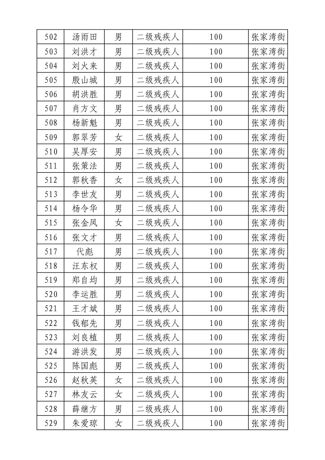 名 称:2025年11月武汉市洪山区重度残疾人护理补贴发放表