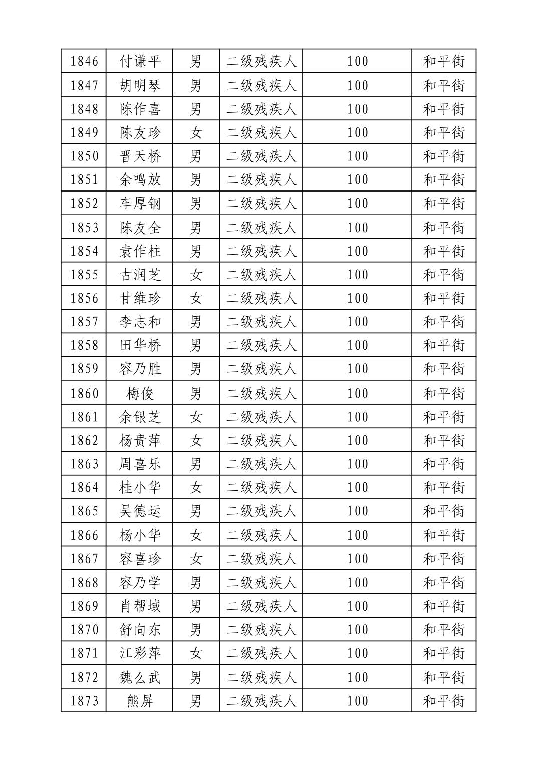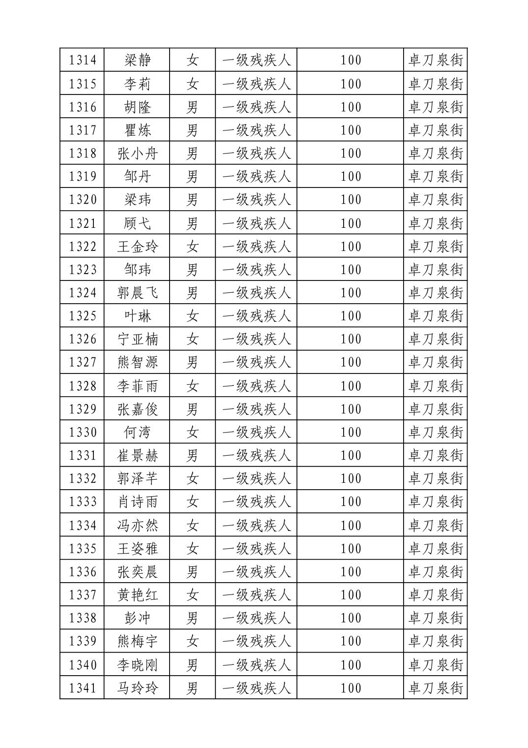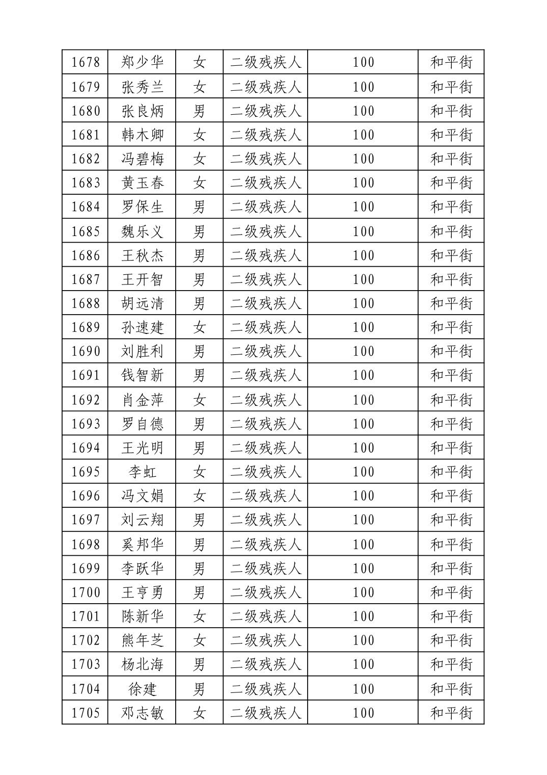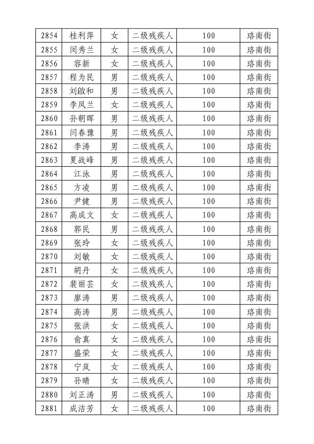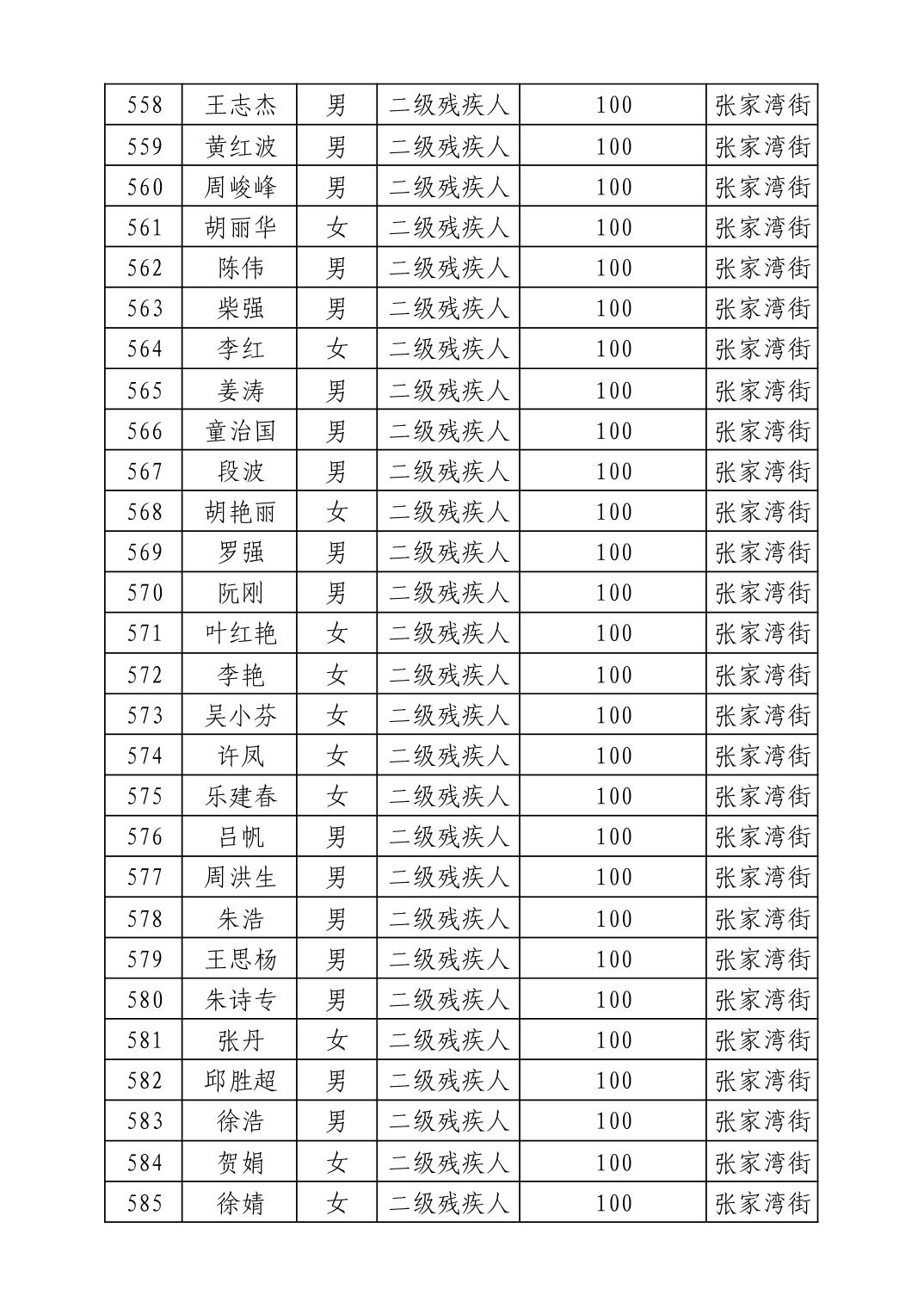 名 称:2025年11月武汉市洪山区重度残疾人护理补贴发放表