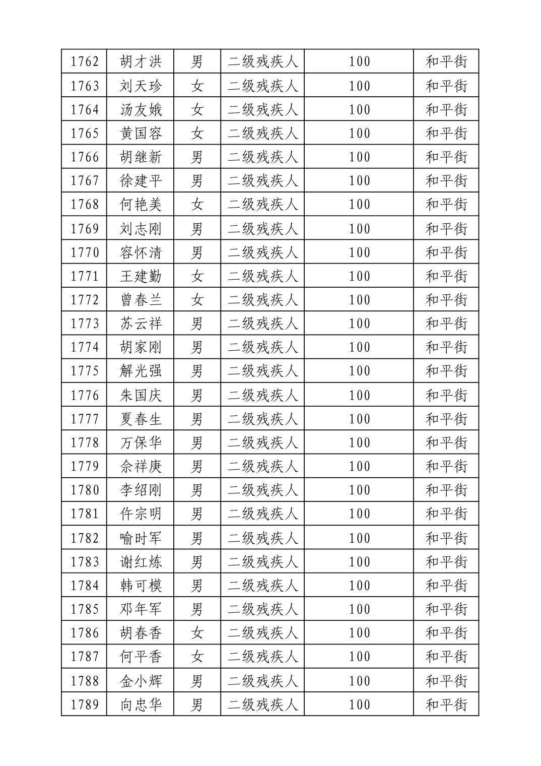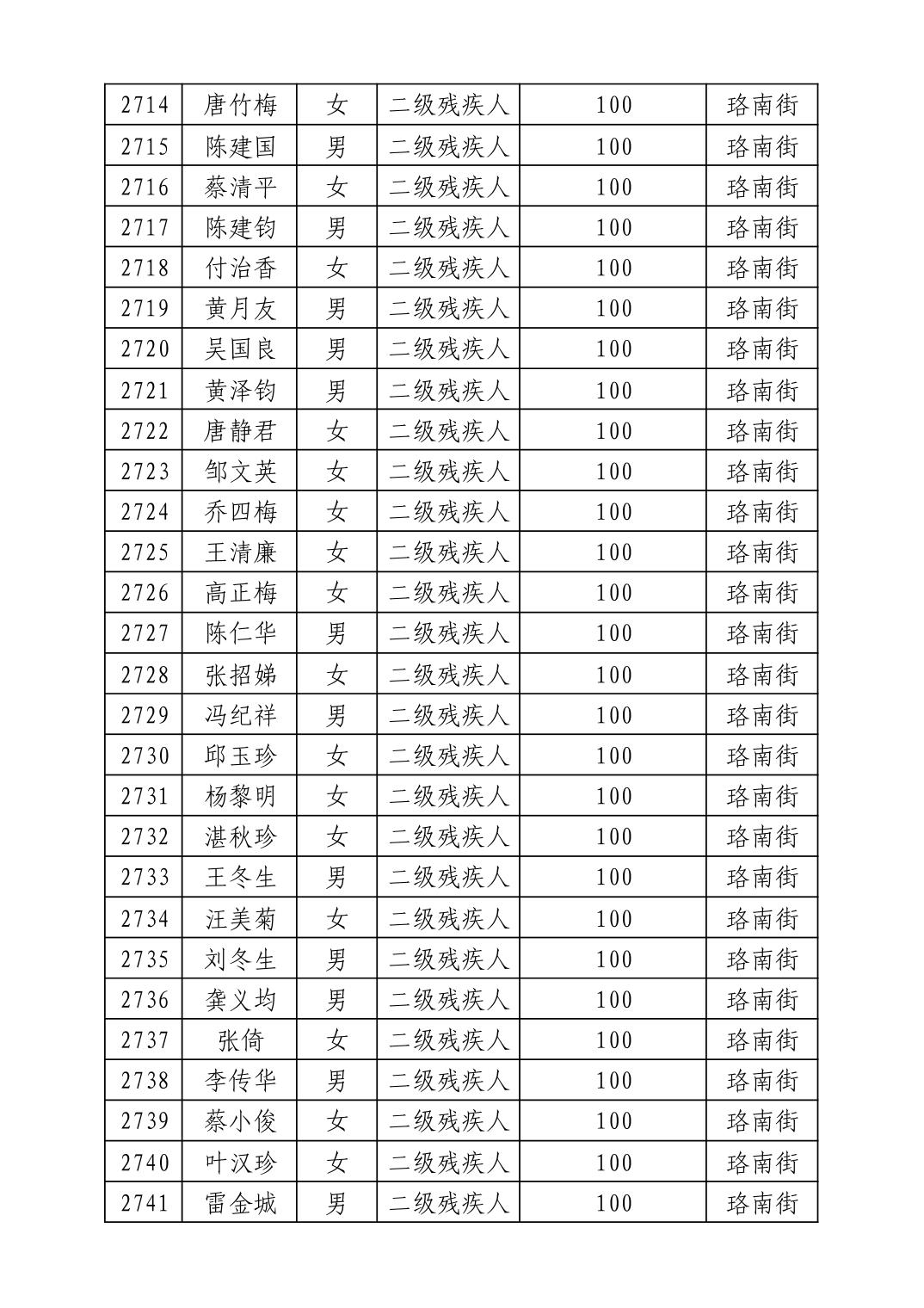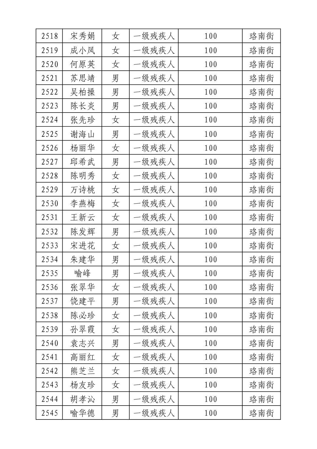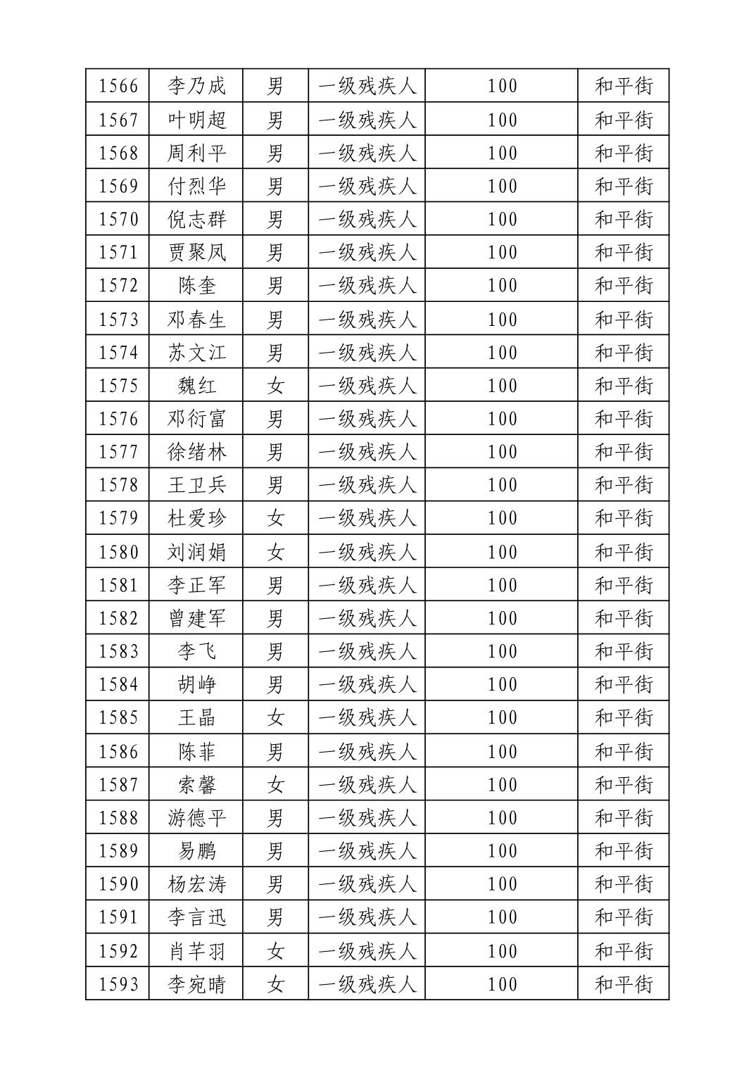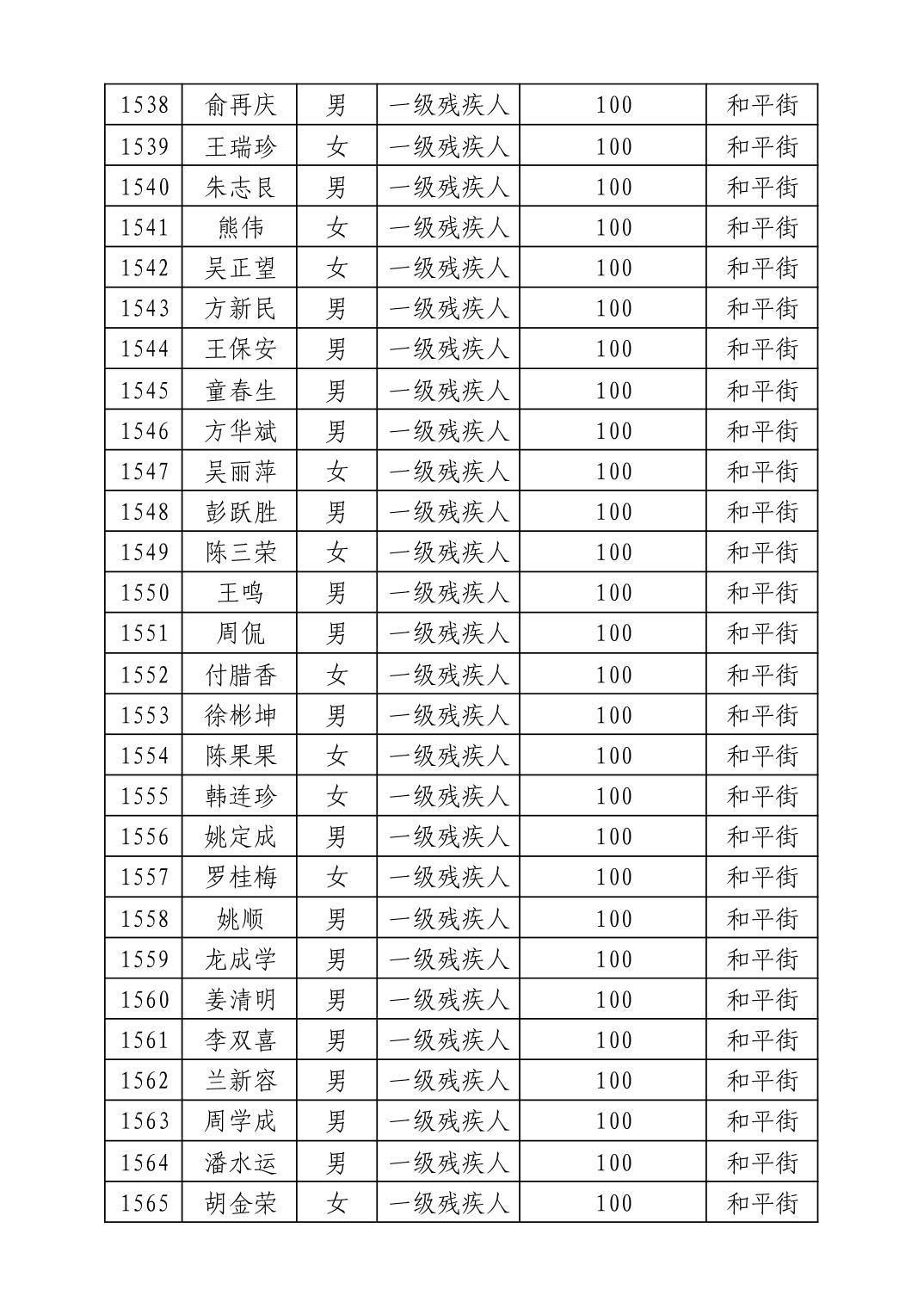 名 称:2025年11月武汉市洪山区重度残疾人护理补贴发放表