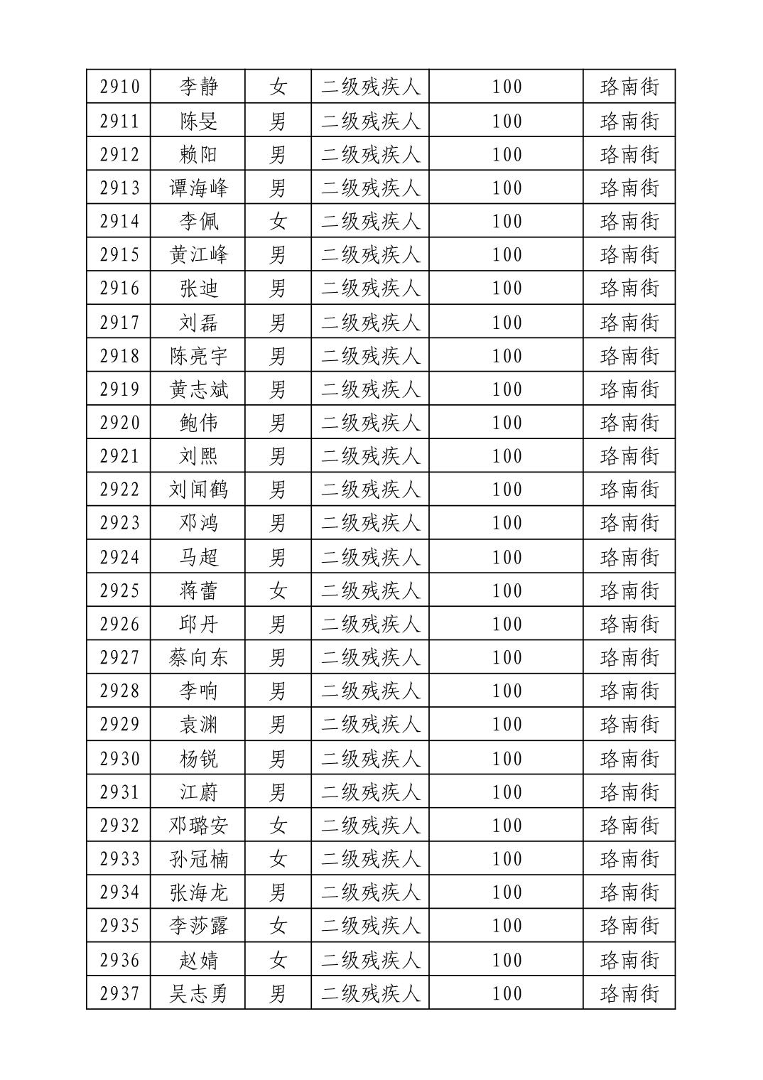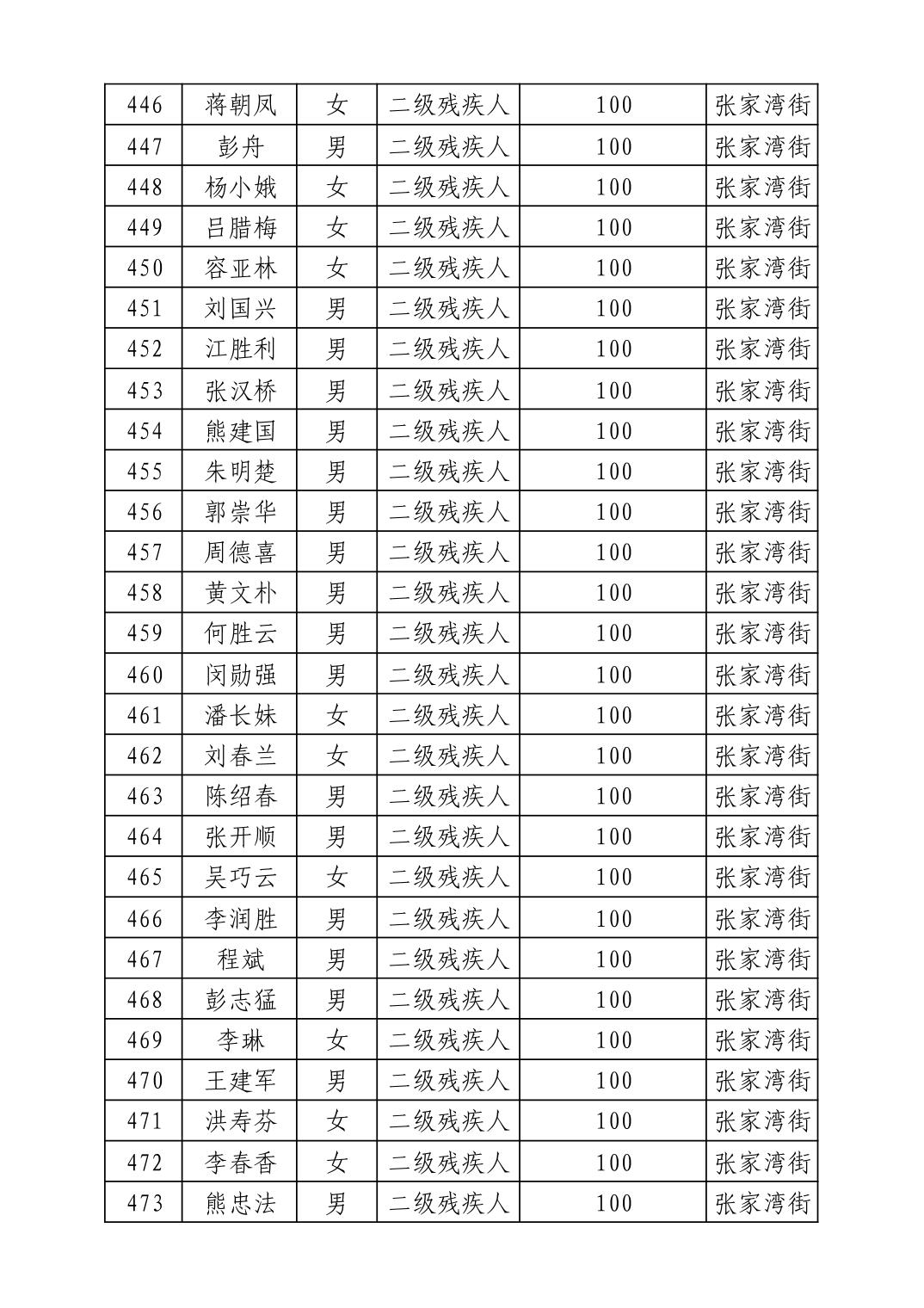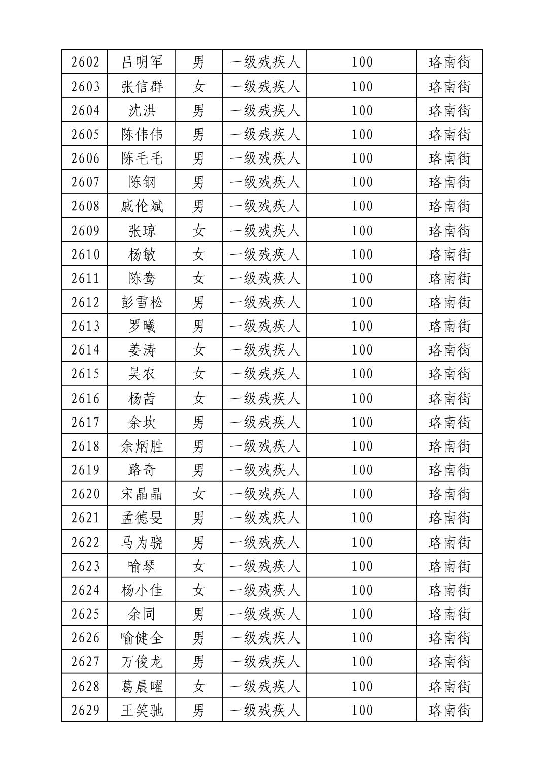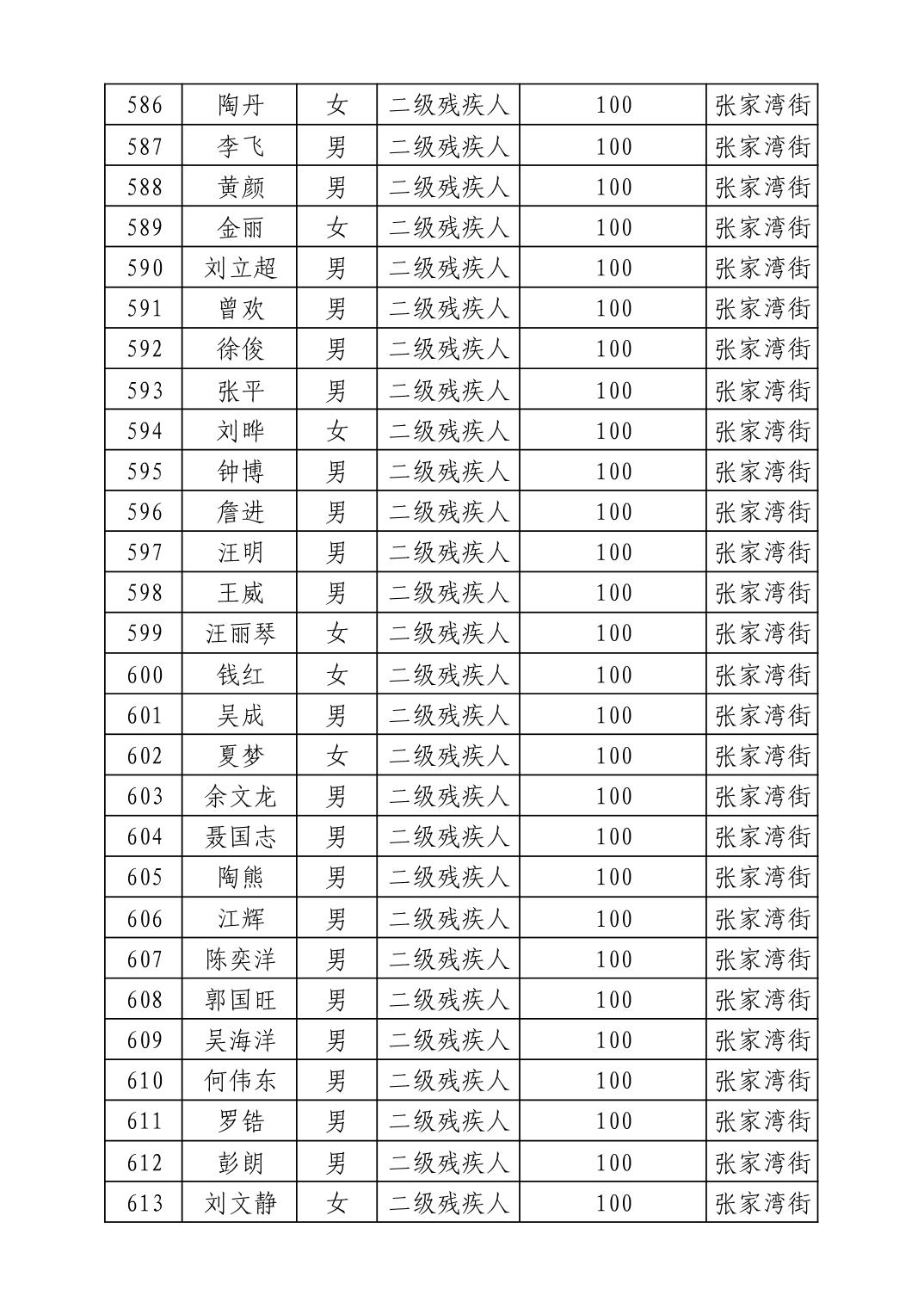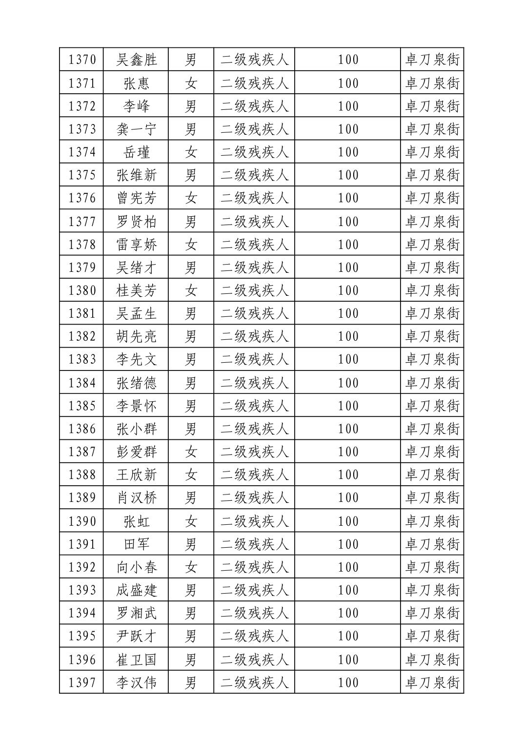 名 称:2025年11月武汉市洪山区重度残疾人护理补贴发放表