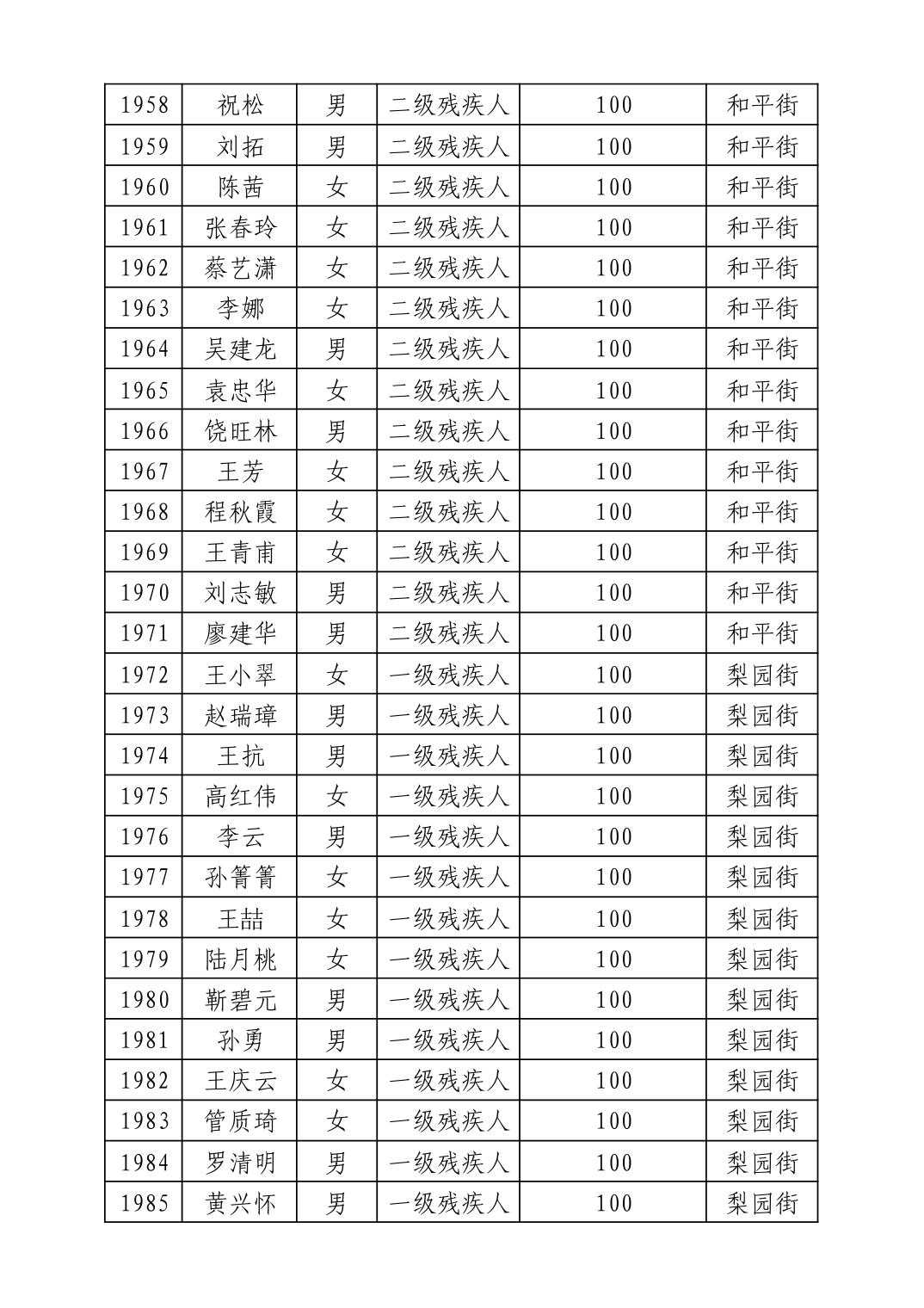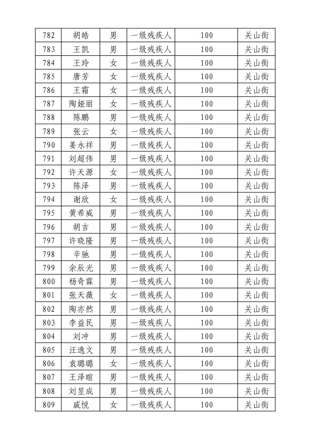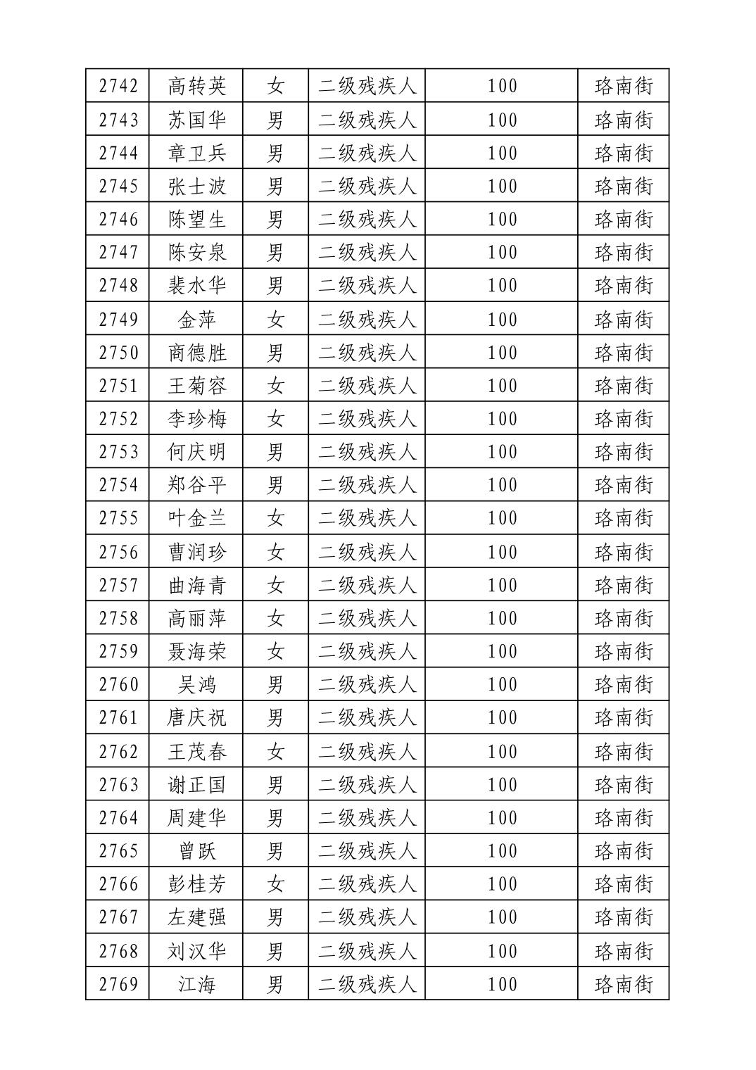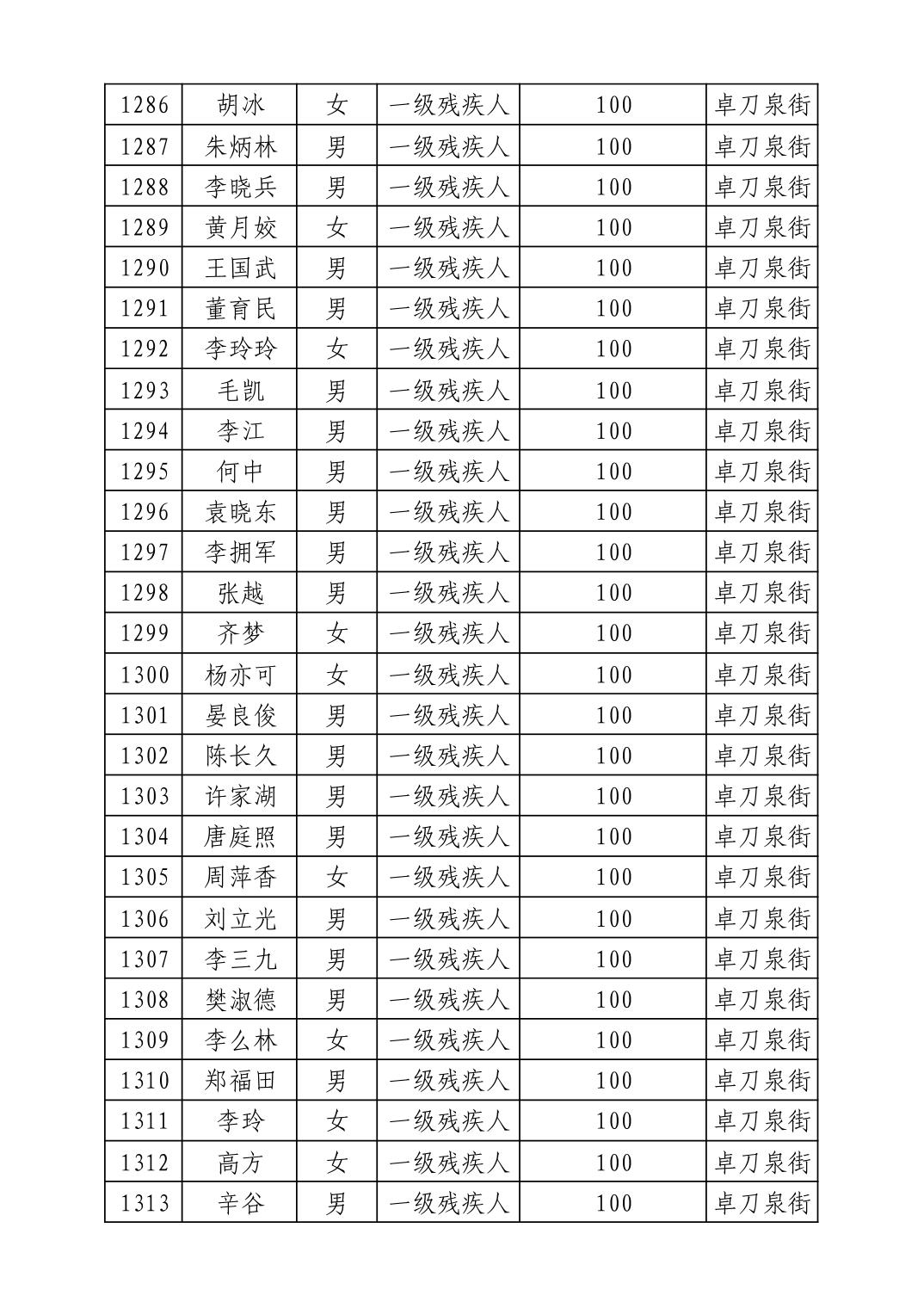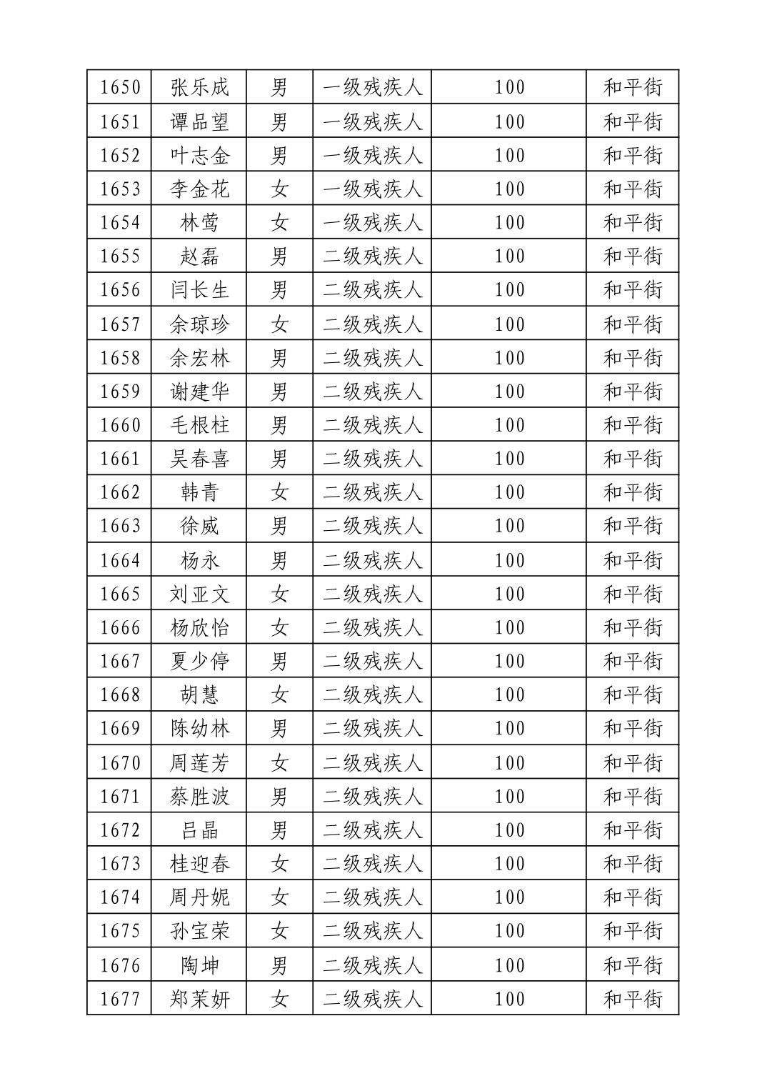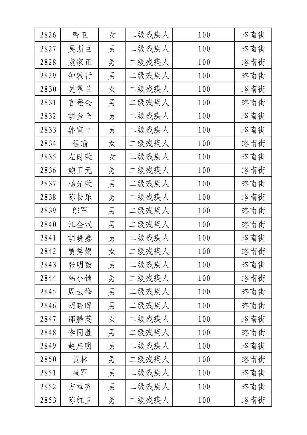名 称:2025年11月武汉市洪山区重度残疾人护理补贴发放表