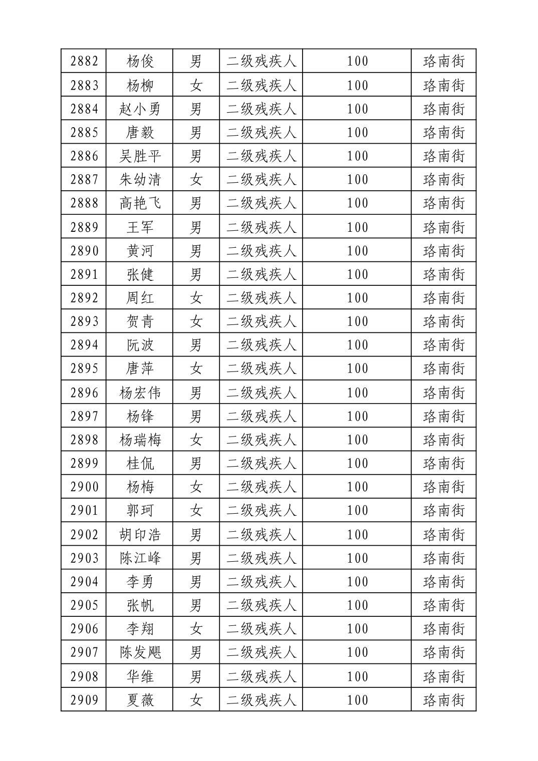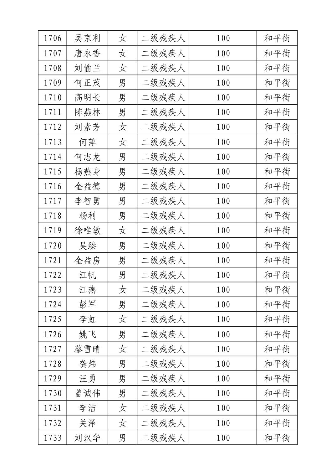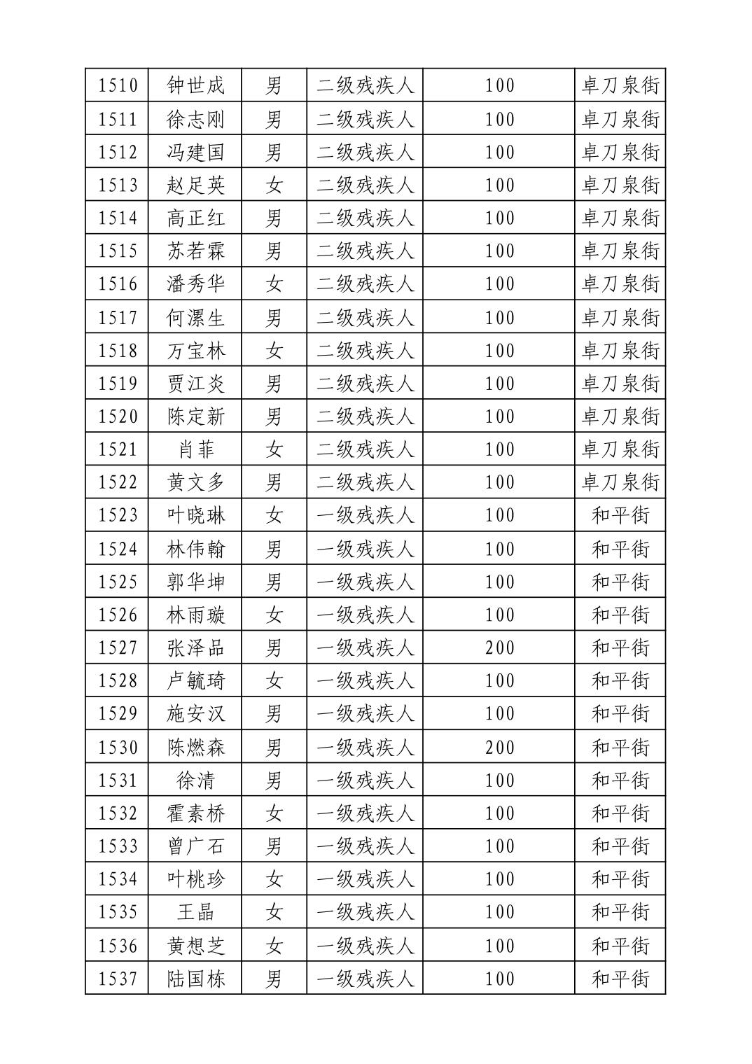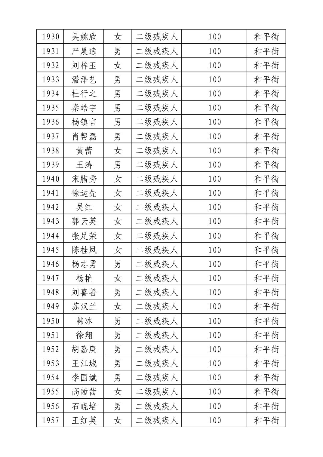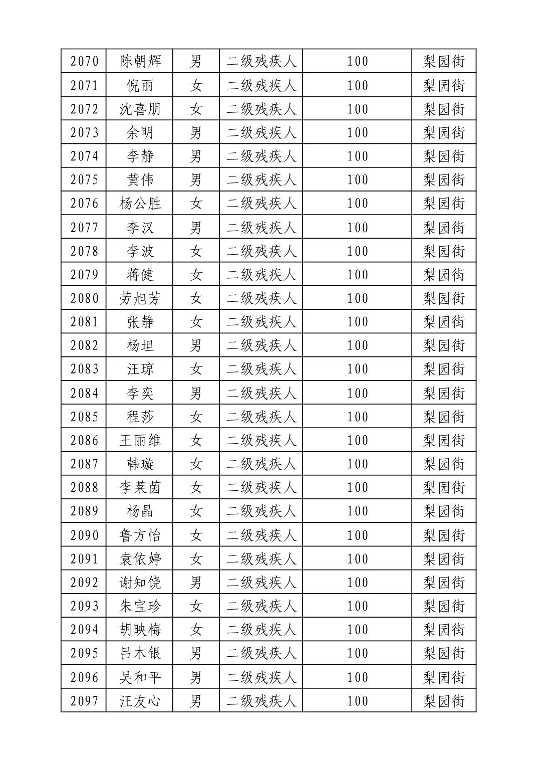 名 称:2025年11月武汉市洪山区重度残疾人护理补贴发放表