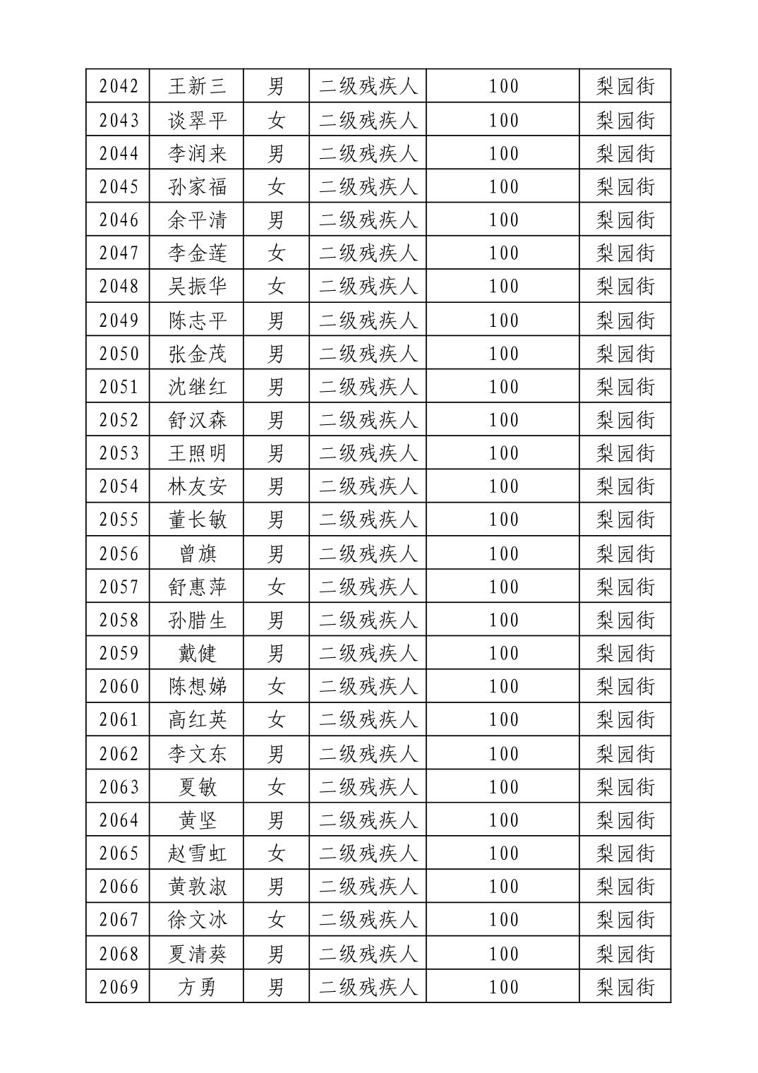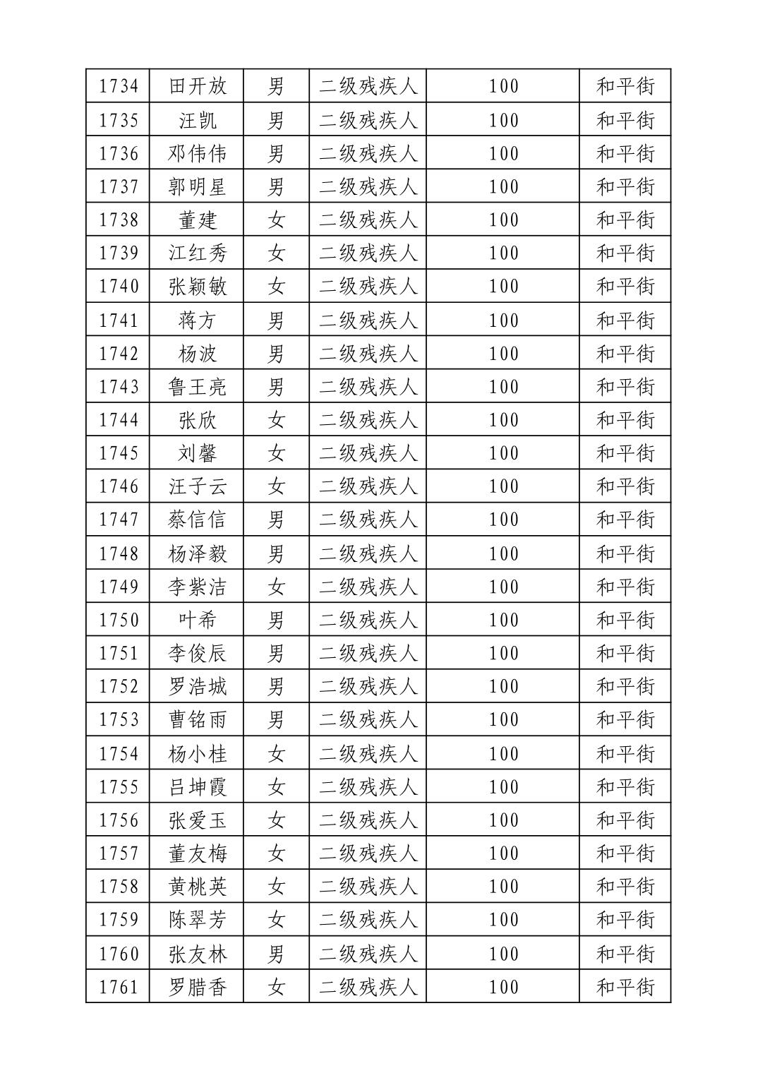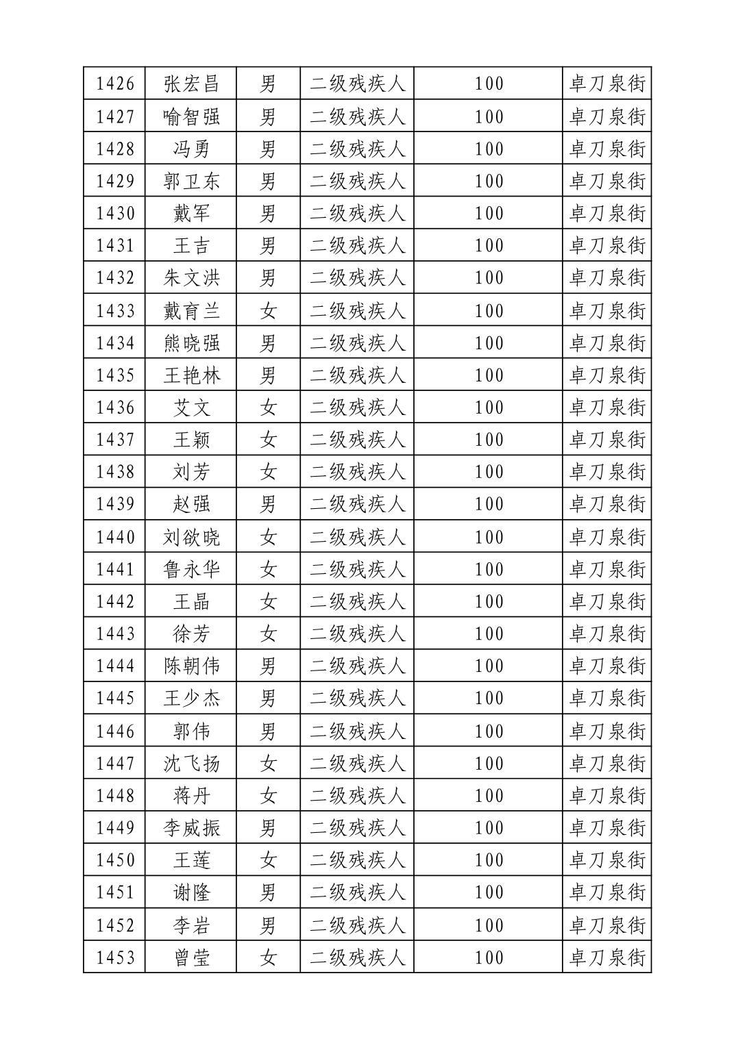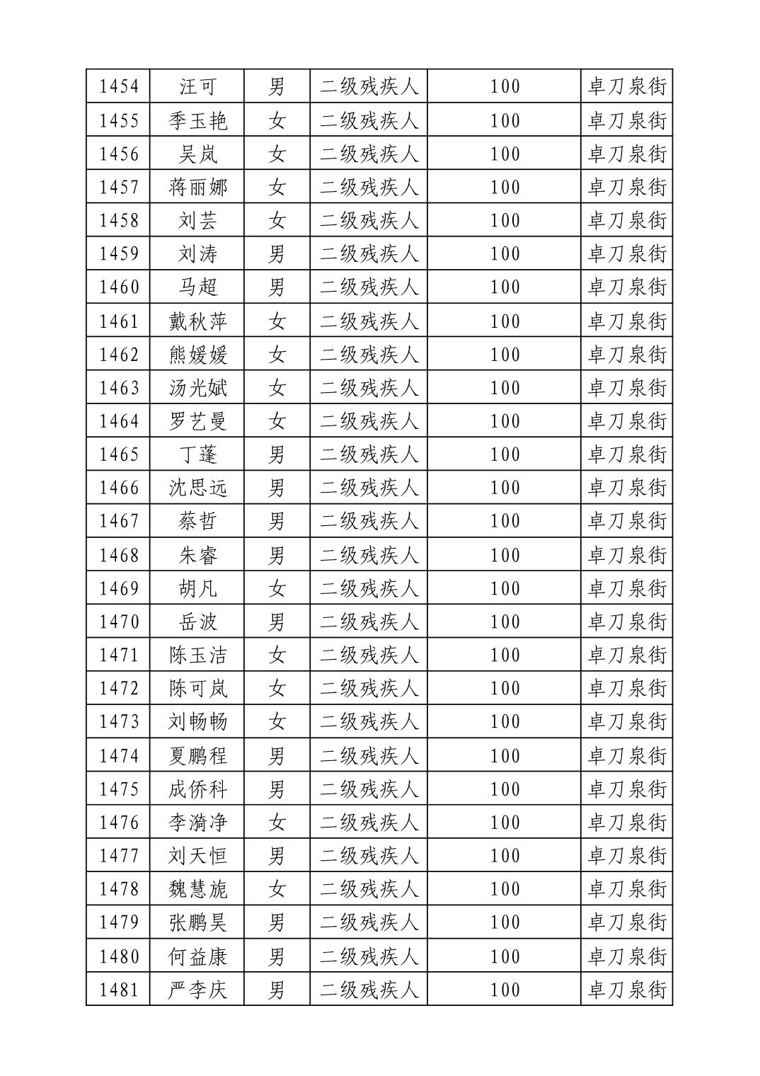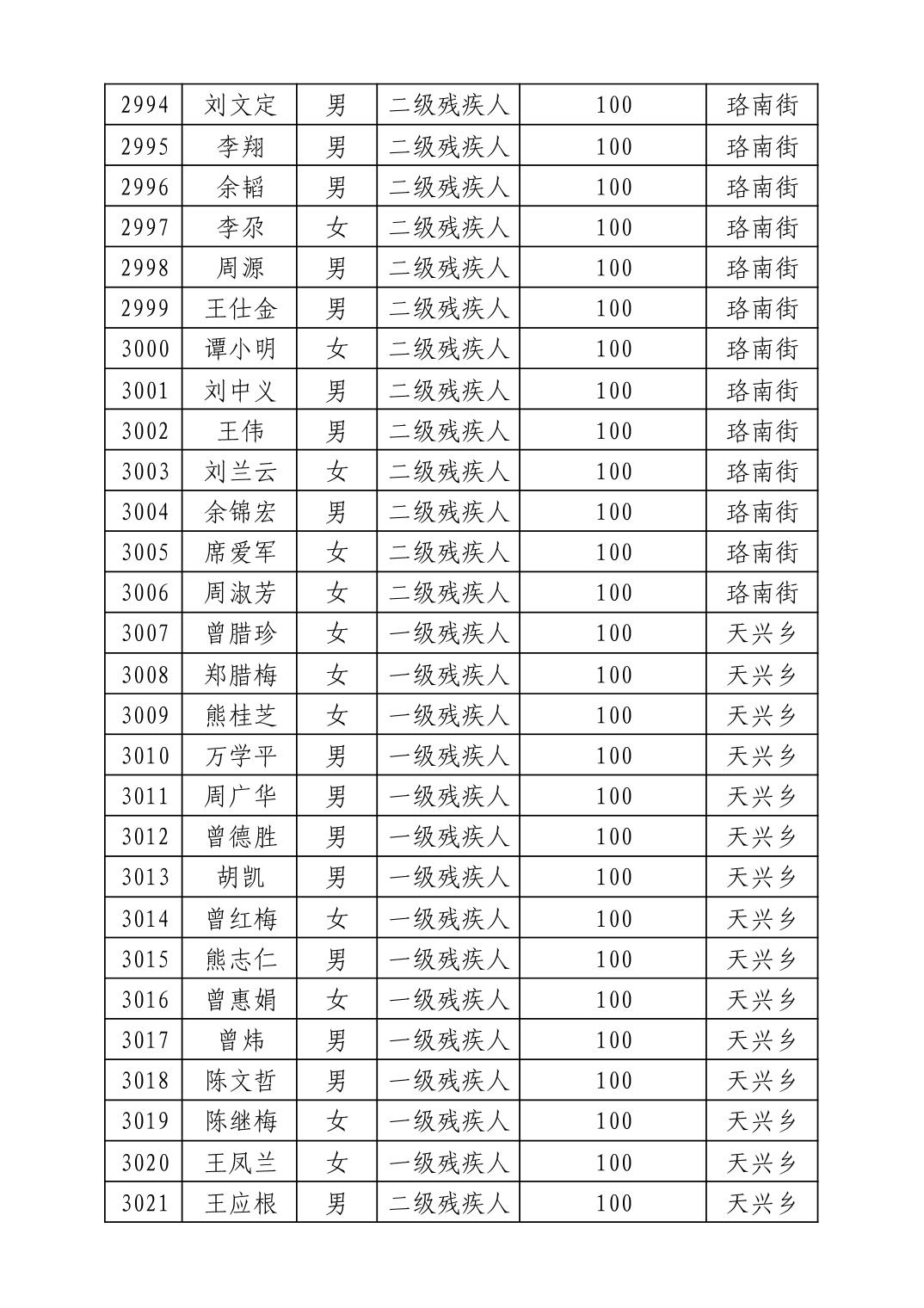 名 称:2025年11月武汉市洪山区重度残疾人护理补贴发放表