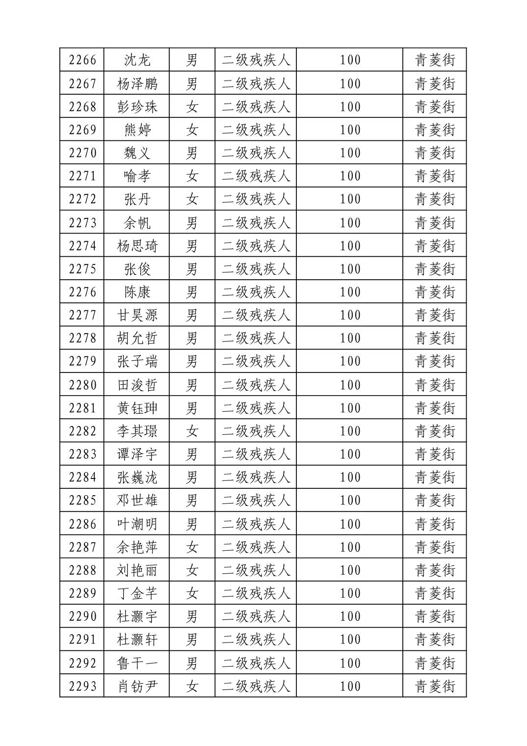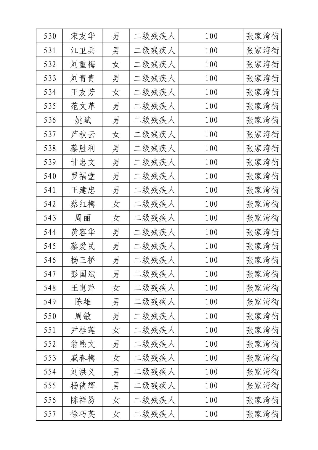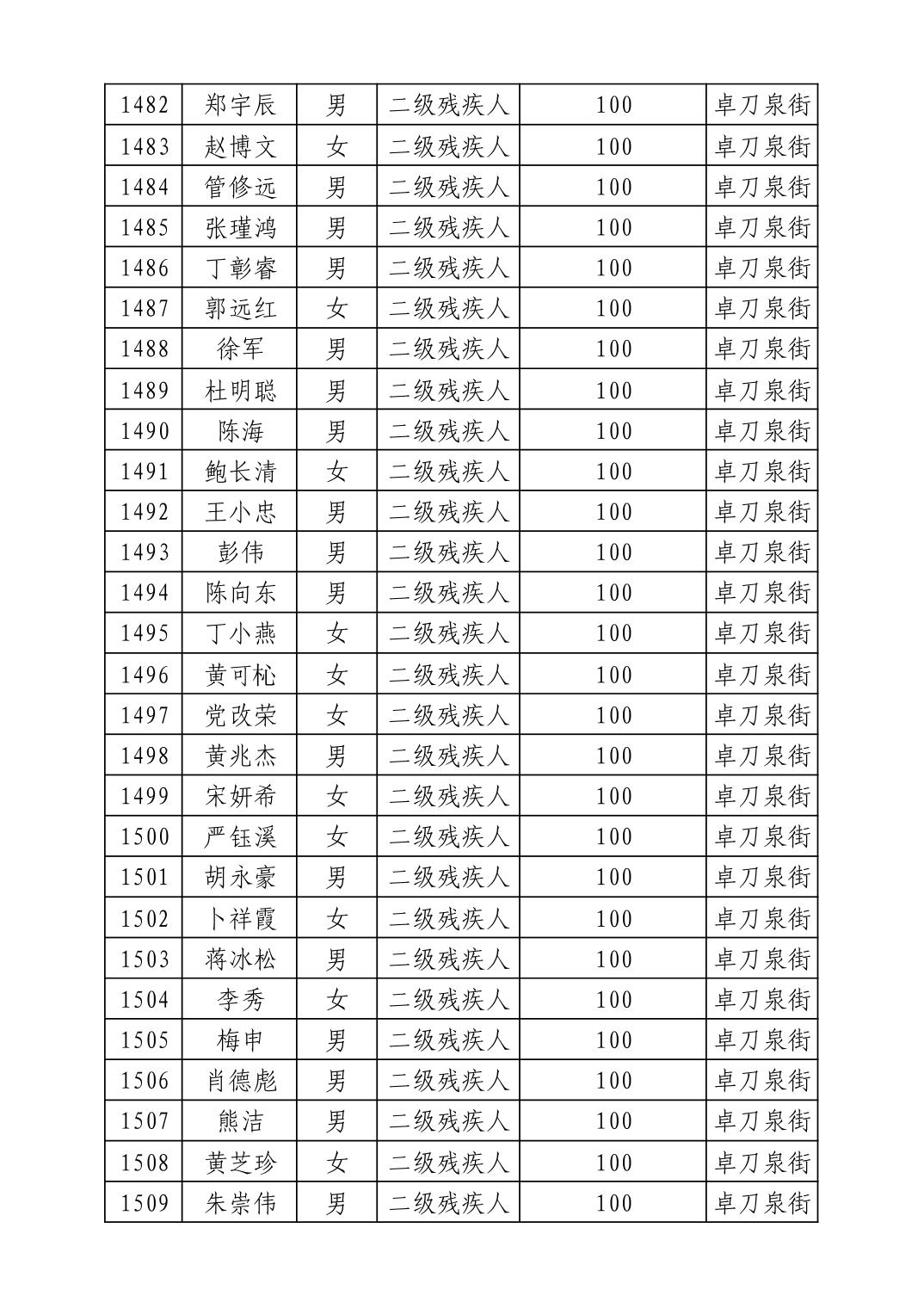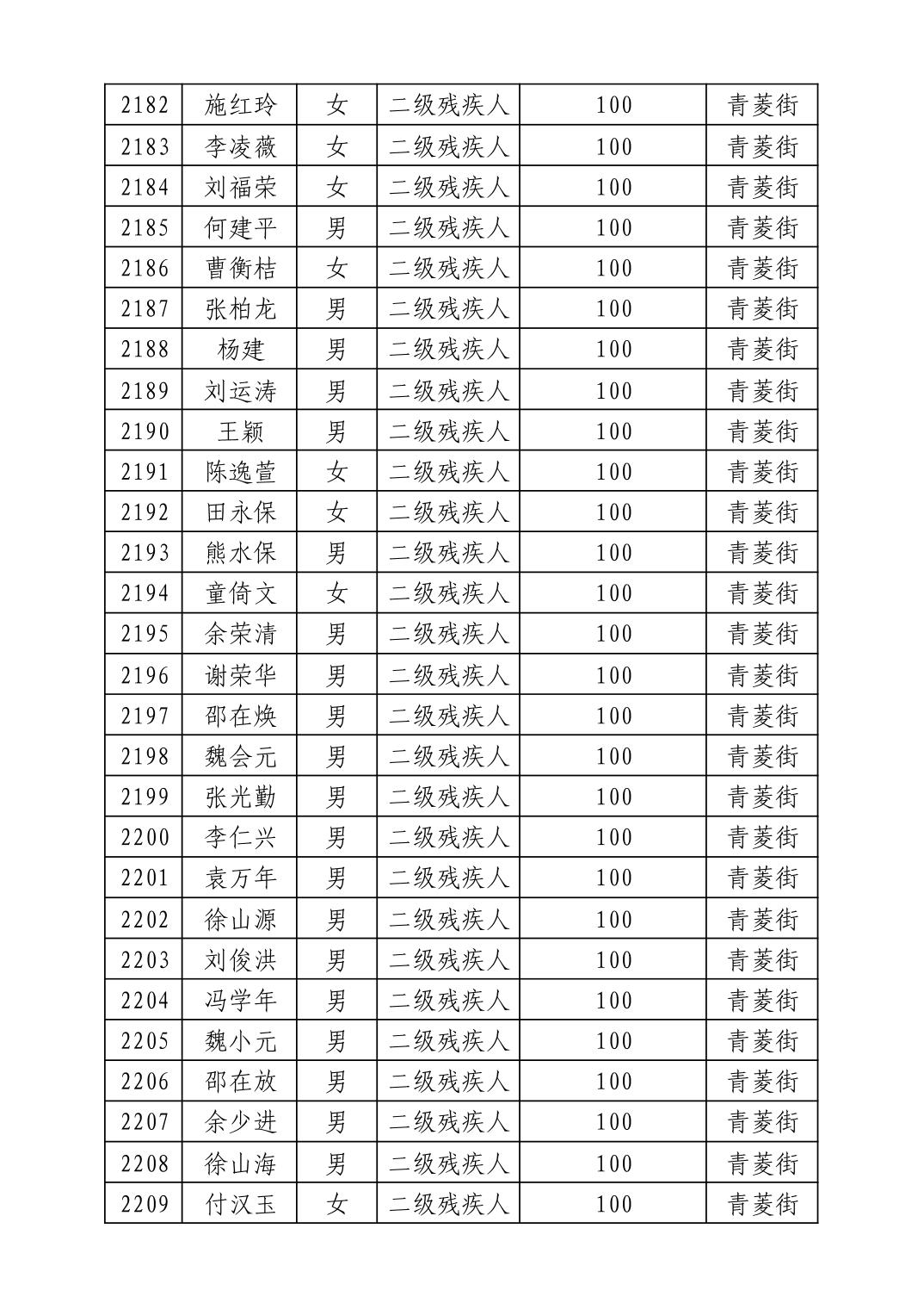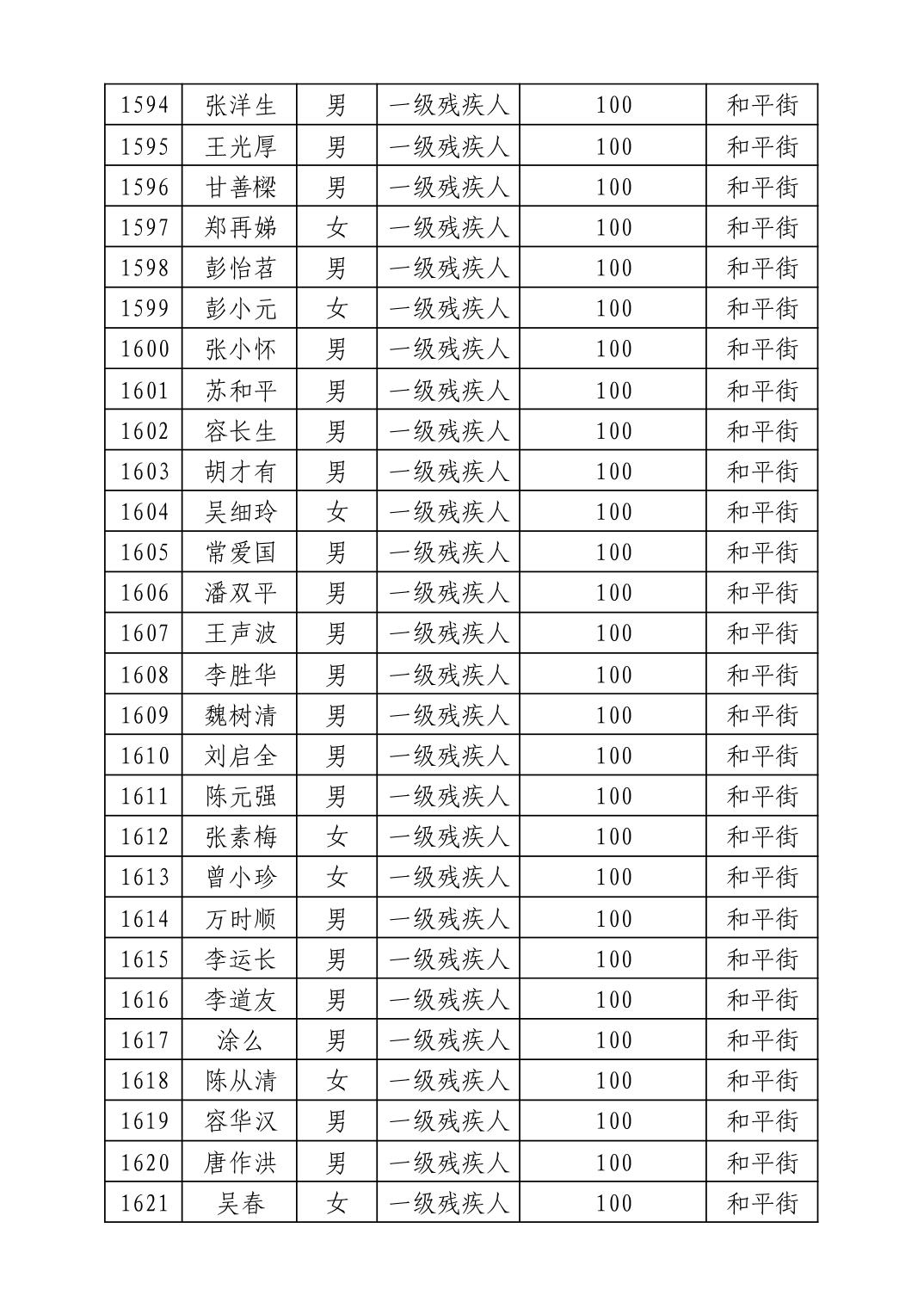 名 称:2025年11月武汉市洪山区重度残疾人护理补贴发放表