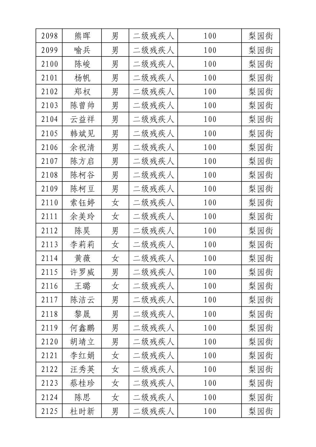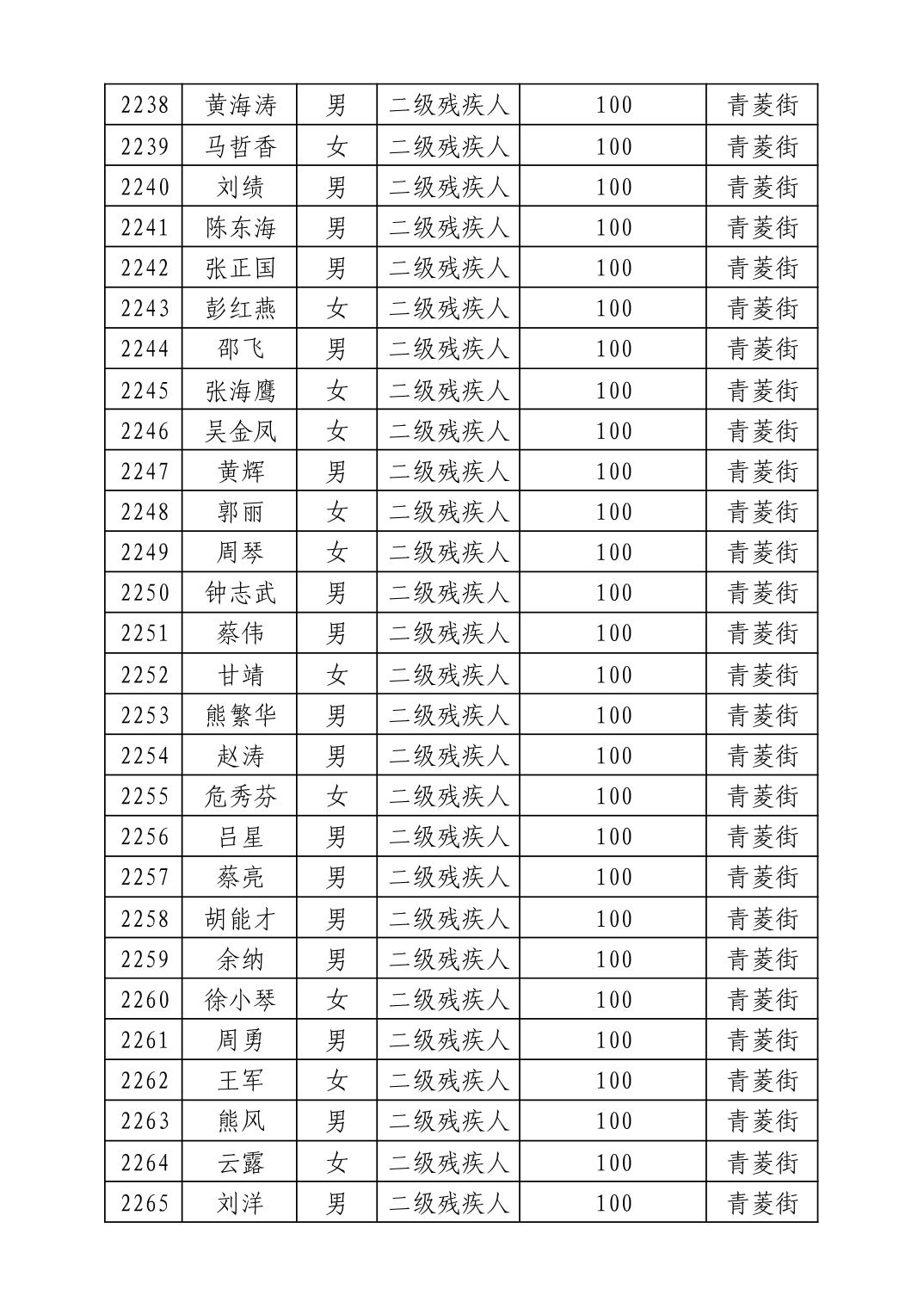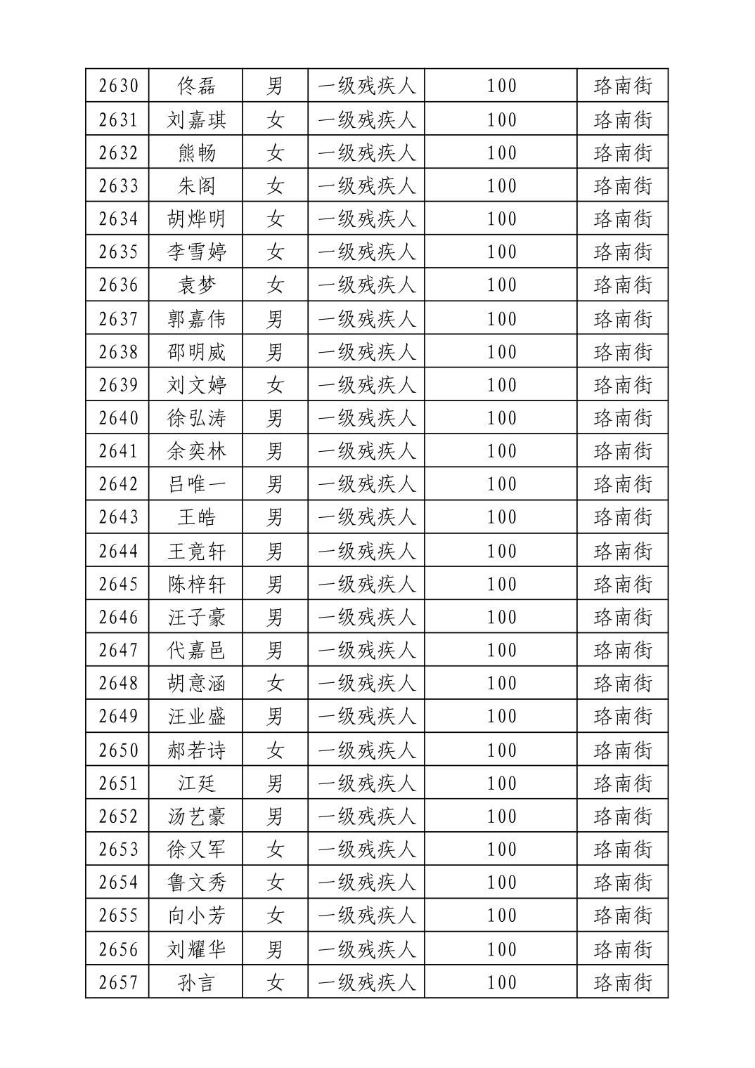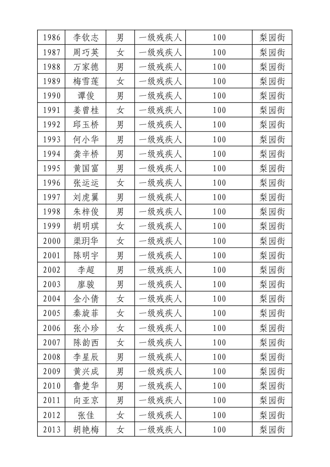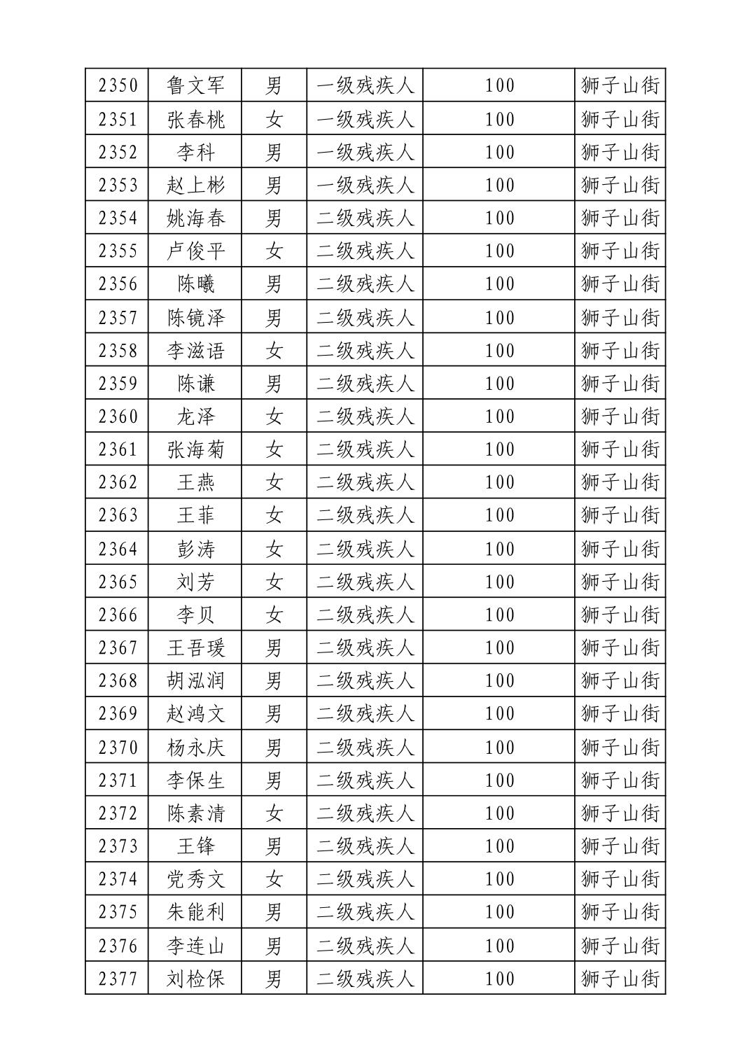 名 称:2025年11月武汉市洪山区重度残疾人护理补贴发放表