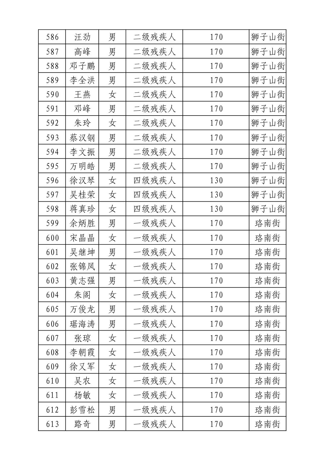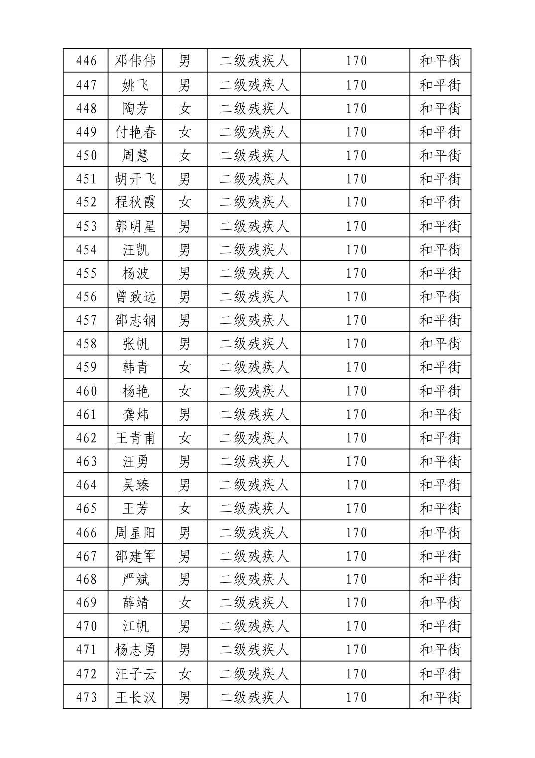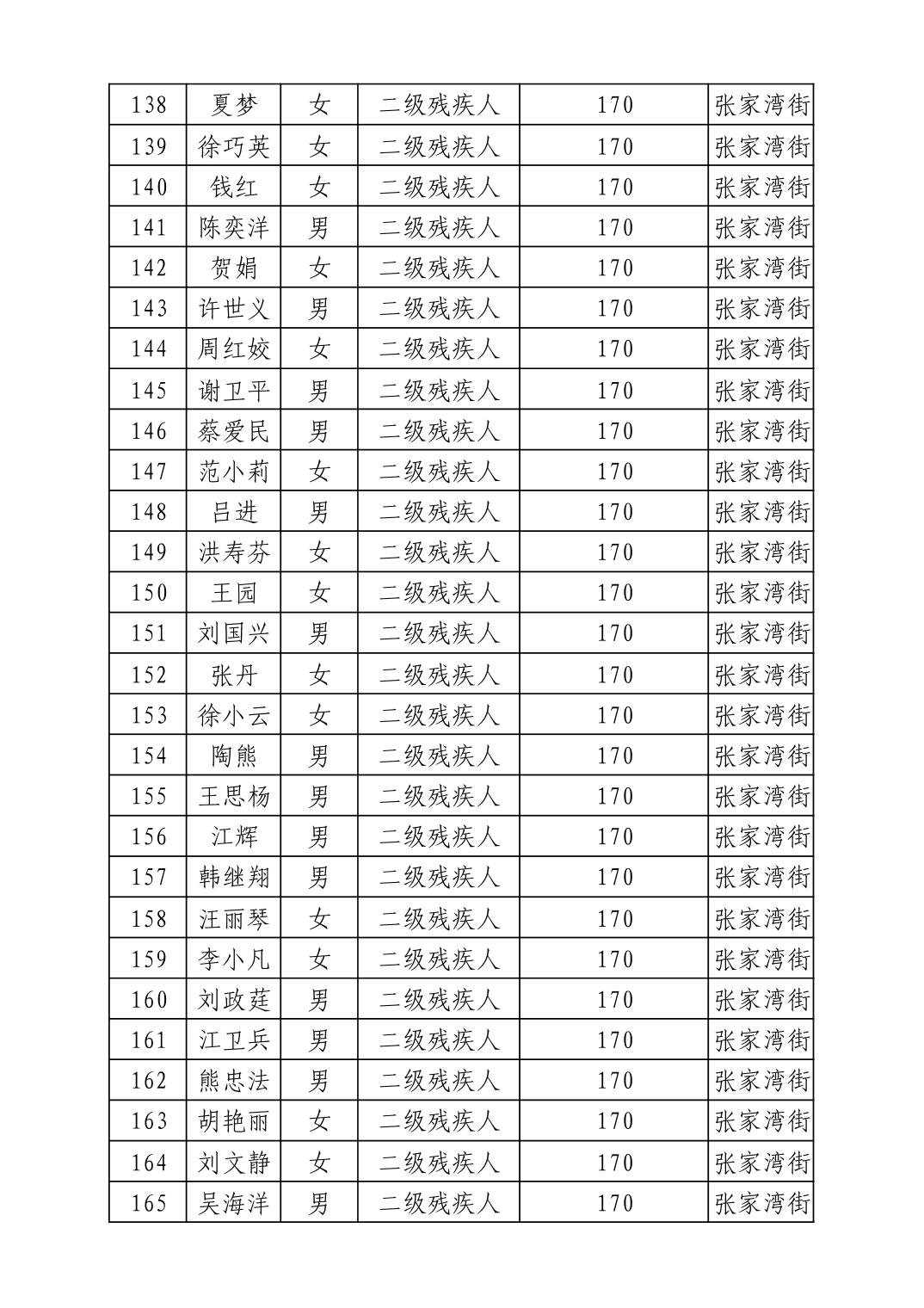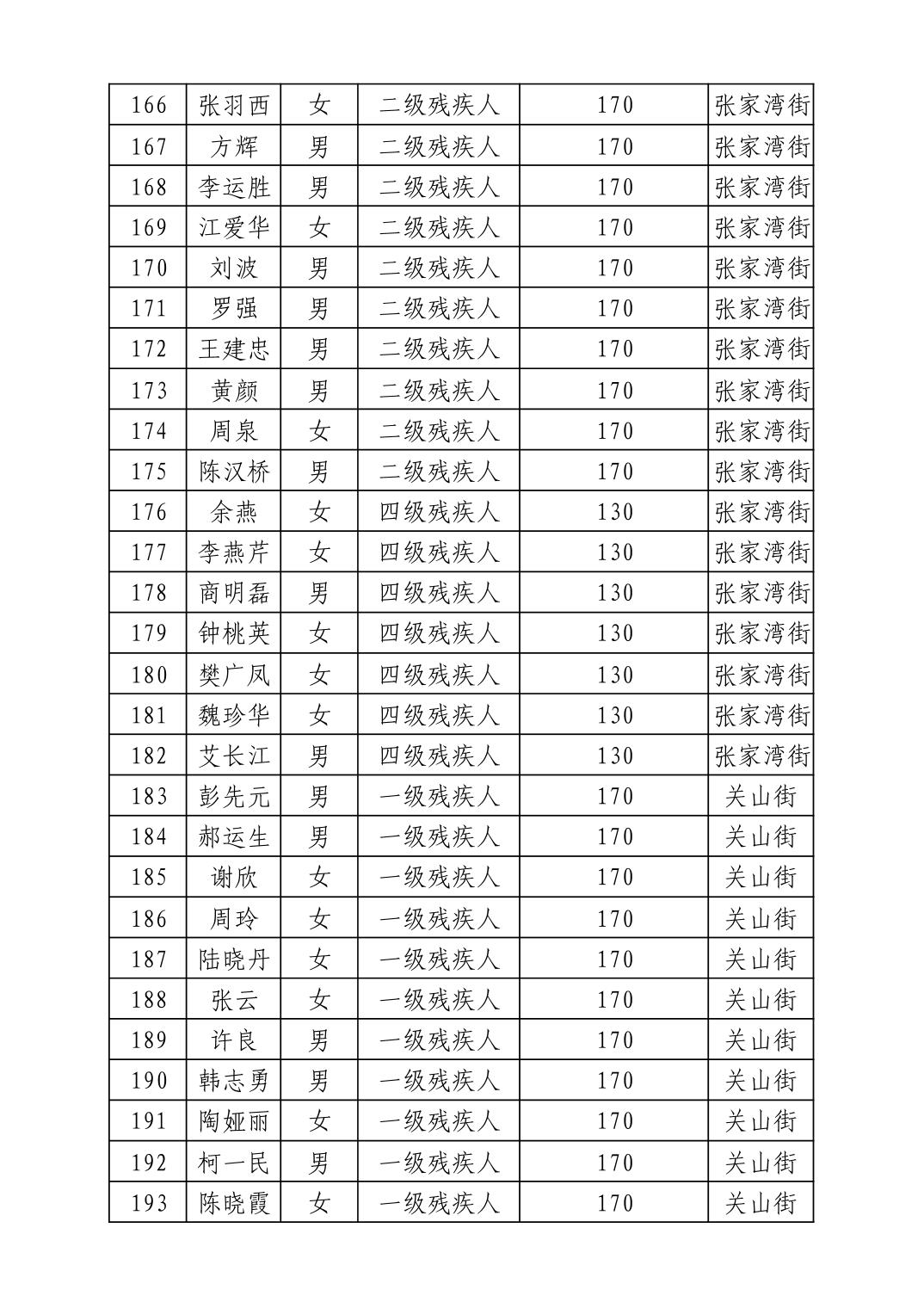 名 称:2025年12月武汉市洪山区困难残疾人生活补贴发放表