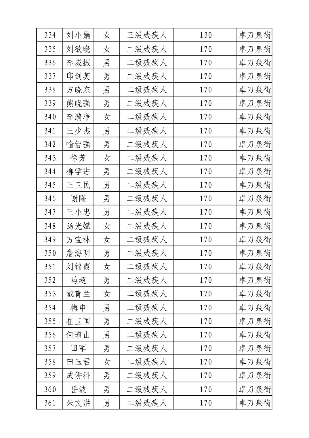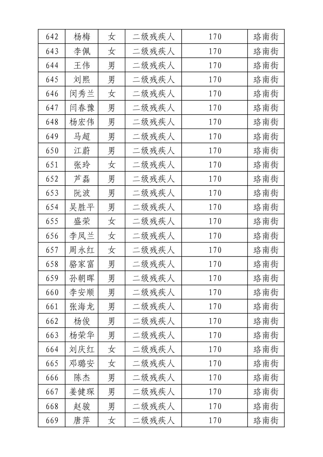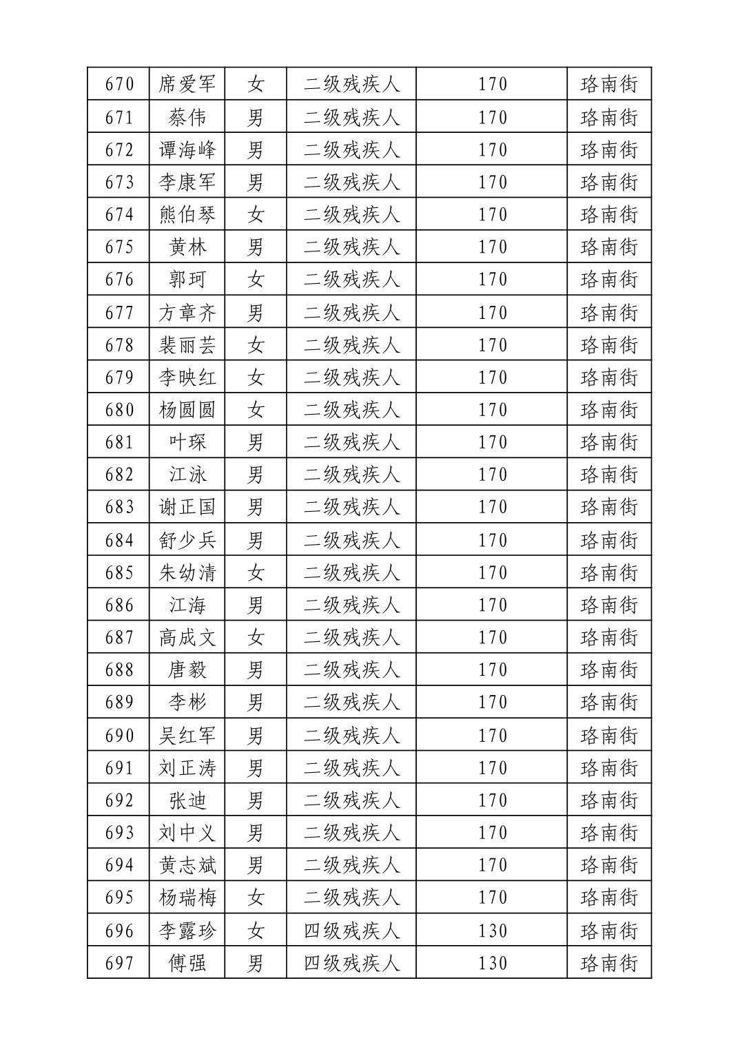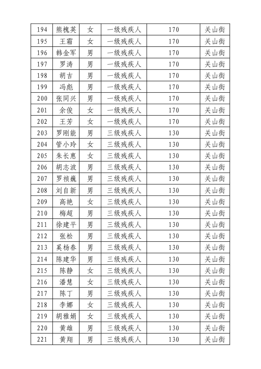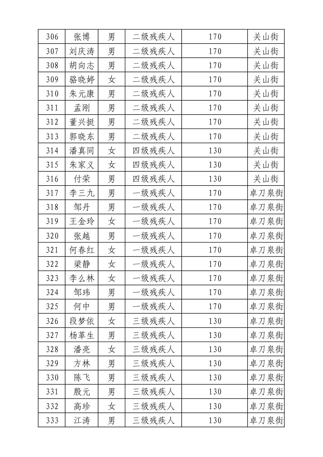 名 称:2025年12月武汉市洪山区困难残疾人生活补贴发放表