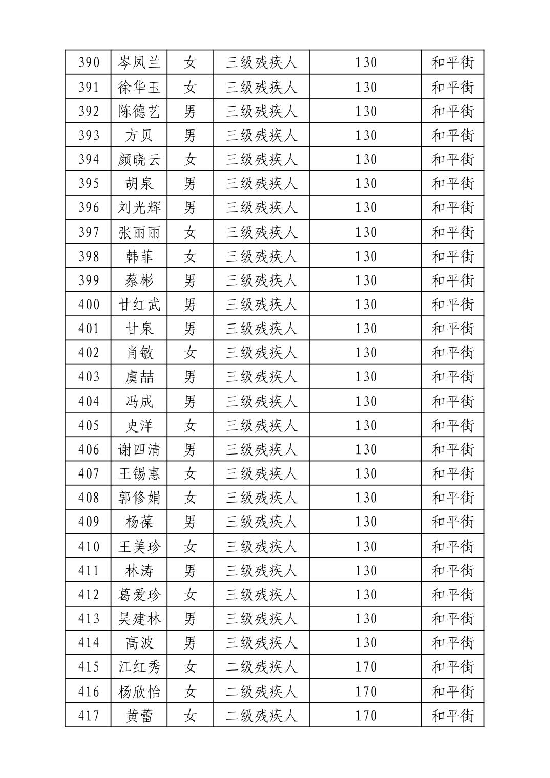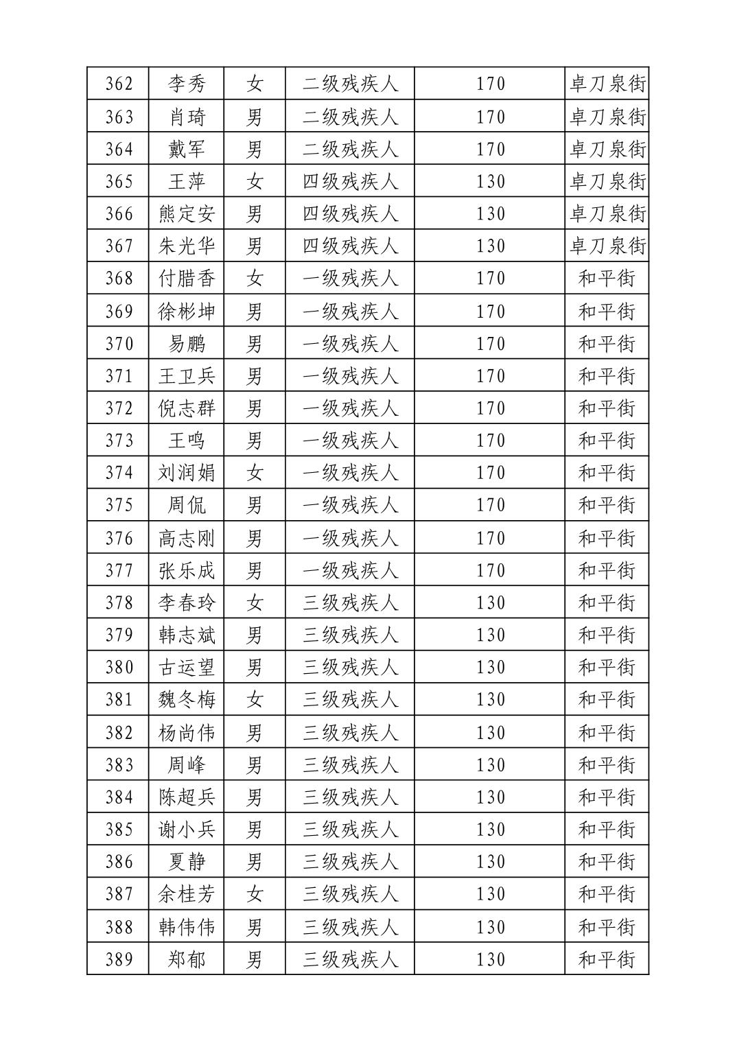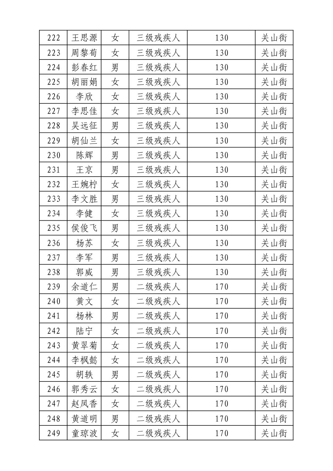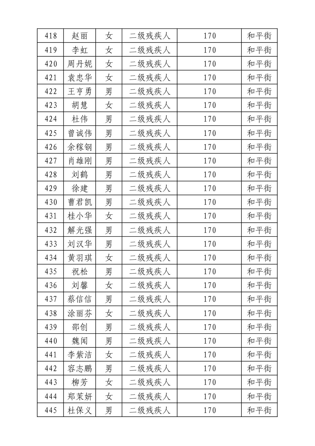 名 称:2025年12月武汉市洪山区困难残疾人生活补贴发放表