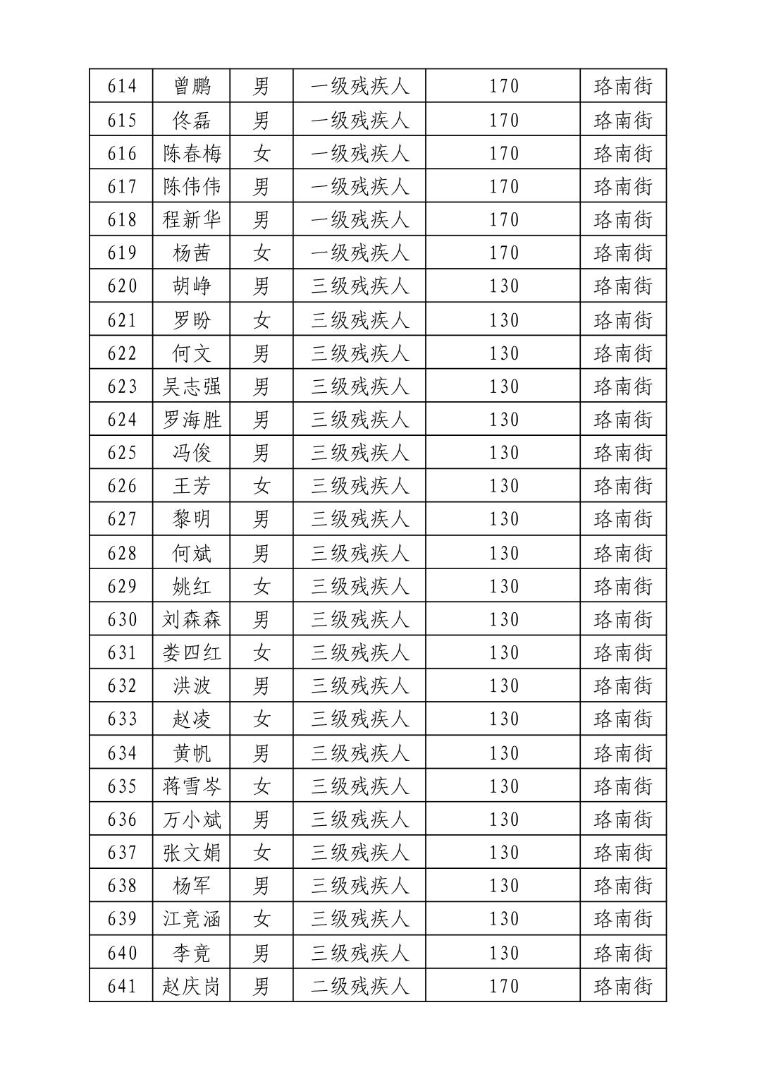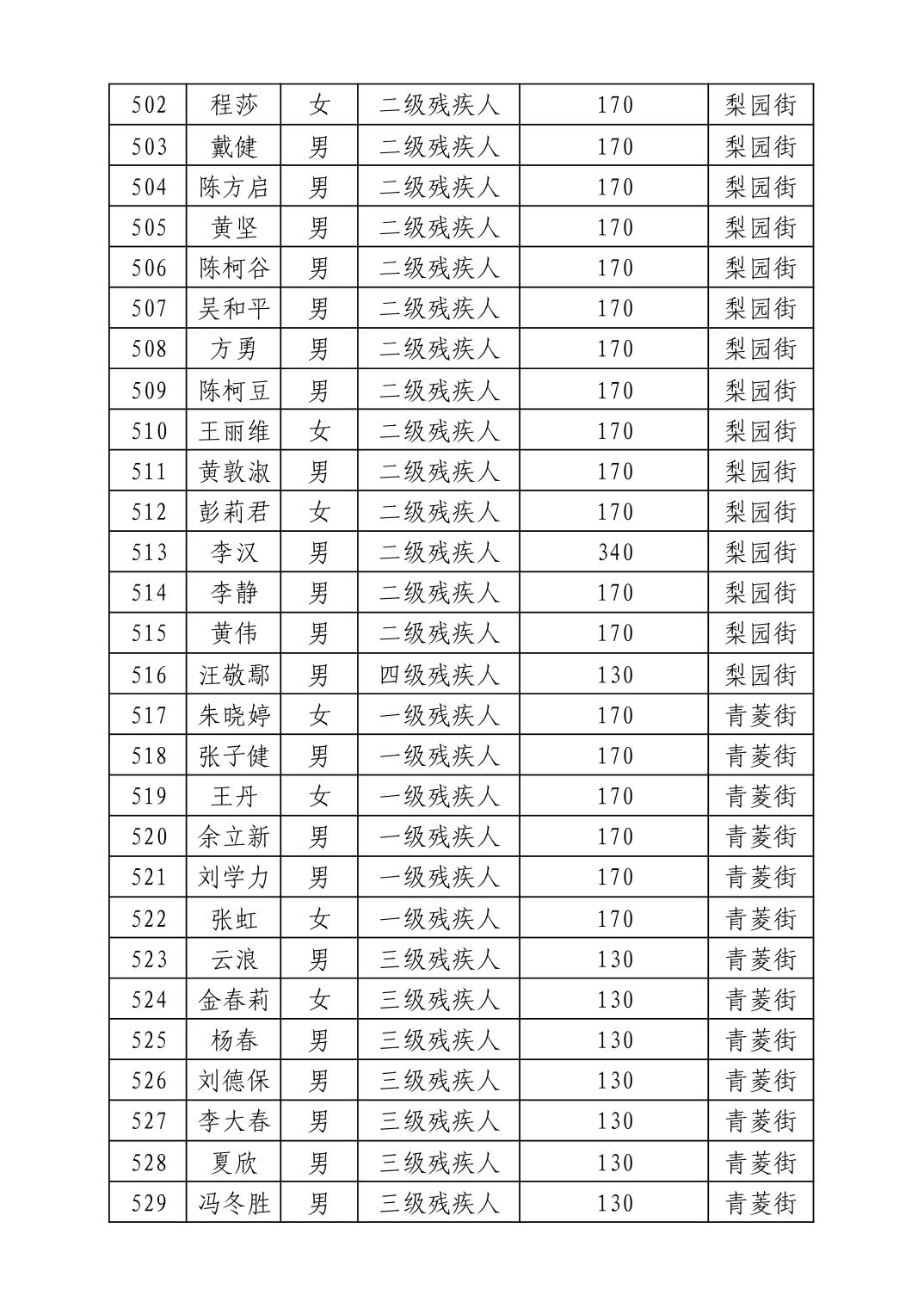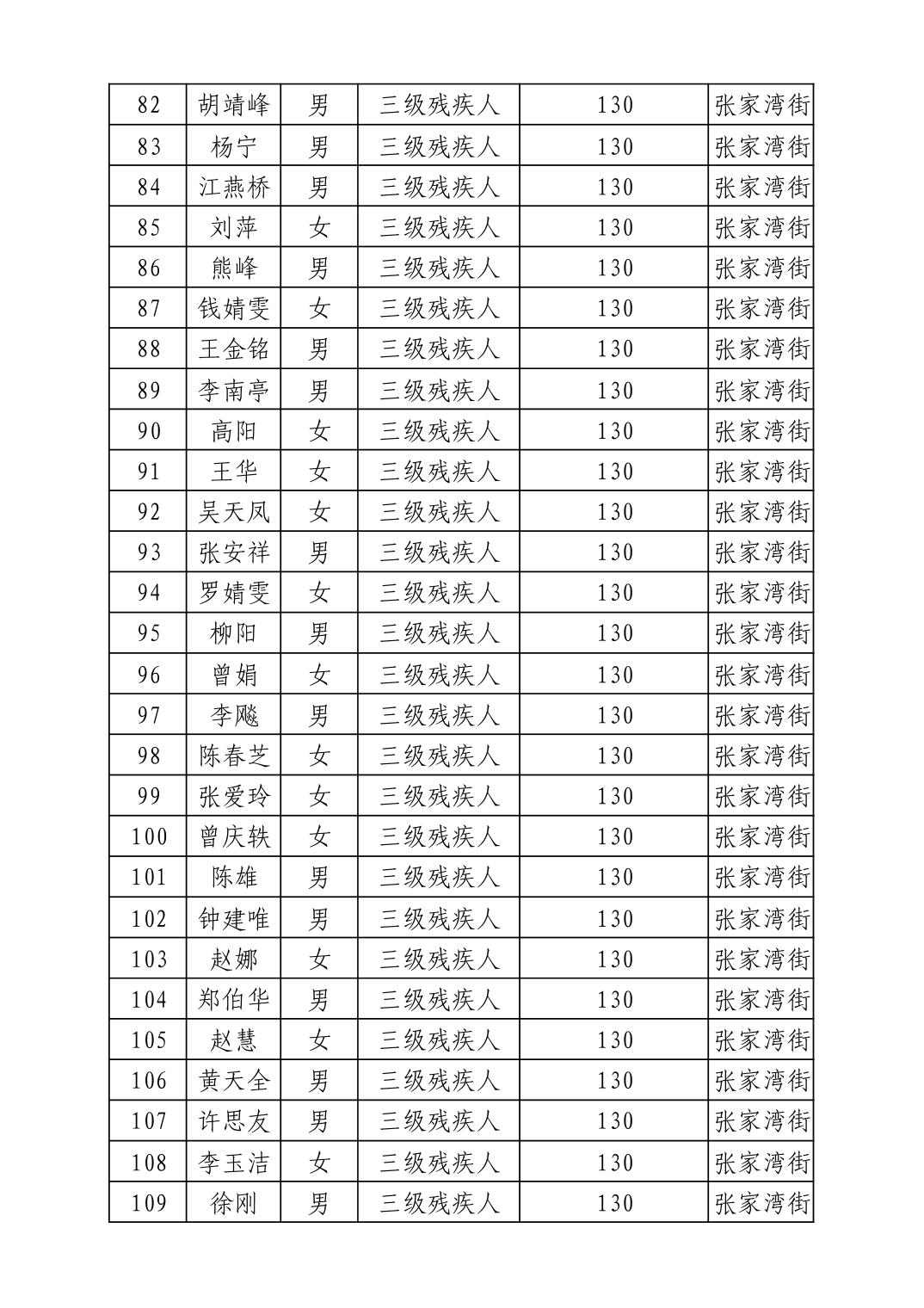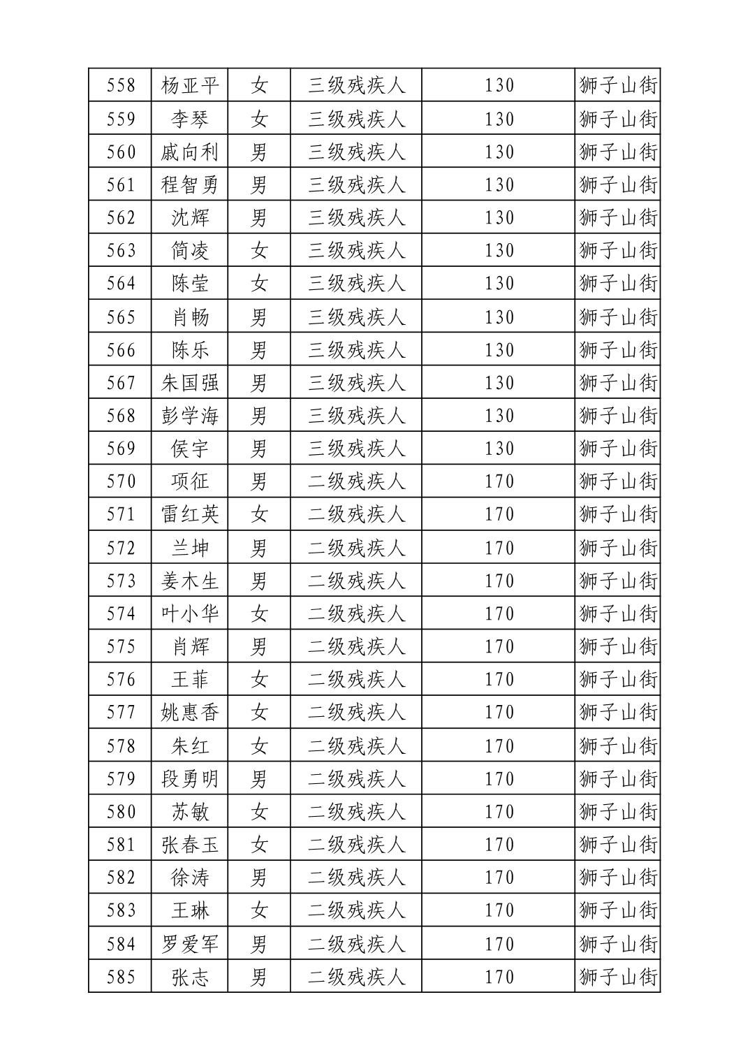 名 称:2025年12月武汉市洪山区困难残疾人生活补贴发放表