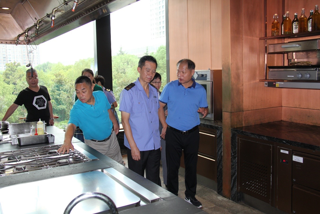 2019年9月17日,洪山区市场监督管理局局长熊启平、副局长梅玖带领区食品药品执法大队、食品生产安全监督管理科及关山、和平食药所相关负责人,到辖区军运会比赛场馆华中科技大学光谷体育馆和光谷凯悦、天际丽豪2家接待酒店实地检查食品安全保障工作。检查组深入餐厨工作间,对食品原料采购、索证索票、进货查验记录、设施设备清洗保洁、餐饮具消毒、环境卫生、食品留样、从业人员健康状况等重点环节进行了认真细致的检查,对发现的问题现场督促整改。同时,督促管理方严格落实主体责任,落实管理制度,加强隐患自查,严格把控全过程、全覆盖的食品安全关。