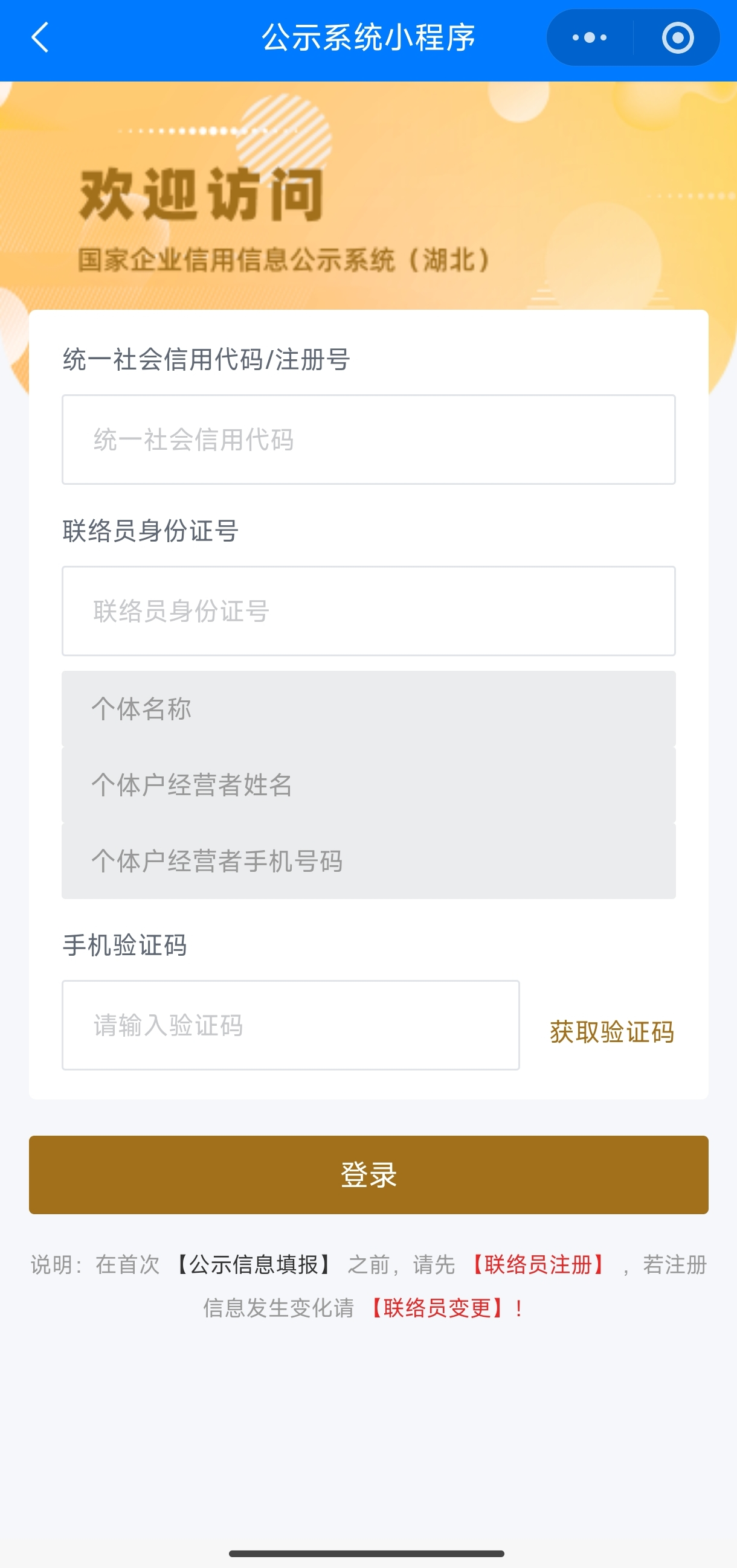 开微信,搜索并进入“国家企业信用信息公示系统”小程序,点击“年度报告”板块,选择登记机关所在地“湖北”后,即可跳转至“湖北省个体工商户年报小程序”。