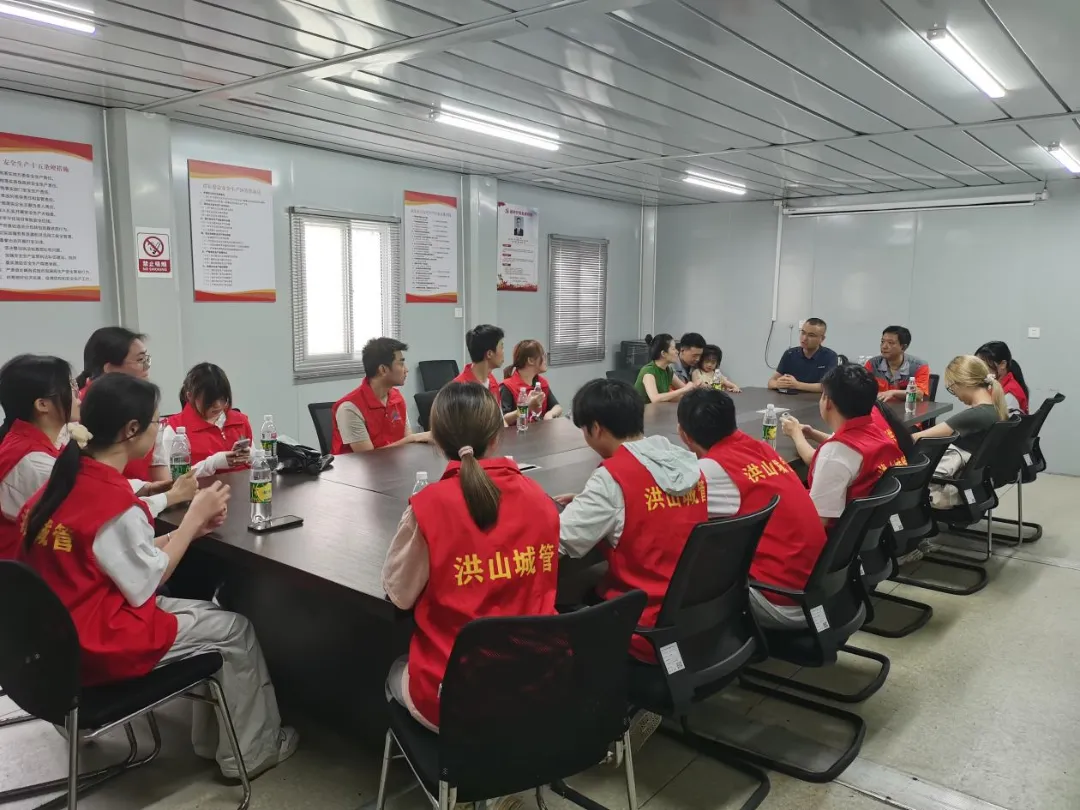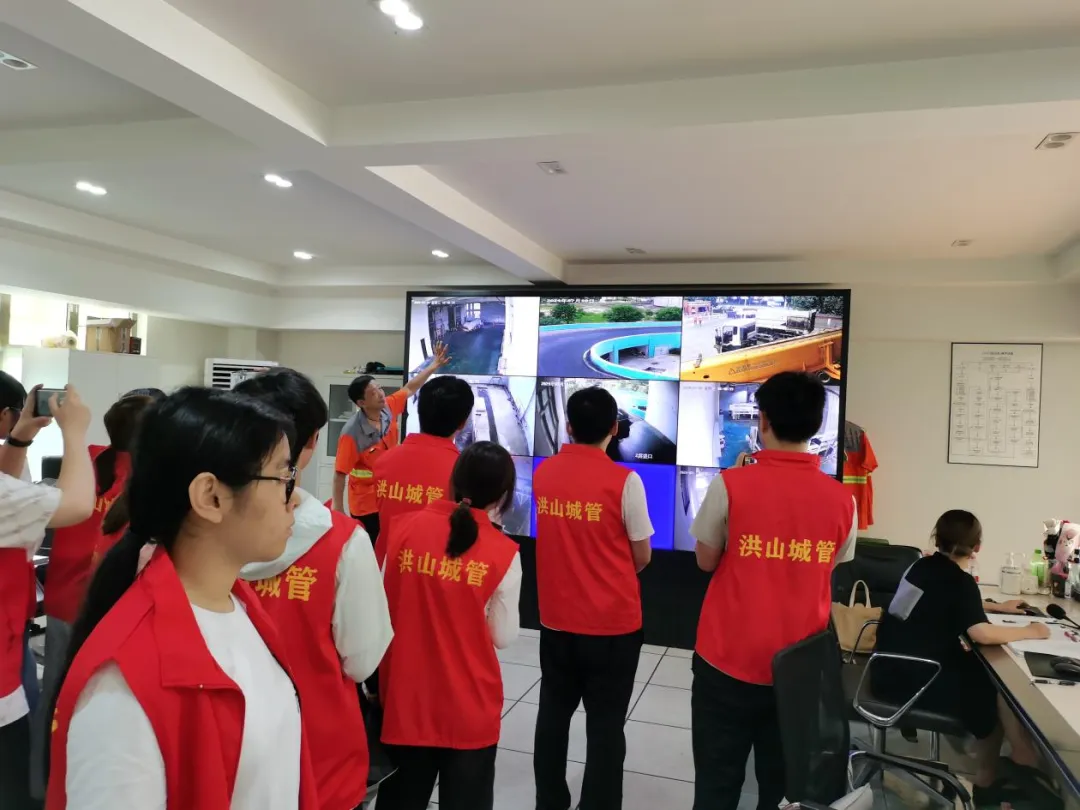 “清扫路面的水是从哪里来的?”“环卫工作量这么大,我们有多少环卫工人呢?”“下雨天还需要洒水作业吗?”13名来自中南财经政法大学的红马甲大学生志愿者纷纷发问,广美城市运维业务部部长胡俊一一向大学生志愿者现场进行解惑。