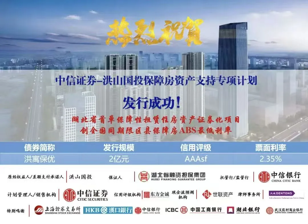 攻关成果:在“挂帅攻关”行动中,洪山国投聚焦金融创新,成功发行湖北省首单保障房ABS,实现关键突破。面对湖北省发行保障房ABS无先例可循的困难,项目团队攻坚克难,主动钻研,创新采用“外部增信+豁免抵押”模式,引入省融资担保集团增信,释放了13处共1655套保障房的再融资潜力,有效盘活静态资产,展现了卓越的专业能力和“敢闯敢试、挂帅攻关”的担当精神。