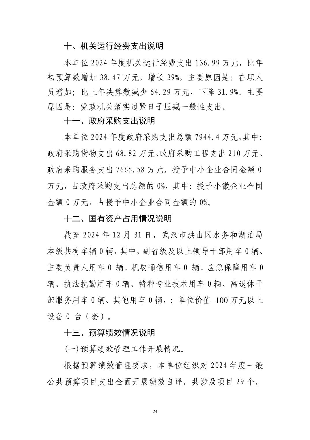 名 称:武汉市洪山区水务和湖泊局(本级)2024年度单位决算公开